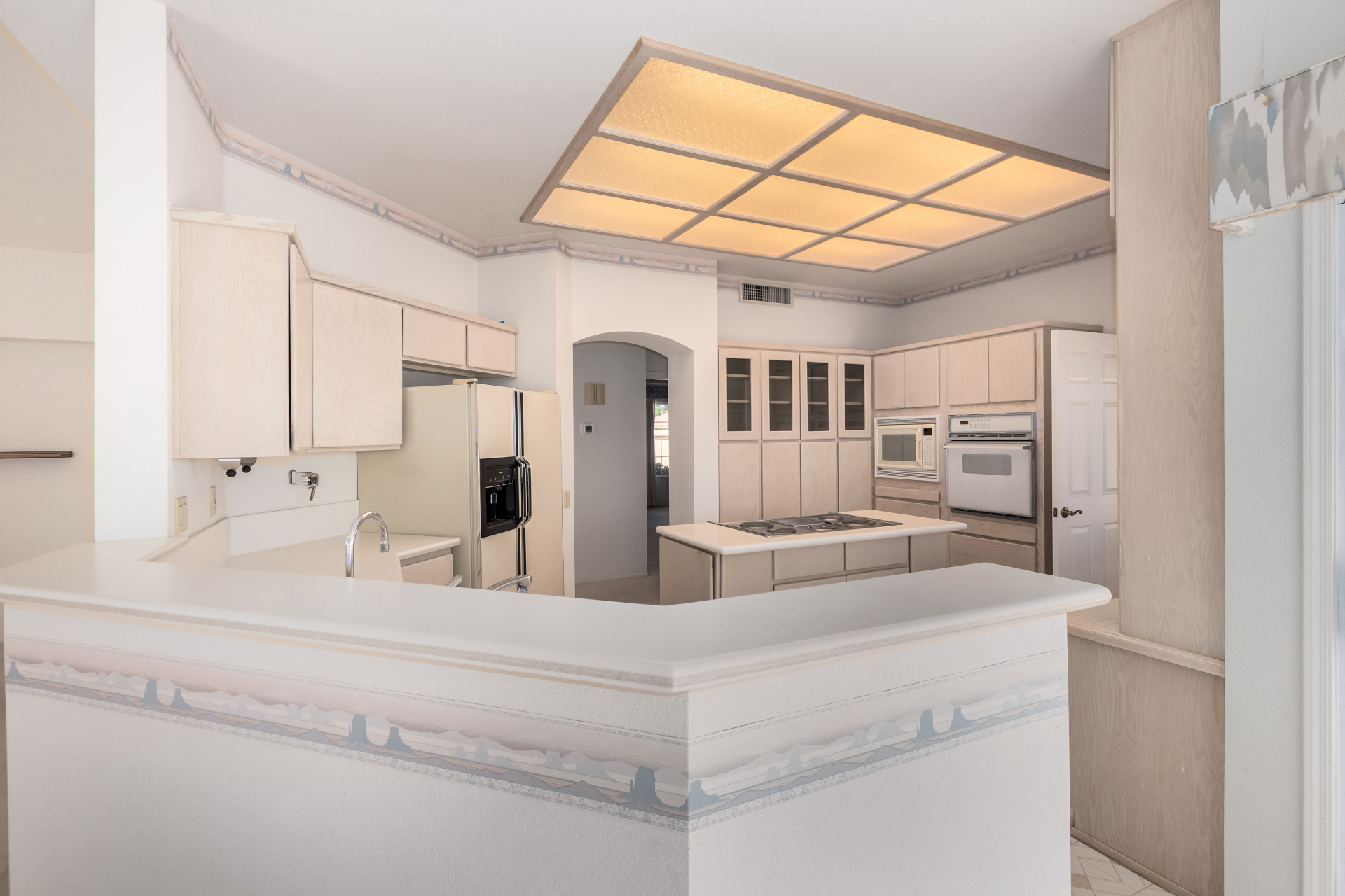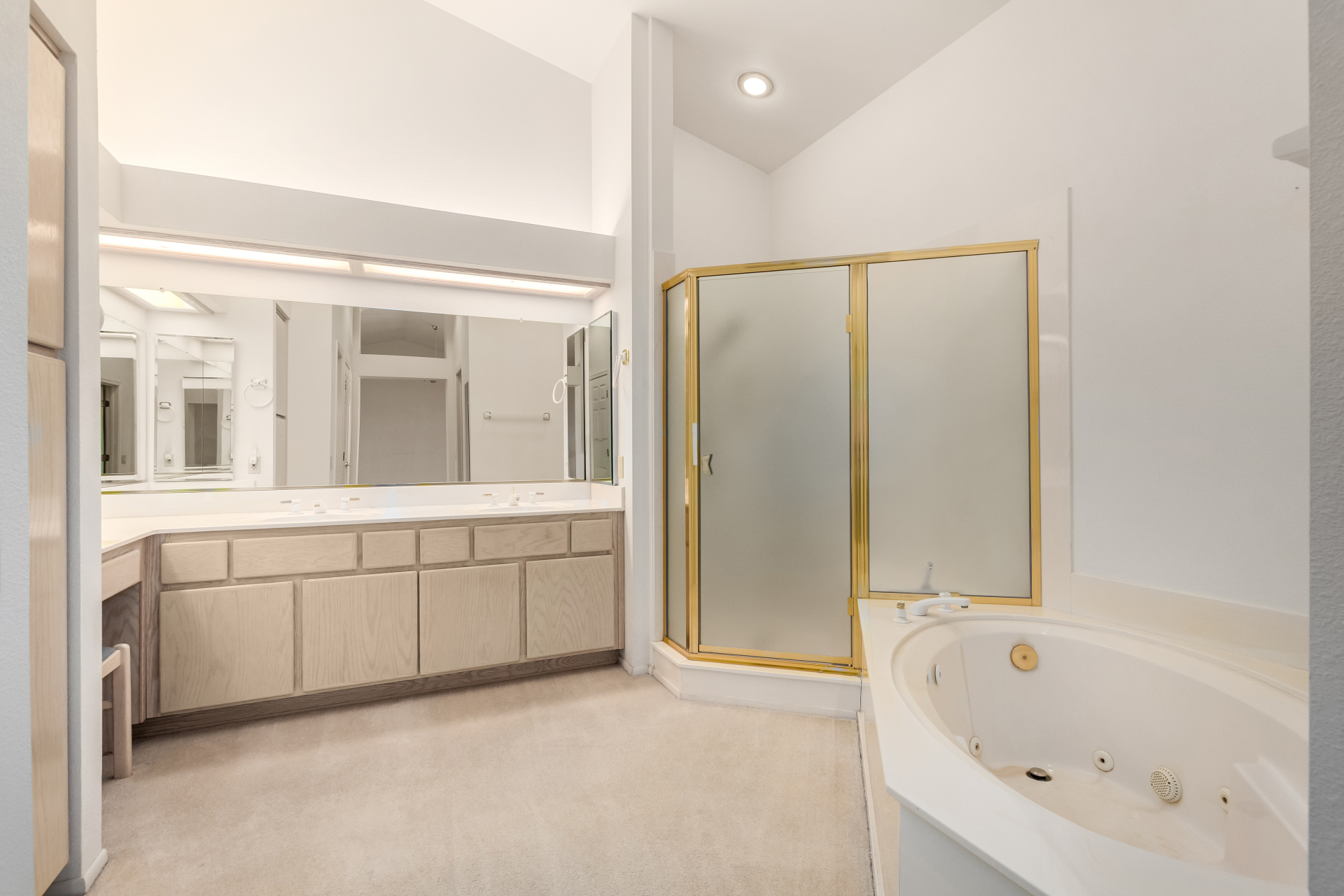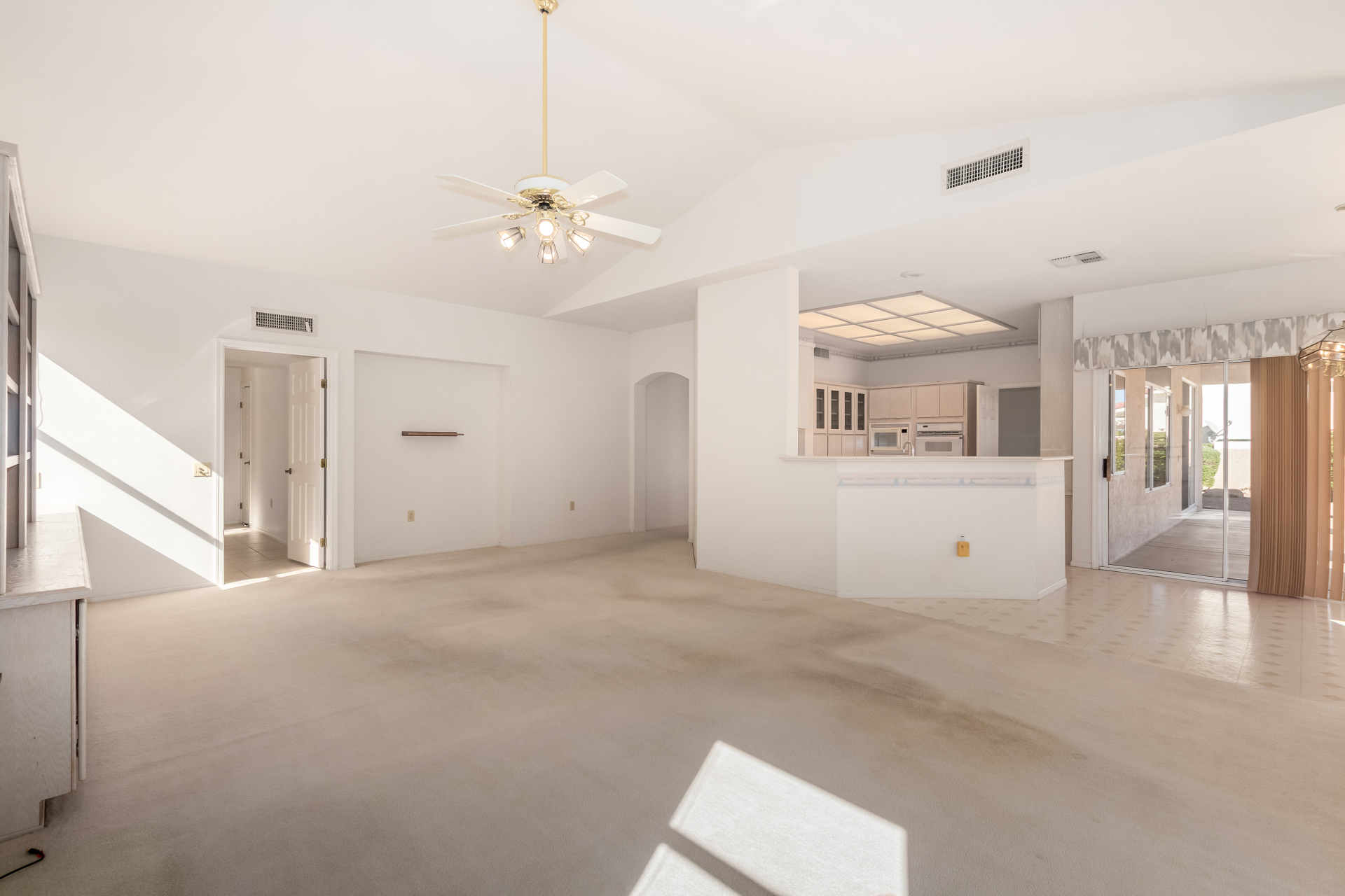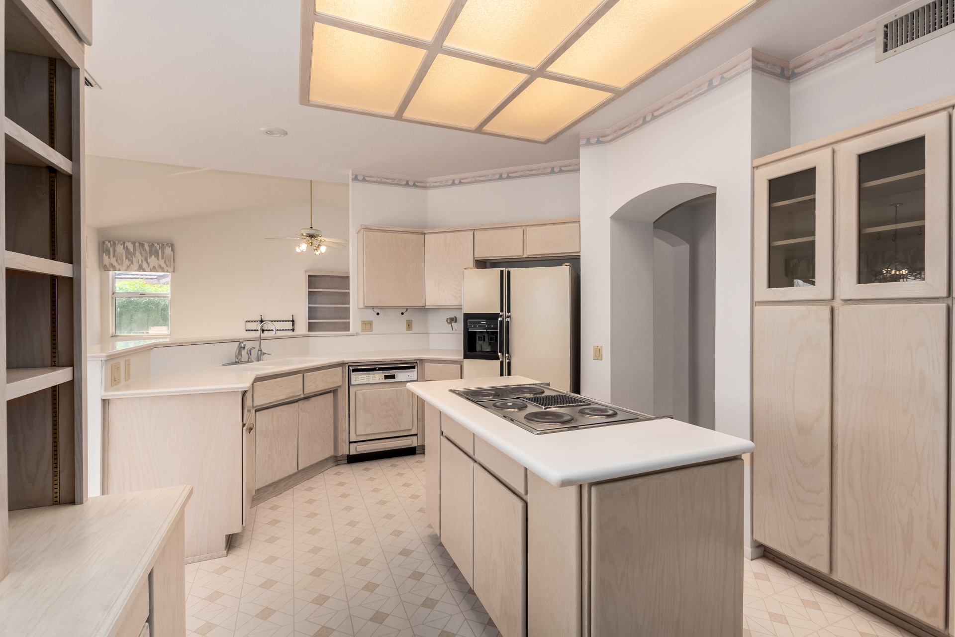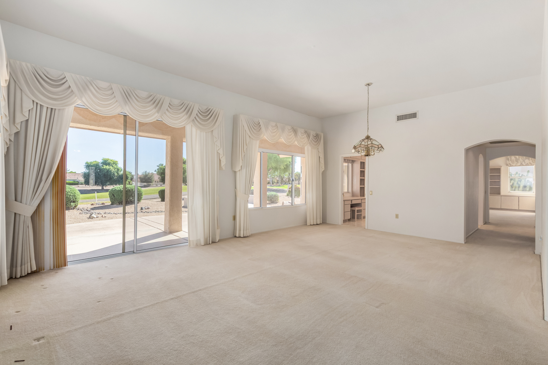 Golf course home in Sun City West with breathtaking lake views! This Montecito model charms with fantastic views of the course, fountain, and lake from nearly every room. Enjoy great curb appeal, low-maintenance landscaping, a 2-car garage, golf cart garage, and gated entryway. Inside, a spacious living/dining area flows effortlessly to the back patio, while the bright family room offers a semi-open layout filled with natural light. The kitchen boasts abundant cabinetry, ample counters, and built-in appliances. The main suite features a dual vanity, jetted tub, and walk-in closet. The laundry room with utility sink adds convenience. Relax on the patio and enjoy tranquil sunsets over the lush fairways!