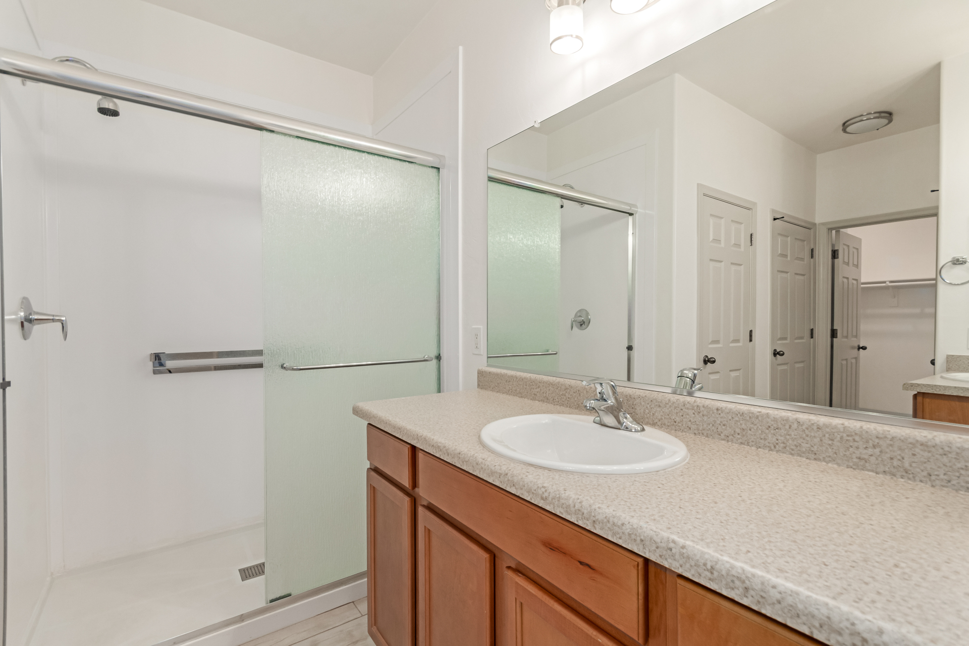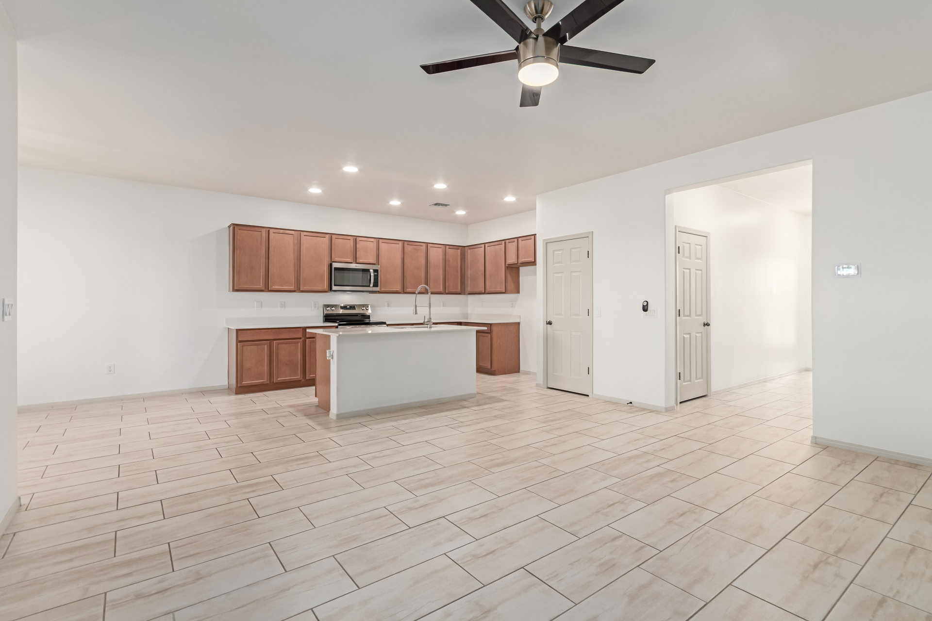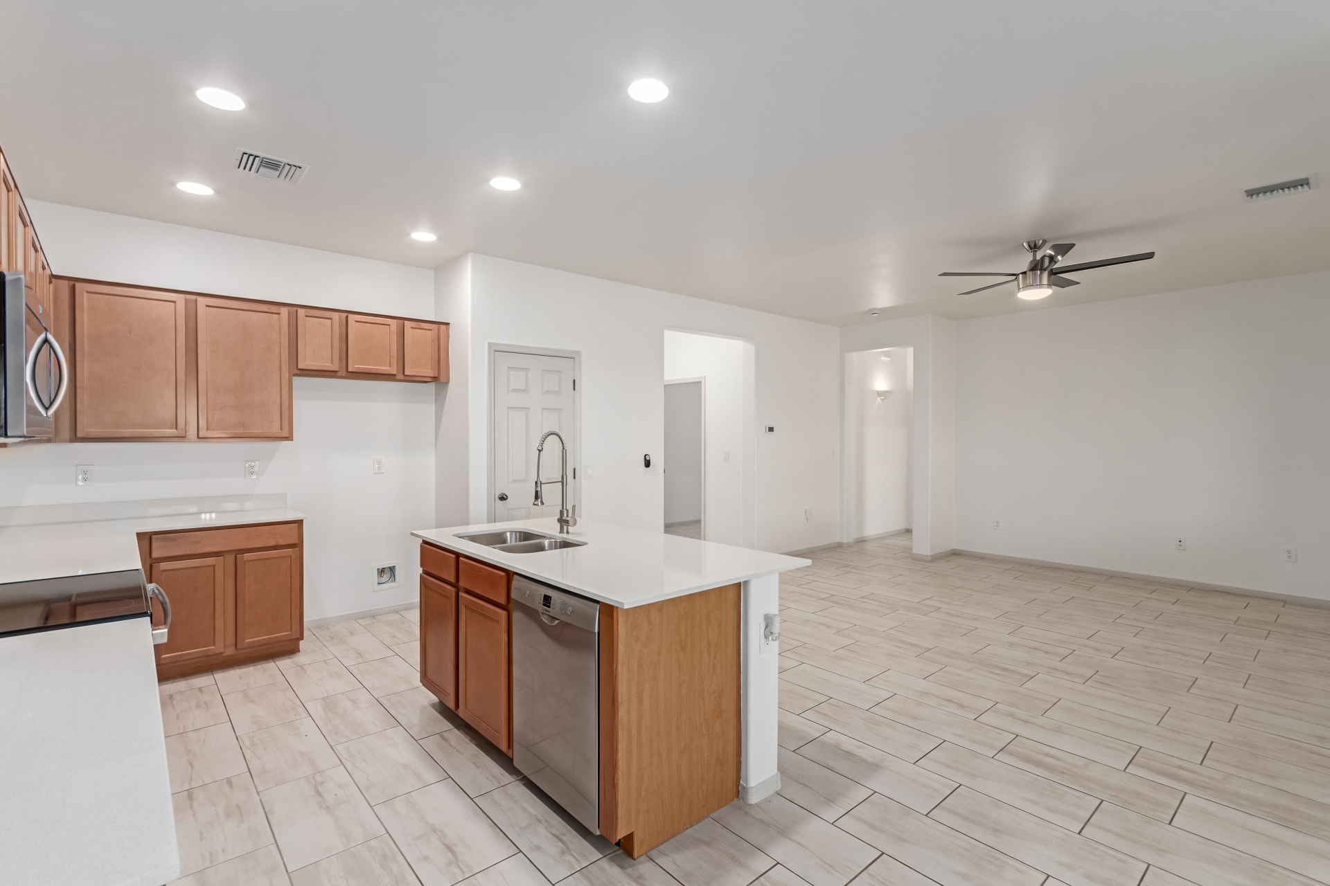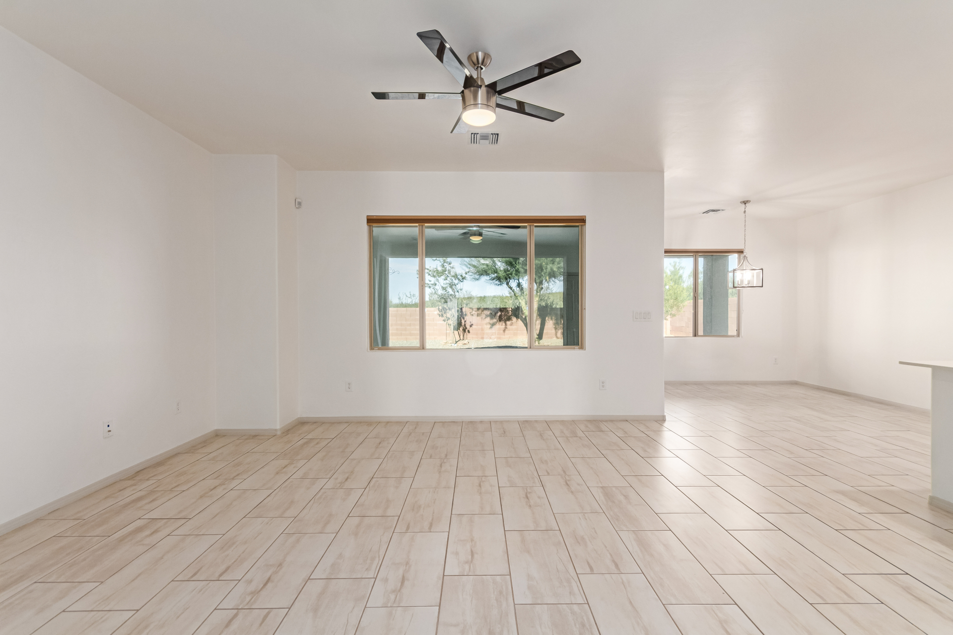 You'll love the great curb appeal and a welcoming 2-car garage. Explore the open layout showcasing tile flooring, neutral tones, and abundant natural light. Wide-open kitchen features a large island with a breakfast bar, stainless steel appliances, recessed lighting, wood cabinetry, granite counters, and a pantry for extra storage. The main bedroom offers a relaxing retreat with direct backyard access, a walk-in closet, and a gorgeous bathroom complete with a step-in shower and dual vanities. Outside, enjoy a private and serene backyard highlighted by a covered patio, lovely pavers, and shade trees--the perfect setting for outdoor gatherings or quiet relaxation. Make it yours!