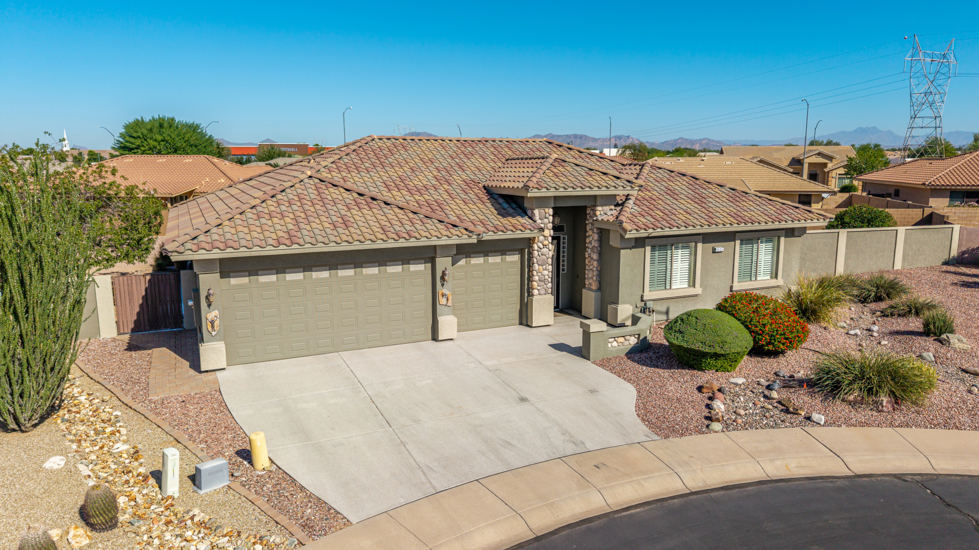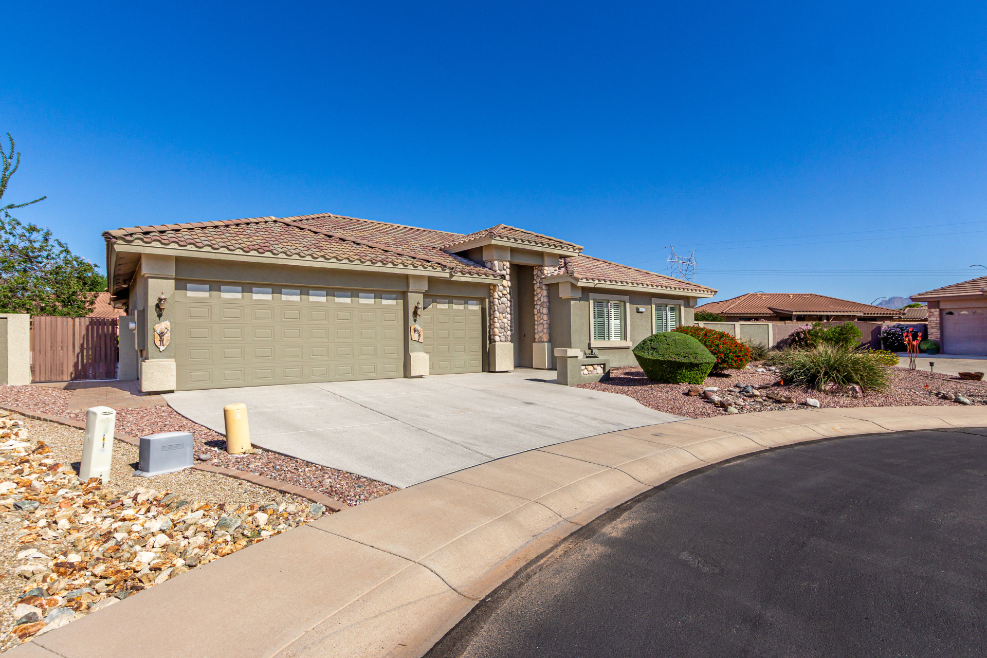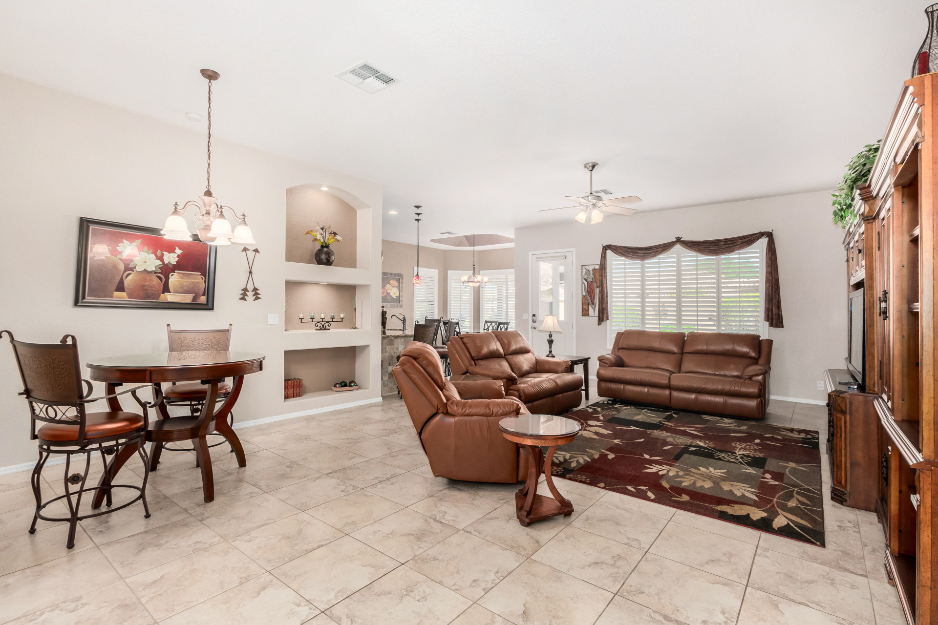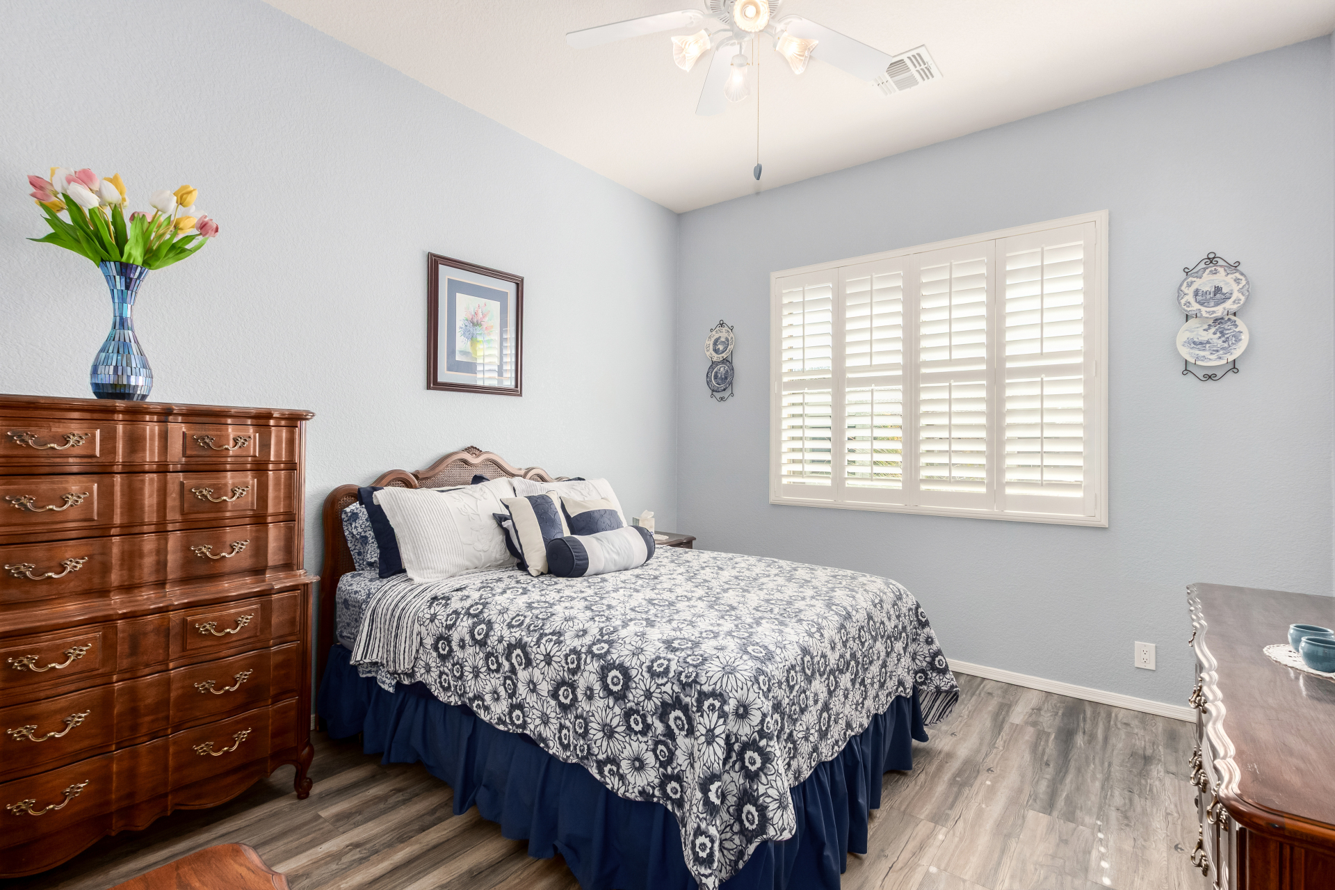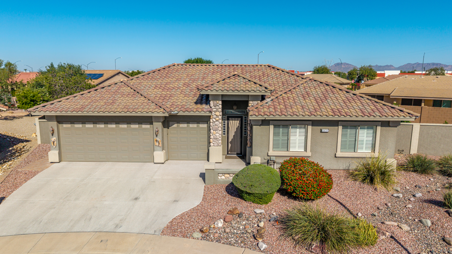 Wow! Discover this gorgeous 2-bedroom home perfectly situated on a prime cul-de-sac lot! The facade displays a 3-car garage, stone accents, and manicured landscape. Prepare to be amazed by the impressive open floor plan showcasing tile flooring, bountiful natural light, plantation shutters, and ceiling fans throughout. Fabulous kitchen includes ample cabinetry, tile backsplash, stainless steel appliances, granite counters, a breakfast bar, and a cozy breakfast nook with a lovely bay window. Impeccable primary retreat offers an ensuite with a make-up desk and a walk-in closet. Flexible den provides the ideal space for an office, reading area, or lounge zone. Relax outdoors under the covered patio or take advantage of the exceptional Community amenities. Hurry! A deal like this won't last!