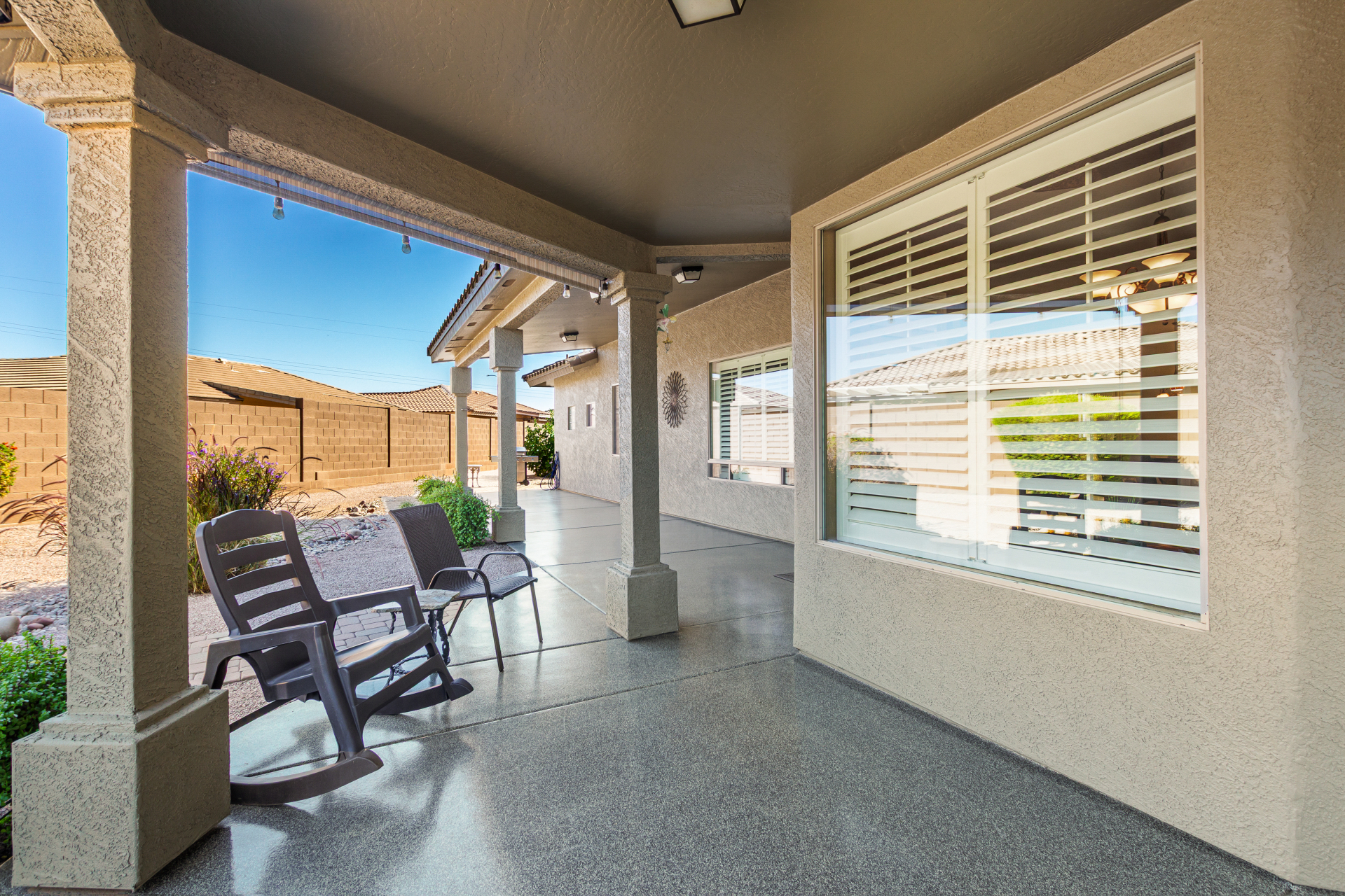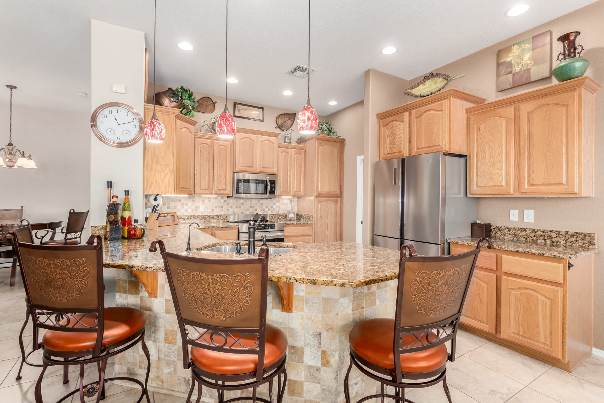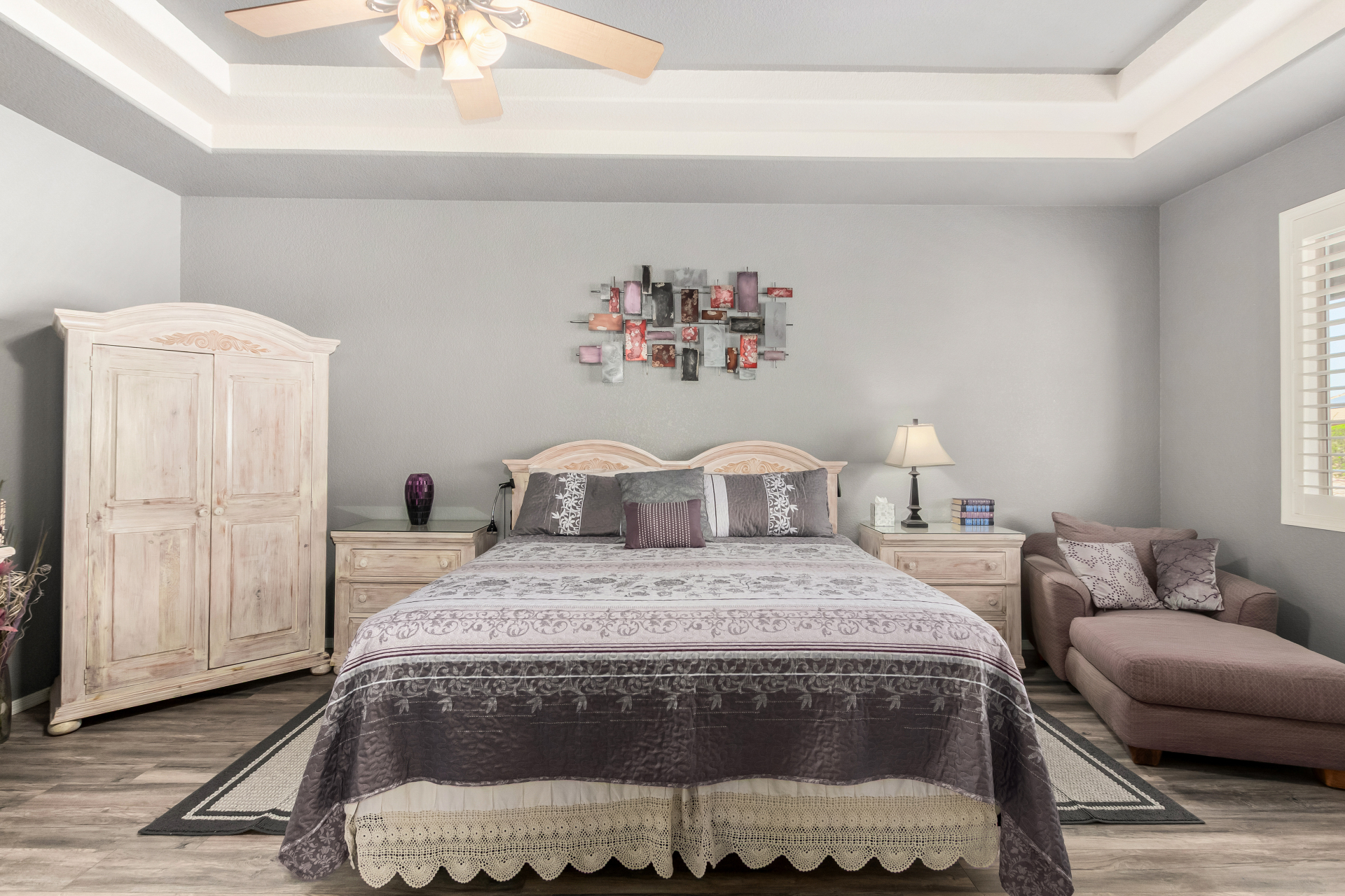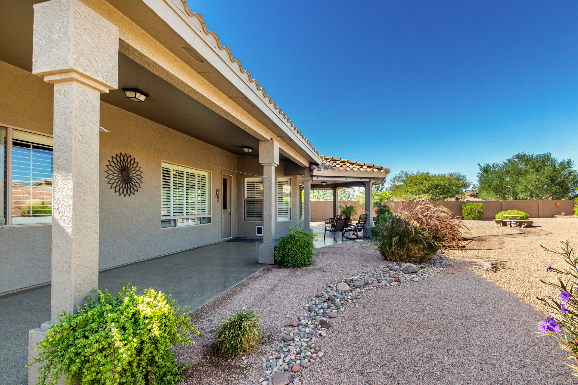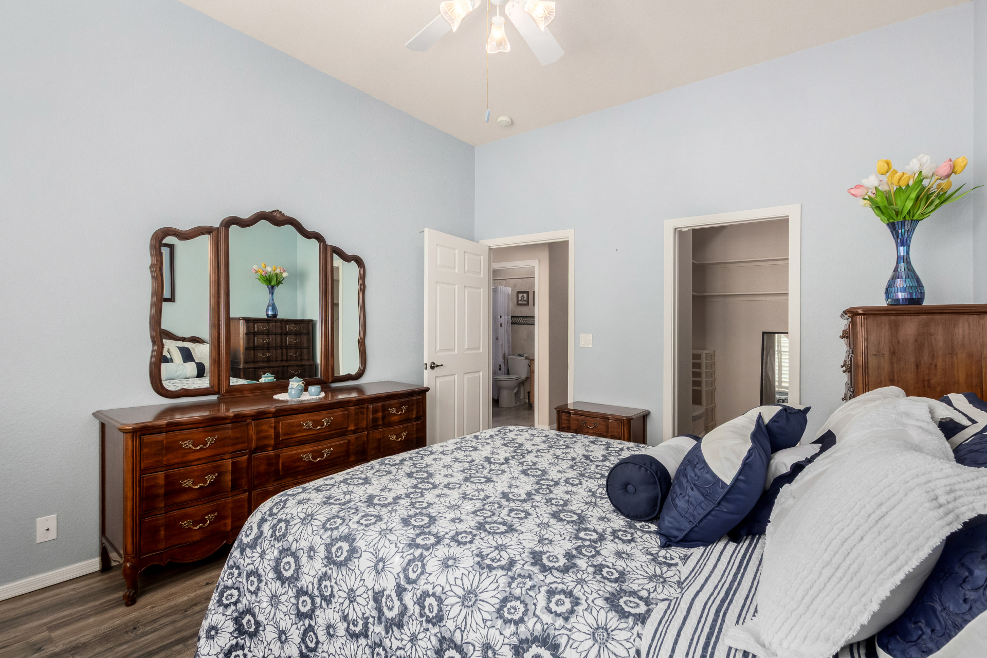 Wow! Discover this gorgeous 2-bedroom home perfectly situated on a prime cul-de-sac lot! The facade displays a 3-car garage, stone accents, and manicured landscape. Prepare to be amazed by the impressive open floor plan showcasing tile flooring, bountiful natural light, plantation shutters, and ceiling fans throughout. Fabulous kitchen includes ample cabinetry, tile backsplash, stainless steel appliances, granite counters, a breakfast bar, and a cozy breakfast nook with a lovely bay window. Impeccable primary retreat offers an ensuite with a make-up desk and a walk-in closet. Flexible den provides the ideal space for an office, reading area, or lounge zone. Relax outdoors under the covered patio or take advantage of the exceptional Community amenities. Hurry! A deal like this won't last!