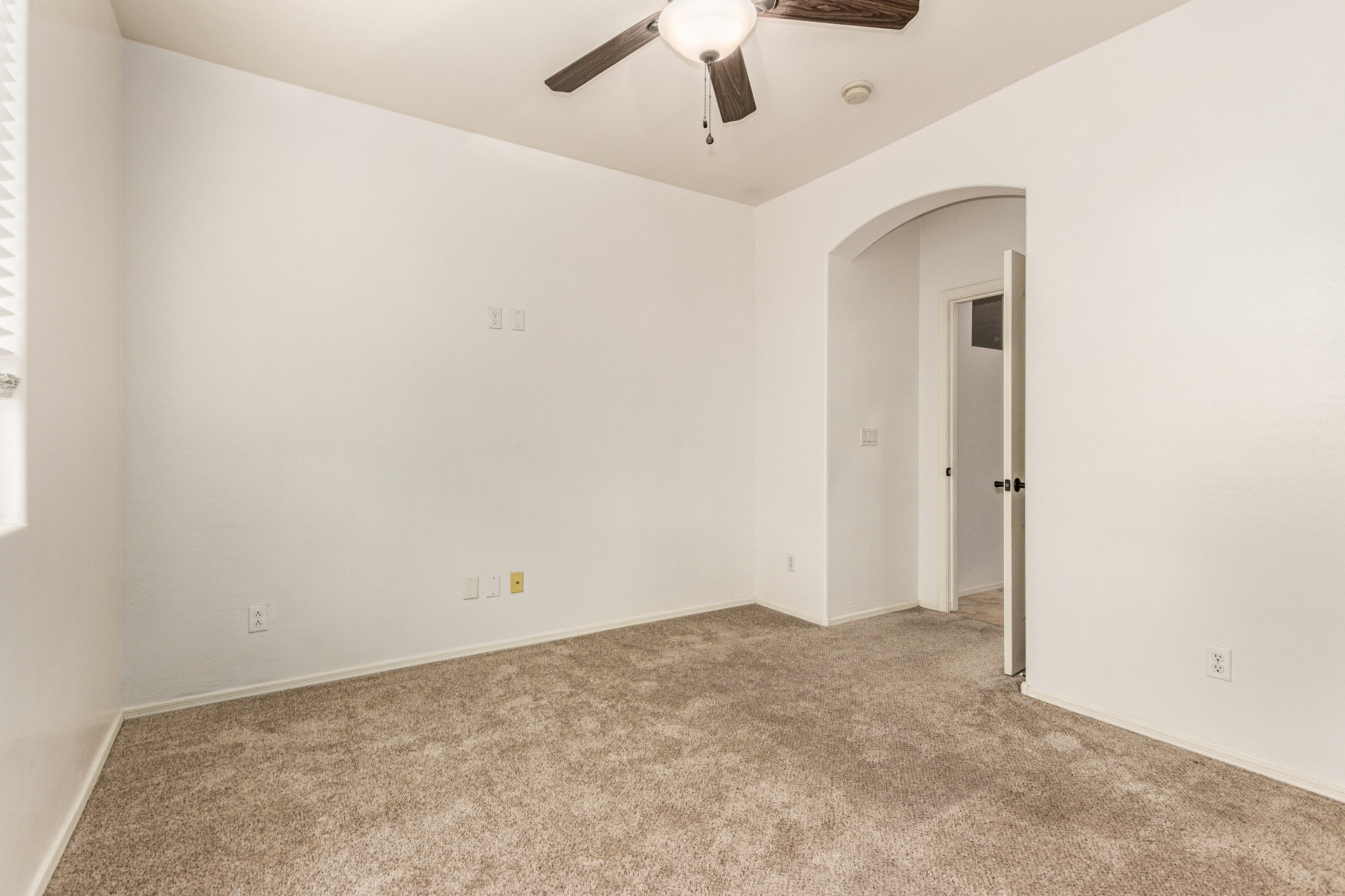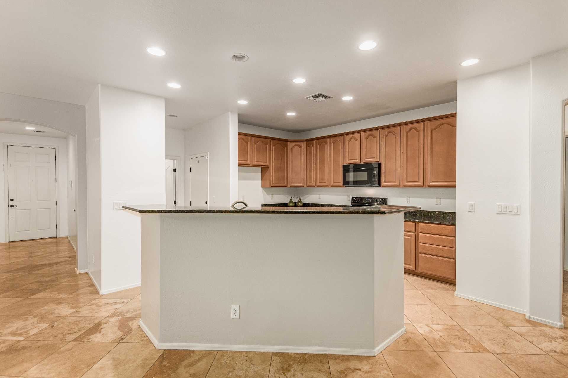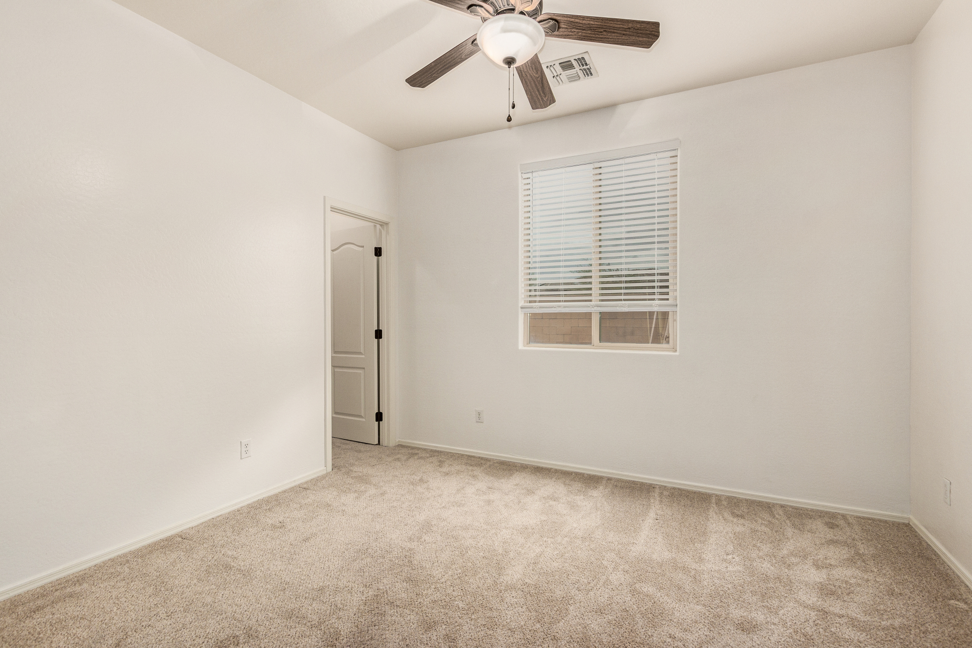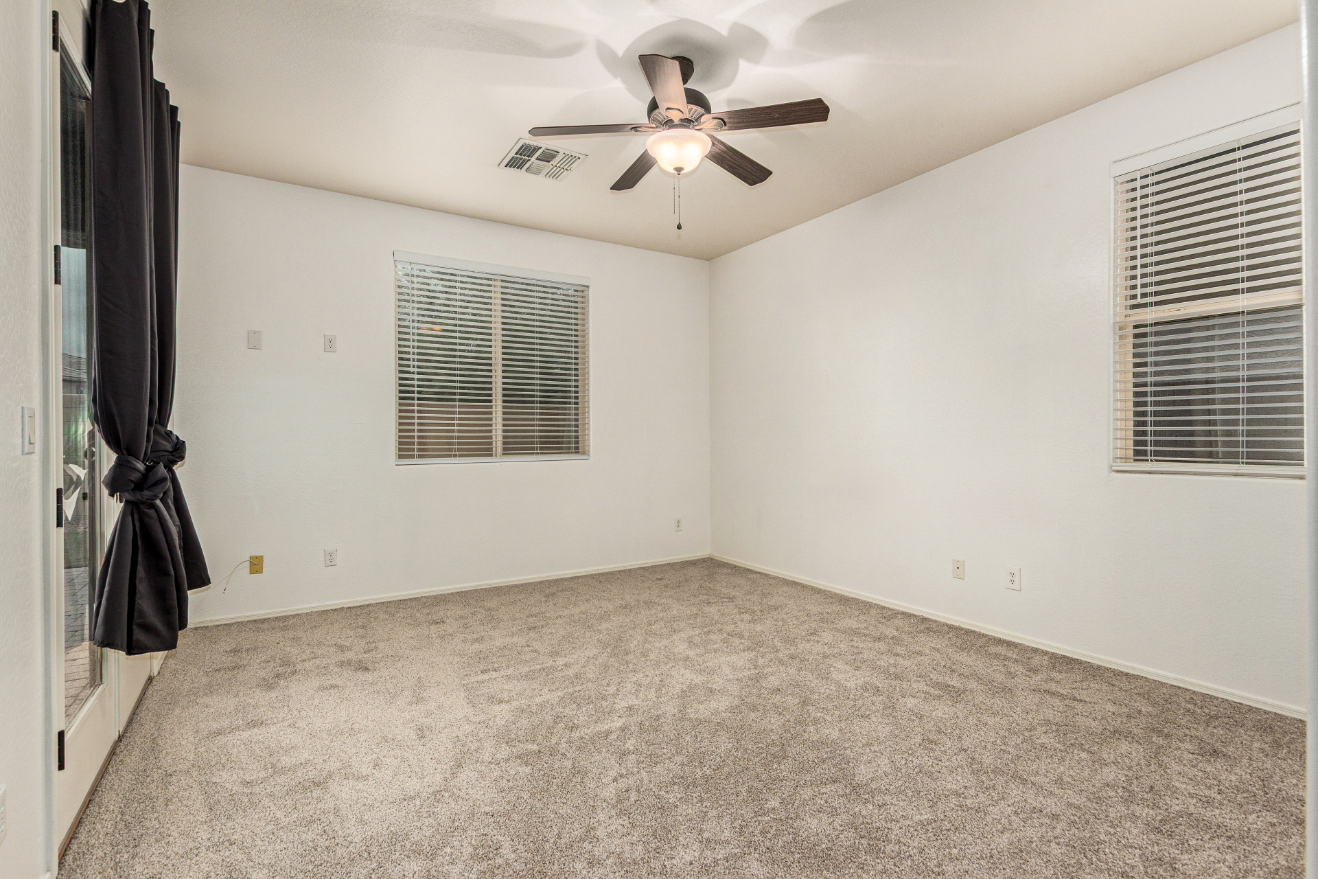 Take advantage of this fantastic rental opportunity! This stunning residence welcomes you with a 2-car garage, charming brick accents, & breathtaking mountain views. Discover a captivating open layout with high ceilings, a soothing palette, blinds, & durable tile flooring. The kitchen has granite counters, abundant wood cabinets with crown moulding, recessed lighting, built-in appliances, a pantry, & a two-tier island with a breakfast bar. Double doors lead to a versatile den, ideal for an office or lounge! The main bedroom showcases soft carpeting, backyard access, an ensuite with dual sinks, & a walk-in closet. Imagine enchanting evenings in the backyard, which offers a covered patio, stylish pavers, & artificial turf for outdoor activities. Don't miss out on this incredible gem!