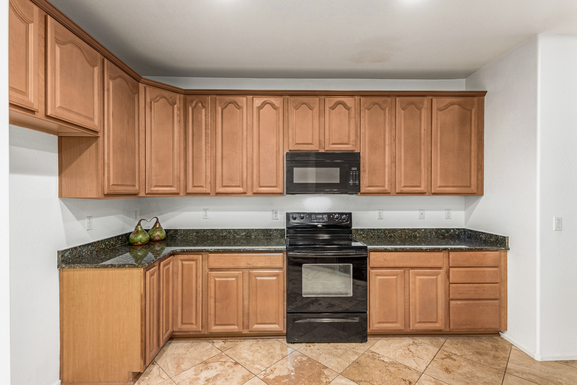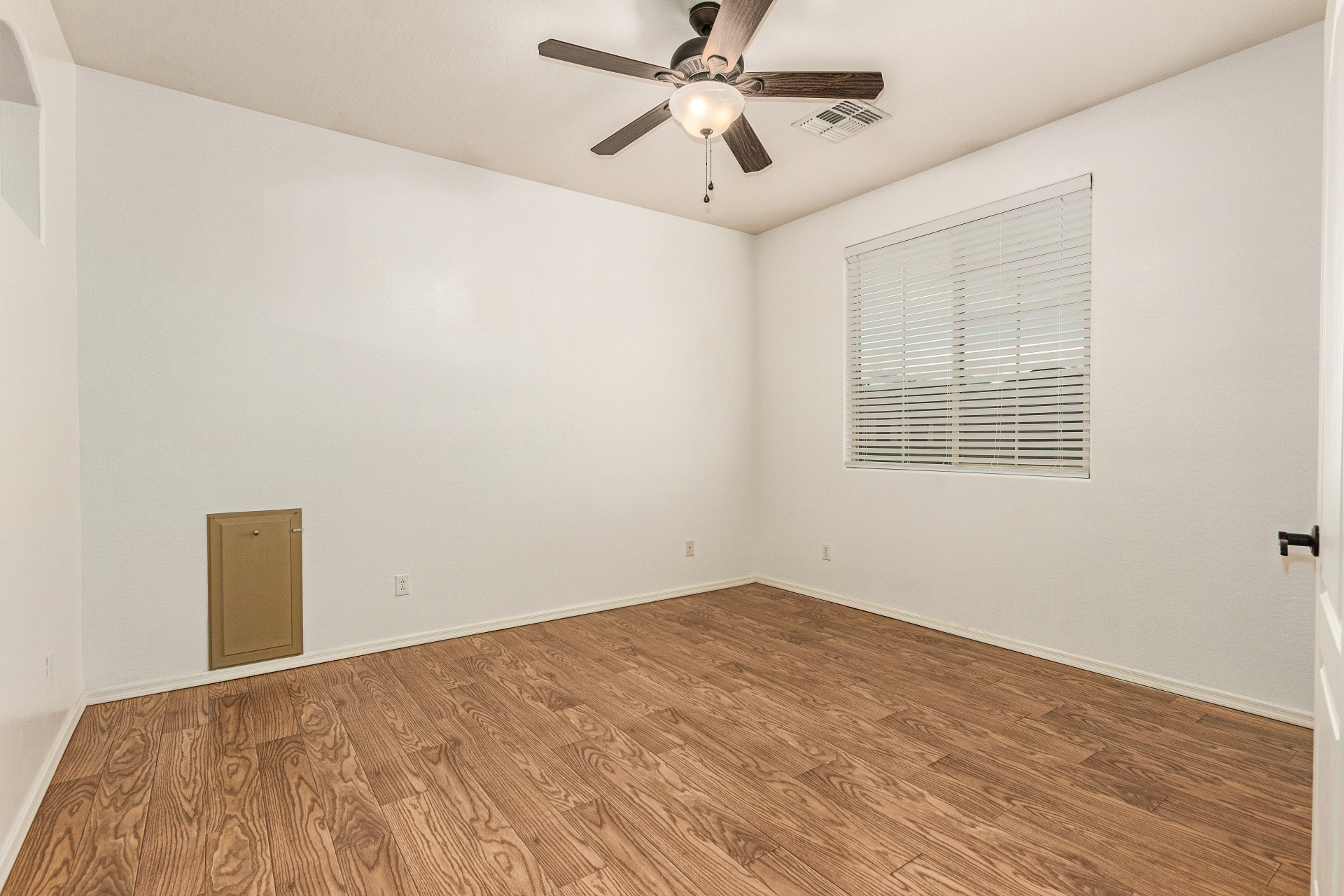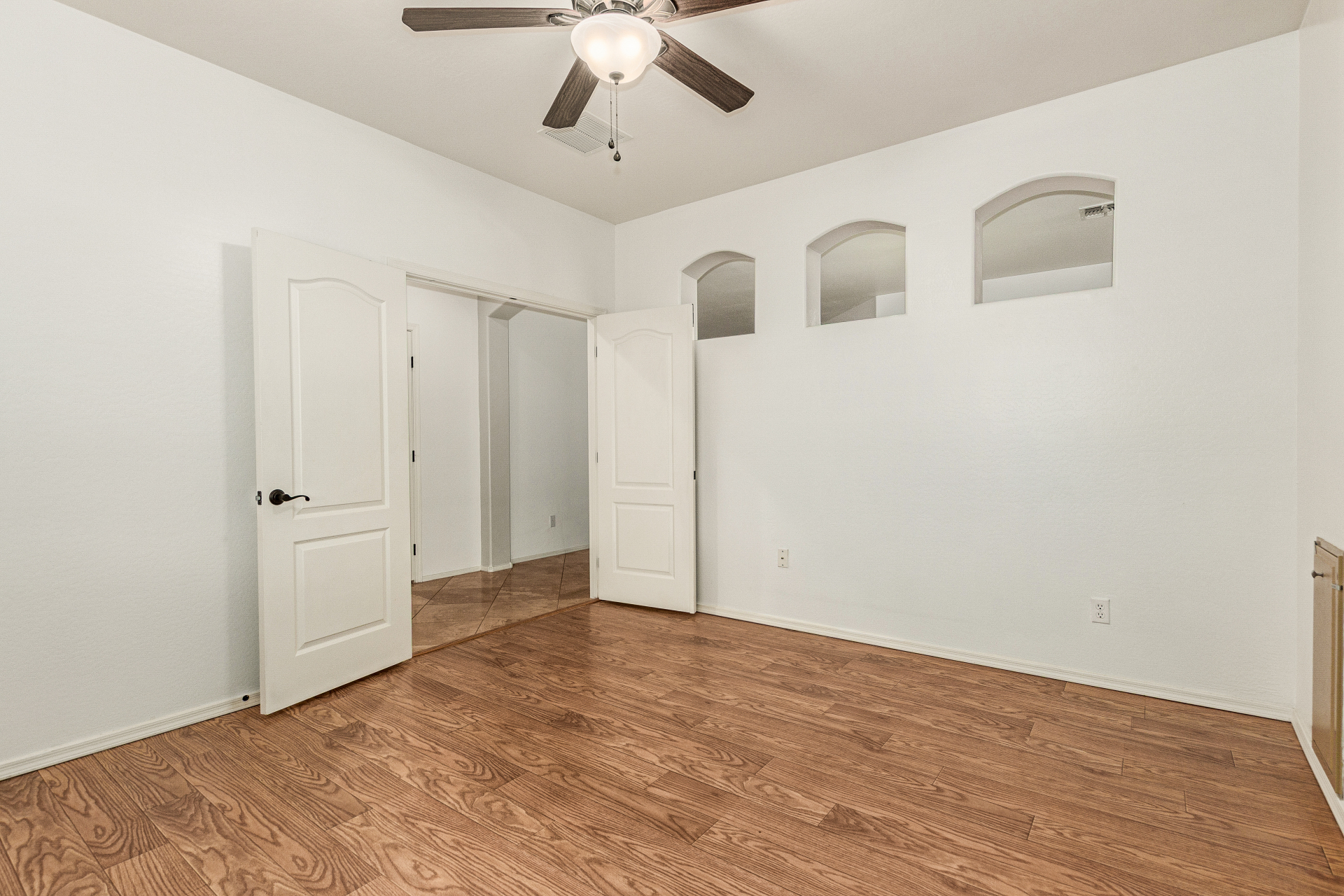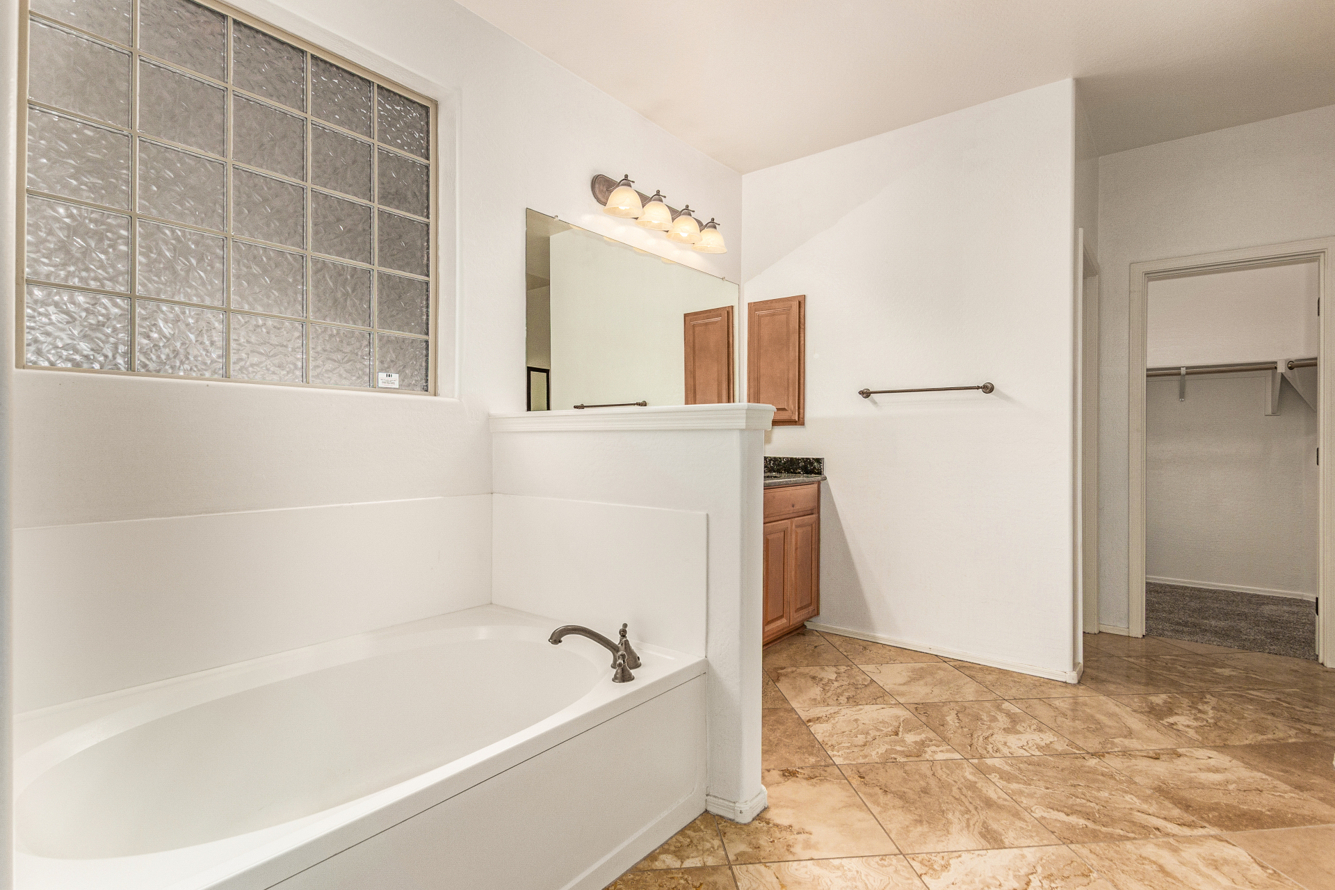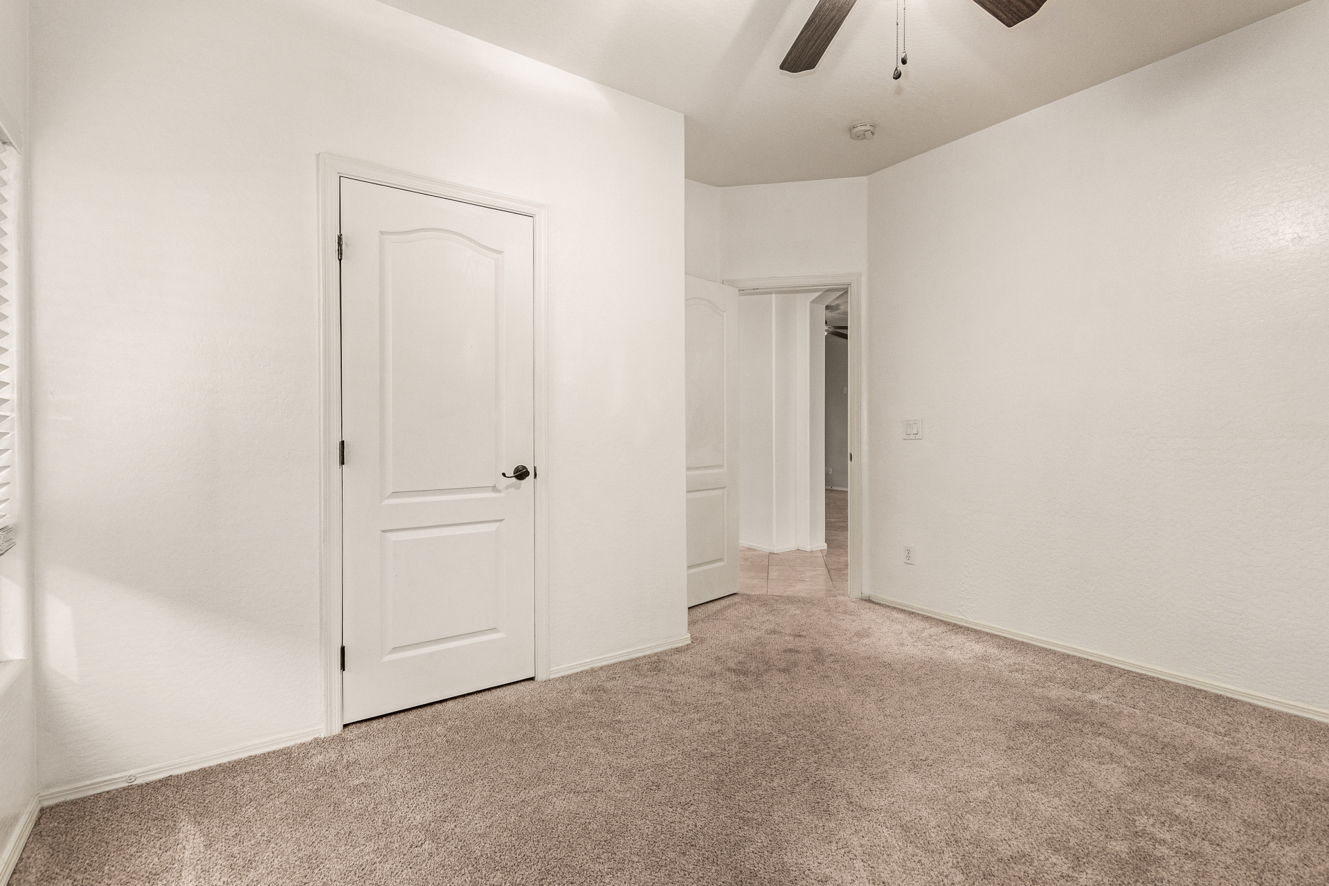 Take advantage of this fantastic rental opportunity! This stunning residence welcomes you with a 2-car garage, charming brick accents, & breathtaking mountain views. Discover a captivating open layout with high ceilings, a soothing palette, blinds, & durable tile flooring. The kitchen has granite counters, abundant wood cabinets with crown moulding, recessed lighting, built-in appliances, a pantry, & a two-tier island with a breakfast bar. Double doors lead to a versatile den, ideal for an office or lounge! The main bedroom showcases soft carpeting, backyard access, an ensuite with dual sinks, & a walk-in closet. Imagine enchanting evenings in the backyard, which offers a covered patio, stylish pavers, & artificial turf for outdoor activities. Don't miss out on this incredible gem!