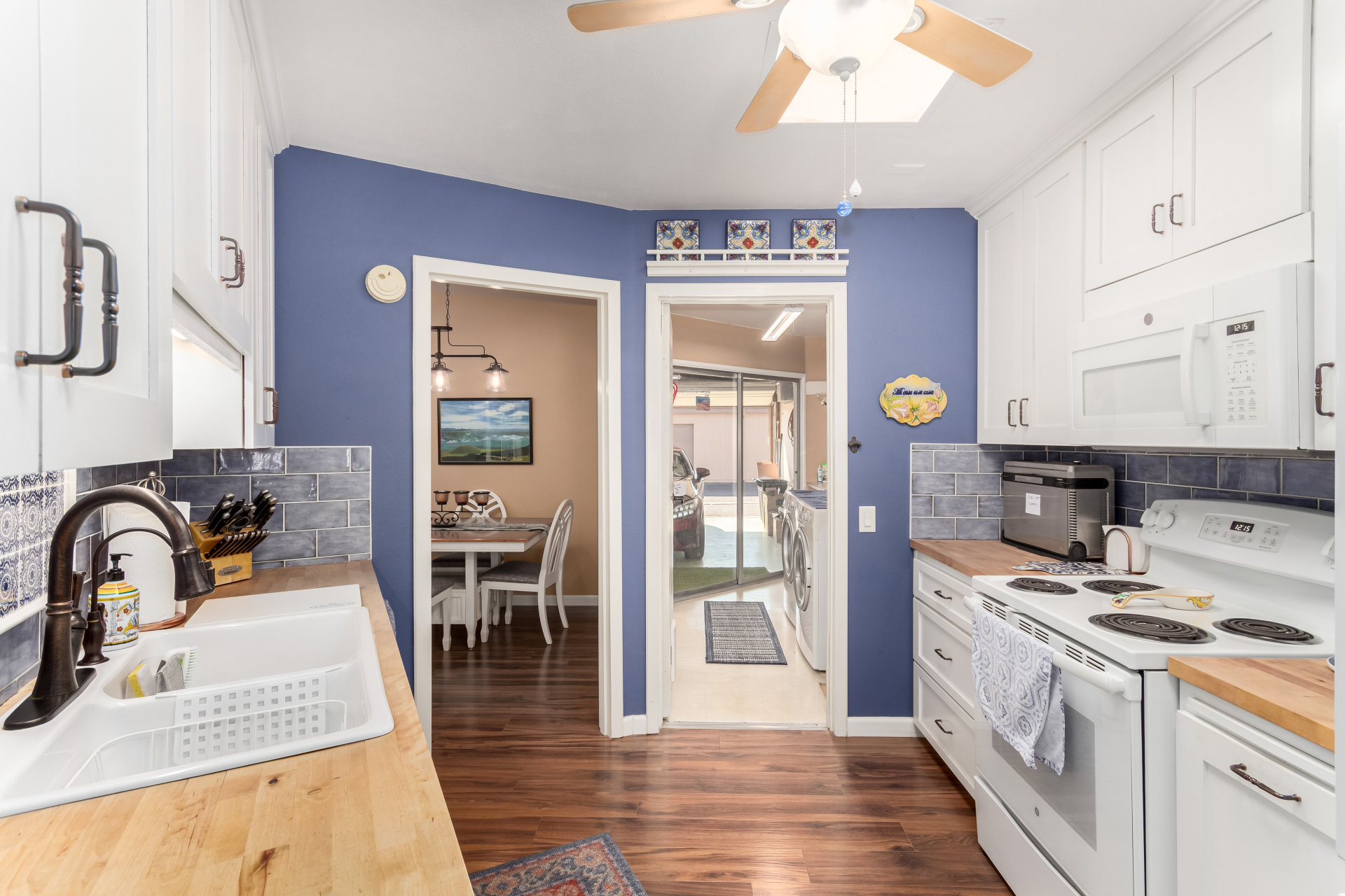 Beautifully remodeled 2 bed, 2 bath townhome in Lipan Court, completely updated from 2018 onward with quality finishes and thoughtful design. Enjoy wood-look flooring, a spacious open layout, and a stylish kitchen with butcher block counters, tile backsplash, and built-in appliances. The primary suite offers a walk-in closet w/ additional closet and private bath, while the secondary bedroom is perfect for guests or a home office. The extended garage fits two smaller vehicles and includes built-in cabinets for storage. Relax in the private backyard w/ covered patio and artificial turf. All furnishings and décor in the home can stay, making this a truly turnkey, move-in ready opportunity in a quiet and convenient location. Enjoy modern comfort and low-maintenance living.