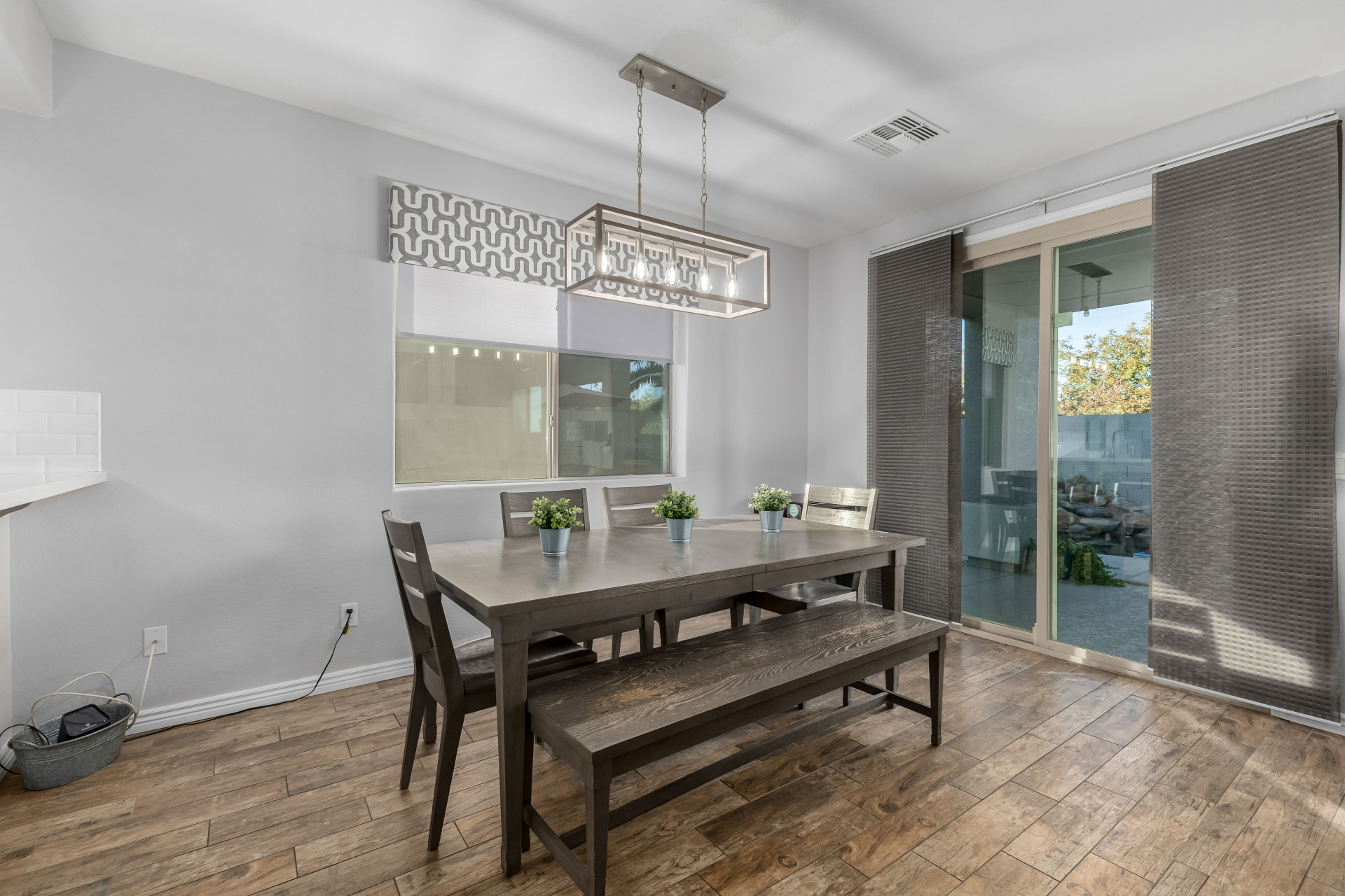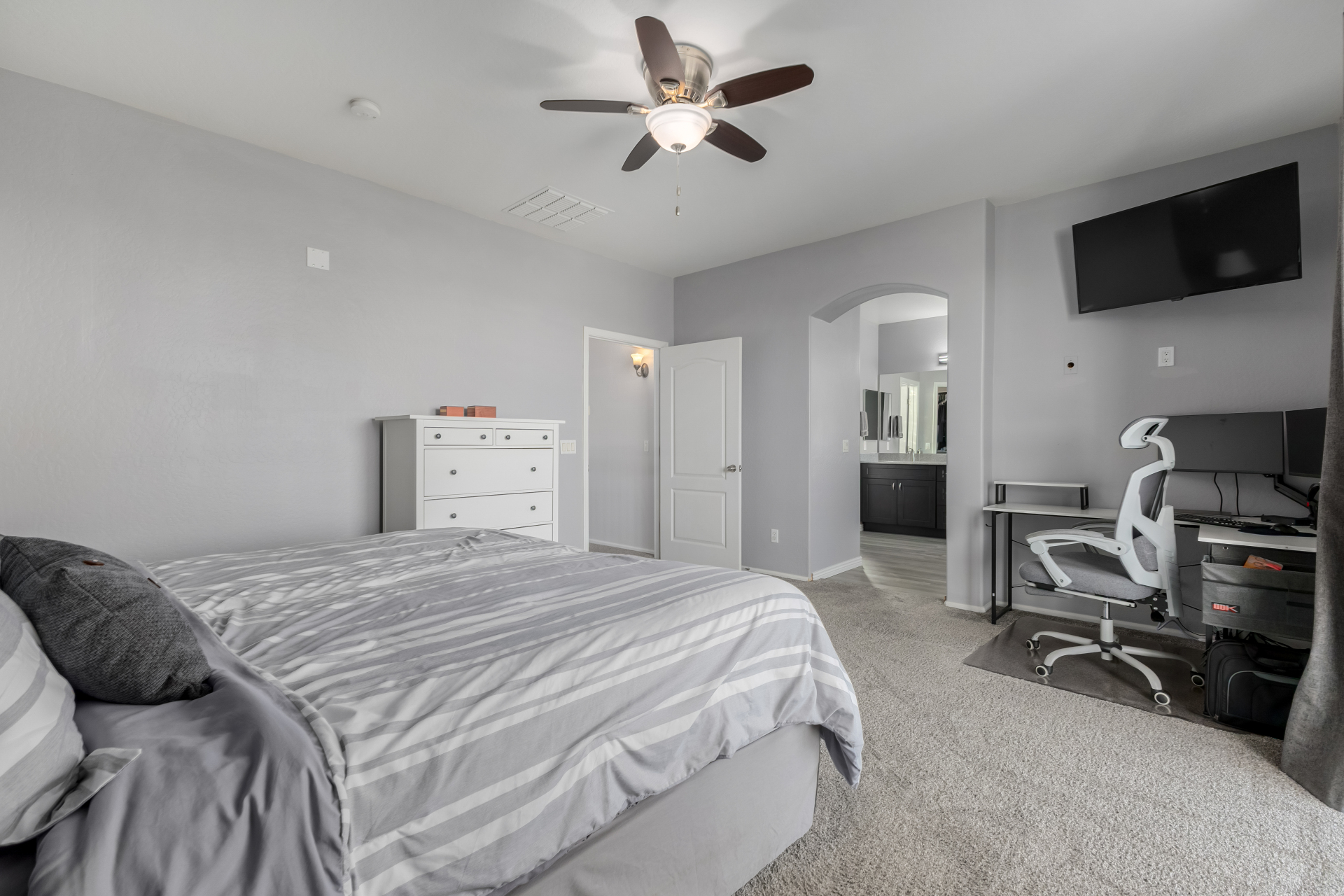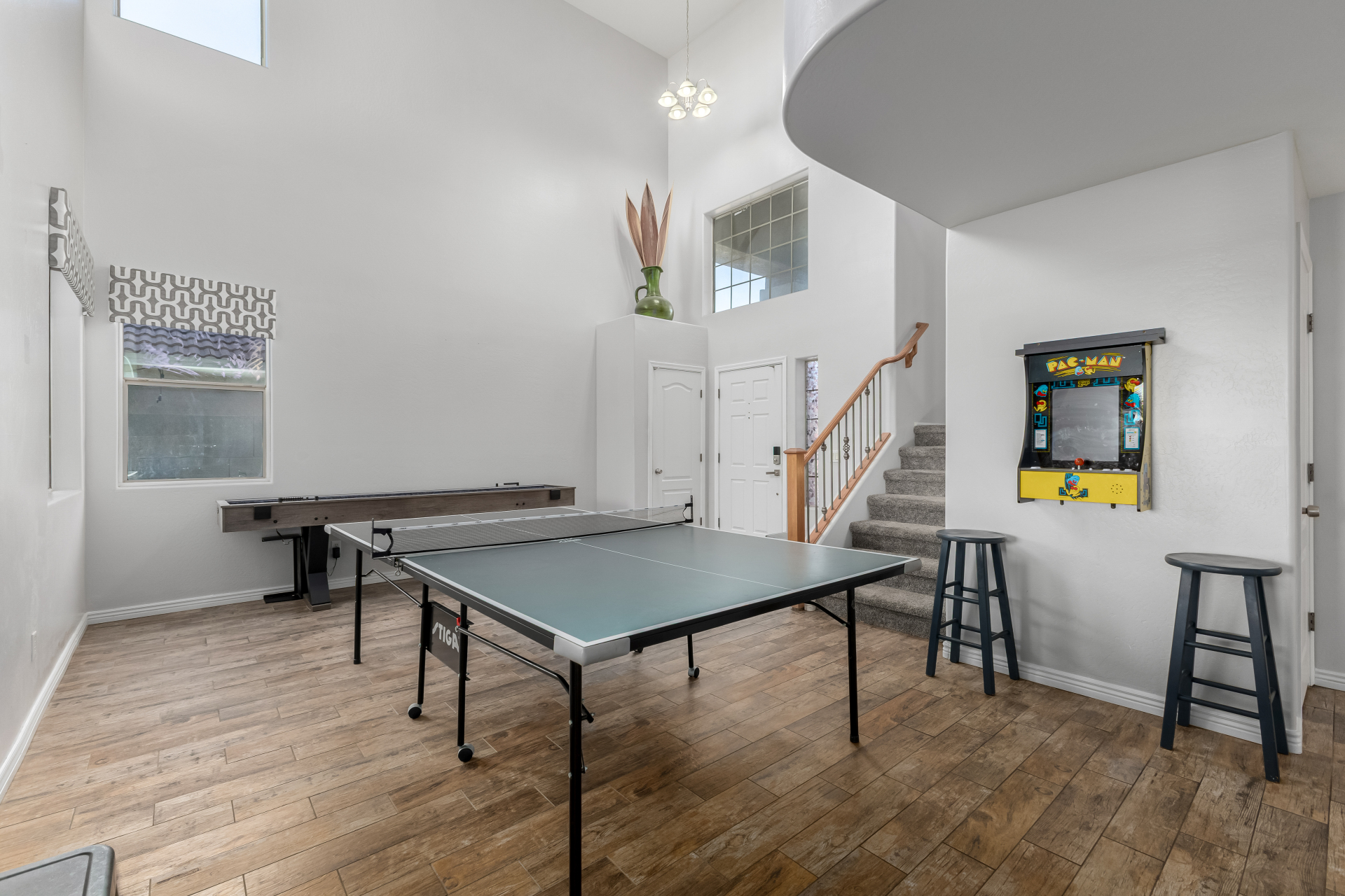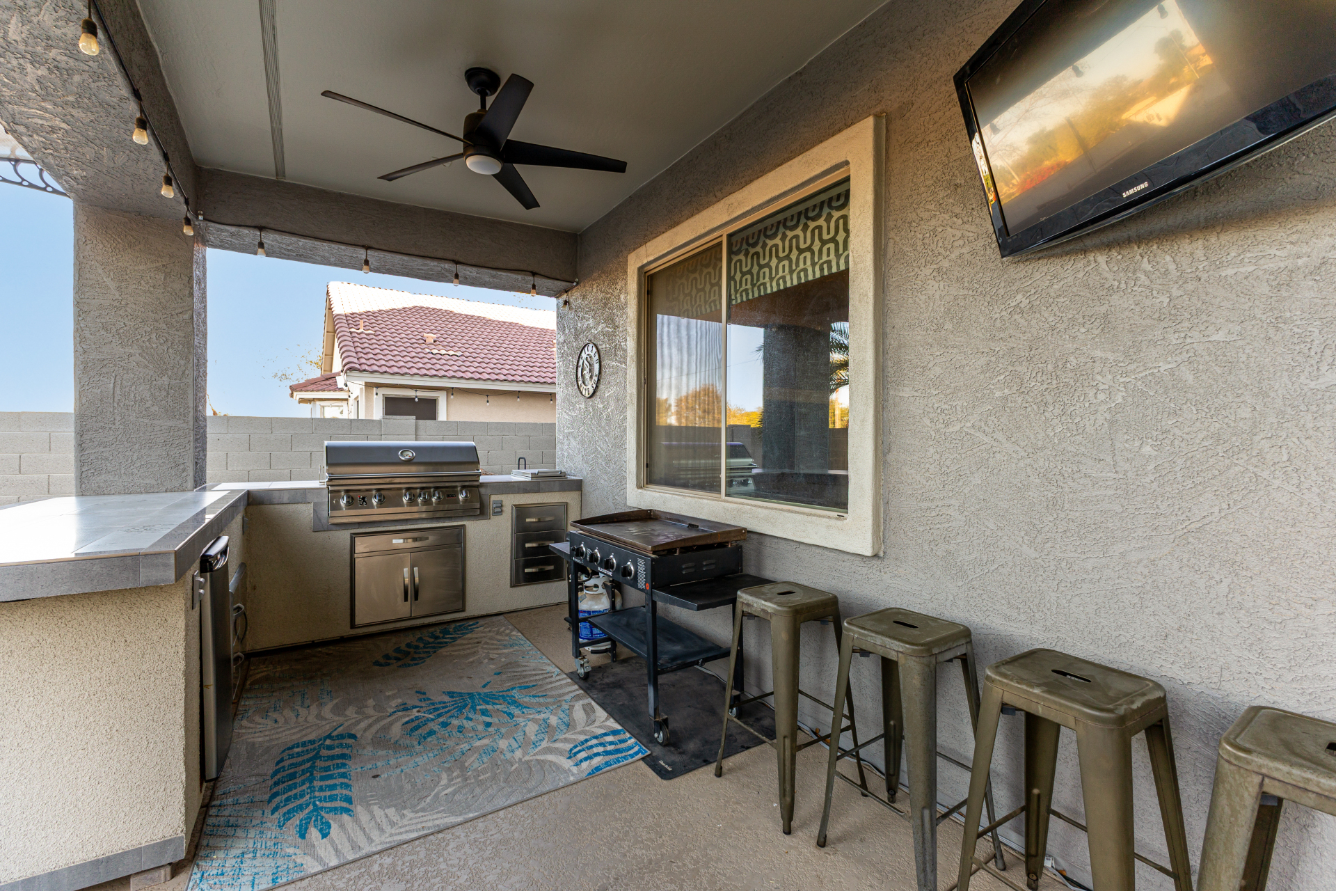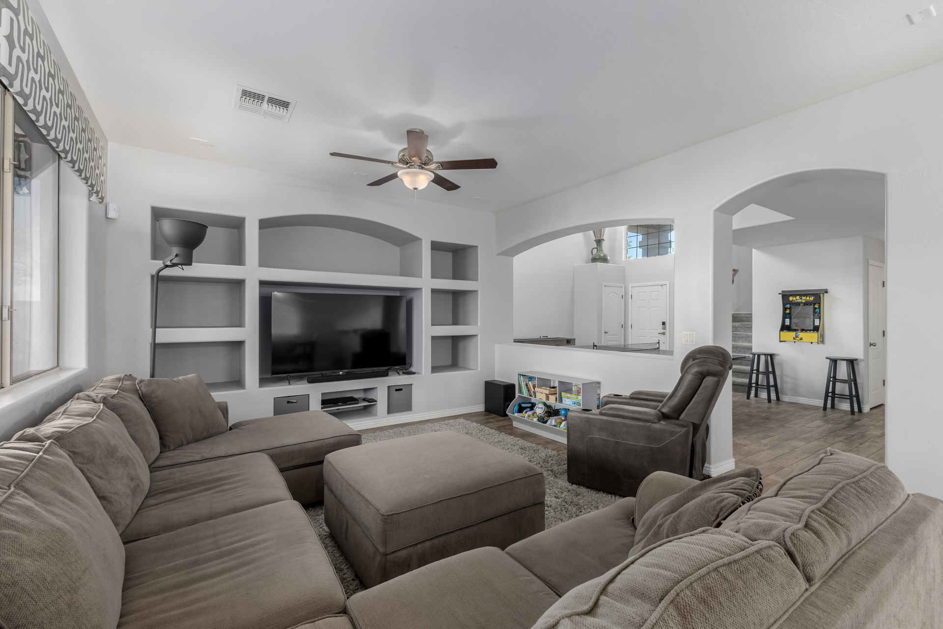 Discover this vibrant 2-story gem featuring a generous 3-car garage and inviting spaces throughout! Soaring ceilings and wood-look floors welcome you into a sizable living room that easily doubles as a fun game area. Family room offers charming wall niches, while the kitchen shines with SS appliances including double wall ovens, granite counters, a breakfast bar, ample cabinetry, and a tile backsplash. Primary bedroom offers a good night's sleep and treats you to direct balcony access. Loft is perfect for an office or creative corner. Sip your favorite beverage on the balcony, check out the backyard oasis boasting a covered patio, dry bar, built-in BBQ, firepit, shed, and a play pool ready for sunny days. This home truly has it all! Don't miss it!