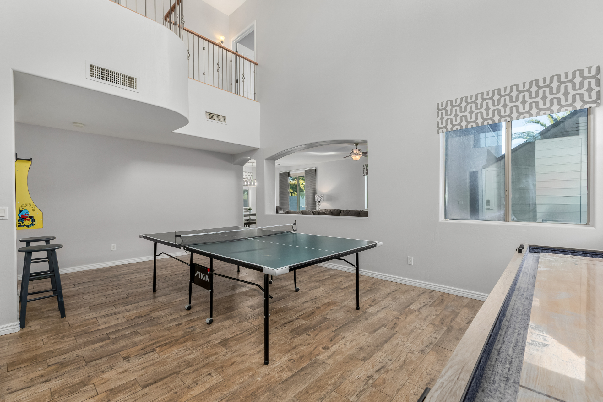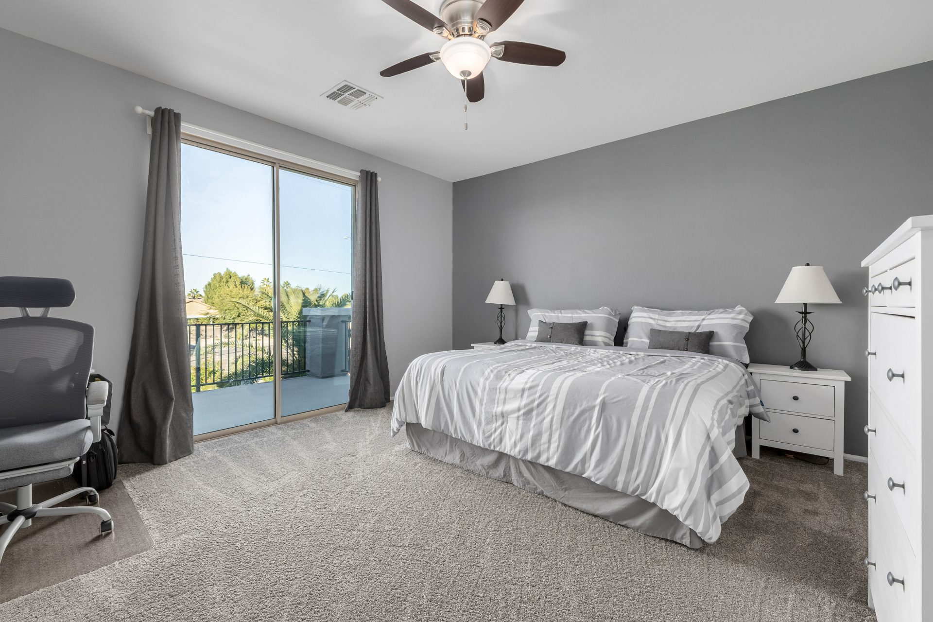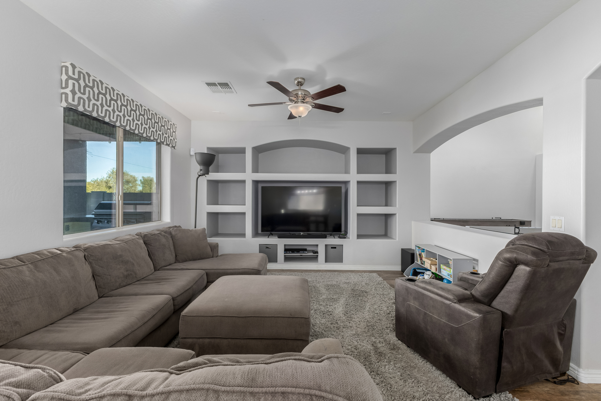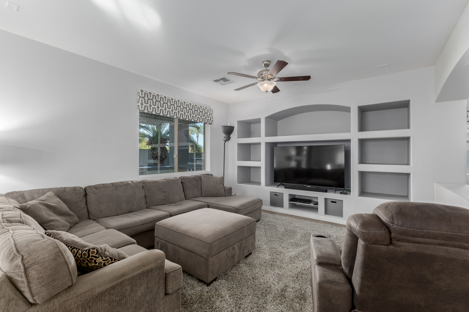 Discover this vibrant 2-story gem featuring a generous 3-car garage and inviting spaces throughout! Soaring ceilings and wood-look floors welcome you into a sizable living room that easily doubles as a fun game area. Family room offers charming wall niches, while the kitchen shines with SS appliances including double wall ovens, granite counters, a breakfast bar, ample cabinetry, and a tile backsplash. Primary bedroom offers a good night's sleep and treats you to direct balcony access. Loft is perfect for an office or creative corner. Sip your favorite beverage on the balcony, check out the backyard oasis boasting a covered patio, dry bar, built-in BBQ, firepit, shed, and a play pool ready for sunny days. This home truly has it all! Don't miss it!
