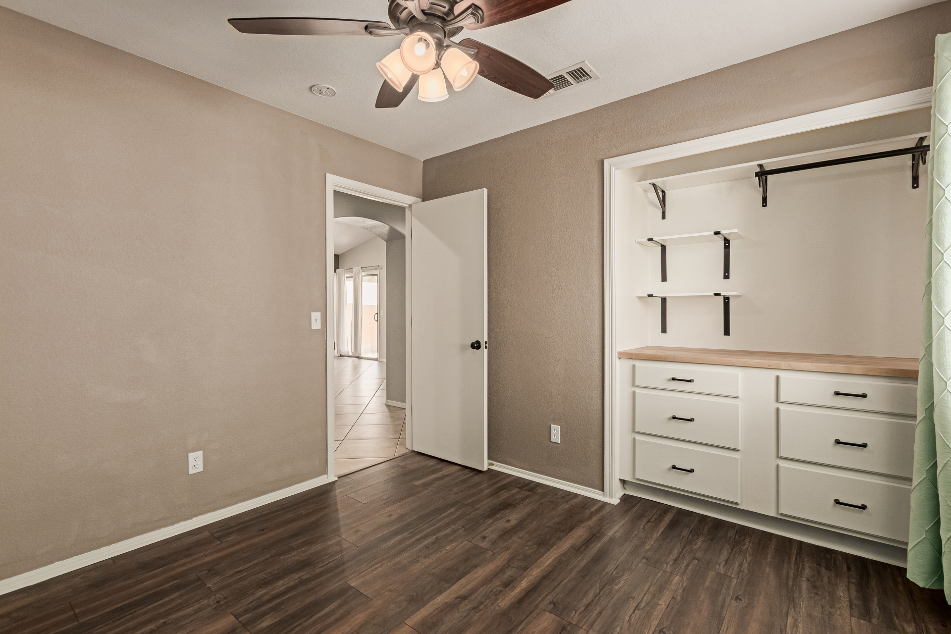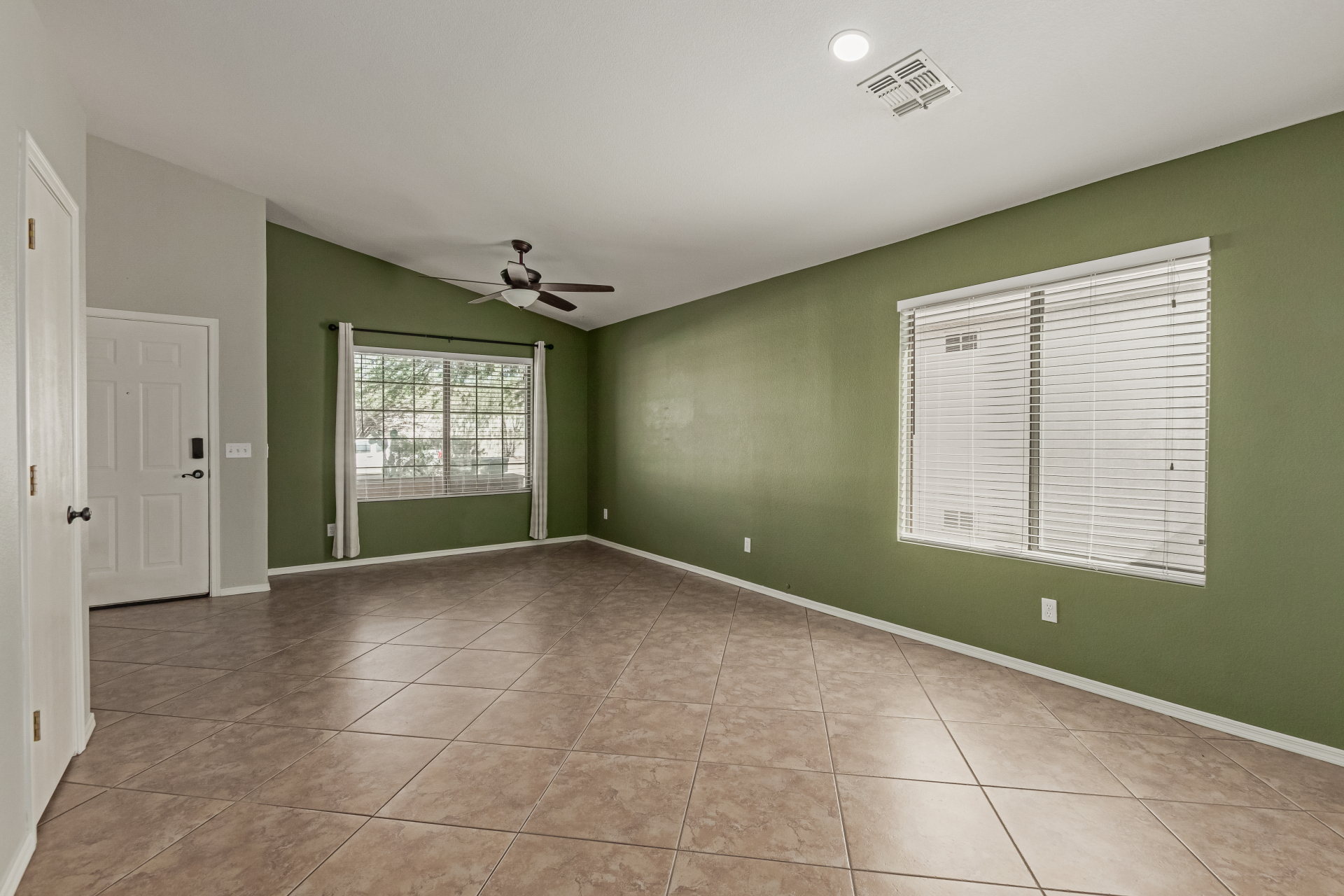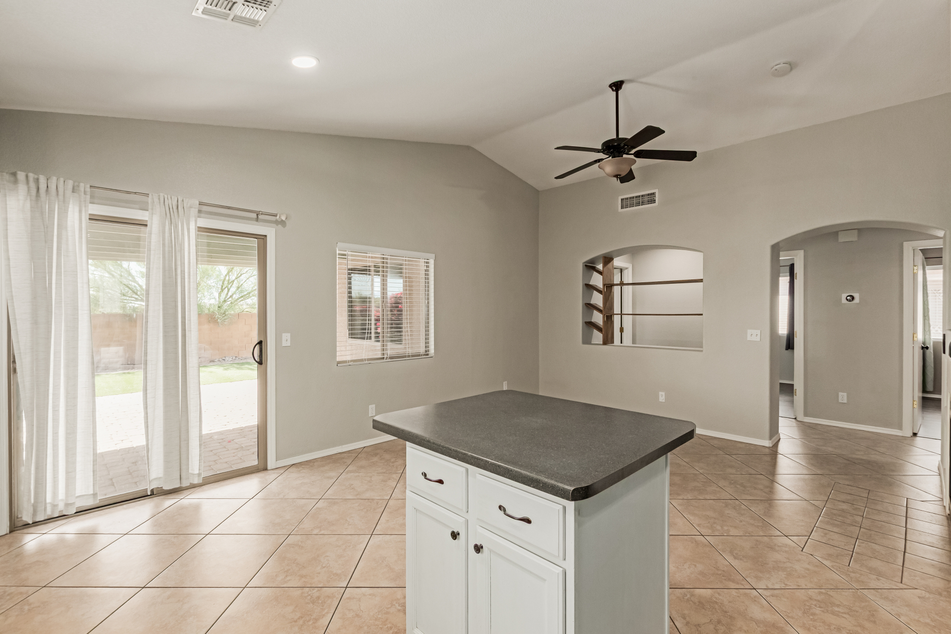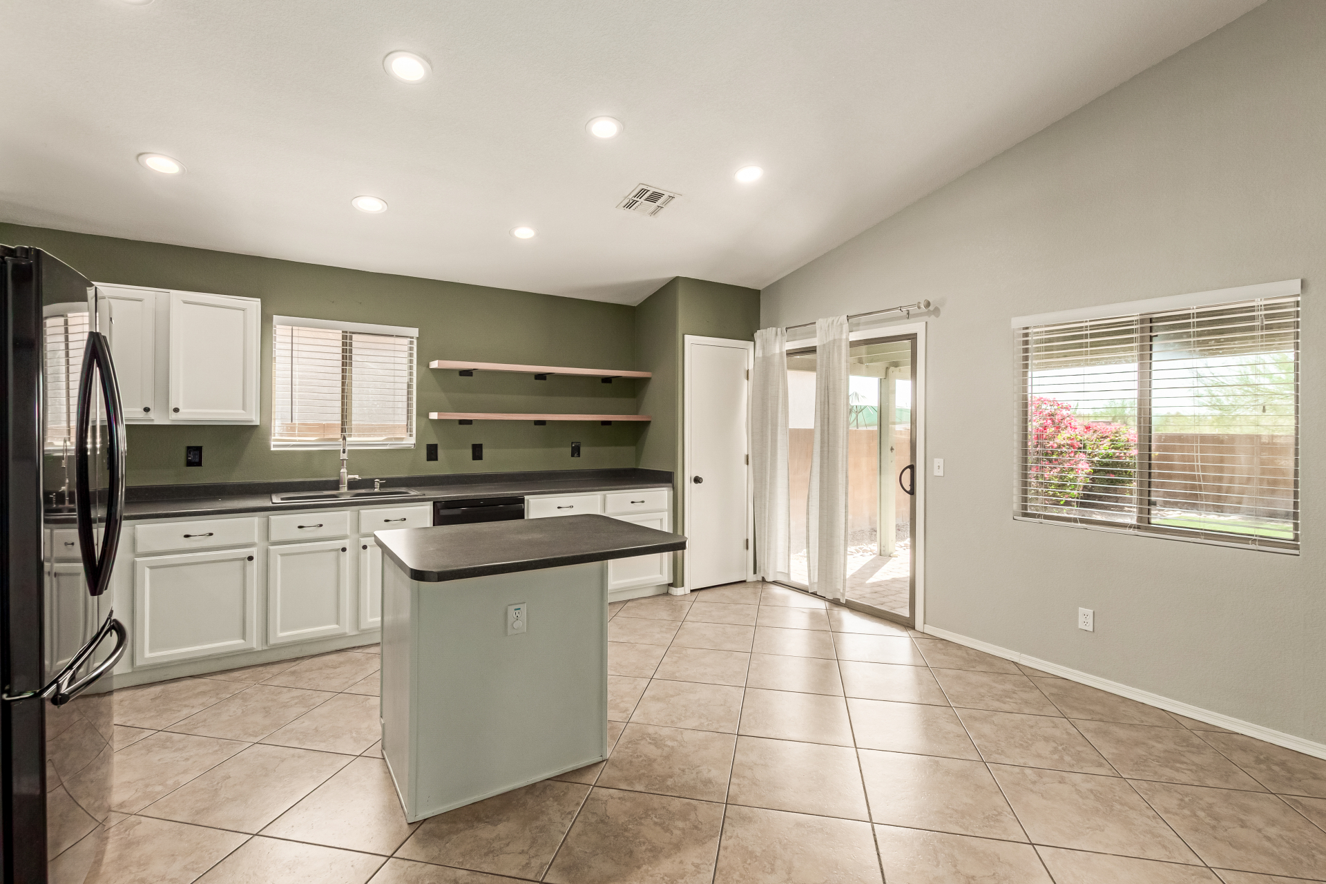 Beautifully updated 3BD/2BA home in desirable Rita Ranch! Step inside to find vaulted ceilings, modern finishes, and warm wooden built-ins and shelving throughout for both charm and functionality. The spacious floor plan includes a cozy living area with fireplace, vaulted ceilings and updated kitchen and bathroom. Enjoy outdoor living with a covered patio, landscaped backyard featuring pavers and lush artificial turf, and no rear neighbors-just peaceful open desert views behind you. Plus, a newer AC, 2-car garage, and more make this home move-in ready and full of value!