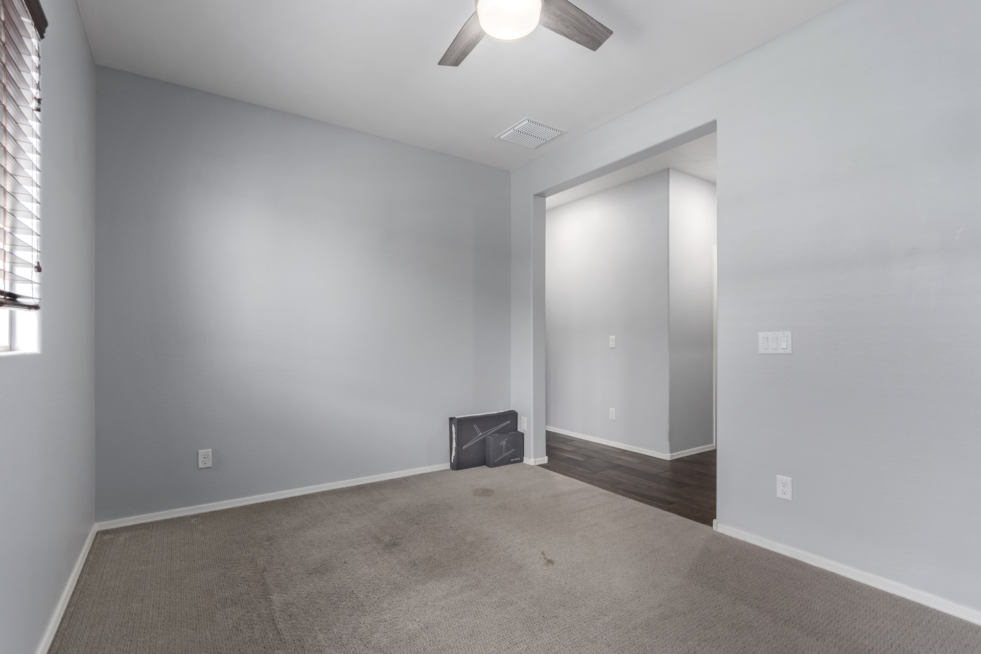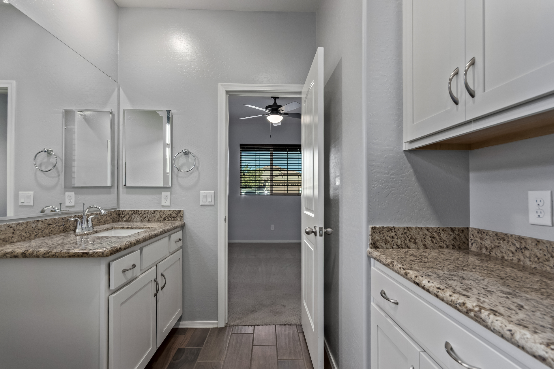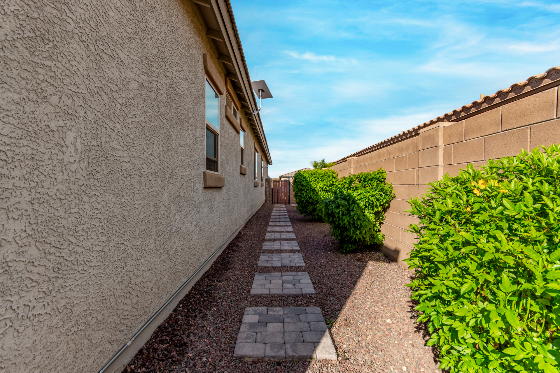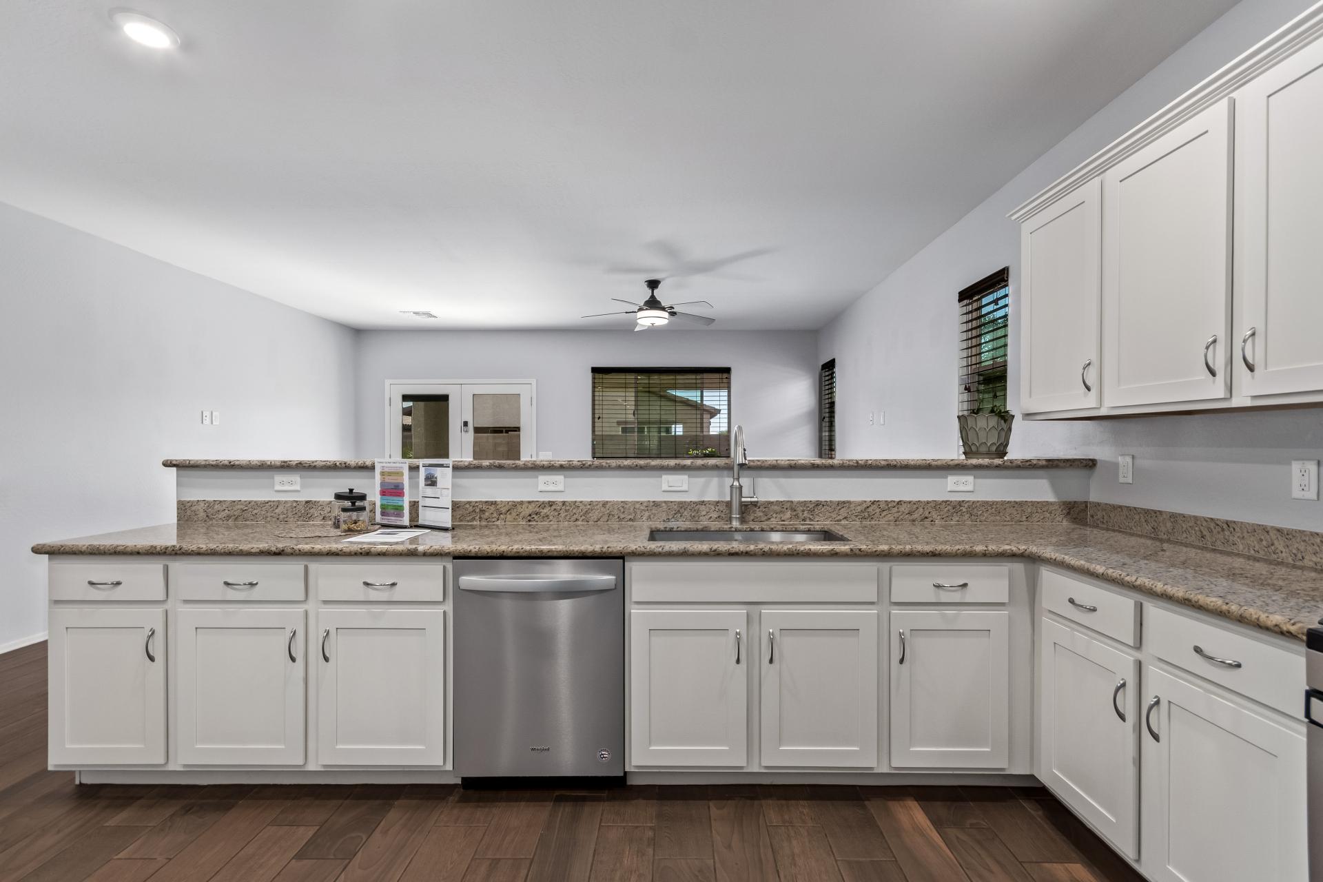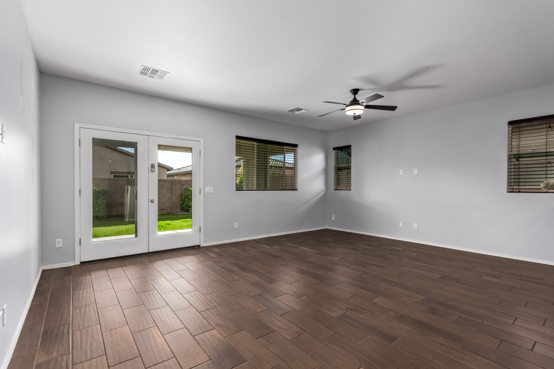 Stunning 3-bedroom, 3-bathroom home with den and formal dining/game room! Featuring elegant wood-look tile flooring, a chef-inspired kitchen with white 36-inch cabinets, granite countertops, and stainless steel appliances. Energy-efficient upgrades include tankless water heater, spray foam insulation, dual-flush toilets, and LED lighting throughout. The desirable north/south-facing lot offers a south-facing backyard with a relaxing hot tub, gas stub for an outdoor kitchen, and plenty of space for a future pool or play area. Move-in ready and perfect for Arizona living.