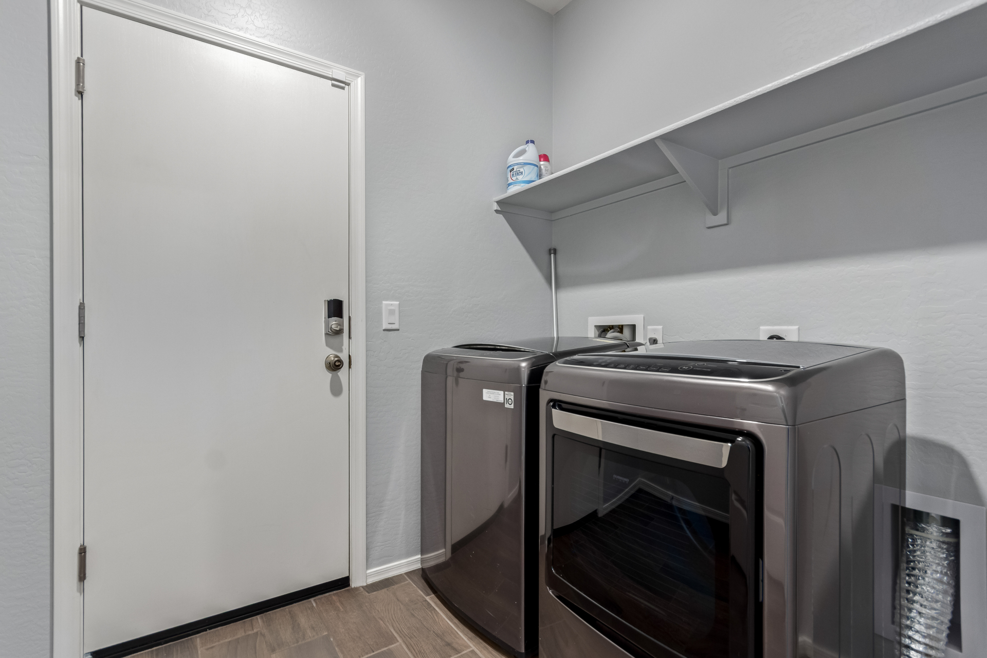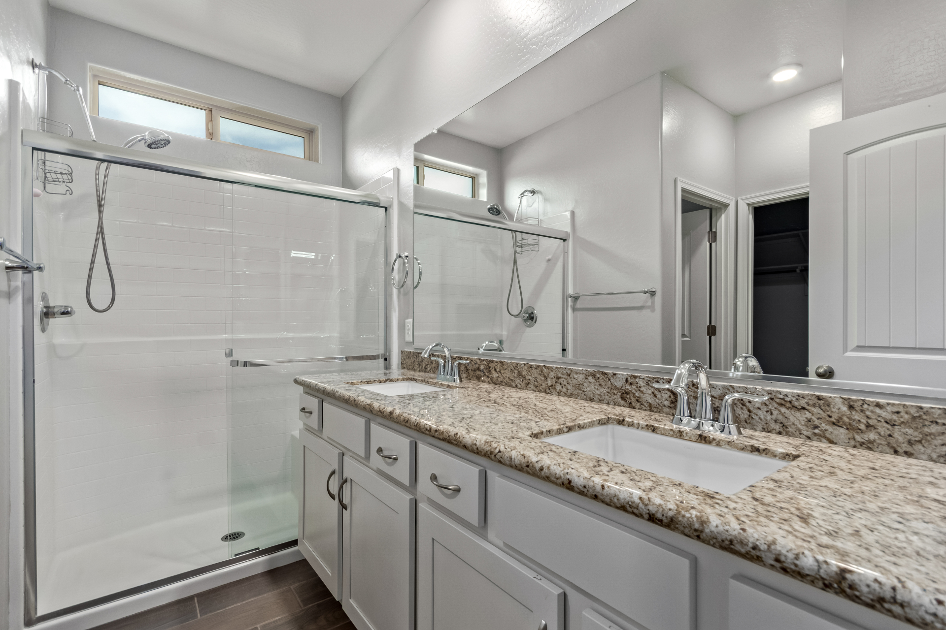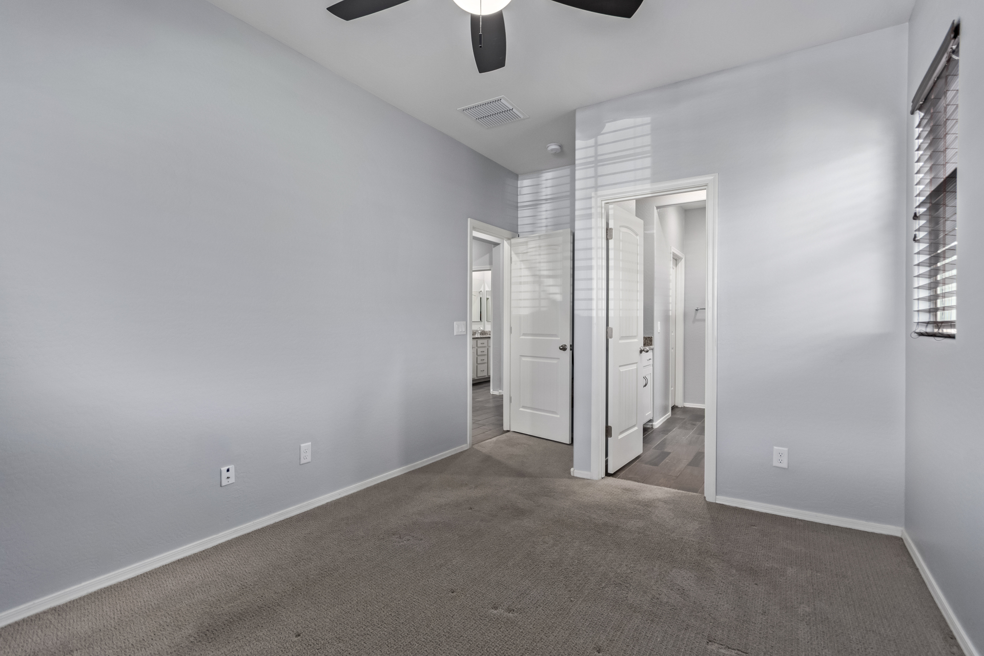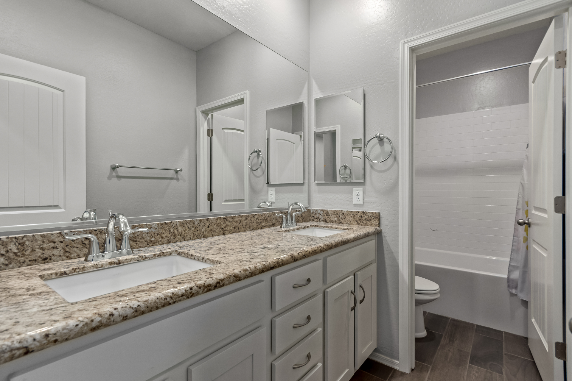 Stunning 3-bedroom, 3-bathroom home with den and formal dining/game room! Featuring elegant wood-look tile flooring, a chef-inspired kitchen with white 36-inch cabinets, granite countertops, and stainless steel appliances. Energy-efficient upgrades include tankless water heater, spray foam insulation, dual-flush toilets, and LED lighting throughout. The desirable north/south-facing lot offers a south-facing backyard with a relaxing hot tub, gas stub for an outdoor kitchen, and plenty of space for a future pool or play area. Move-in ready and perfect for Arizona living.