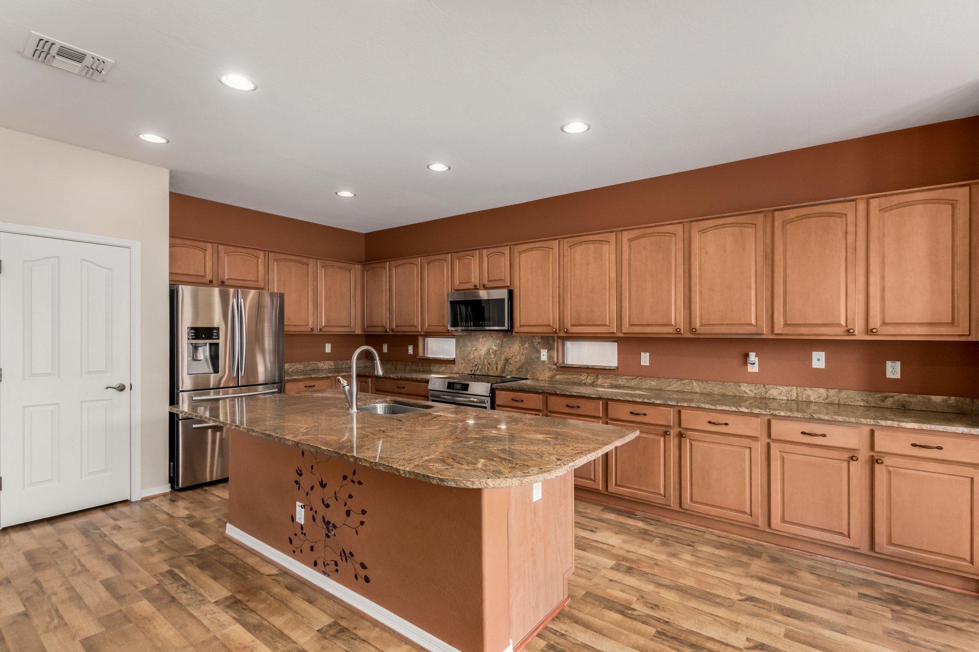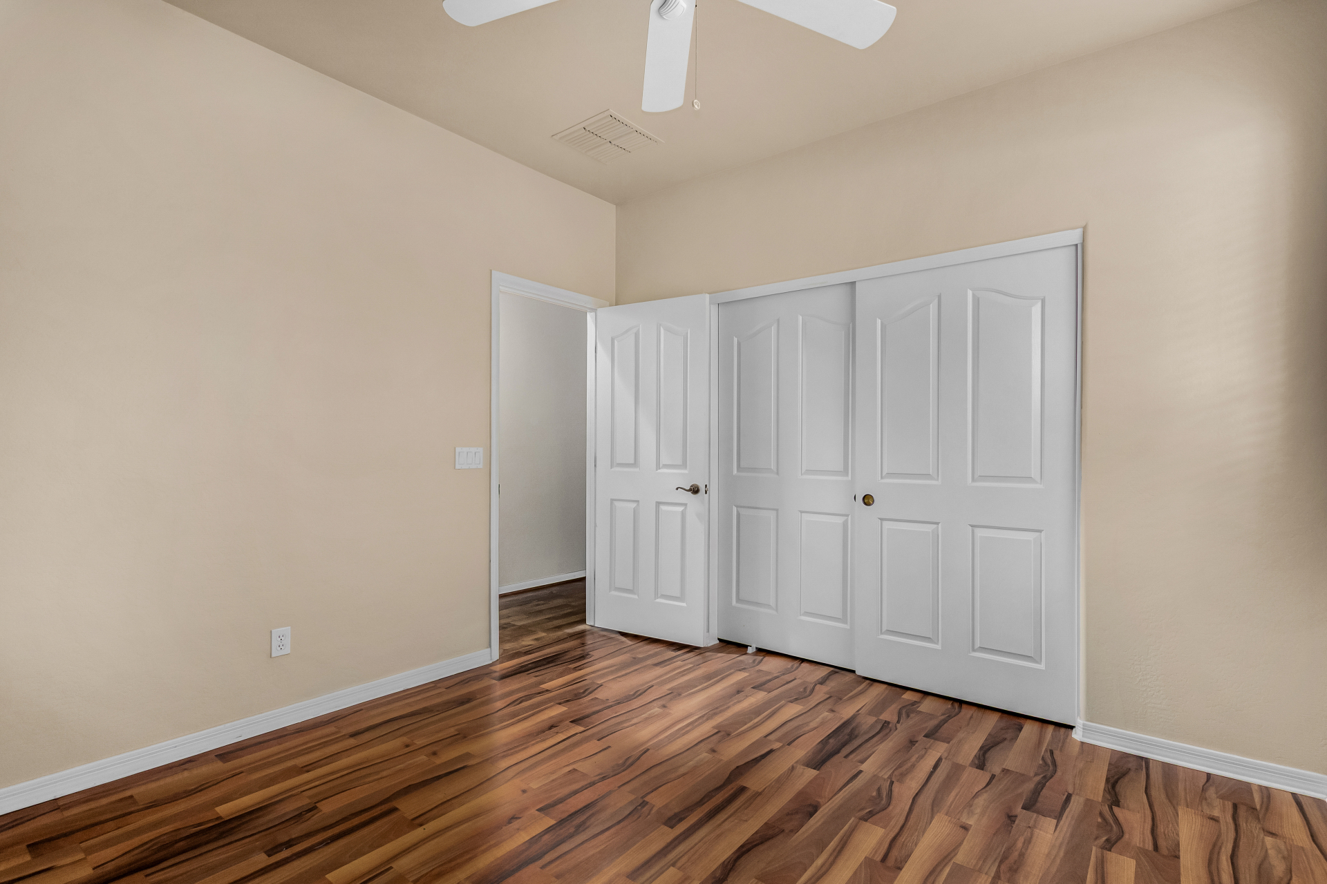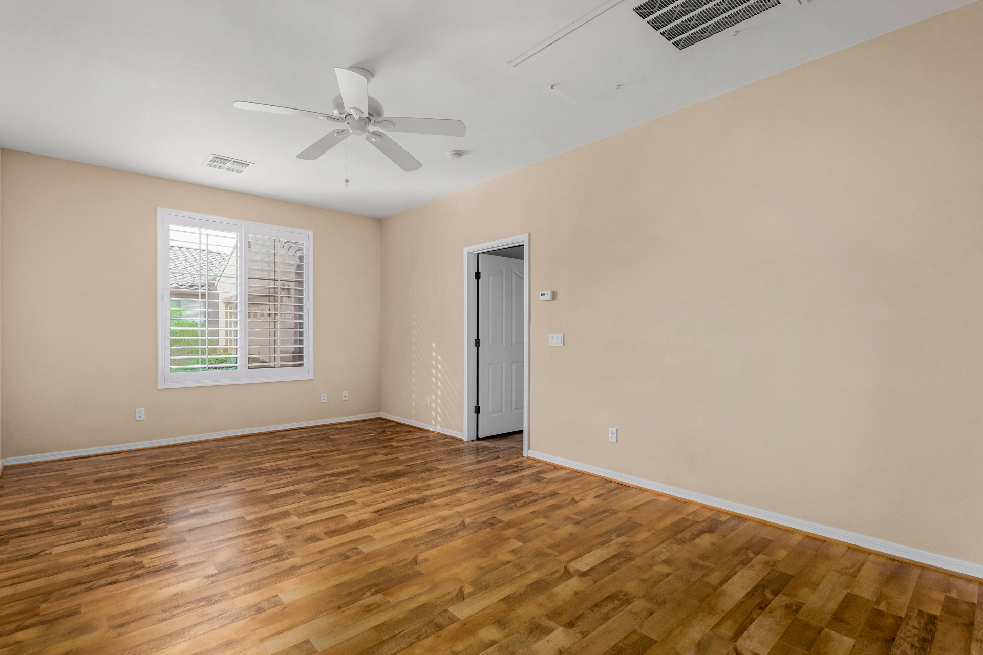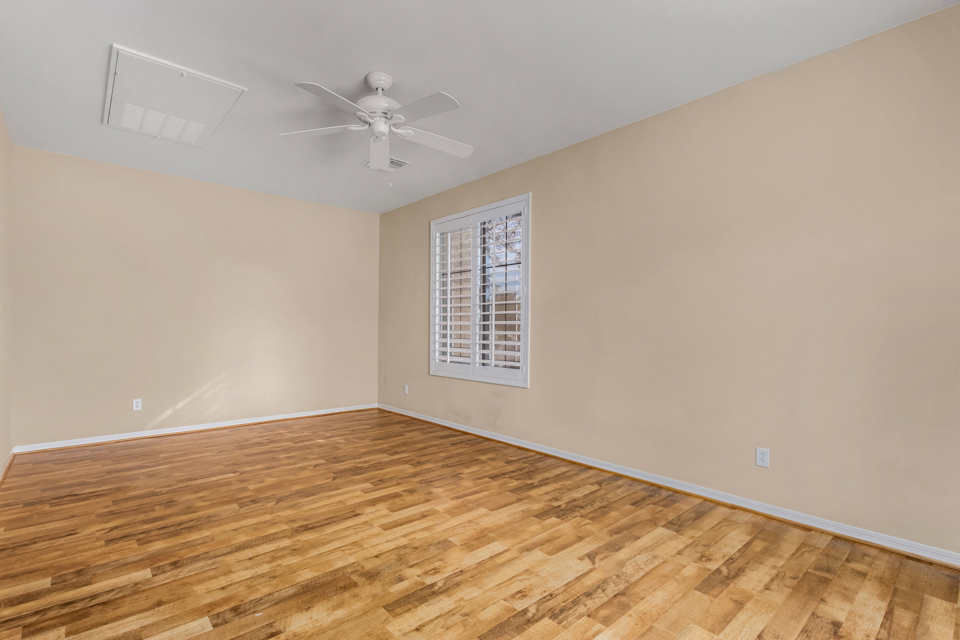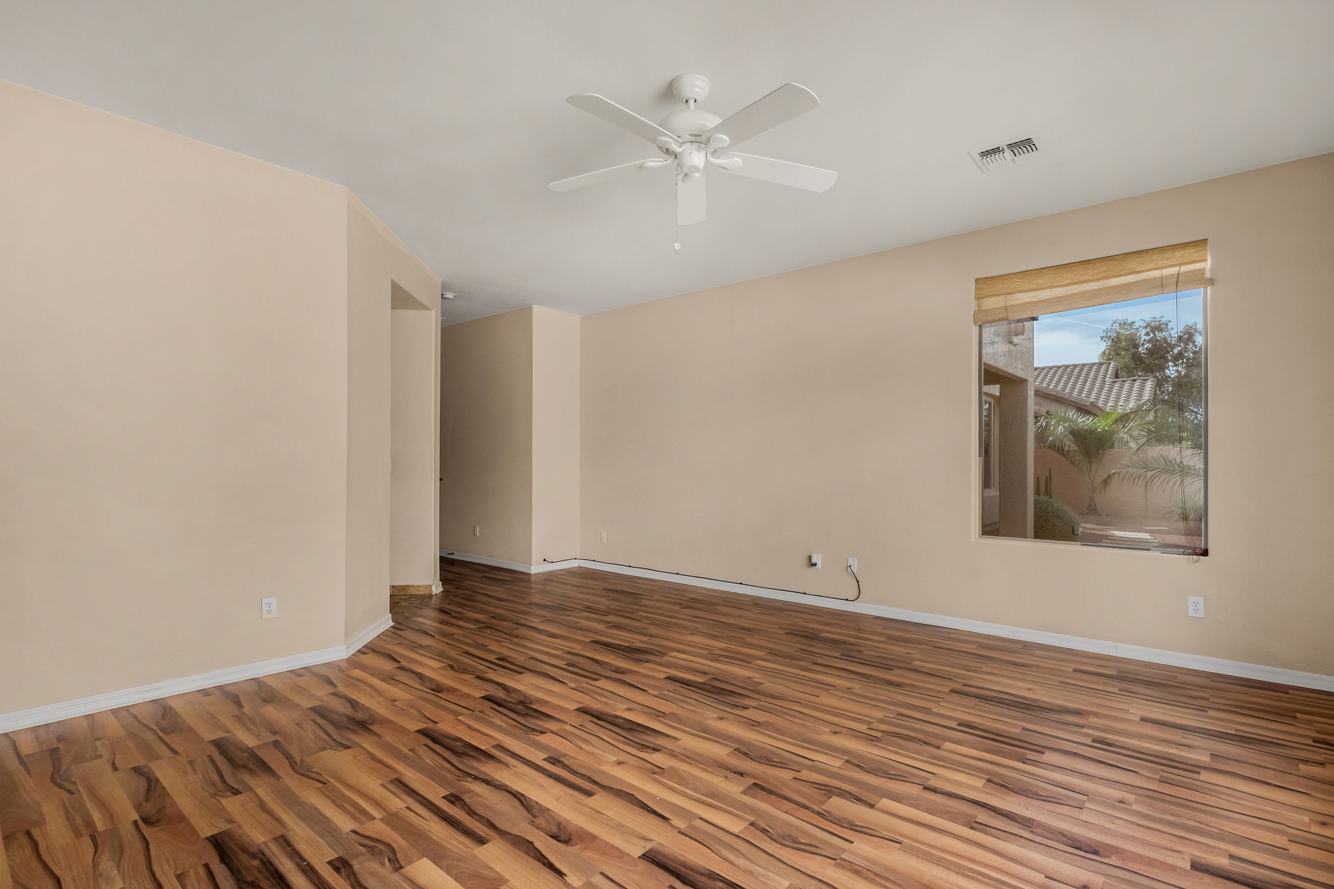 LOCATION + PRIVACY = PARADISE! This is an exceptional home in a great community on a beautiful lot sided by 2 parks~Desirable N/S lot~Lightly lived in, lovely well cared for, 3 bedroom, 2 bath & huge bonus room that can be 4th bedroom/office or games room, has it's own A/C~Large open bright kitchen, lots of maple cabinets & custom granite counters, big island, stainless appliances including a new induction/air fryer combination oven & pantry~Custom tile mosaic in foyer~Neutral décor~Open floor plan~Extended length garage~Easy maintenance desert landscaping & stucco block walls surround the refreshing Pebble finish in-ground pool~Large covered back patio~Freshly painted exterior~Close to all amenities, shopping, restaurants, Costco, sporting events & 303~True pride of Ownership, Must see!