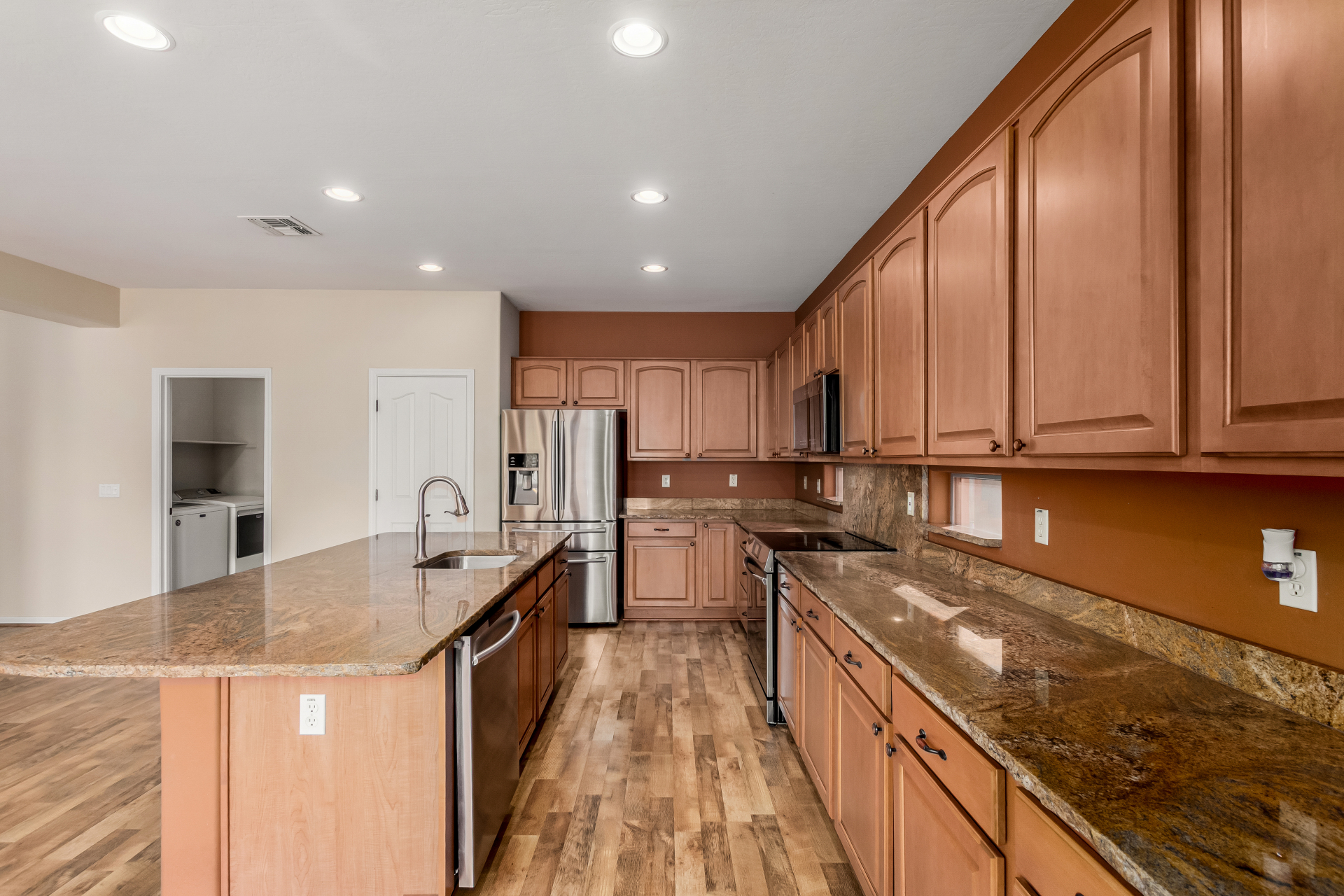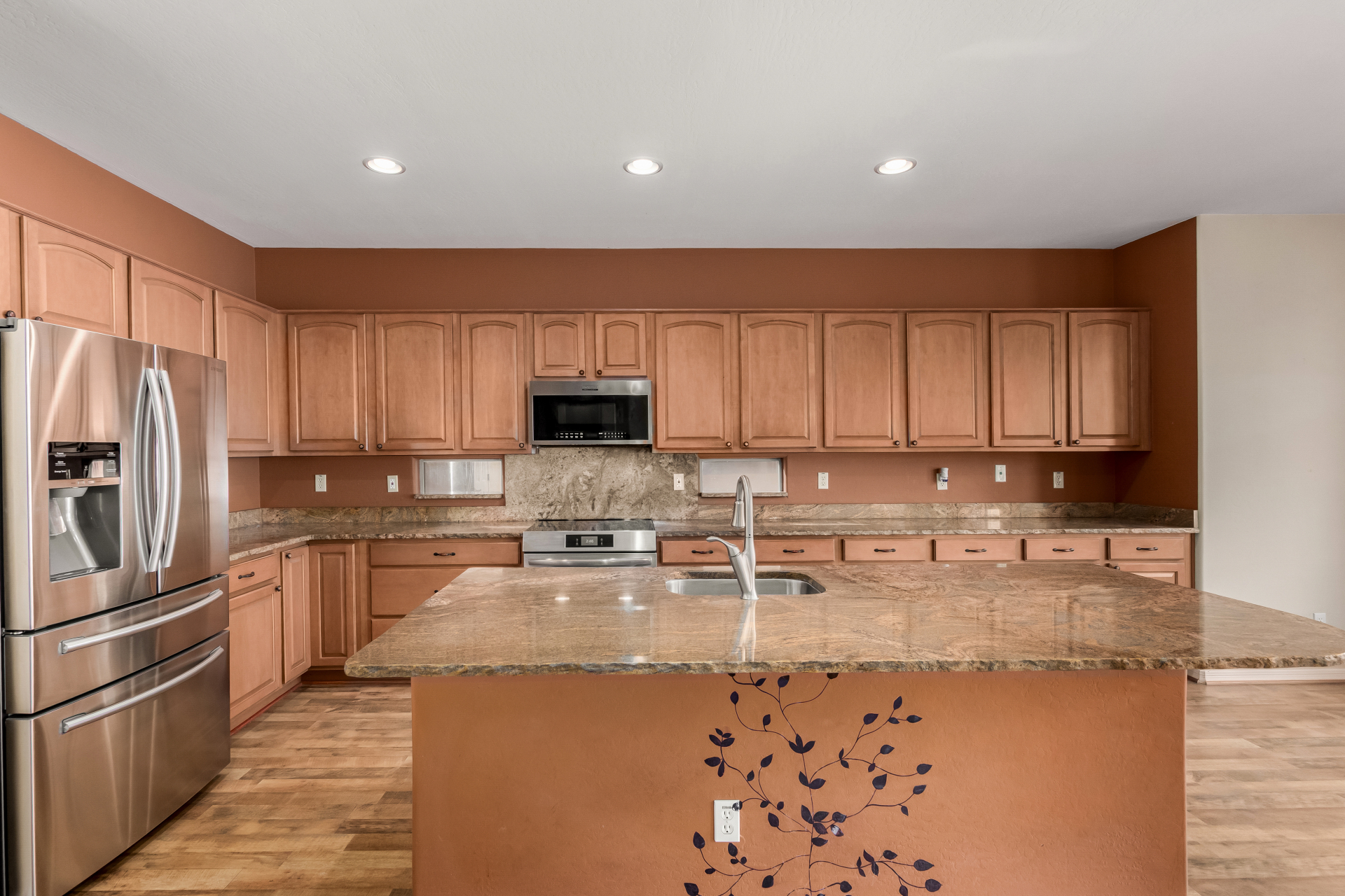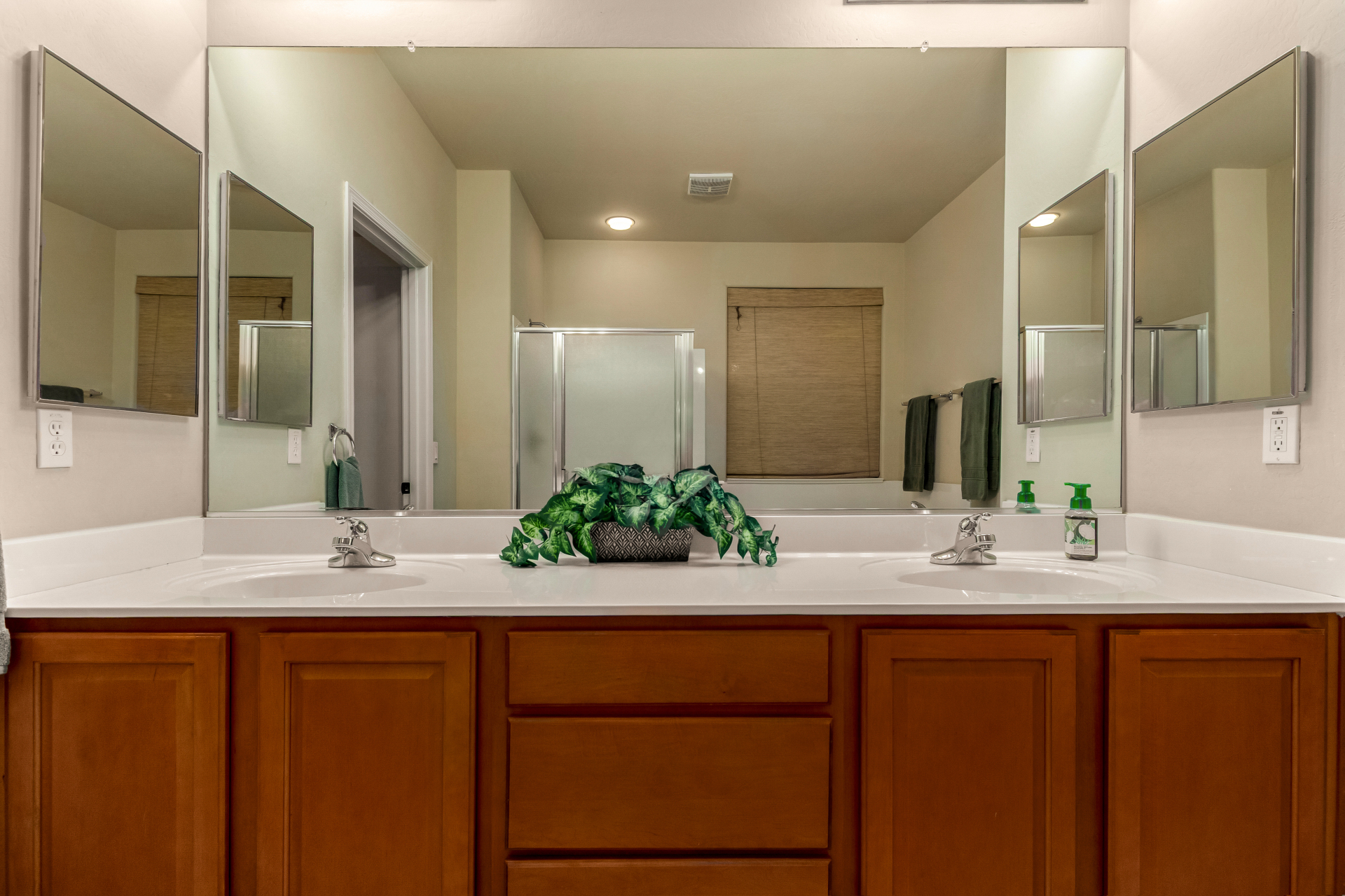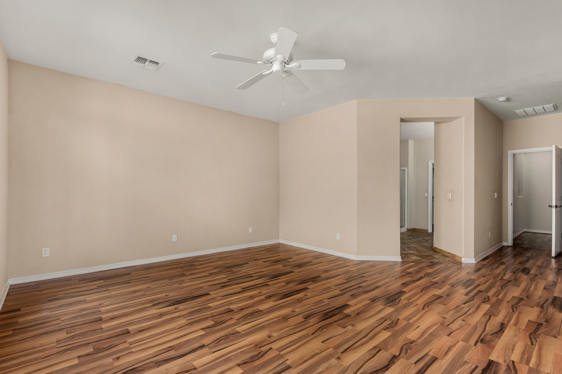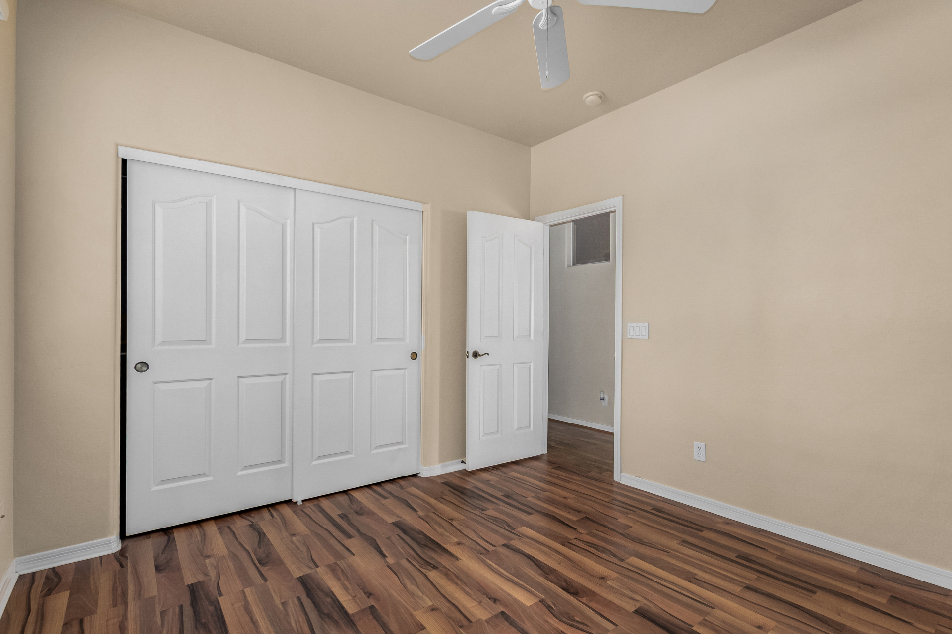 LOCATION + PRIVACY = PARADISE! This is an exceptional home in a great community on a beautiful lot sided by 2 parks~Desirable N/S lot~Lightly lived in, lovely well cared for, 3 bedroom, 2 bath & huge bonus room that can be 4th bedroom/office or games room, has it's own A/C~Large open bright kitchen, lots of maple cabinets & custom granite counters, big island, stainless appliances including a new induction/air fryer combination oven & pantry~Custom tile mosaic in foyer~Neutral décor~Open floor plan~Extended length garage~Easy maintenance desert landscaping & stucco block walls surround the refreshing Pebble finish in-ground pool~Large covered back patio~Freshly painted exterior~Close to all amenities, shopping, restaurants, Costco, sporting events & 303~True pride of Ownership, Must see!