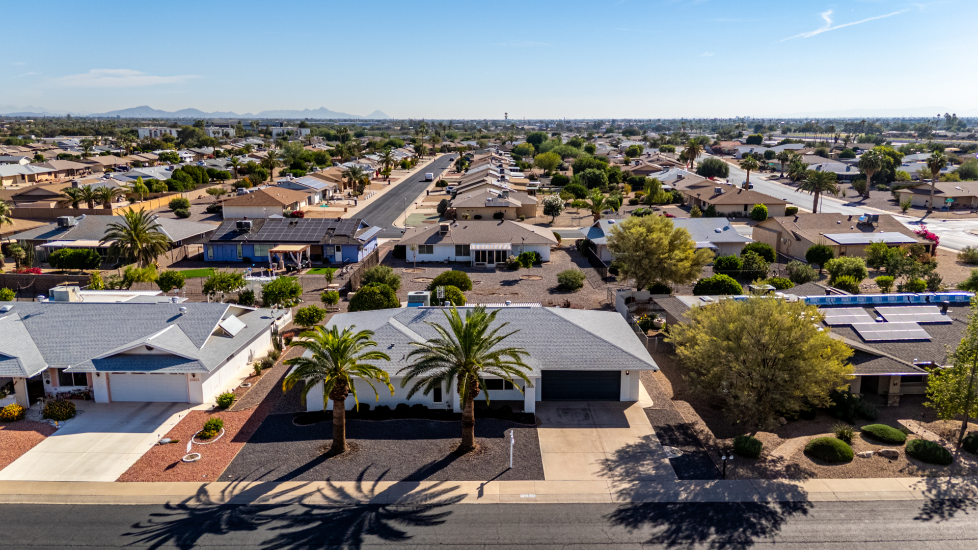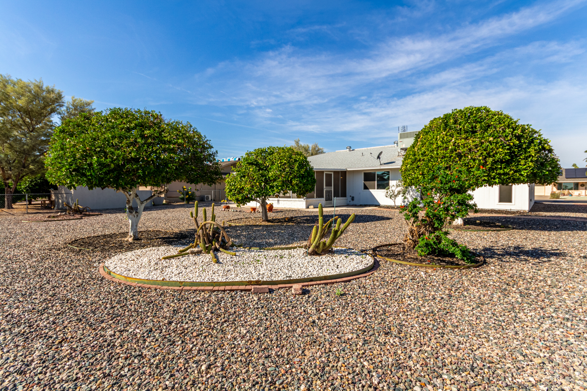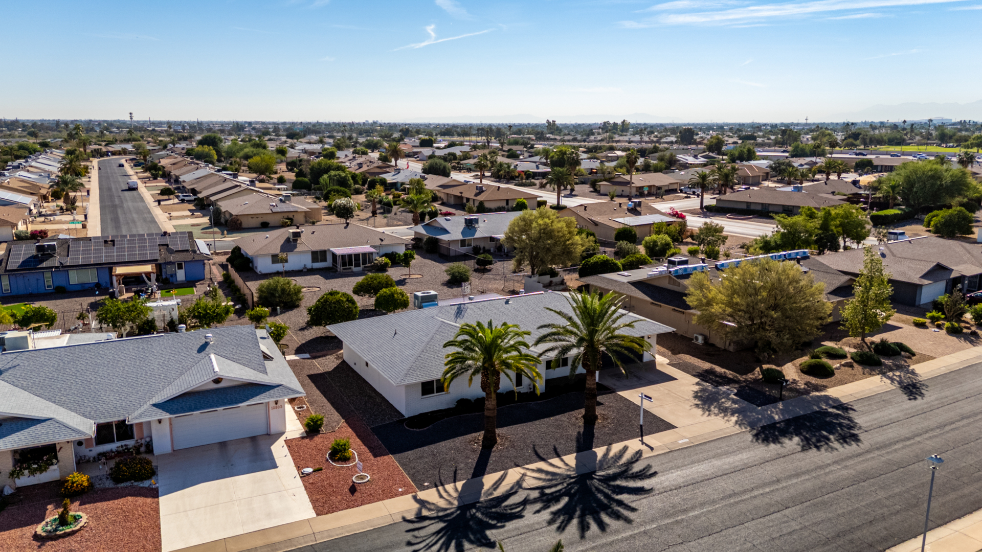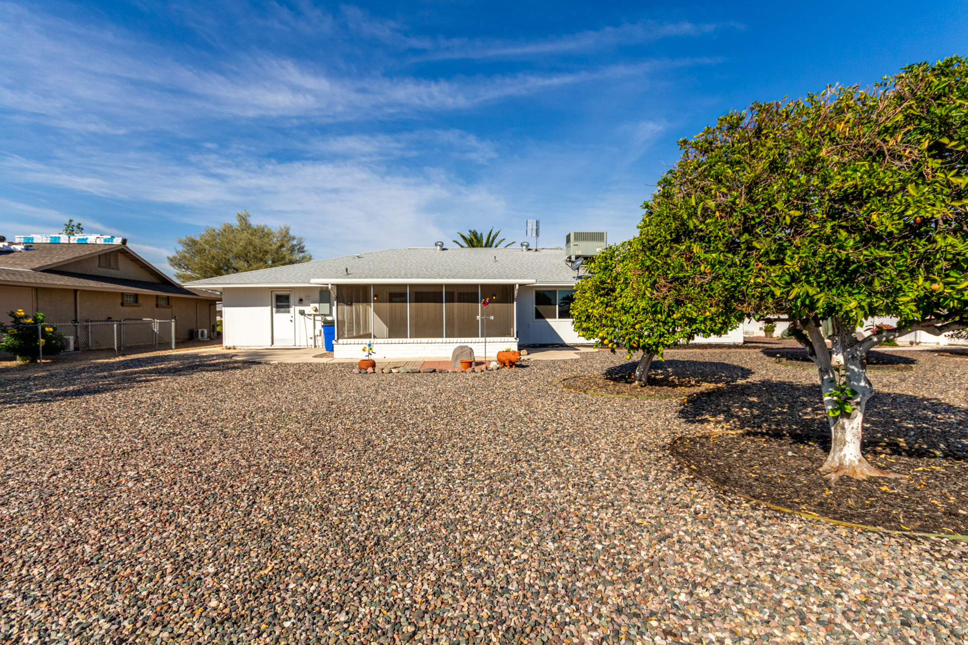 Discover *MODERN LIVING in the heart of Sun City! This stunning FULLY REMODELED 3 bed 2 bath home *Annapolis floorplan offering *CONTEMPORARY CHARM and comfort across 2060sq' of thoughtfully designed space. Enjoy the elegance of *LUXURY VINYL PLANK FLOORING, paired with an *OPEN CONCEPT LAYOUT with an attached *ARIZONA ROOM that's perfect for entertaining. The kitchen boasts *SS APPLIANCES, *QUARTZ COUNTERTOPS, backyard views, making it an entertainers dream. Relax in the spacious primary suite located in the rear of the home with a spa inspired bathroom and walk in closet! 2 bedroom is down the long hallway toward the front of the home. Large picture window allows for extra sunlight and privacy from the other bedrooms.