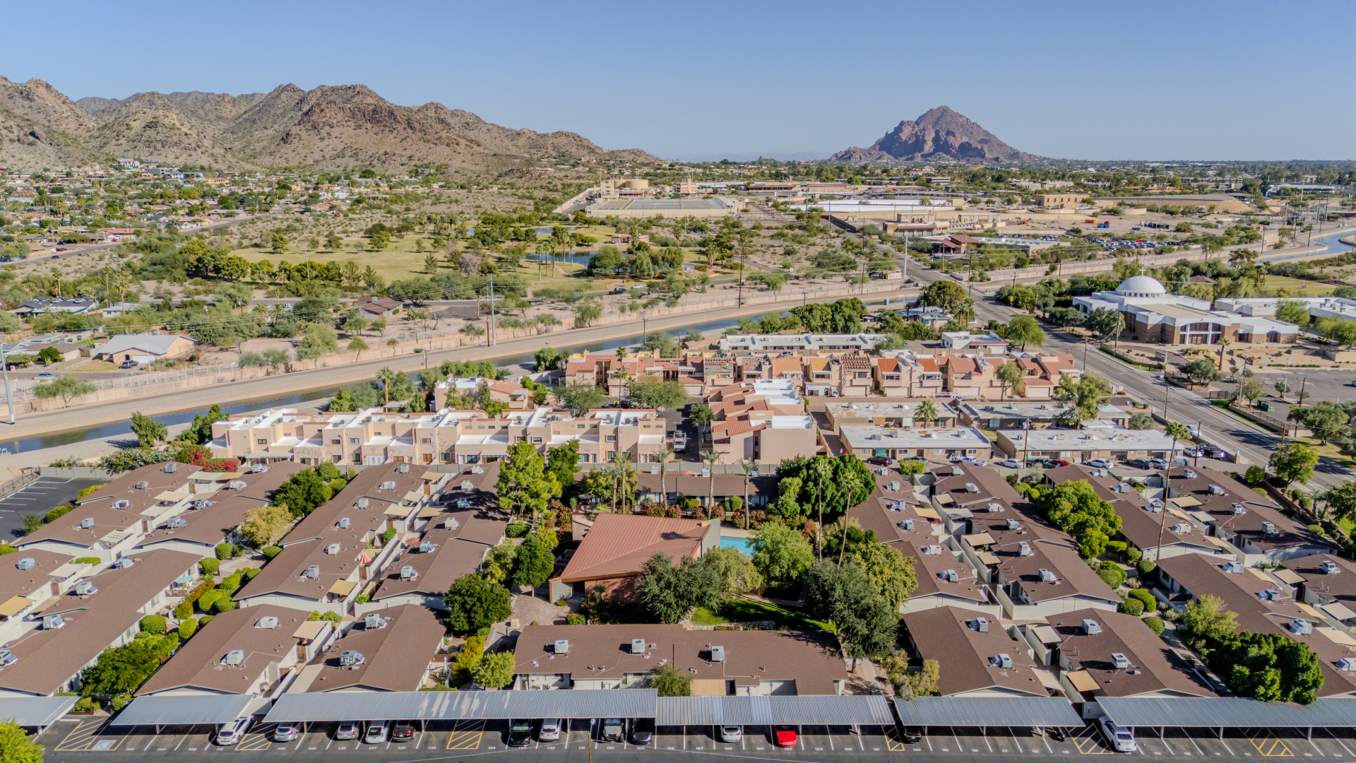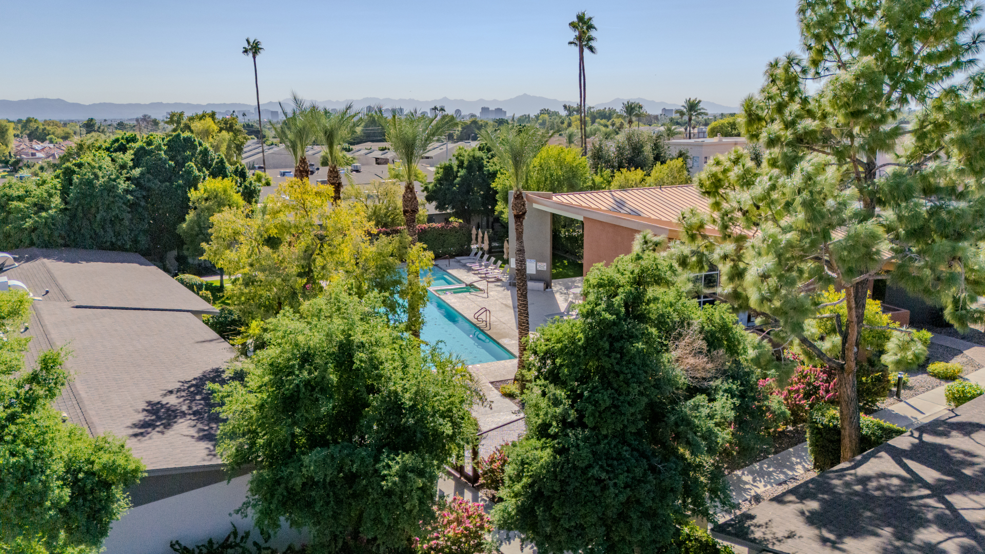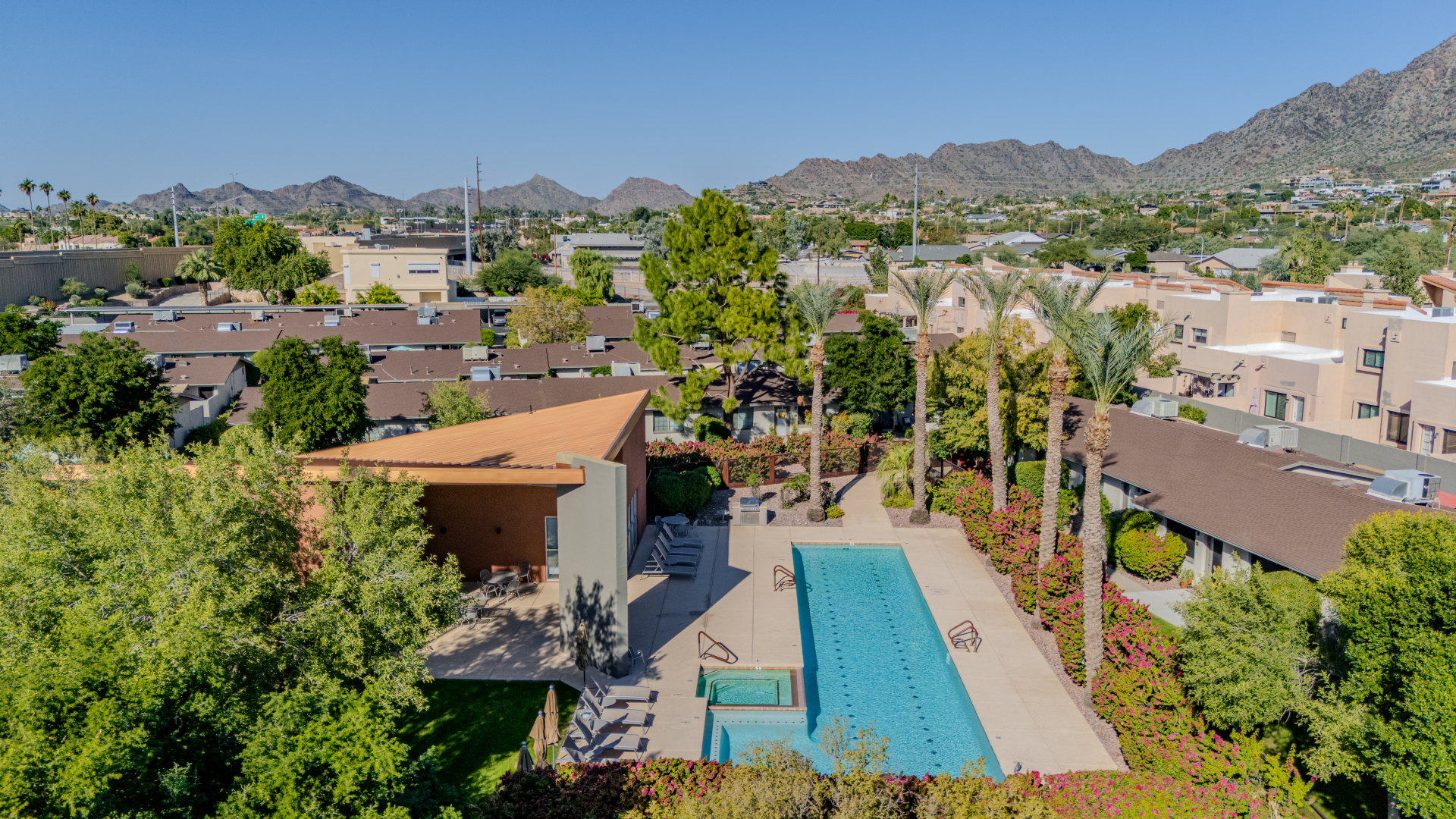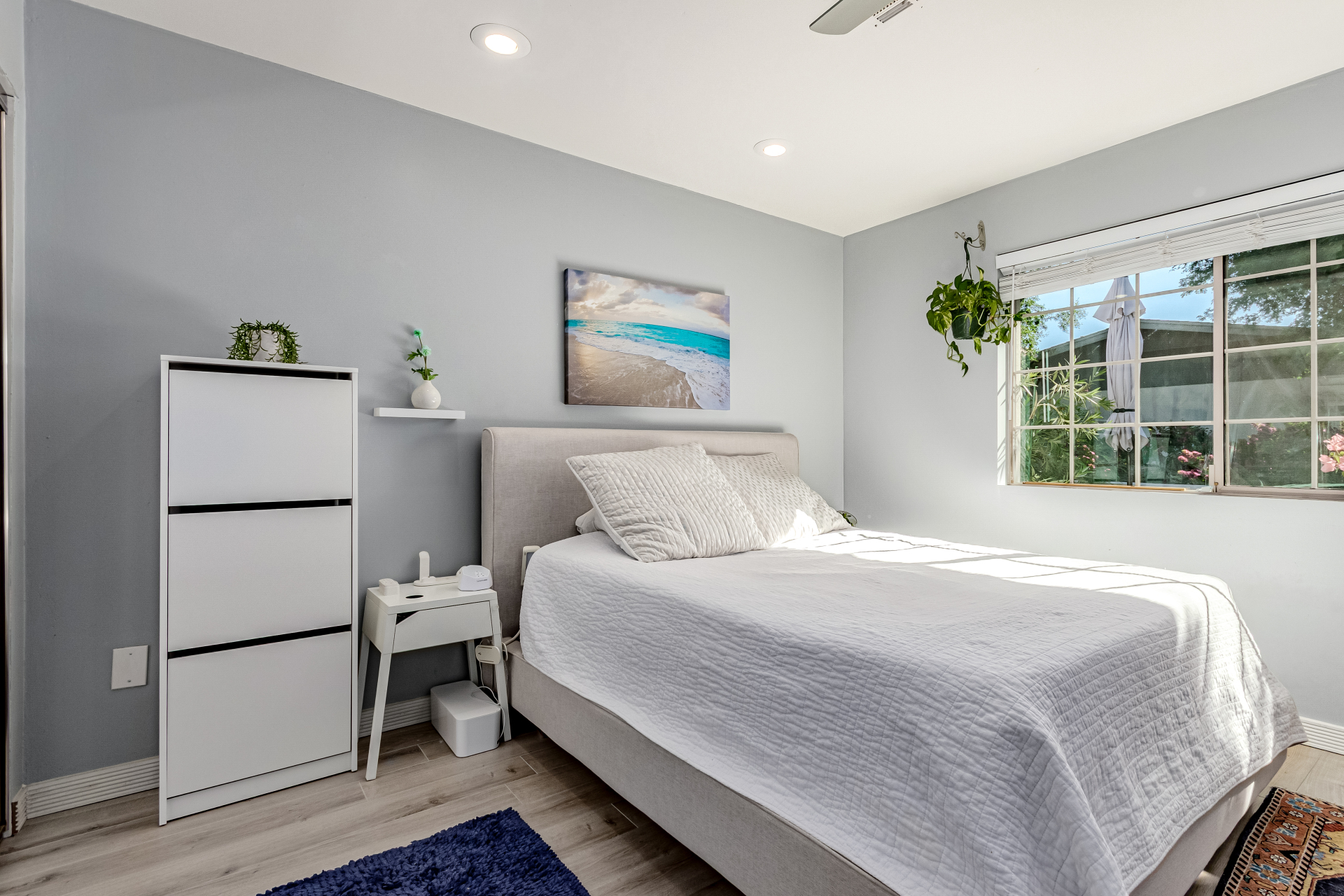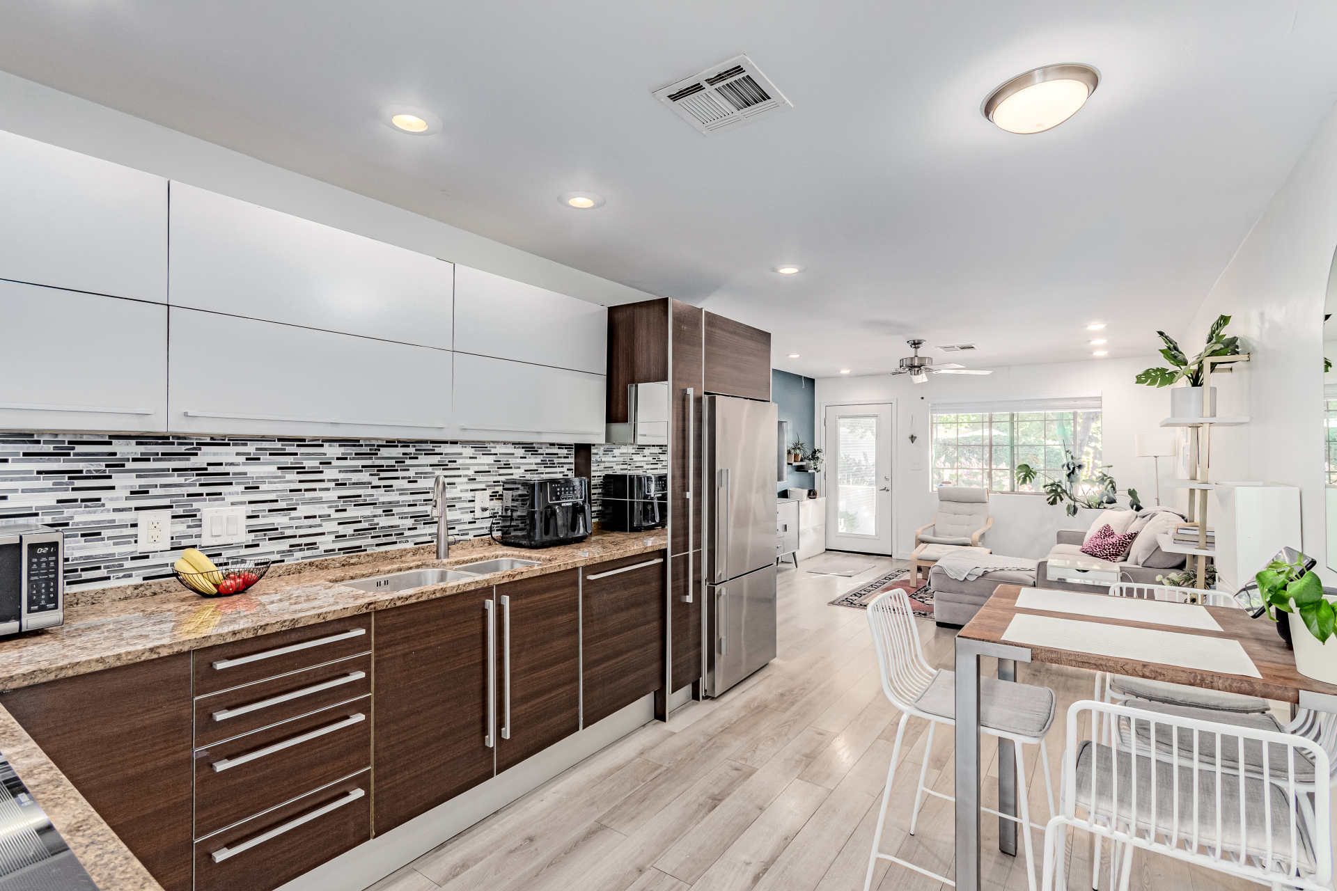 Discover all the charm of this lovely 2-bedroom/1-bathroom home! The vibrant landscape and cozy front patio are just the beginning. Inside, you'll find sizable living spaces with wood-look flooring, recessed lighting, abundant natural light, and stylish tones throughout, creating a cozy ambiance. The bright kitchen showcases ample cabinetry, tile backsplash, granite countertops, and built-in appliances. You'll love the spacious bedrooms, each with a closet with mirrored doors. Out back, you'll have a cozy patio to enjoy your morning brew and quiet evenings. Visit the community's pool, spa, tennis court, clubhouse, fitness center, and other amenities to fill your days with fun! Welcome home!