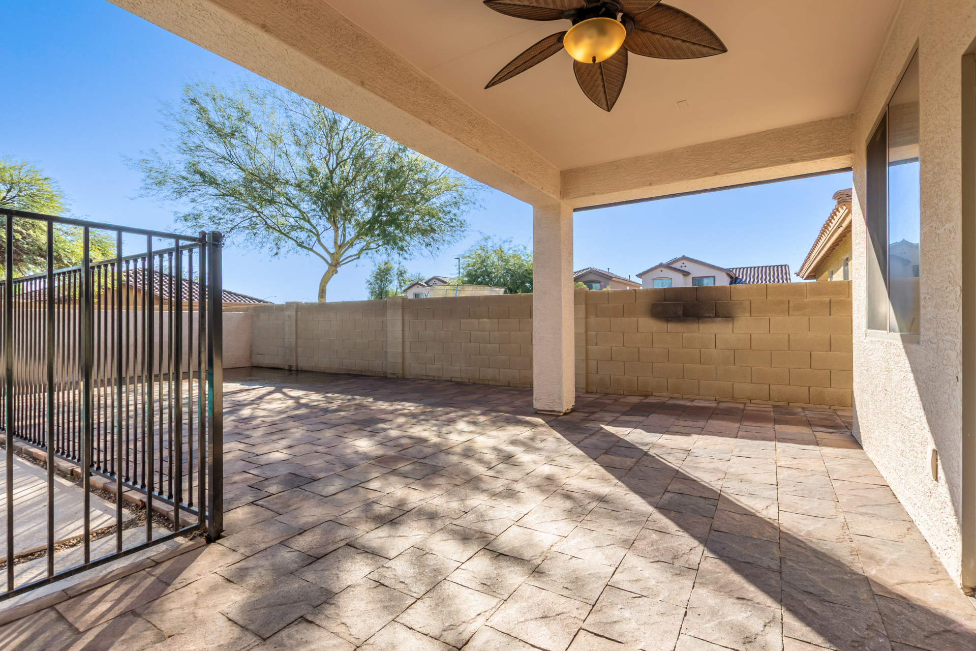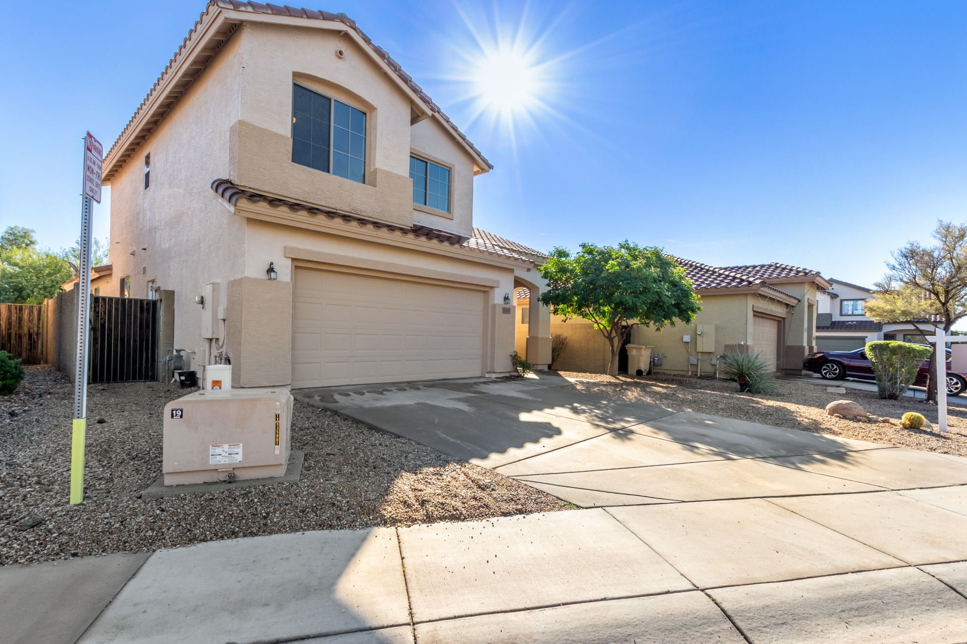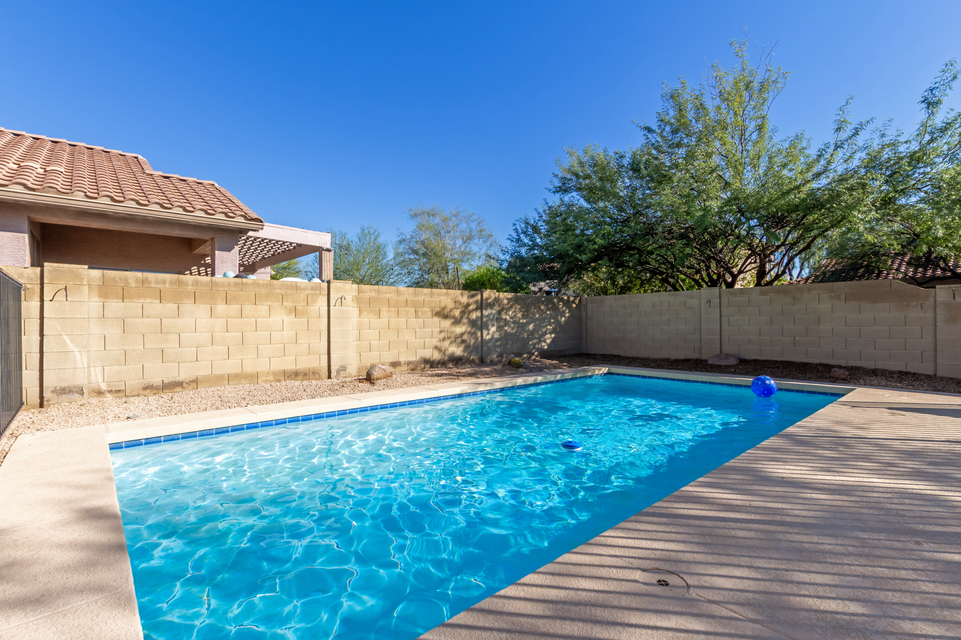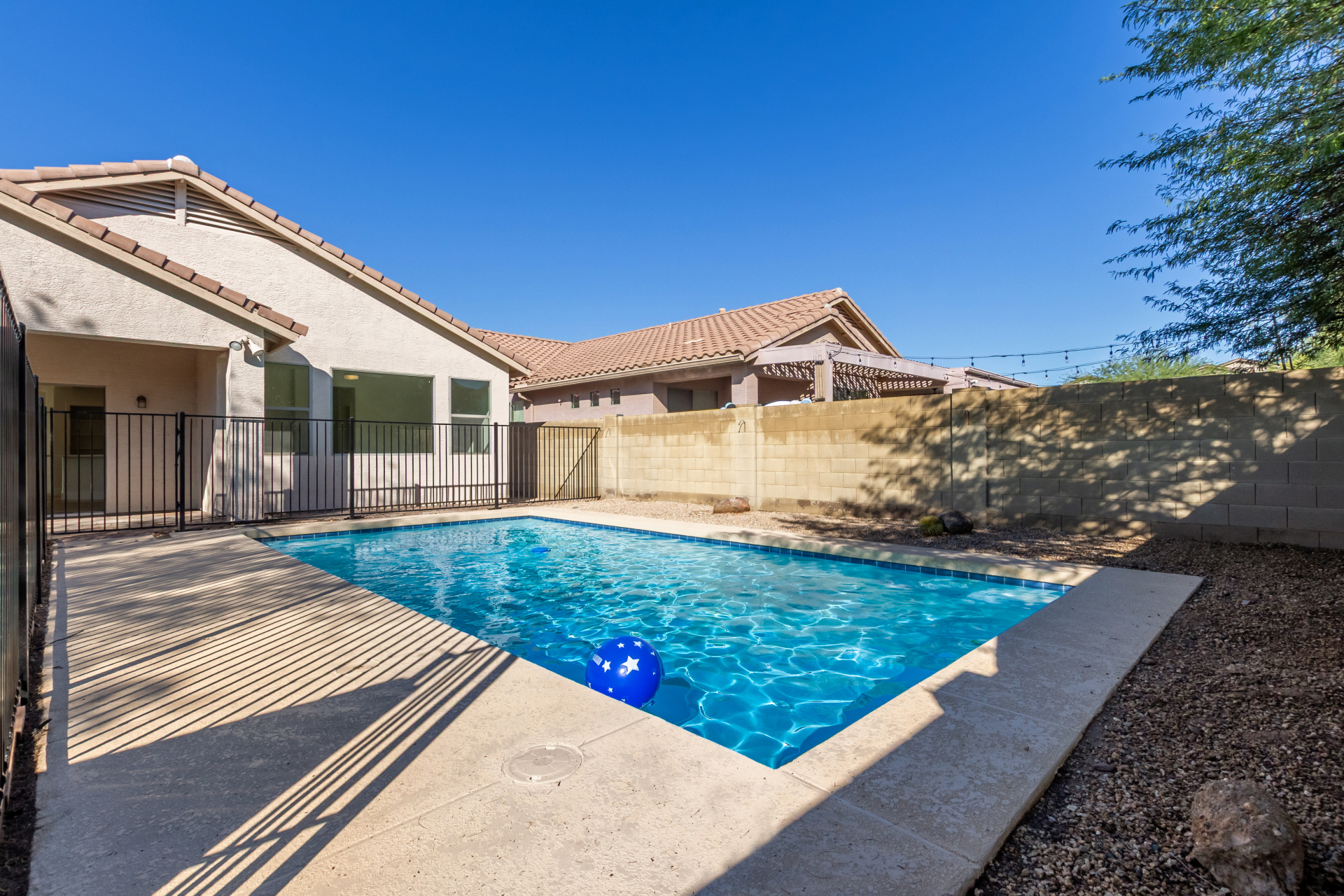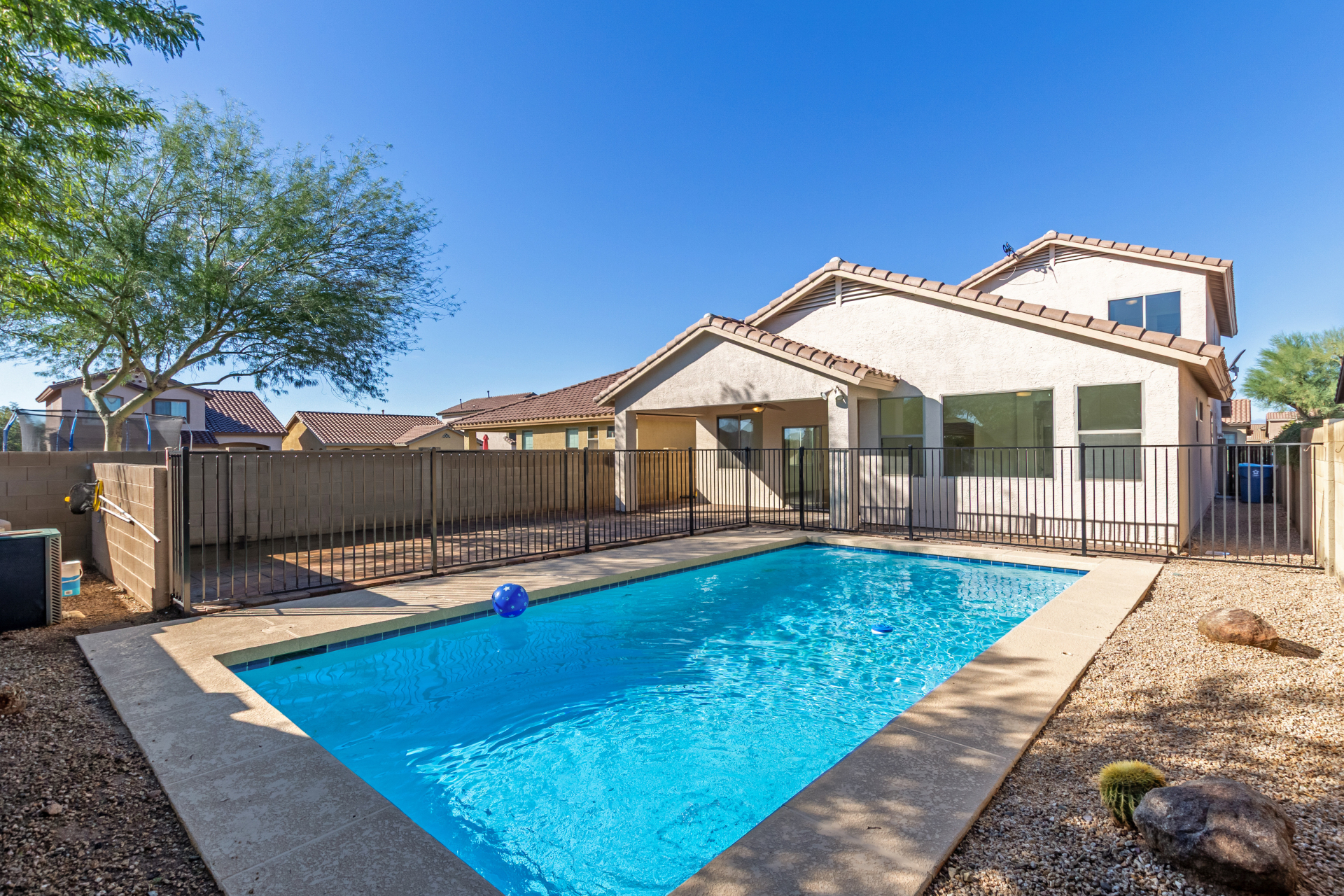 Nestled in Anthem on a cul-de-sac street, this is a spacious 4 bedroom w/den home with a pool. East facing backyard is very private with lots of shady trees. Plenty of space inside and out w/neutral colors. Primary bedroom and office is downstairs with 3 bedrooms and full bath upstairs. Upgraded stainless appliances (2020 and 2023) New A/C 2022) Efficient pool pump and refurbished cool decking(2023) Newly laid LVP and tile in baths (2025) Fresh paint (2025) Loads of walking/running/biking trails. A short distance to Anthem Elementary, Community Center, Anthem Park w/lake, skate park, baseball fields and it's just around the corner from Boulder Creek HS. Experience the charm of Anthem's ''Living in Abundance''