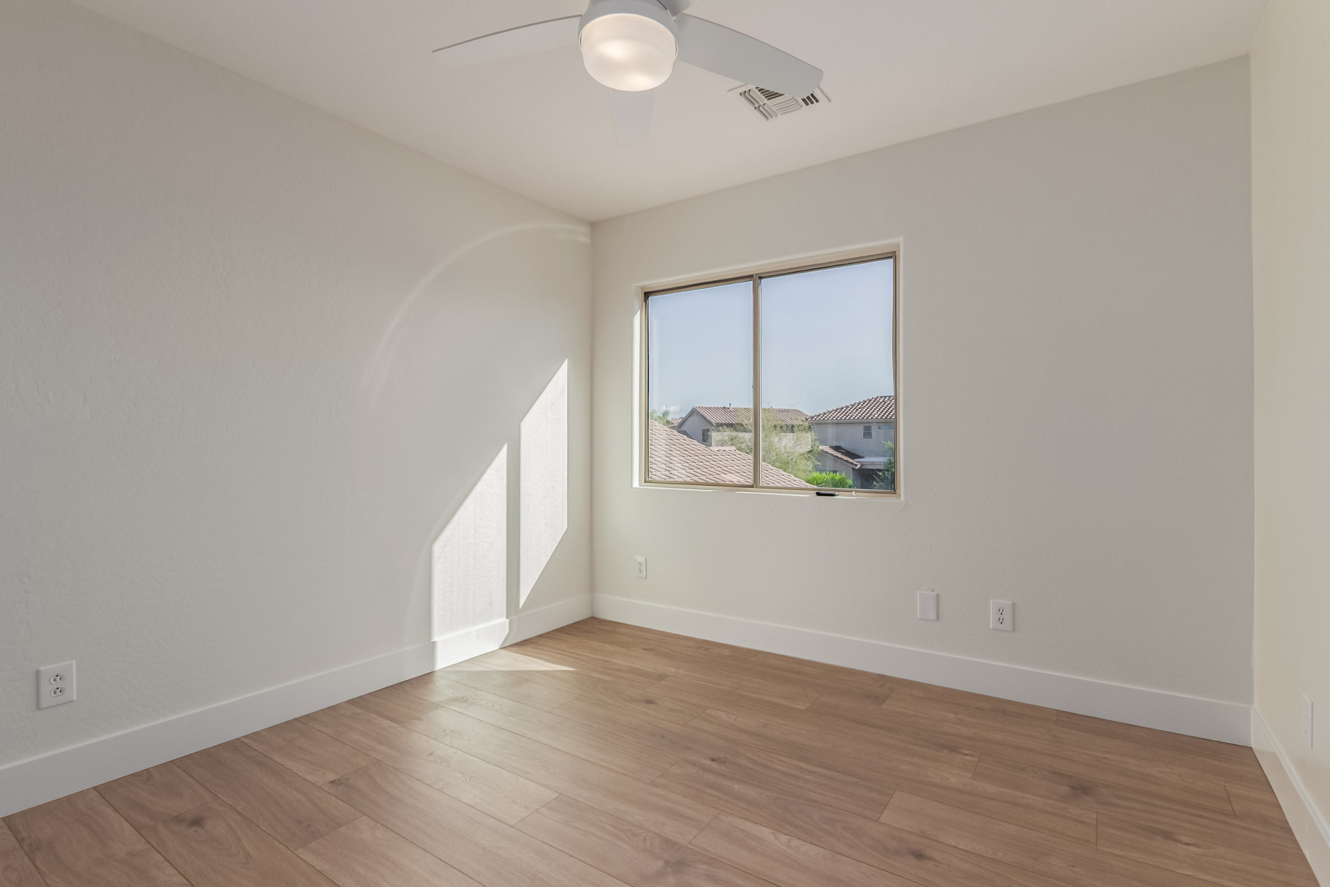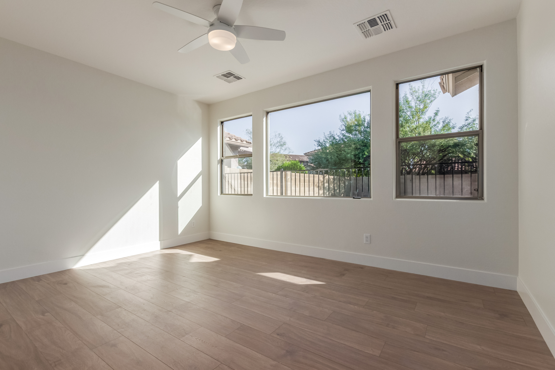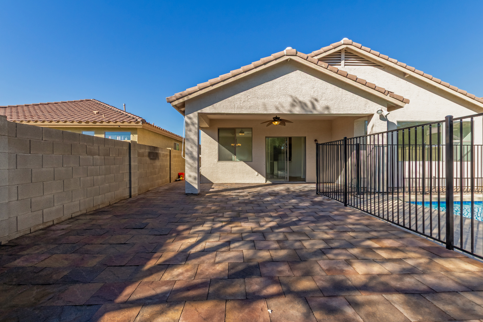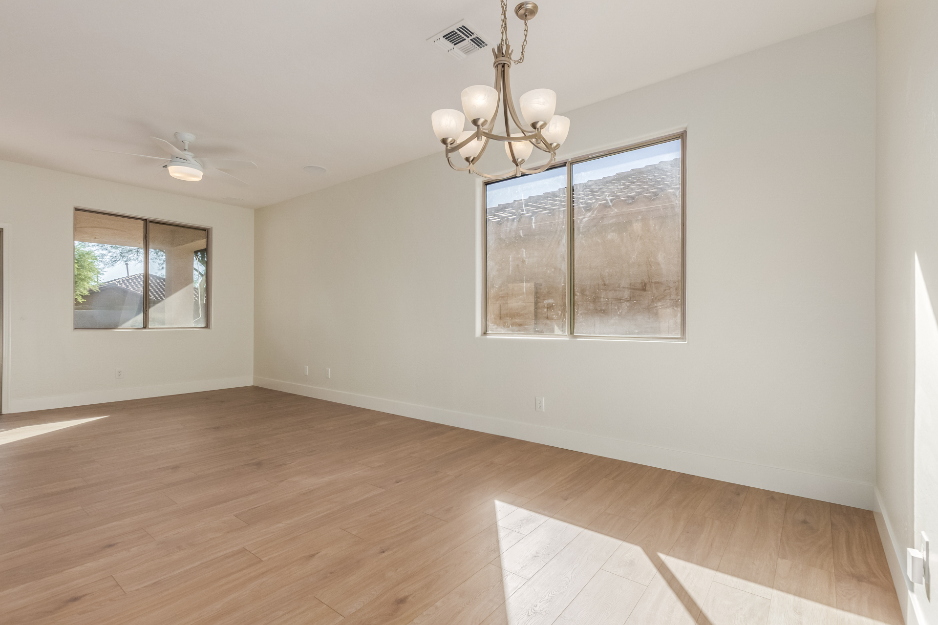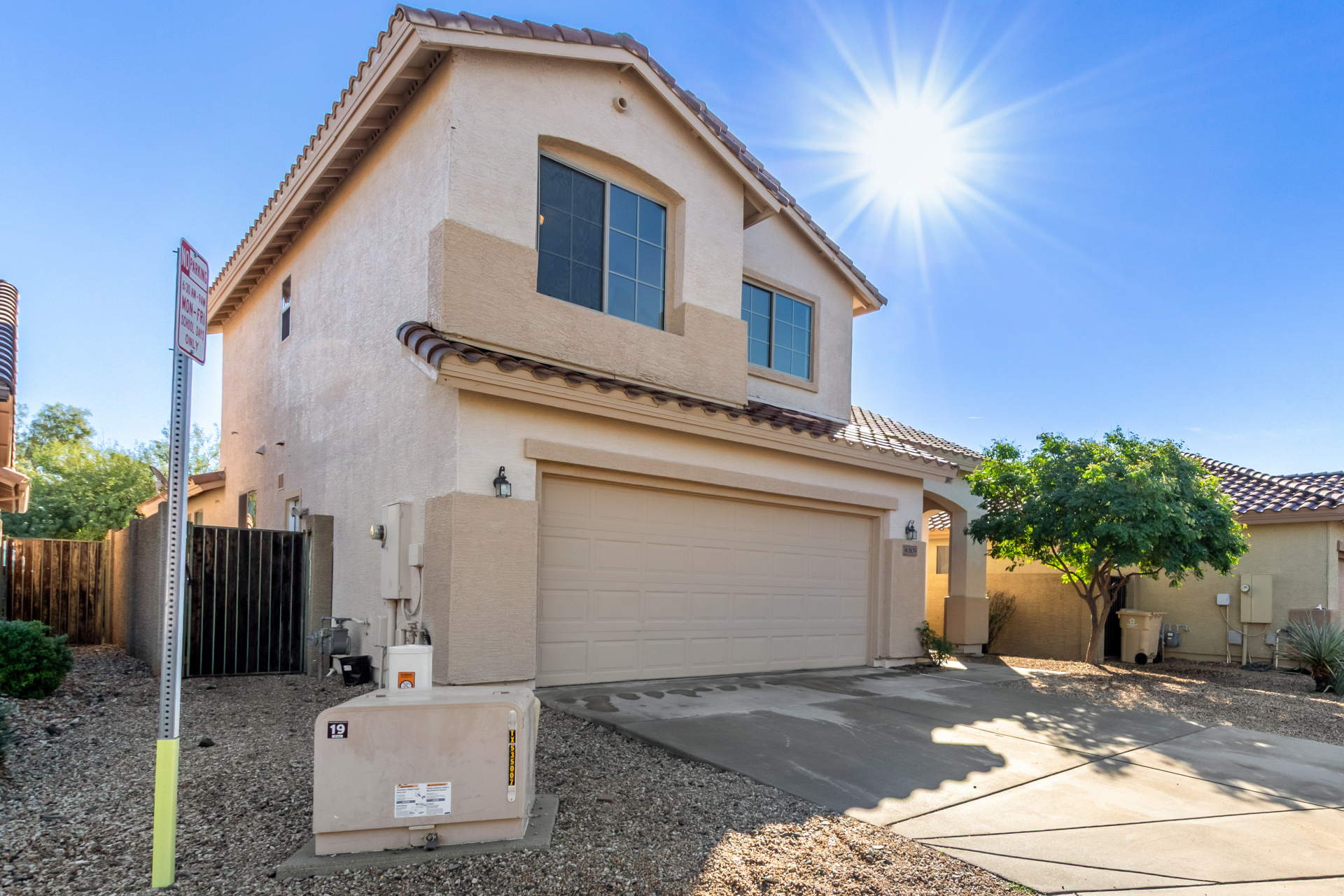 Nestled in Anthem on a cul-de-sac street, this is a spacious 4 bedroom w/den home with a pool. East facing backyard is very private with lots of shady trees. Plenty of space inside and out w/neutral colors. Primary bedroom and office is downstairs with 3 bedrooms and full bath upstairs. Upgraded stainless appliances (2020 and 2023) New A/C 2022) Efficient pool pump and refurbished cool decking(2023) Newly laid LVP and tile in baths (2025) Fresh paint (2025) Loads of walking/running/biking trails. A short distance to Anthem Elementary, Community Center, Anthem Park w/lake, skate park, baseball fields and it's just around the corner from Boulder Creek HS. Experience the charm of Anthem's ''Living in Abundance''