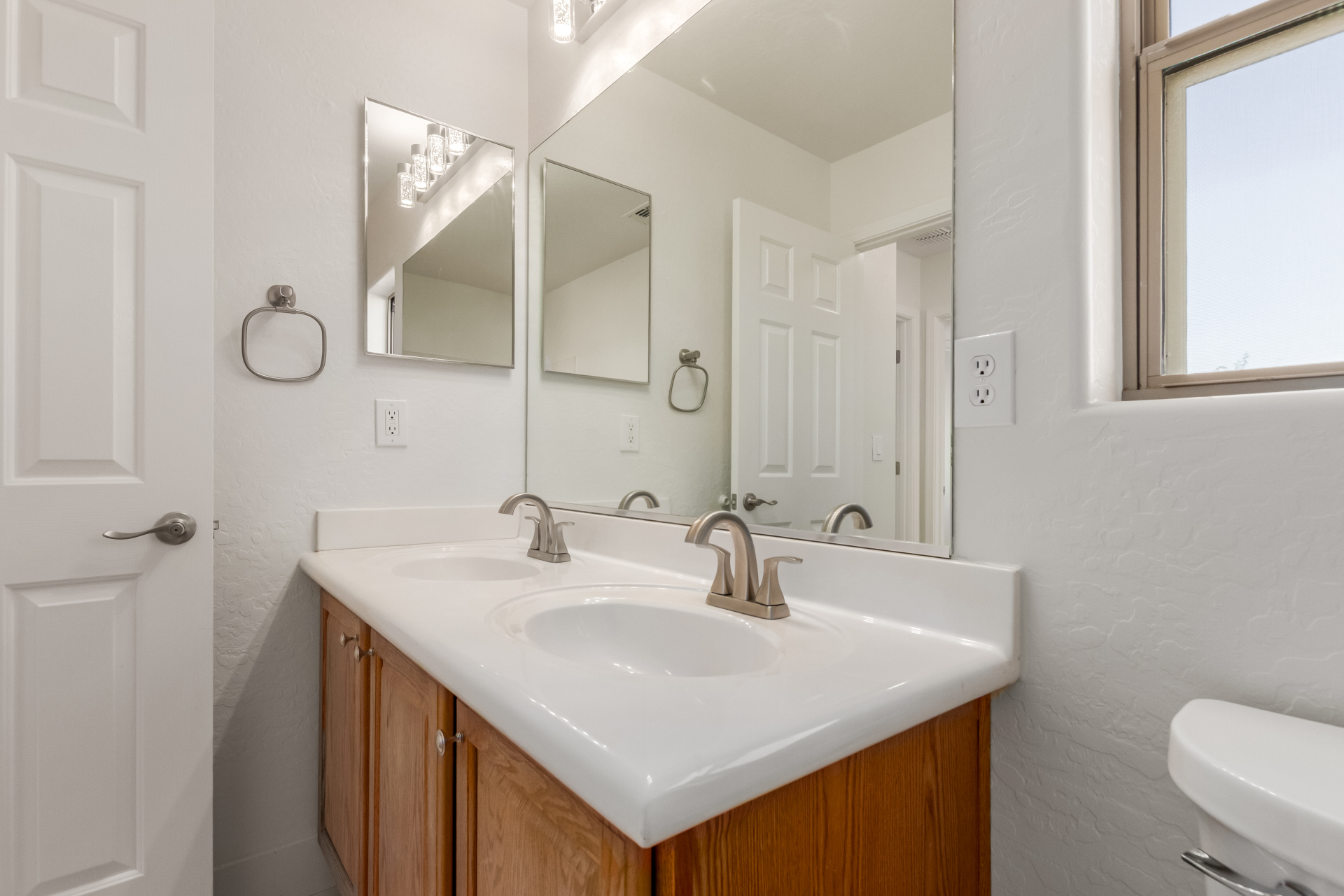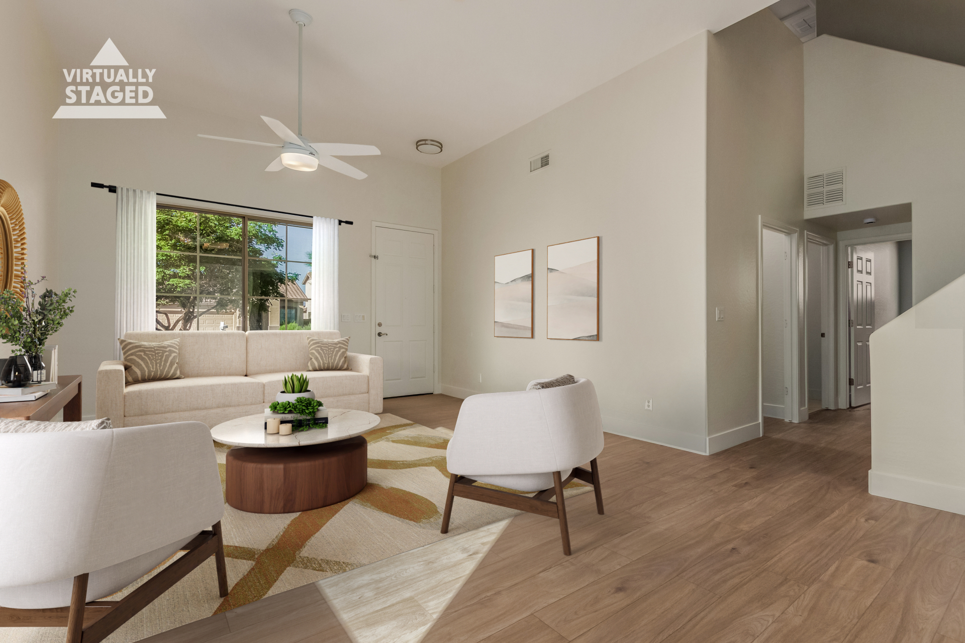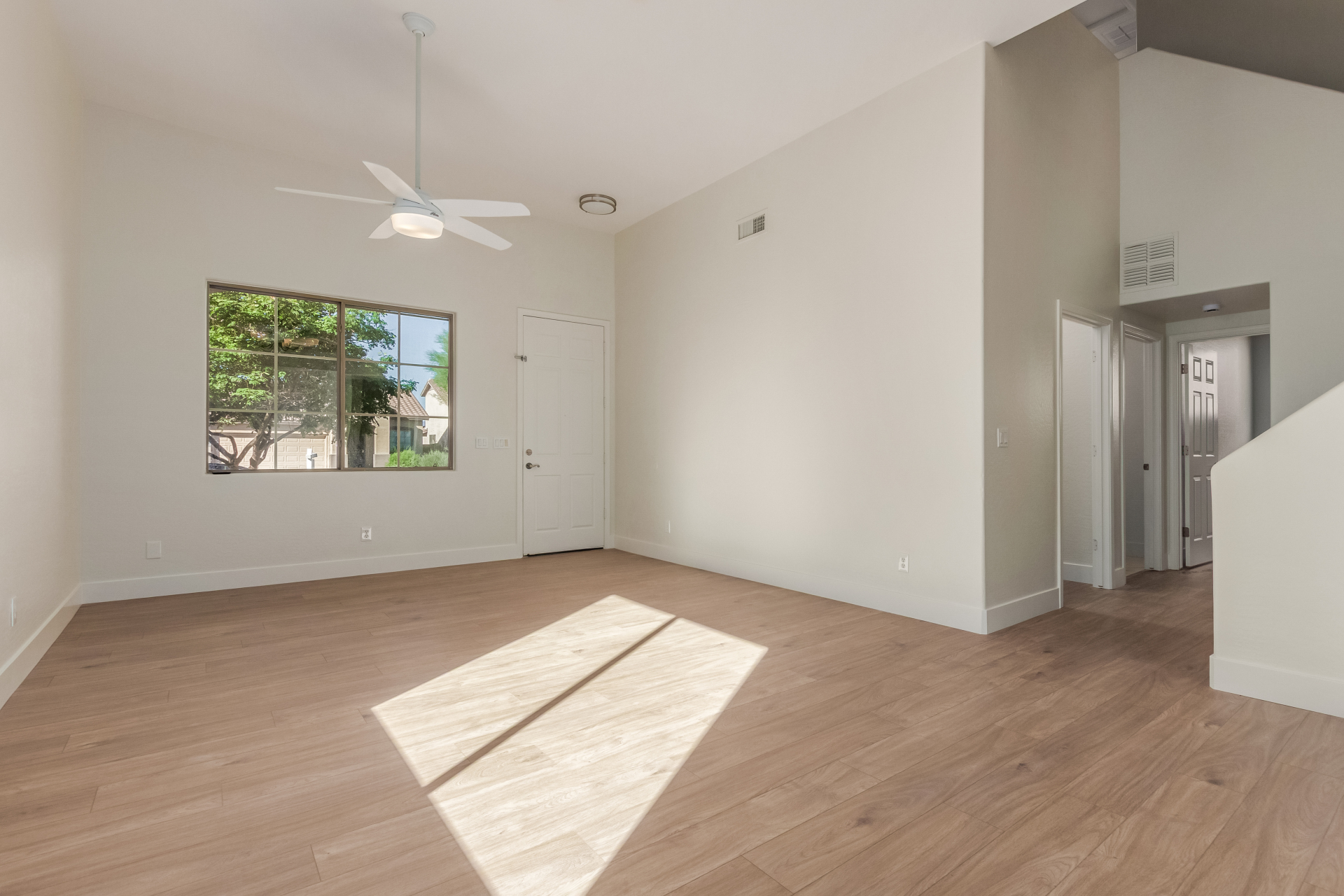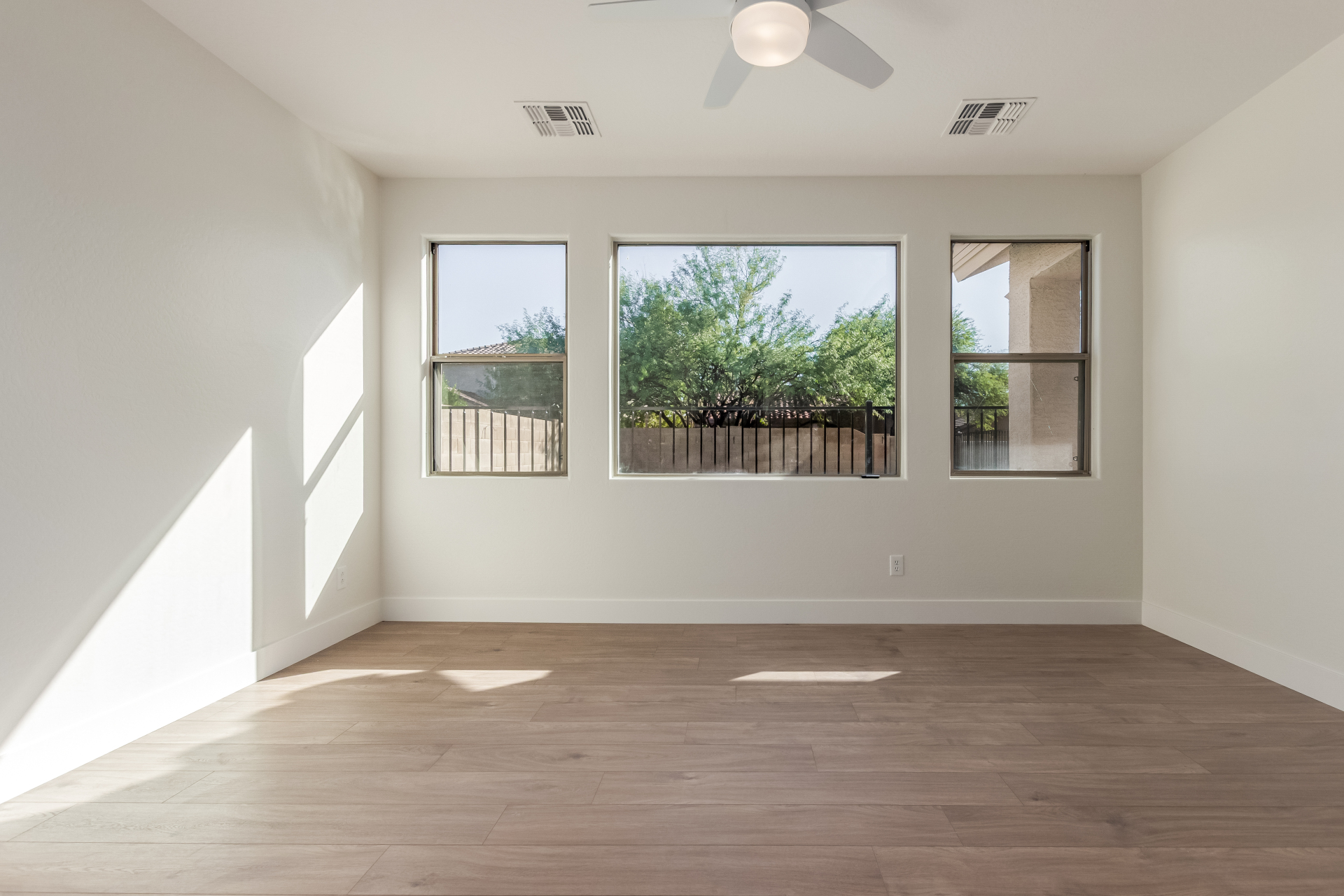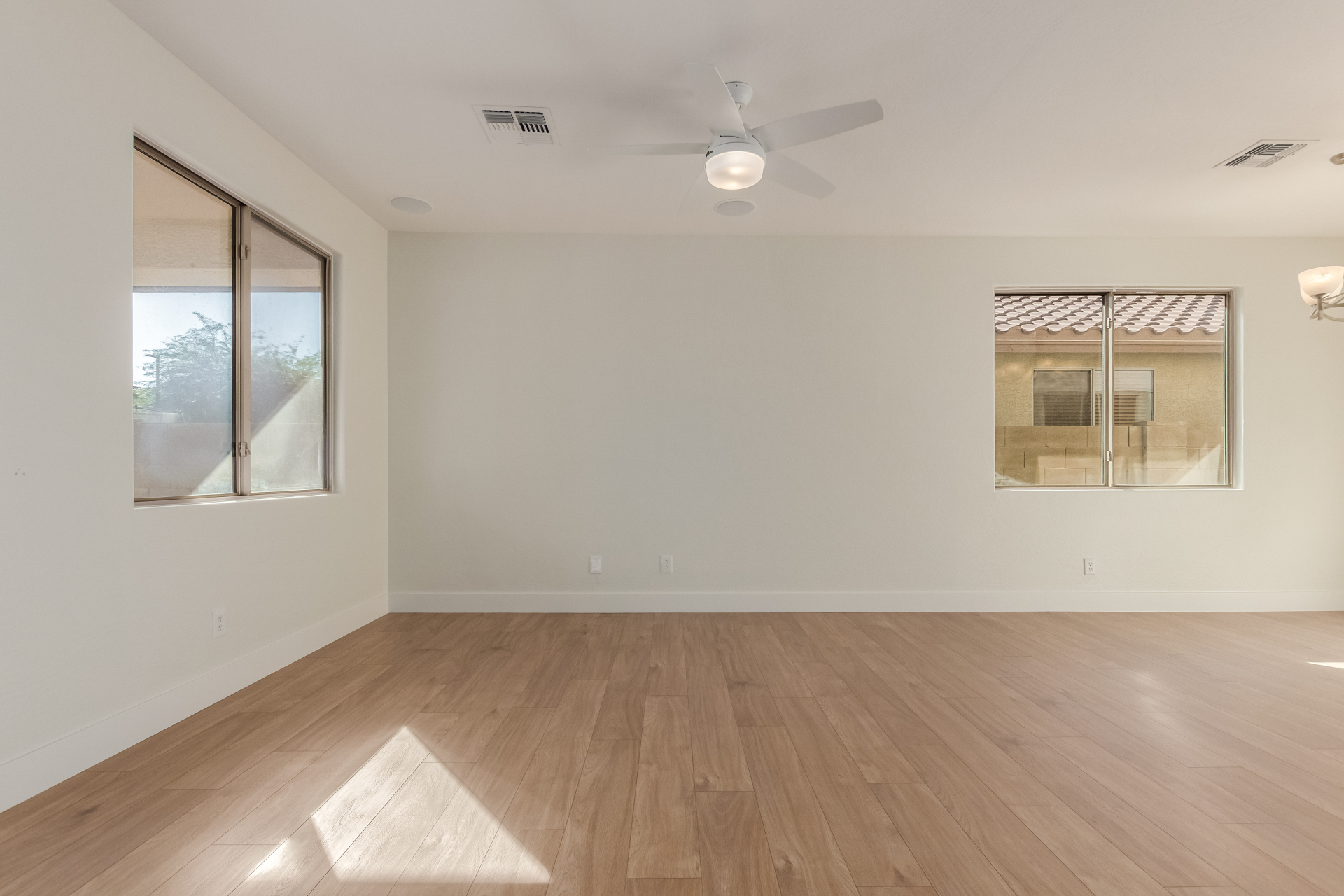 Nestled in Anthem on a cul-de-sac street, this is a spacious 4 bedroom w/den home with a pool. East facing backyard is very private with lots of shady trees. Plenty of space inside and out w/neutral colors. Primary bedroom and office is downstairs with 3 bedrooms and full bath upstairs. Upgraded stainless appliances (2020 and 2023) New A/C 2022) Efficient pool pump and refurbished cool decking(2023) Newly laid LVP and tile in baths (2025) Fresh paint (2025) Loads of walking/running/biking trails. A short distance to Anthem Elementary, Community Center, Anthem Park w/lake, skate park, baseball fields and it's just around the corner from Boulder Creek HS. Experience the charm of Anthem's ''Living in Abundance''