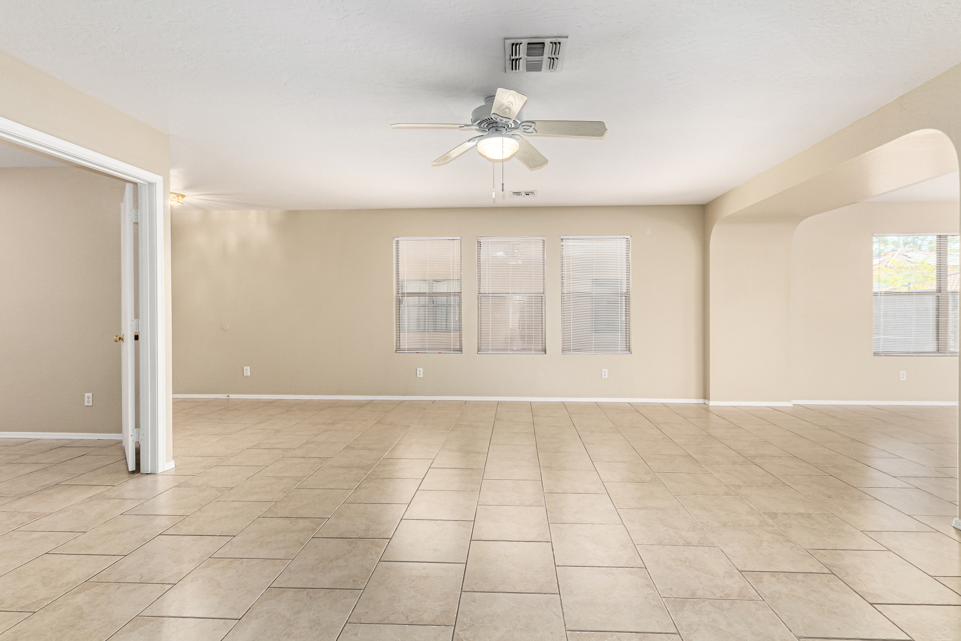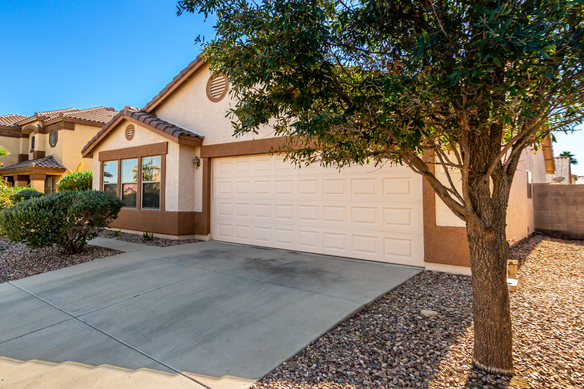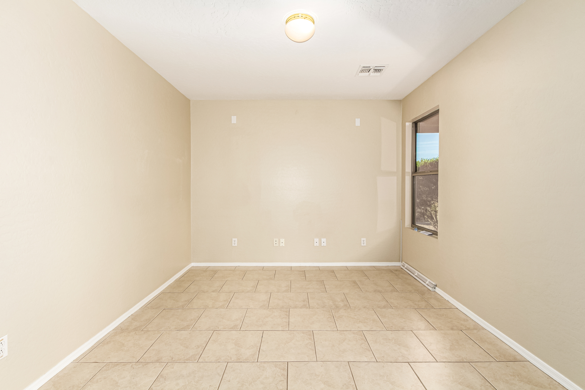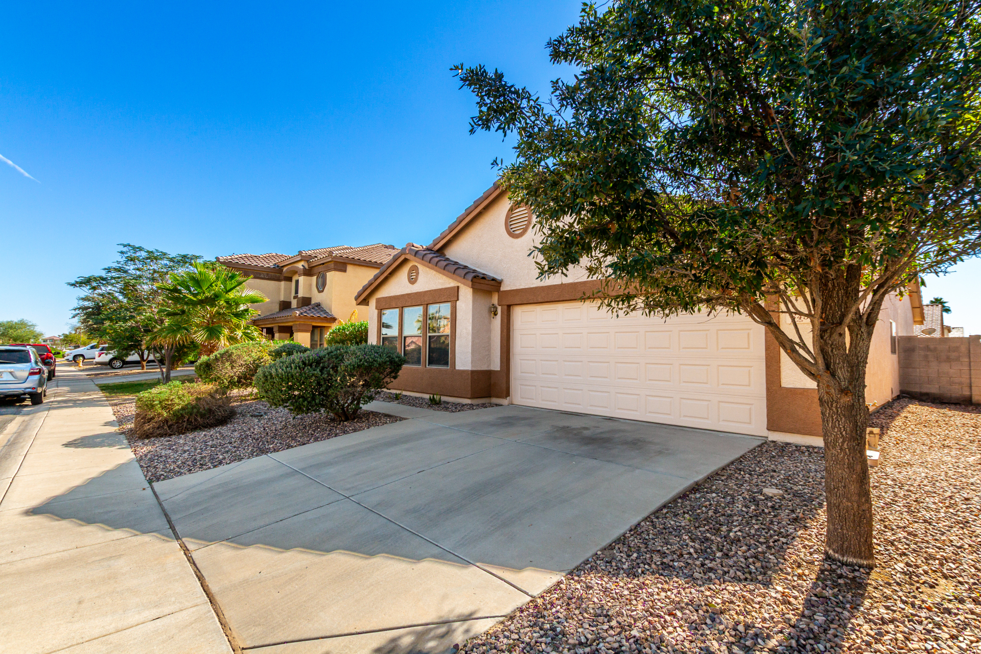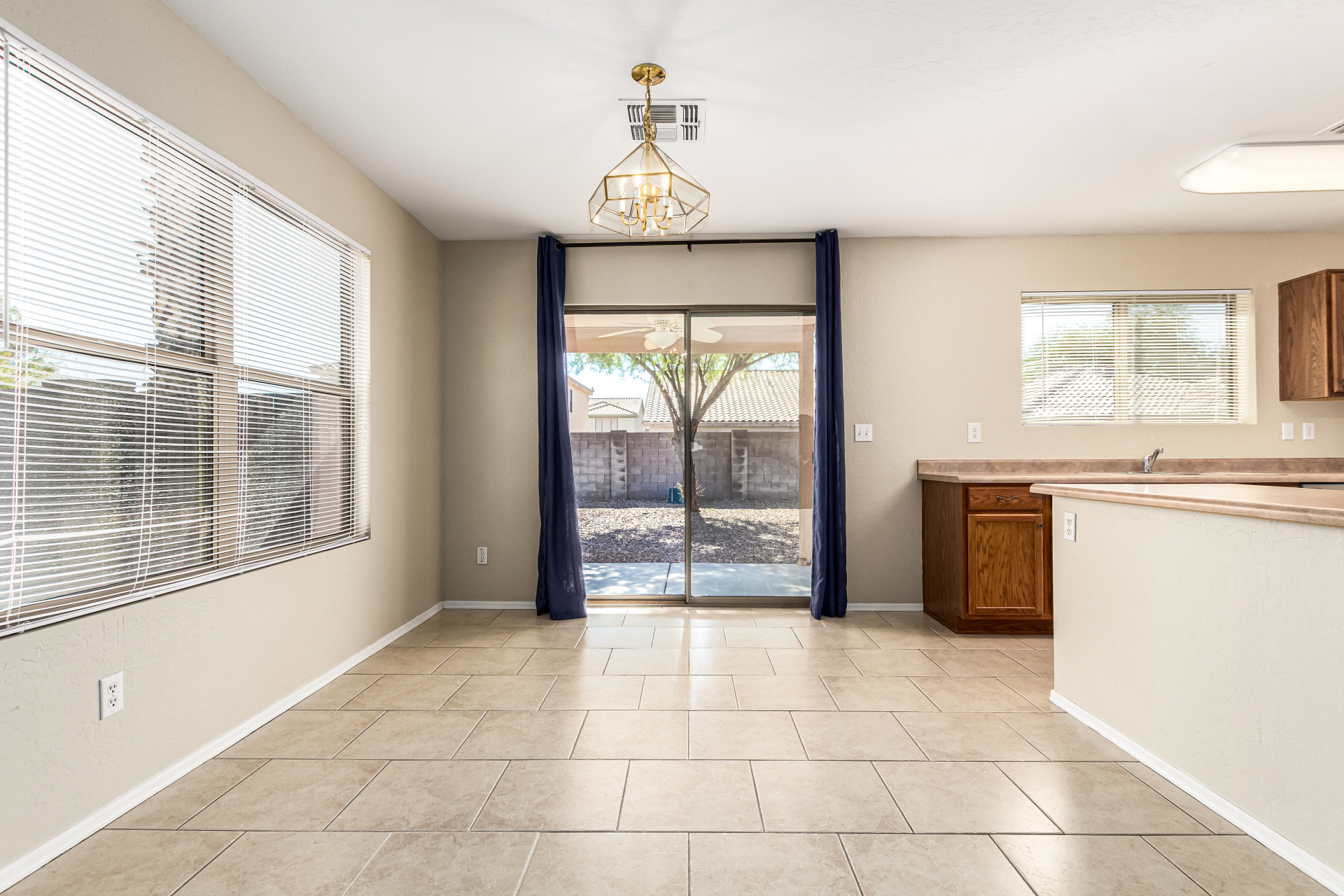 Become the proud owner of this well-maintained, lovely 3-bedroom, 2-bath + Office home in SK Ranch! Located on a quiet cul-de-sac. You'll be delighted by the serene living room with a soothing palette, blinds, and durable tile flooring for easy maintenance. The eat-in kitchen features ample wood cabinetry, stainless steel appliances, a pantry, and an island with a breakfast bar for casual meals. You'll also find a versatile den ideal for an office or a quiet study. The primary bedroom features soft carpeting, a walk-in closet, and a private bathroom with dual sinks for an efficient daily routine. Unwind at the end of a long day in the backyard, which features a covered patio and ample space to craft your dream outdoor oasis. Don't miss out on this fantastic opportunity!