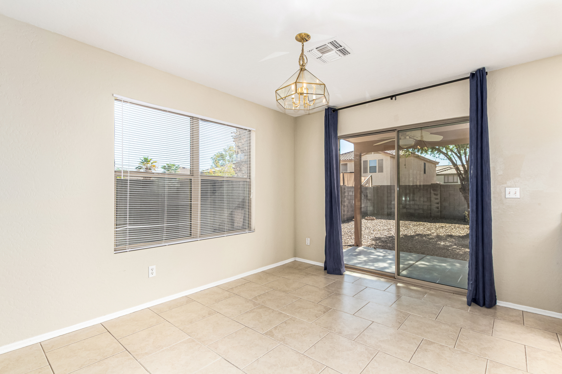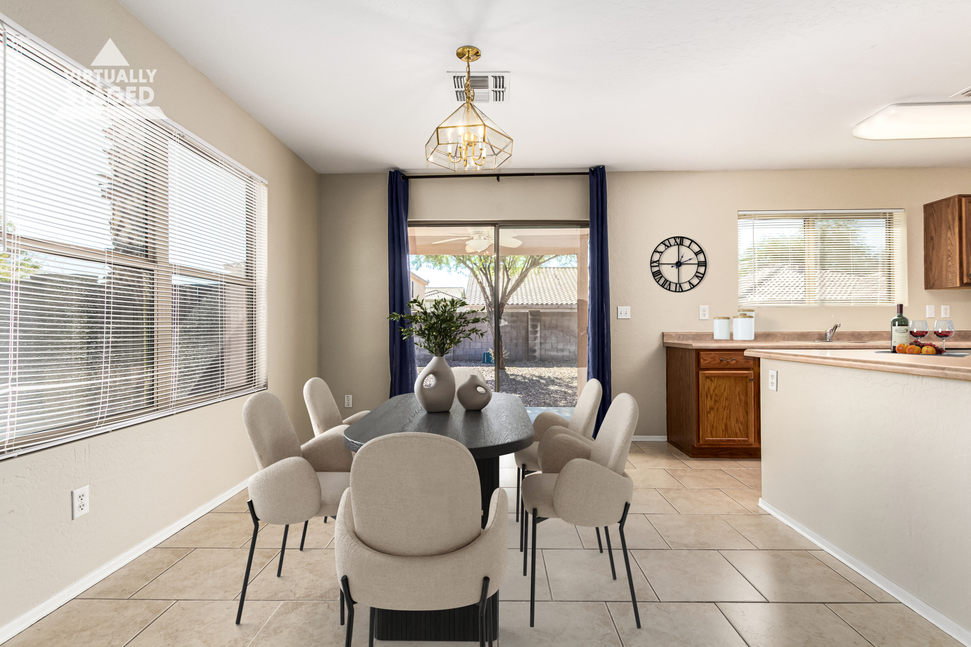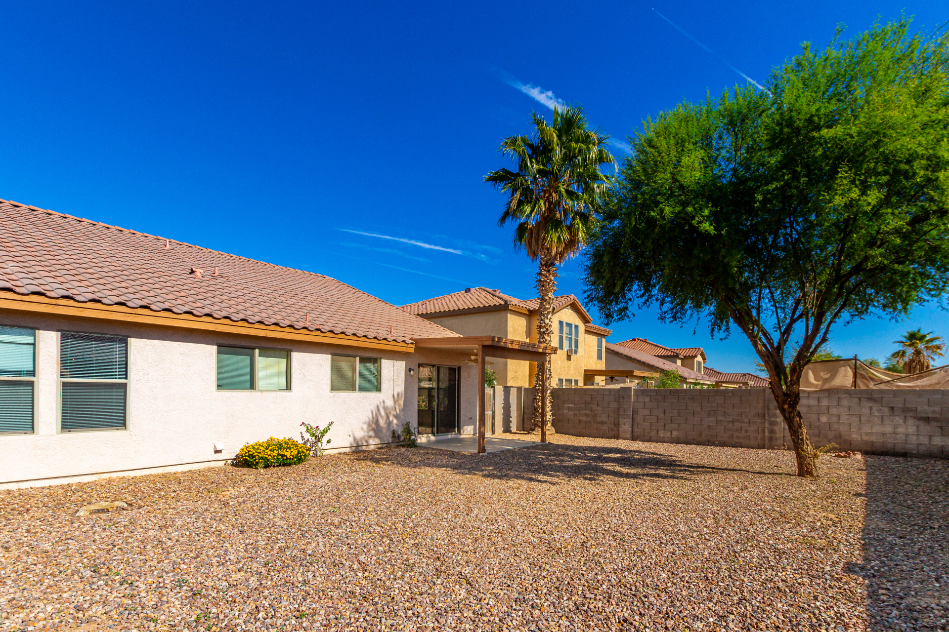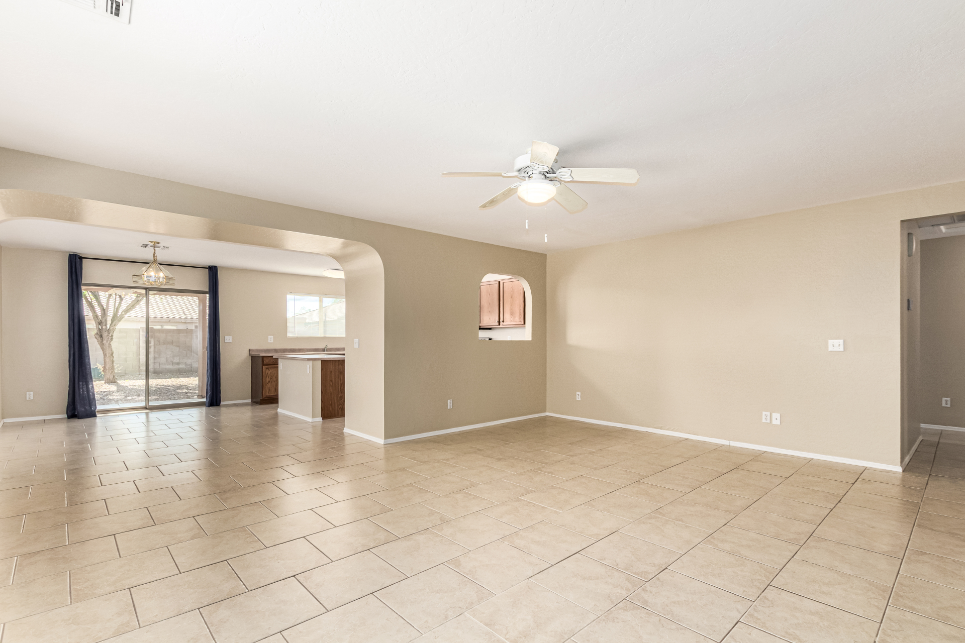 Become the proud owner of this well-maintained, lovely 3-bedroom, 2-bath + Office home in SK Ranch! Located on a quiet cul-de-sac. You'll be delighted by the serene living room with a soothing palette, blinds, and durable tile flooring for easy maintenance. The eat-in kitchen features ample wood cabinetry, stainless steel appliances, a pantry, and an island with a breakfast bar for casual meals. You'll also find a versatile den ideal for an office or a quiet study. The primary bedroom features soft carpeting, a walk-in closet, and a private bathroom with dual sinks for an efficient daily routine. Unwind at the end of a long day in the backyard, which features a covered patio and ample space to craft your dream outdoor oasis. Don't miss out on this fantastic opportunity!