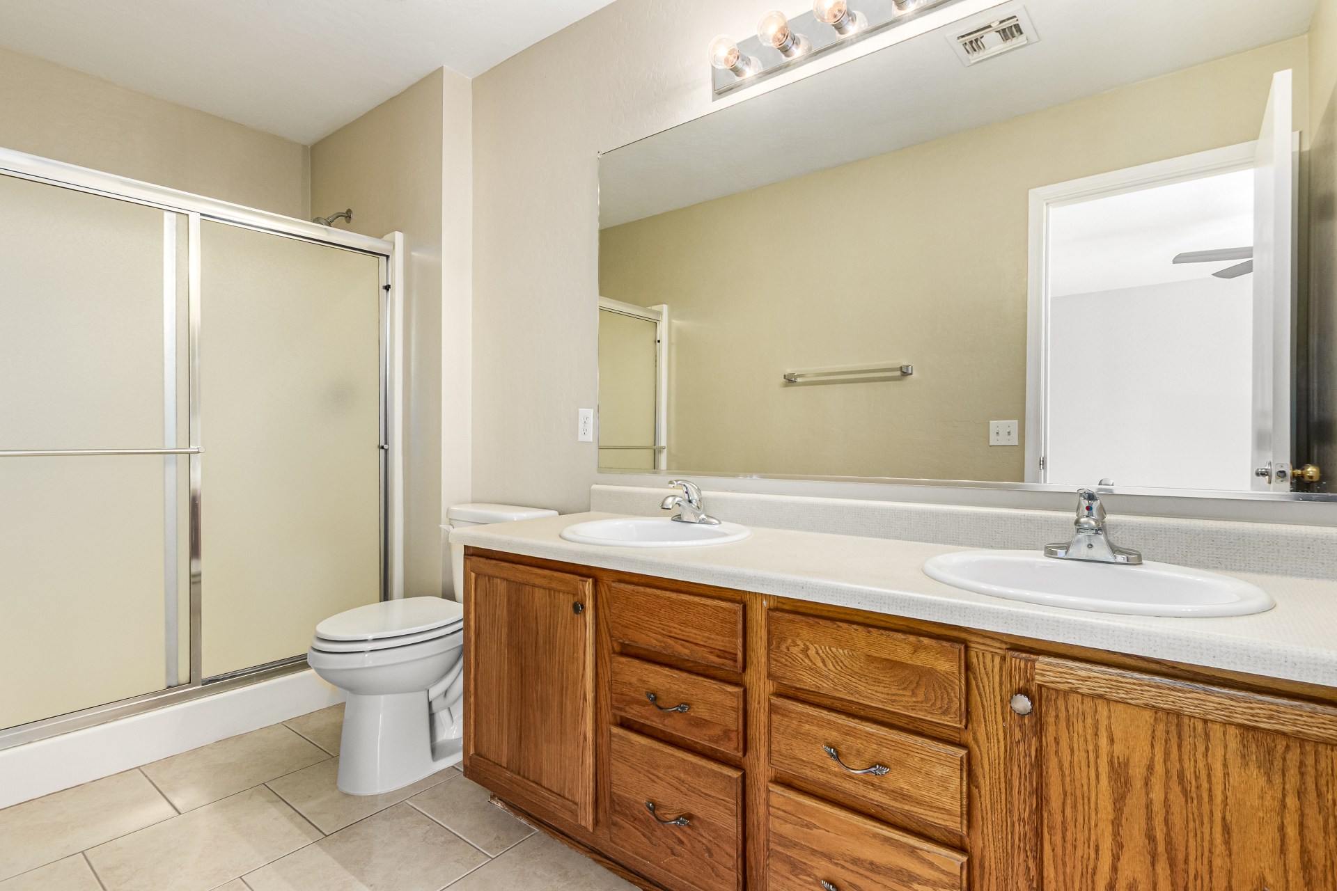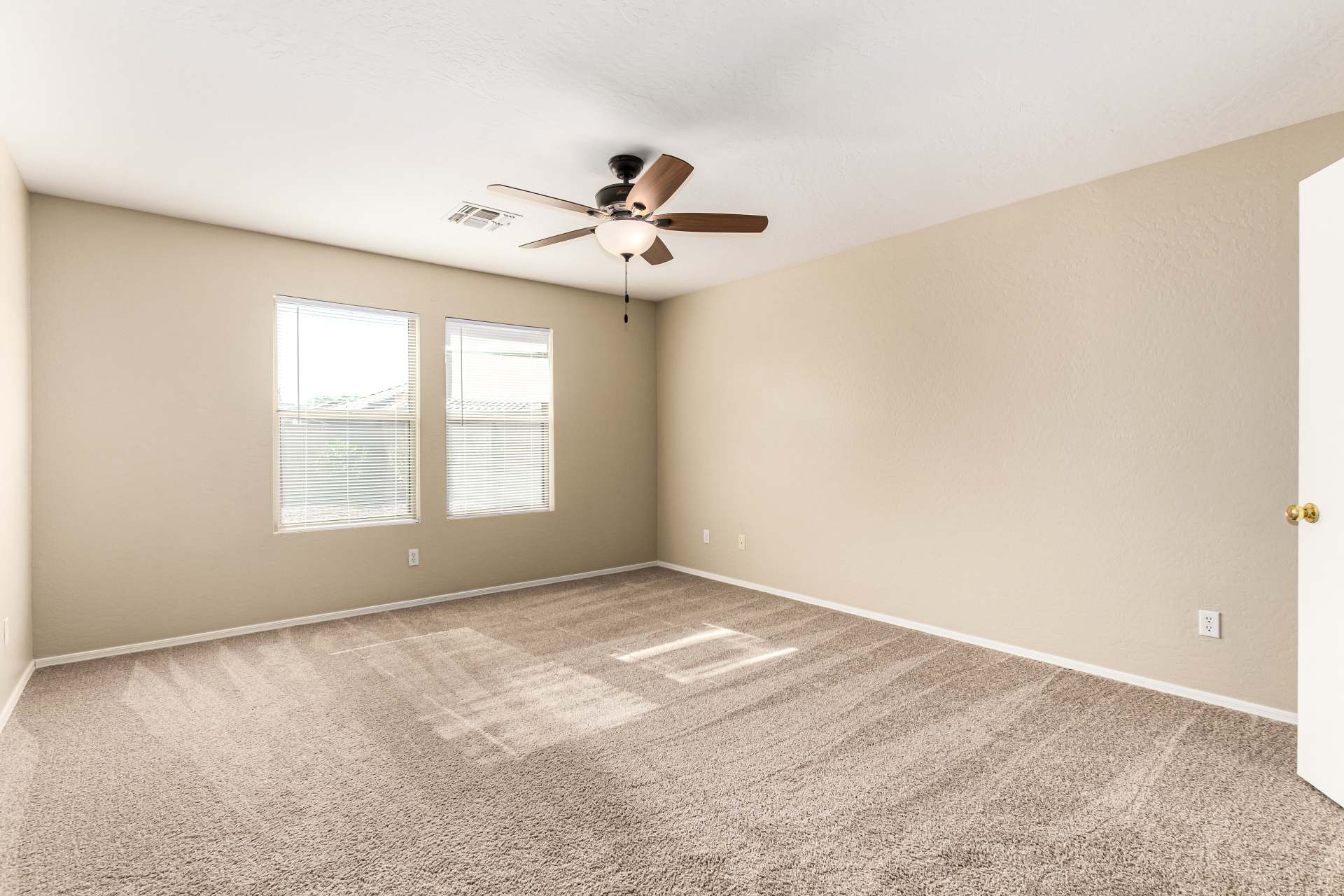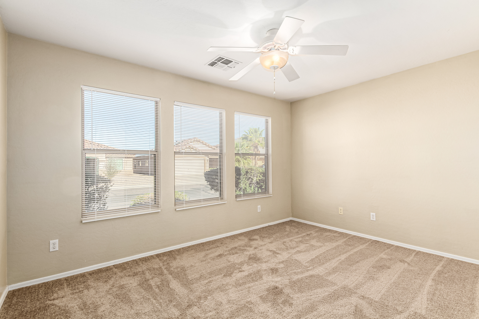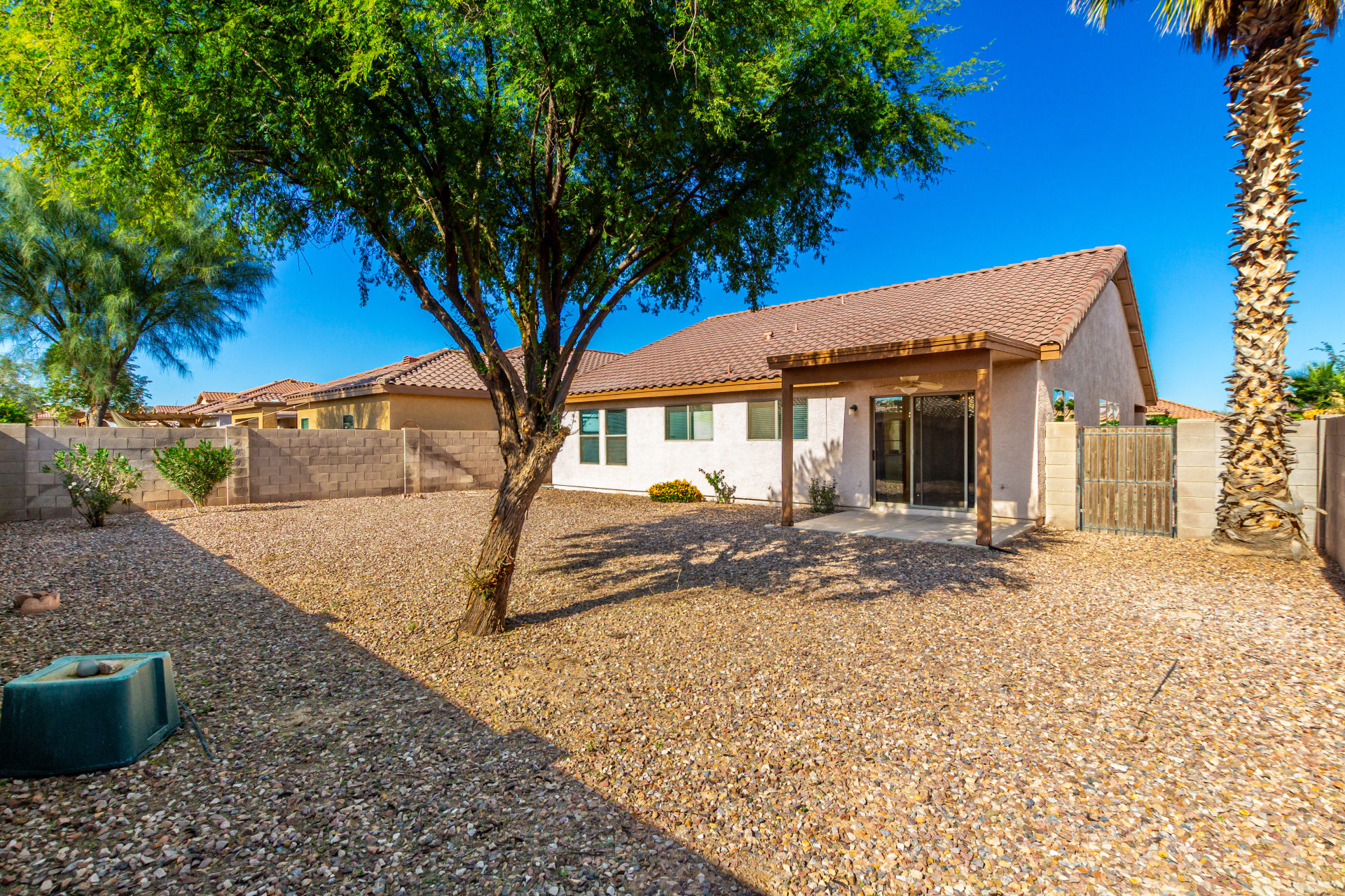 Become the proud owner of this well-maintained, lovely 3-bedroom, 2-bath + Office home in SK Ranch! Located on a quiet cul-de-sac. You'll be delighted by the serene living room with a soothing palette, blinds, and durable tile flooring for easy maintenance. The eat-in kitchen features ample wood cabinetry, stainless steel appliances, a pantry, and an island with a breakfast bar for casual meals. You'll also find a versatile den ideal for an office or a quiet study. The primary bedroom features soft carpeting, a walk-in closet, and a private bathroom with dual sinks for an efficient daily routine. Unwind at the end of a long day in the backyard, which features a covered patio and ample space to craft your dream outdoor oasis. Don't miss out on this fantastic opportunity!