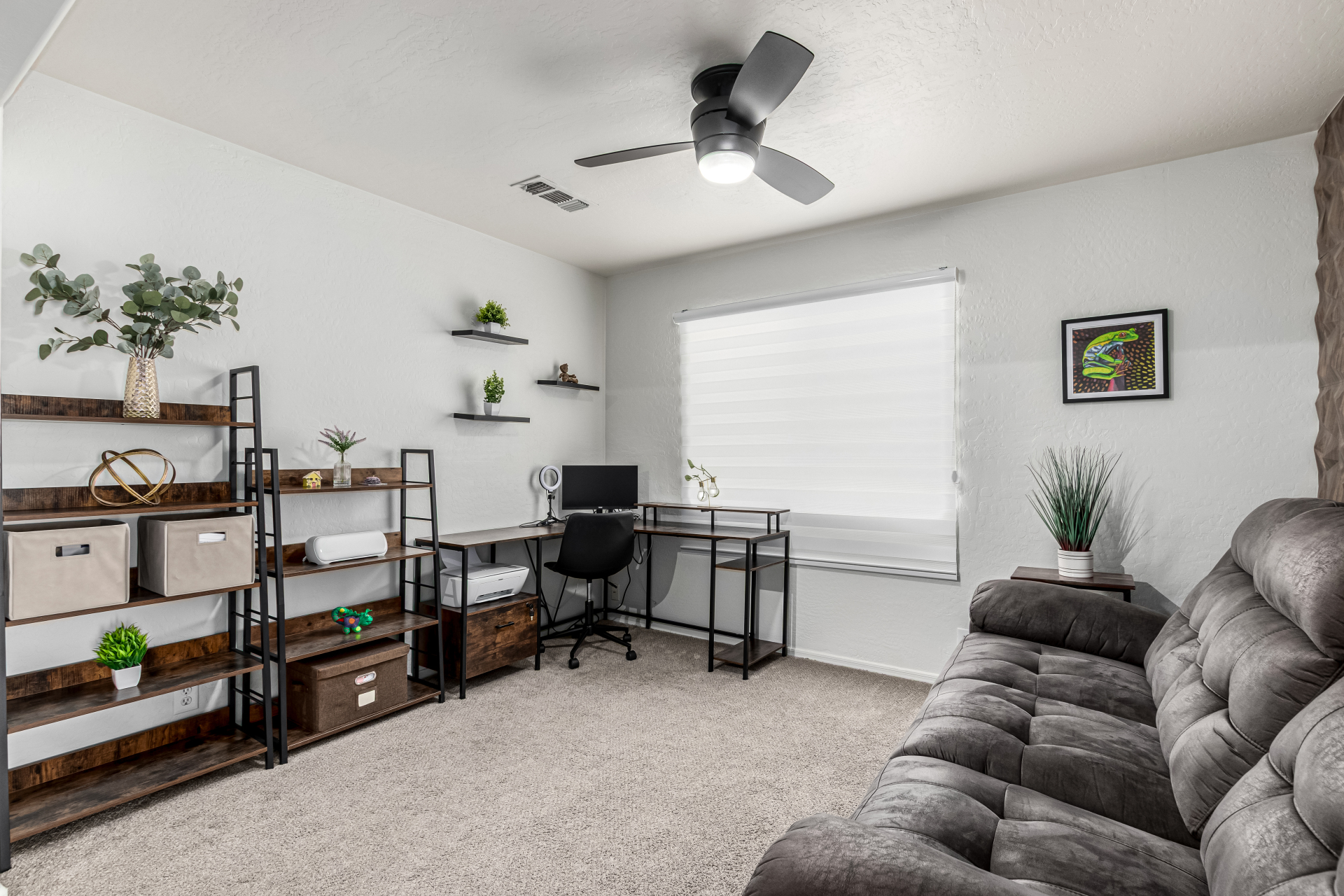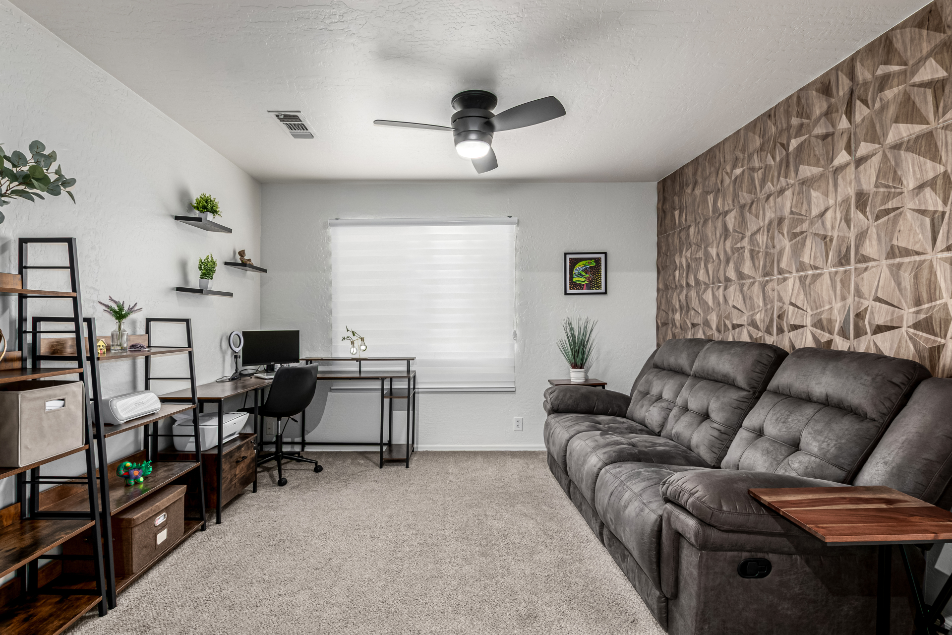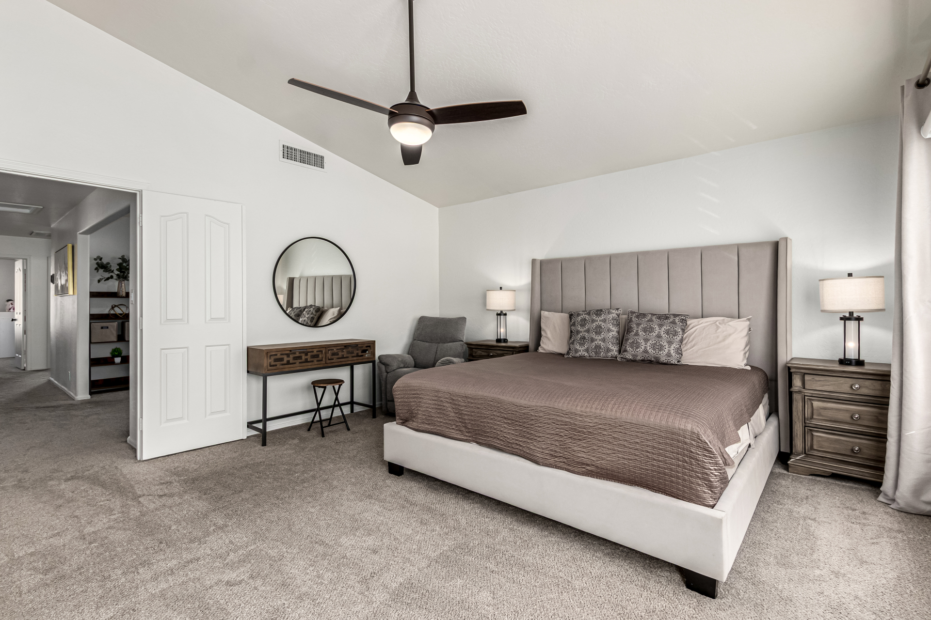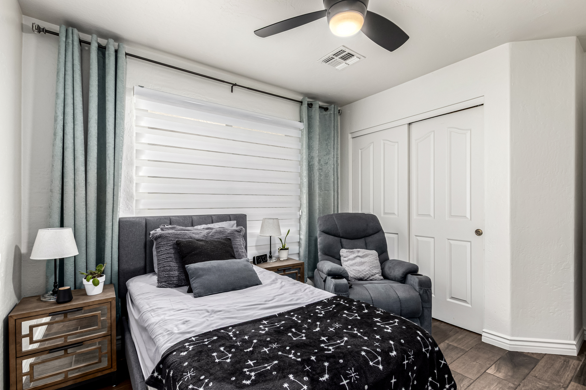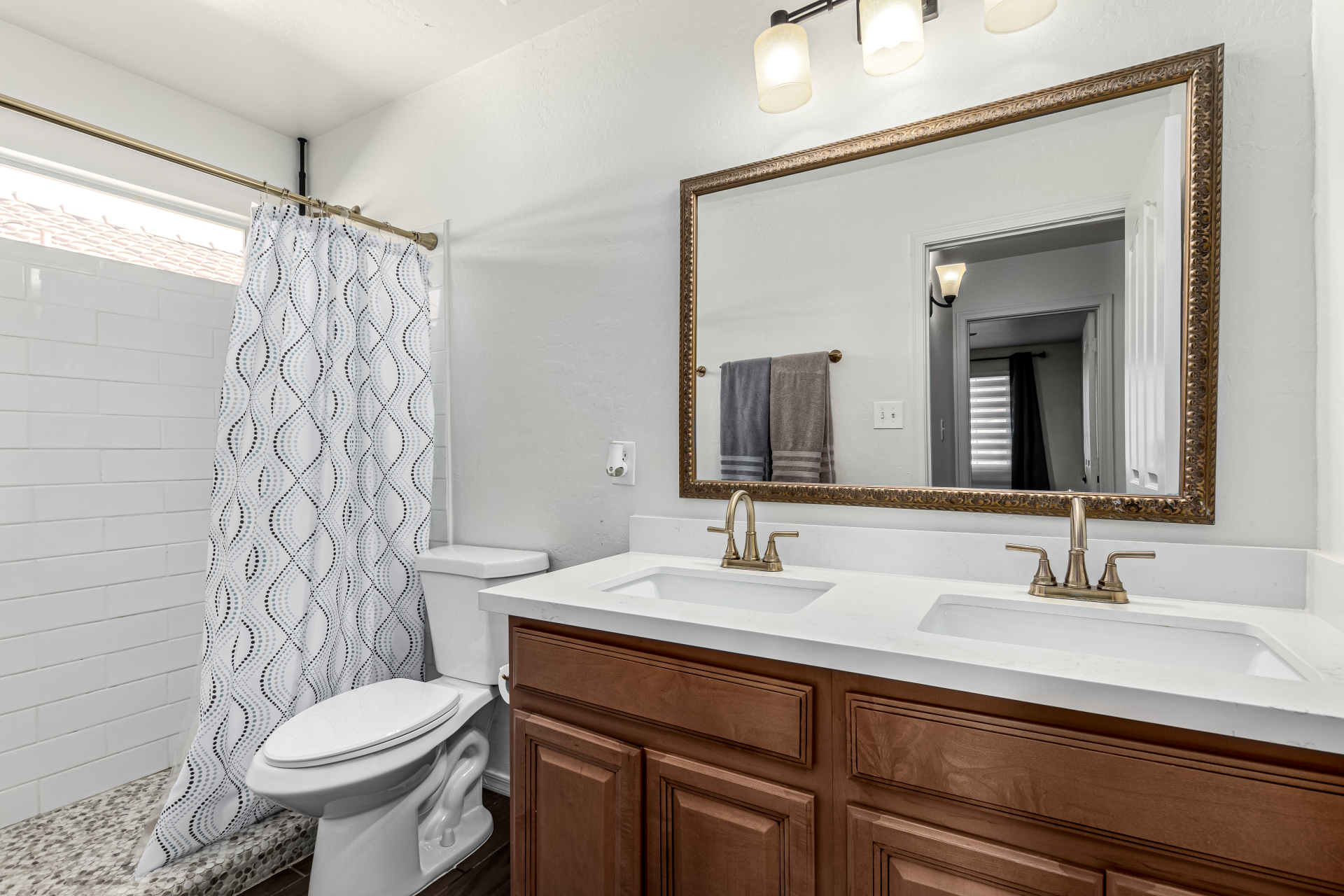 Welcome to Ahwatukee Foothills—where Mountain Living meets relaxed lifestyle. This thoughtfully designed 4-bed, 3-bath home flows beautifully, featuring warm wood-look tile, granite countertops, custom cabinetry, and a striking stone wall fireplace anchoring the main living space. The serene primary suite overlooks the backyard and offers an large walk-in closet. The en-suite bath feels spa-inspired with ceramic tile, a custom vanity, walk-in shower, and a deep soaking tub made for unwinding. Step through French doors to a true backyard oasis—sparkling pool, sport court, and play yard—perfect for everyday living and effortless entertaining. Minutes to South Mountain's breathtaking views and miles of hiking and biking trails. Dining|Shopping are right down the street. Welcome Home!