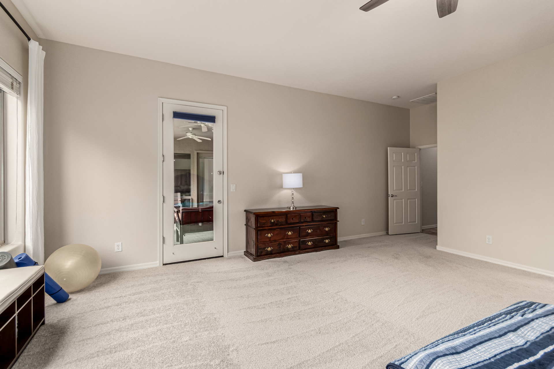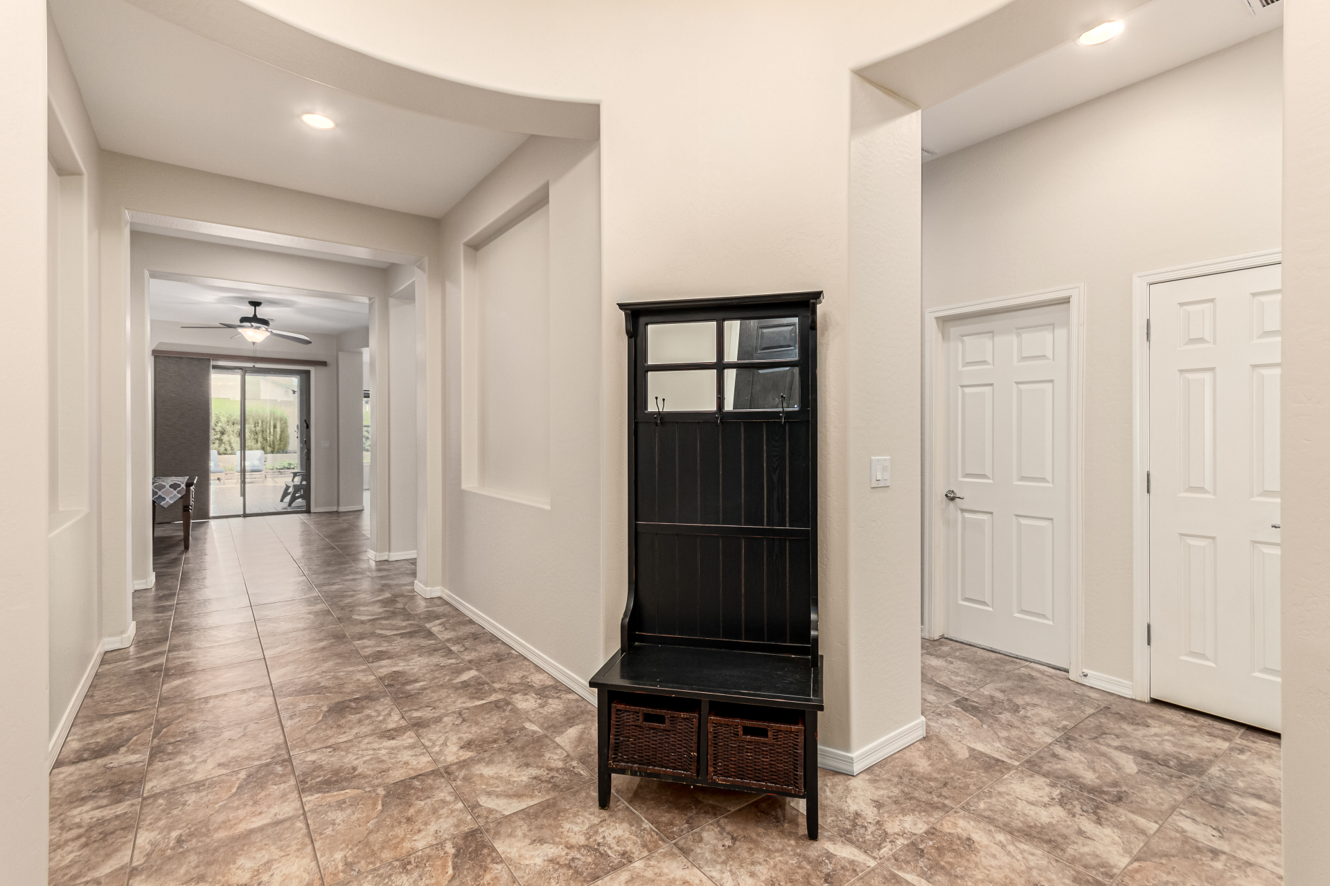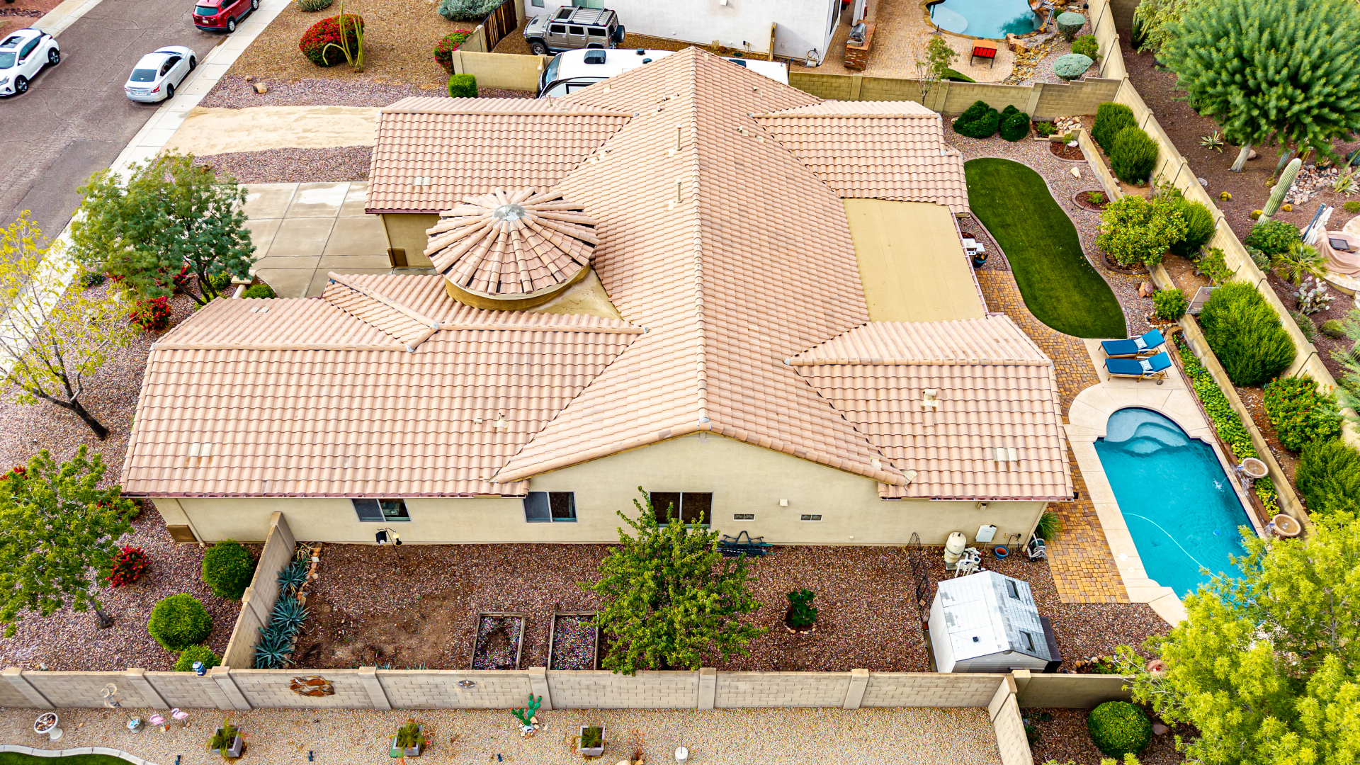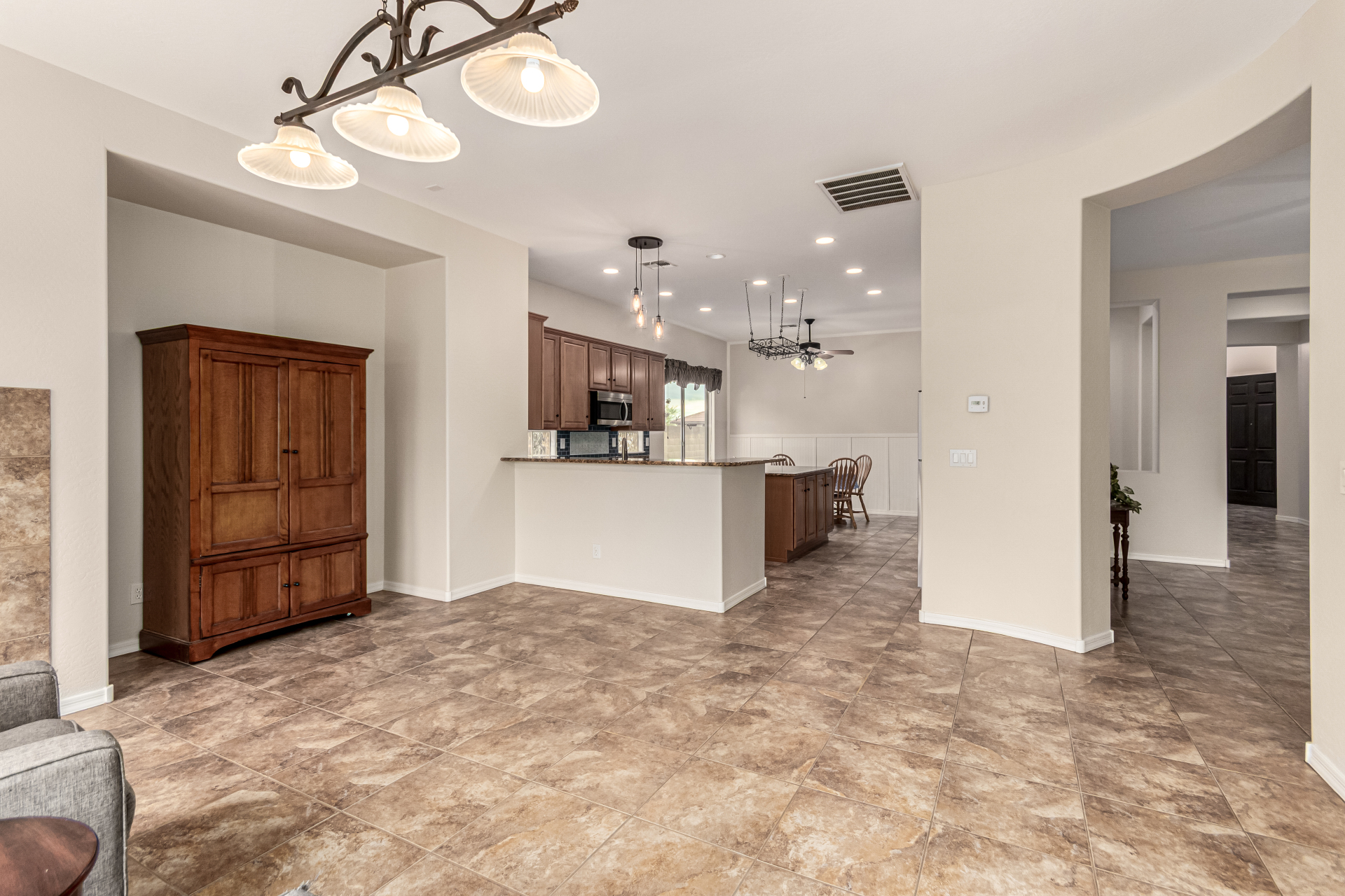 Exceptional, spacious home w/ 10 ft ceilings throughout. Split 4 bdrm/den/2.5 bath, open concept floorplan on 1/3 acre lot. RV PARKING W/ ELECTRIC HOOKUP. Large kitchen w/ center island, granite counters, & ample maple cabinets w/ pull out shelves. Dbl ovens, built in micro, 5 burner gas stove, & more! Oversized primary bdrm w/ large walk in closet and built in shelves. Primary bath has a garden soaking tub, dbl sinks, sep shower w/ bench seat and vanity sitting area. 3 additional bdrms are good sized w/ built in dbl desk/craft area w/ abundant maple cabs. Fam Rm has a cozy gas fireplace, pre-wired surround & picture windows over looking the backyard oasis & pool. Spacious multifunctional liv rm has a large glass sliding door to the covered patio. Big laundry rm w/ cabs, mounted