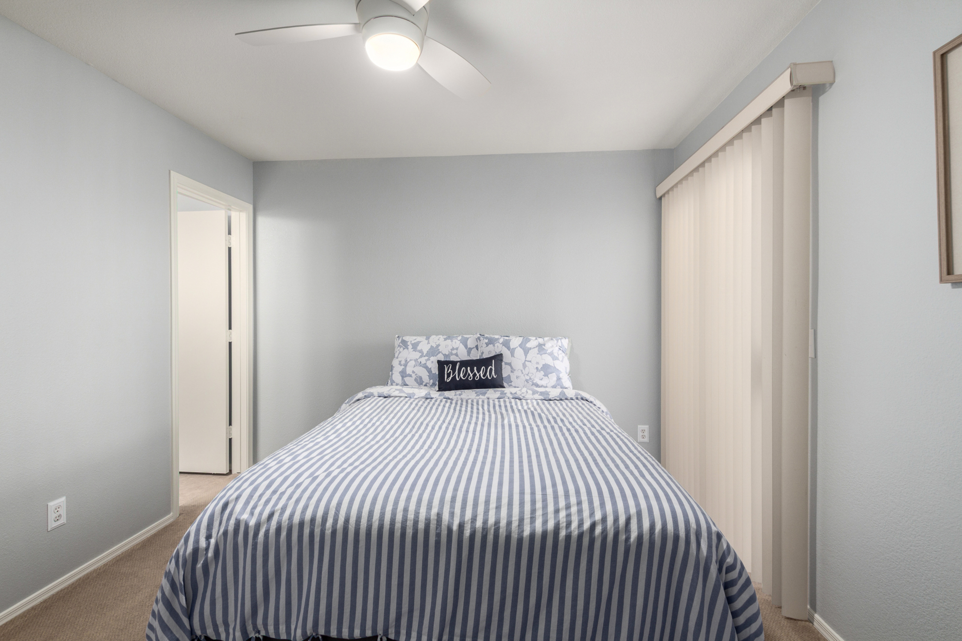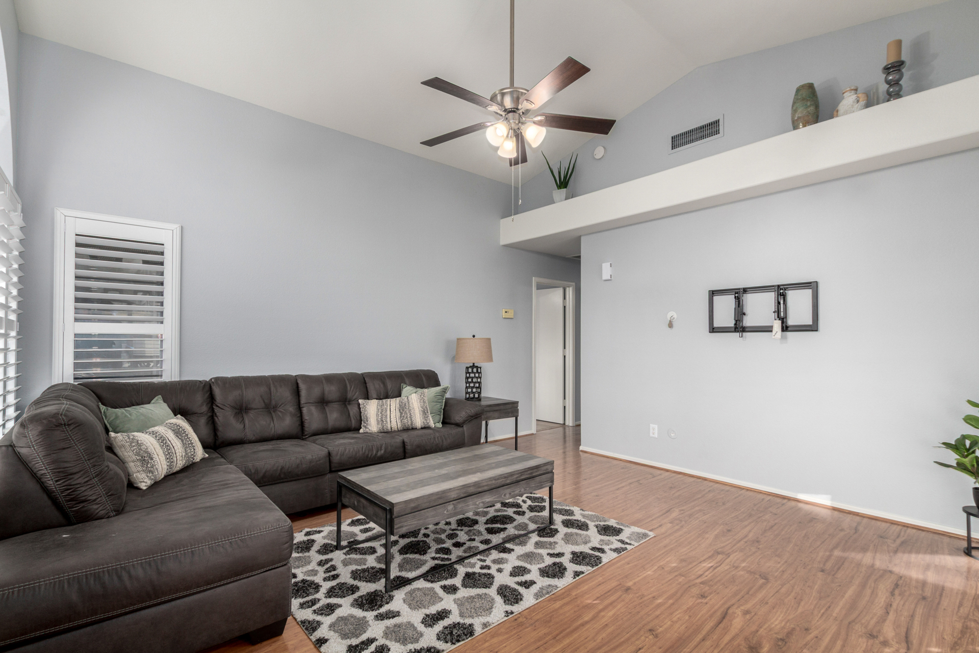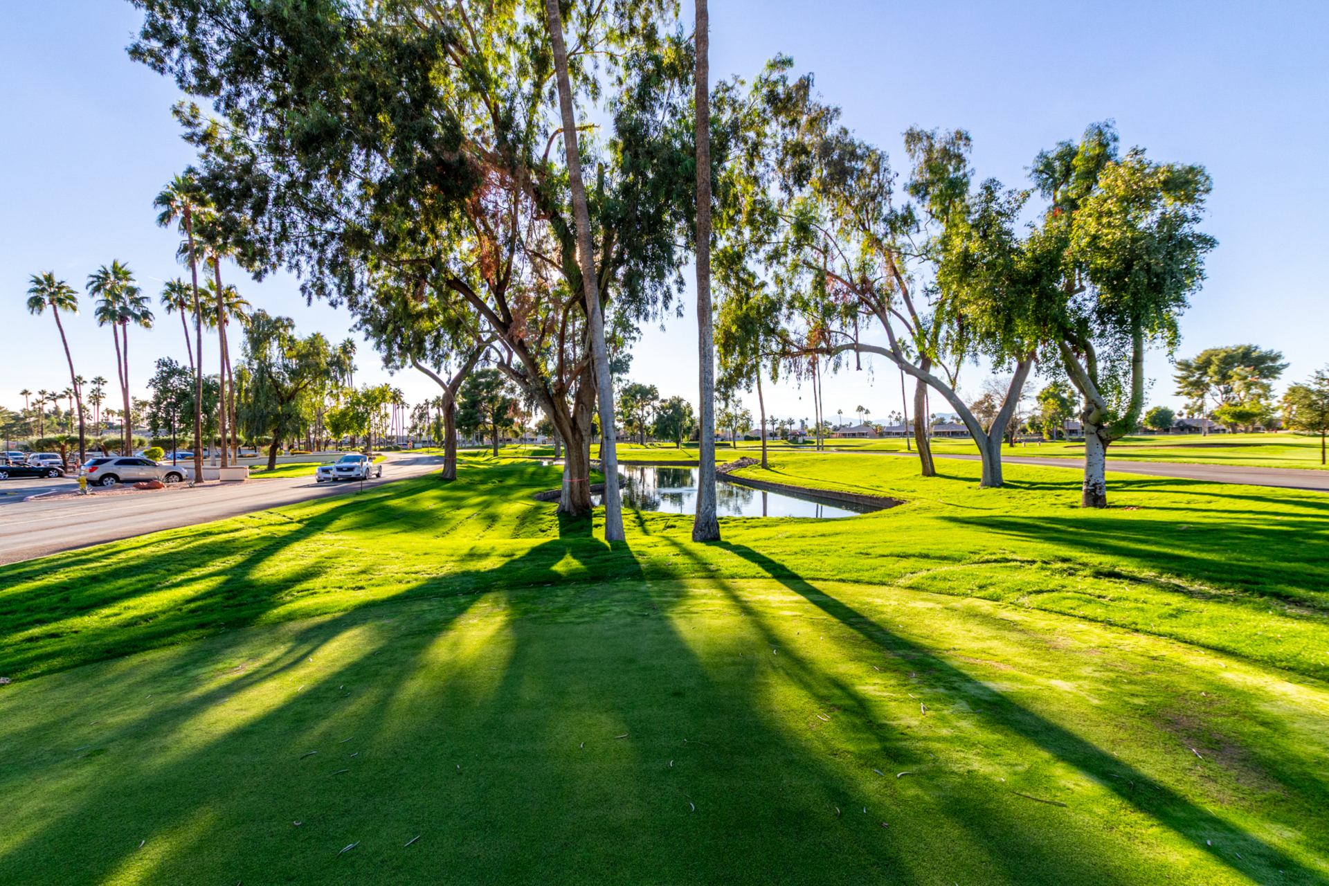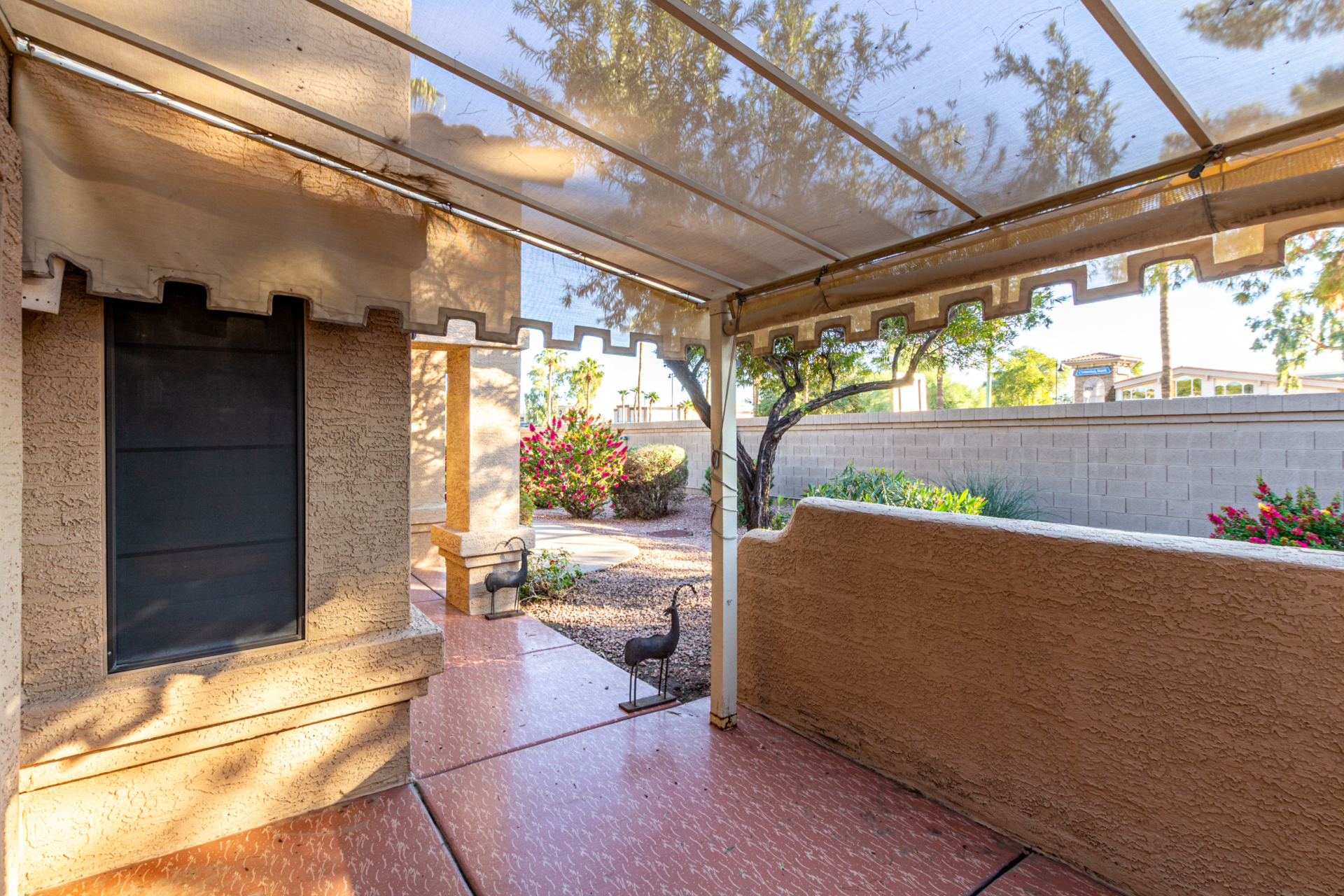 Discover all the charm of this lovely patio home in the sought-after Sun Village Resort! Inside, you'll find wood-look flooring, tile in all the right places, vaulted ceilings to add an airy feel, plantation shutters, transom windows for abundant natural light, and a soothing palette. Whip up your signature dishes in the well-appointed kitchen, displaying ample cabinetry and counter space, with built-in essentials. Get a good night's sleep in the main suite, complete with a closet, an ensuite, and a private exit. Step outside to see the cozy covered patio, where you can enjoy your morning brew and quiet evenings. Don't forget to visit this adult community's amenities, such as the pool, clubhouse, restaurant, golf, spa, and fitness center, just to mention a few! Welcome home!