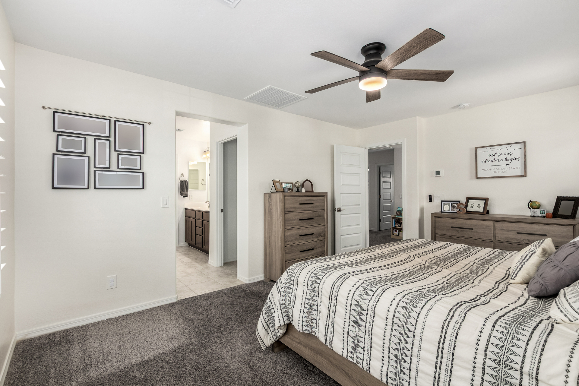 Beautiful 3 bedroom 2.5 bath home with breathtaking desert views. This light-filled home features an open concept layout ideal for everyday living and entertaining. The spacious kitchen flows seamlessly into the dining and living areas and polished with upgraded cabinets and frost quartz kitchen countertops. Enjoy peaceful surroundings, vibrant sunsets and the perfect blend of comfort and desert living.