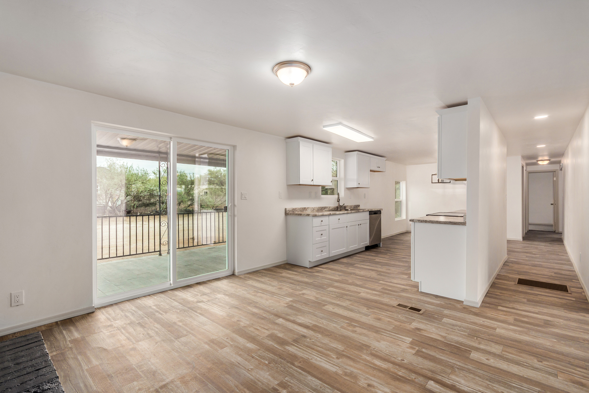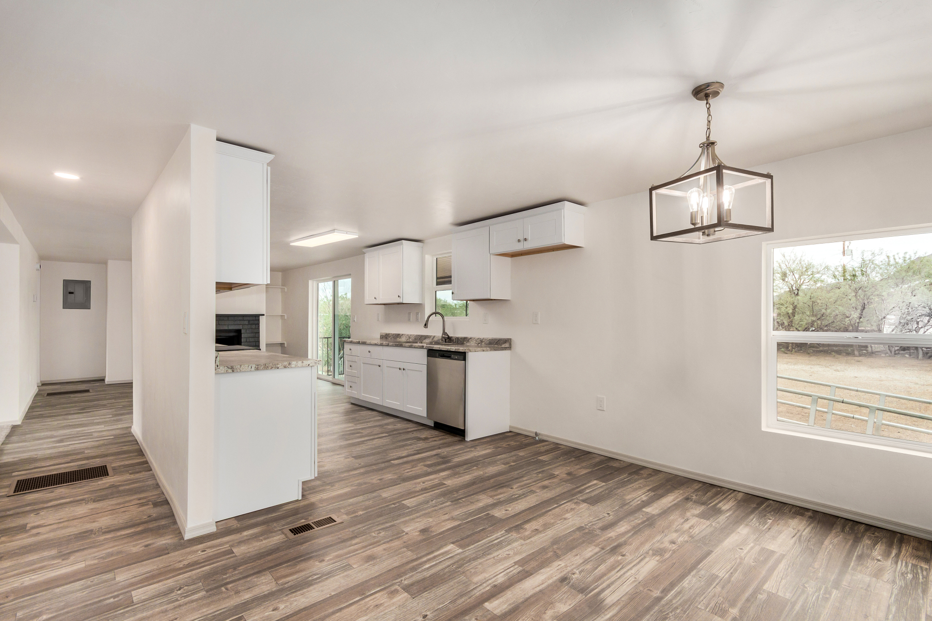 Welcome to this remodeled single-story home, perfectly situated on a HUGE 1.03-acre corner lot! Inside, find an inviting living room that sets the tone for the warm and open layout. Create fun memories in the sizable family room enhanced by a wood-burning fireplace and sliding glass doors that open to the back deck. Features like wood flooring, fresh paint, ceiling fans, and tons of natural light are worth mentioning. The eat-in kitchen comes with plenty of white cabinets and stainless steel appliances, making everyday cooking a delight. Head to the primary bedroom, which includes a six-panel door closet and a private bathroom with dual sinks. Enjoy mountain views from the relaxing deck. Hurry! This turn-key gem is the one for you!