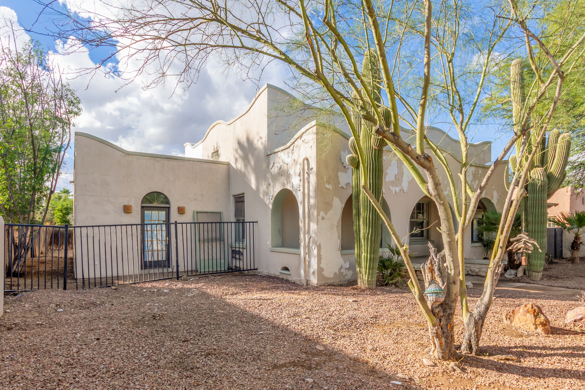 Take advantage of this fantastic opportunity! This fully-fenced 2-bedroom home welcomes you with a charming desert landscape & an inviting front patio. Inside, you'll find a living room with wall mouldings, wood look flooring, & a warm fireplace. The well-appointed kitchen comes with durable tile counters, matching backsplash, Saltillo tile flooring, ample cabinets, & a peninsula for extra prep space. You'll also find a dedicated family room for relaxing evenings. Upstairs, discover a cozy loft with plush carpeting, ideal for a media room. The backyard includes an open patio for outdoor relaxation. Conveniently located right across Himmel Park & close to UA-Tucson, bus stops, restaurants, & shopping. Don't miss it!! Agent/Owner