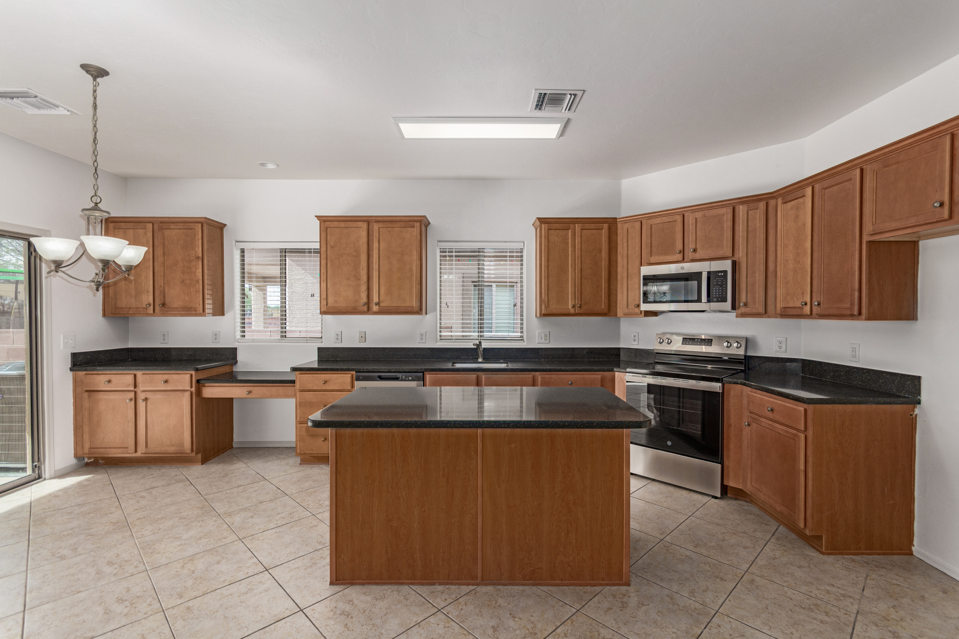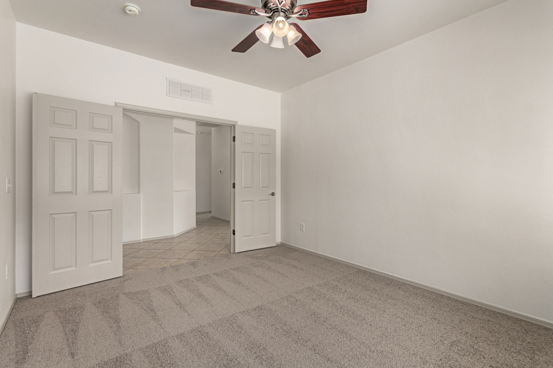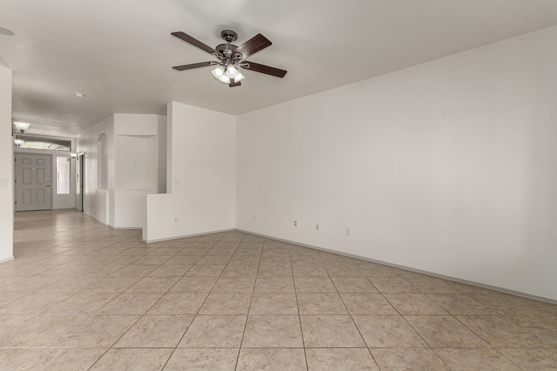 This is it! Presenting this recently renewed 3-bedroom home packed with thoughtful features and truly move-in ready. You'll be warmly welcomed by the inviting living room that seamlessly connects to the dining area and kitchen. Tile flooring, fresh paint, ceiling fans, and abundant natural light are worth mentioning. Lovely kitchen offers a pantry, plenty of cabinets with crown moulding, stainless steel appliances, granite counters, a desk area, and a center island with a breakfast bar. Sizable main bedroom includes plush carpet, outdoor access, a bathroom with dual sinks, and a walk-in closet. The secondary bedrooms provide six-panel door closets for convenience. Imagine tranquil evenings under the covered patio, perfect for enjoying a good book or a refreshing drink. Don't miss it!