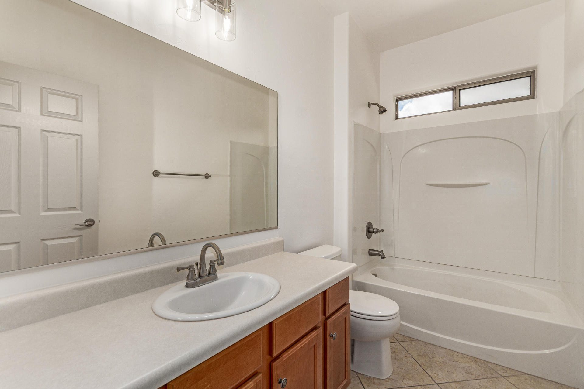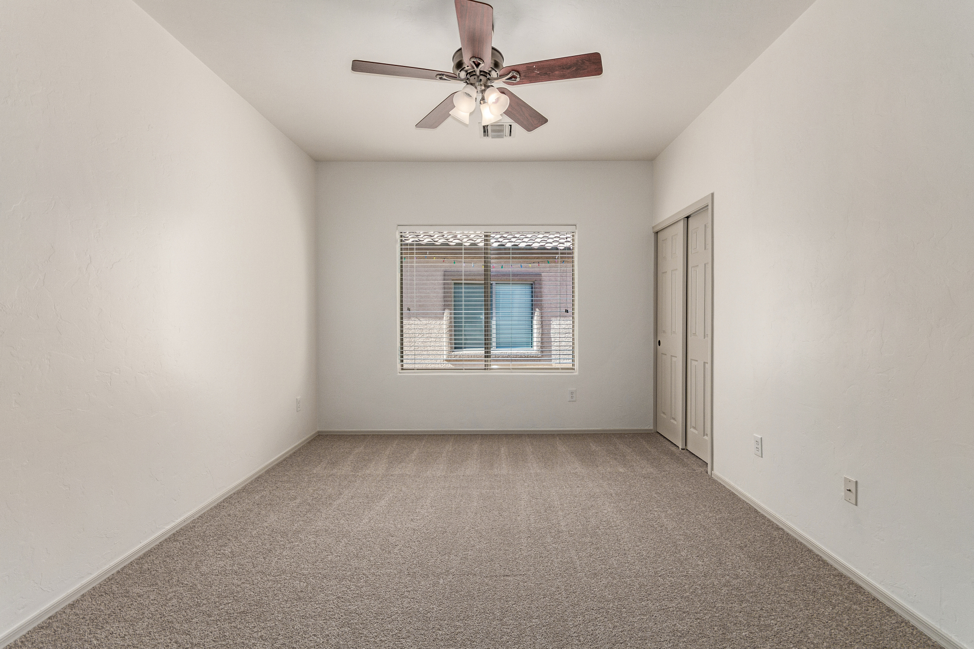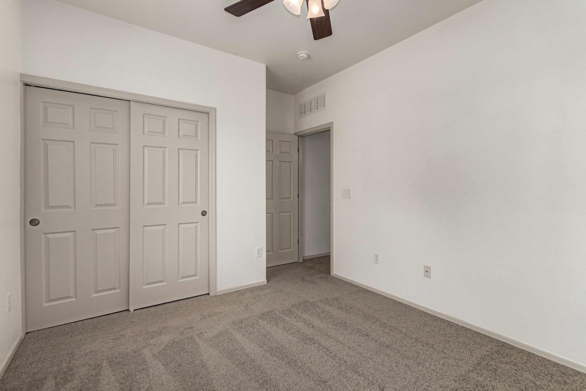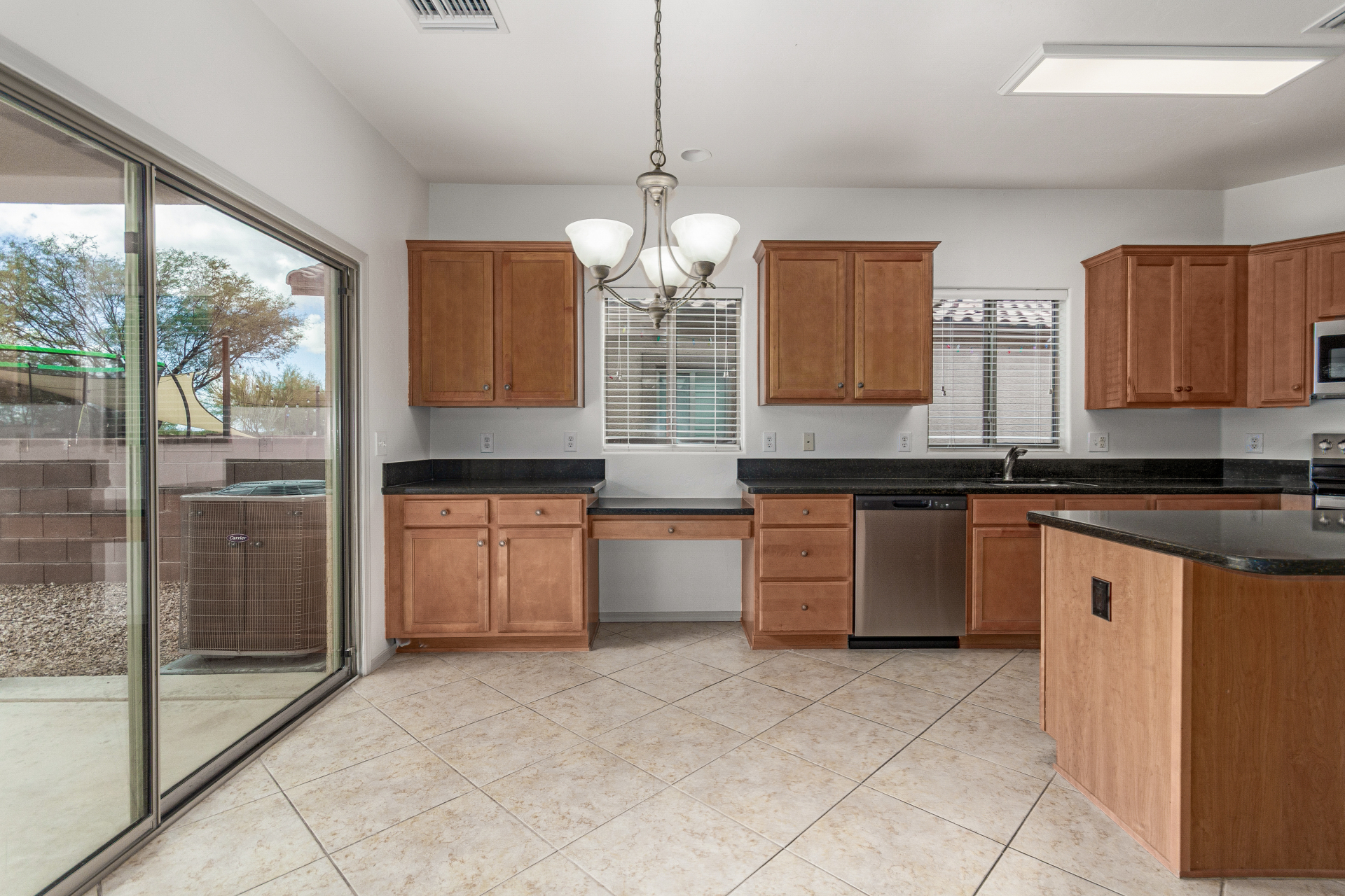 This is it! Presenting this recently renewed 3-bedroom home packed with thoughtful features and truly move-in ready. You'll be warmly welcomed by the inviting living room that seamlessly connects to the dining area and kitchen. Tile flooring, fresh paint, ceiling fans, and abundant natural light are worth mentioning. Lovely kitchen offers a pantry, plenty of cabinets with crown moulding, stainless steel appliances, granite counters, a desk area, and a center island with a breakfast bar. Sizable main bedroom includes plush carpet, outdoor access, a bathroom with dual sinks, and a walk-in closet. The secondary bedrooms provide six-panel door closets for convenience. Imagine tranquil evenings under the covered patio, perfect for enjoying a good book or a refreshing drink. Don't miss it!