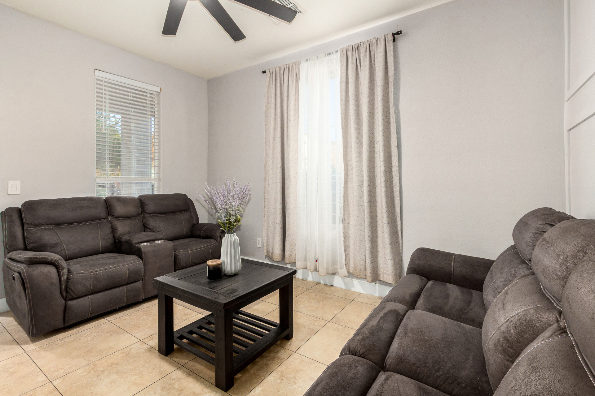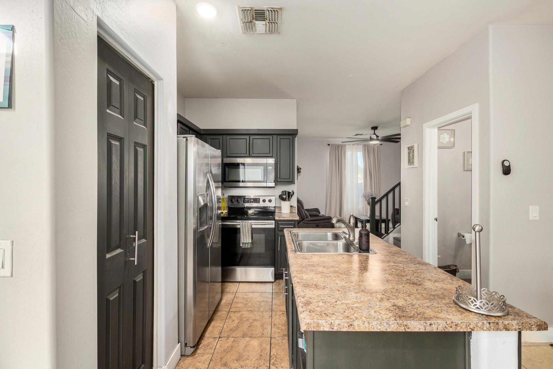This lovely 3-bedroom home is the one you've been searching for! Discover a serene living room with high ceilings, a neutral palette, blinds, and durable tile flooring. The eat-in kitchen comes with custom wood cabinets with crown moulding, stainless steel appliances, a pantry, and a center island for extra prep space. Upstairs, you'll find a versatile loft ideal for additional living space. The primary bedroom boasts an ensuite with double sinks and ample closet space. Venture out onto the balcony, offering serene views of the neighborhood. Unwind on the spacious open patio, perfect for a good book or refreshing drinks. Conveniently located close to restaurants, schools, shopping, and bus stops. Make it yours!