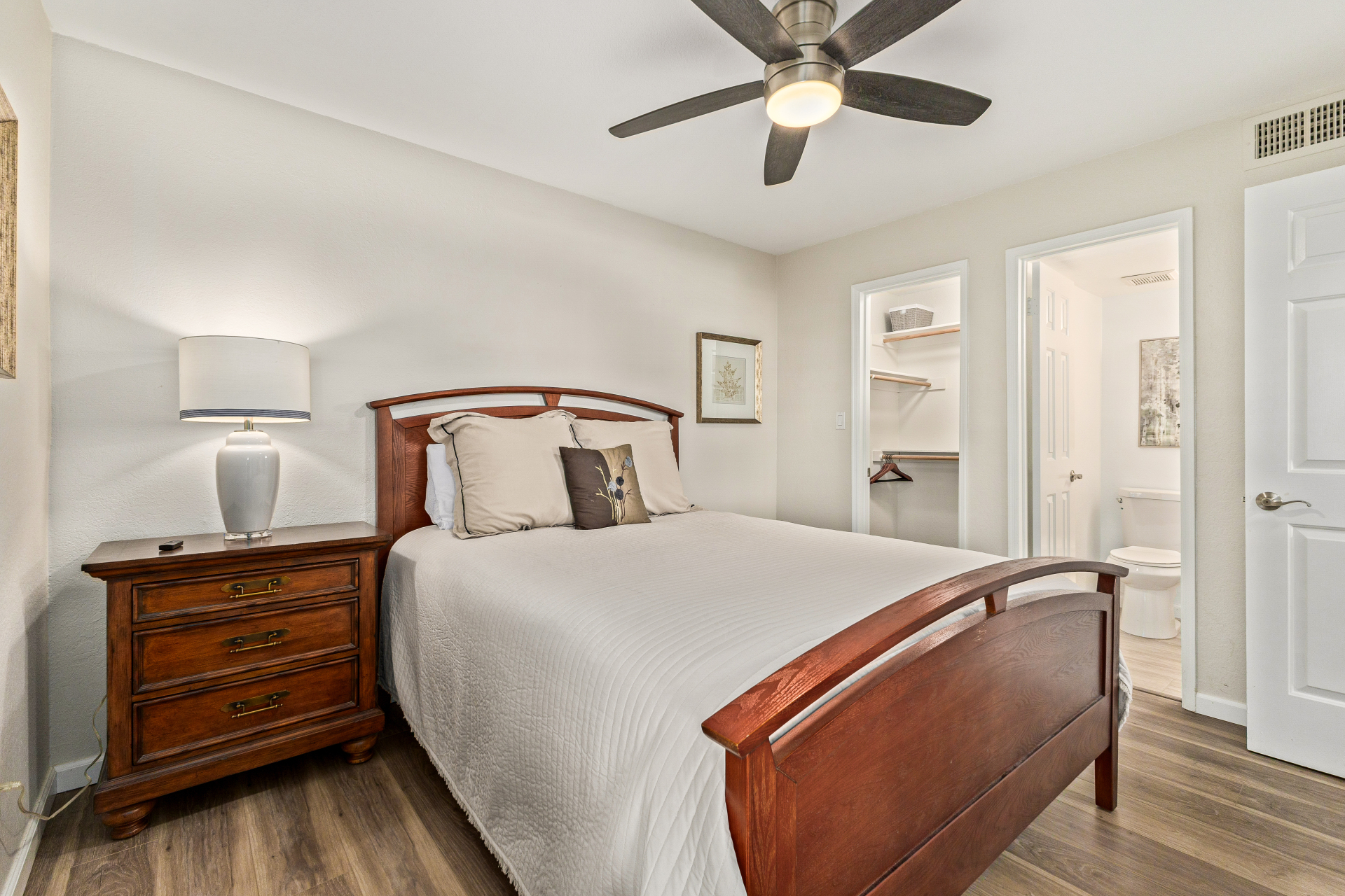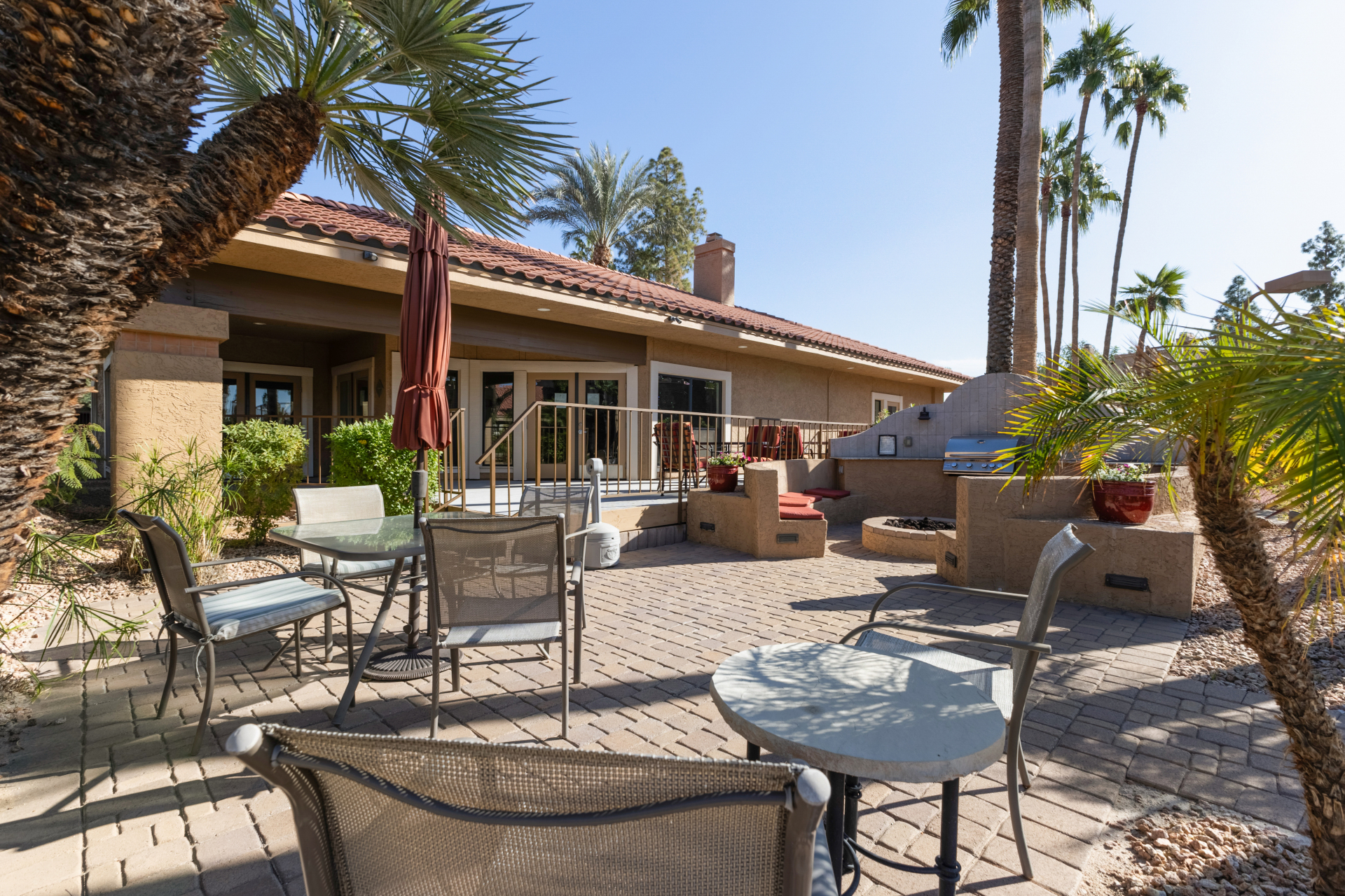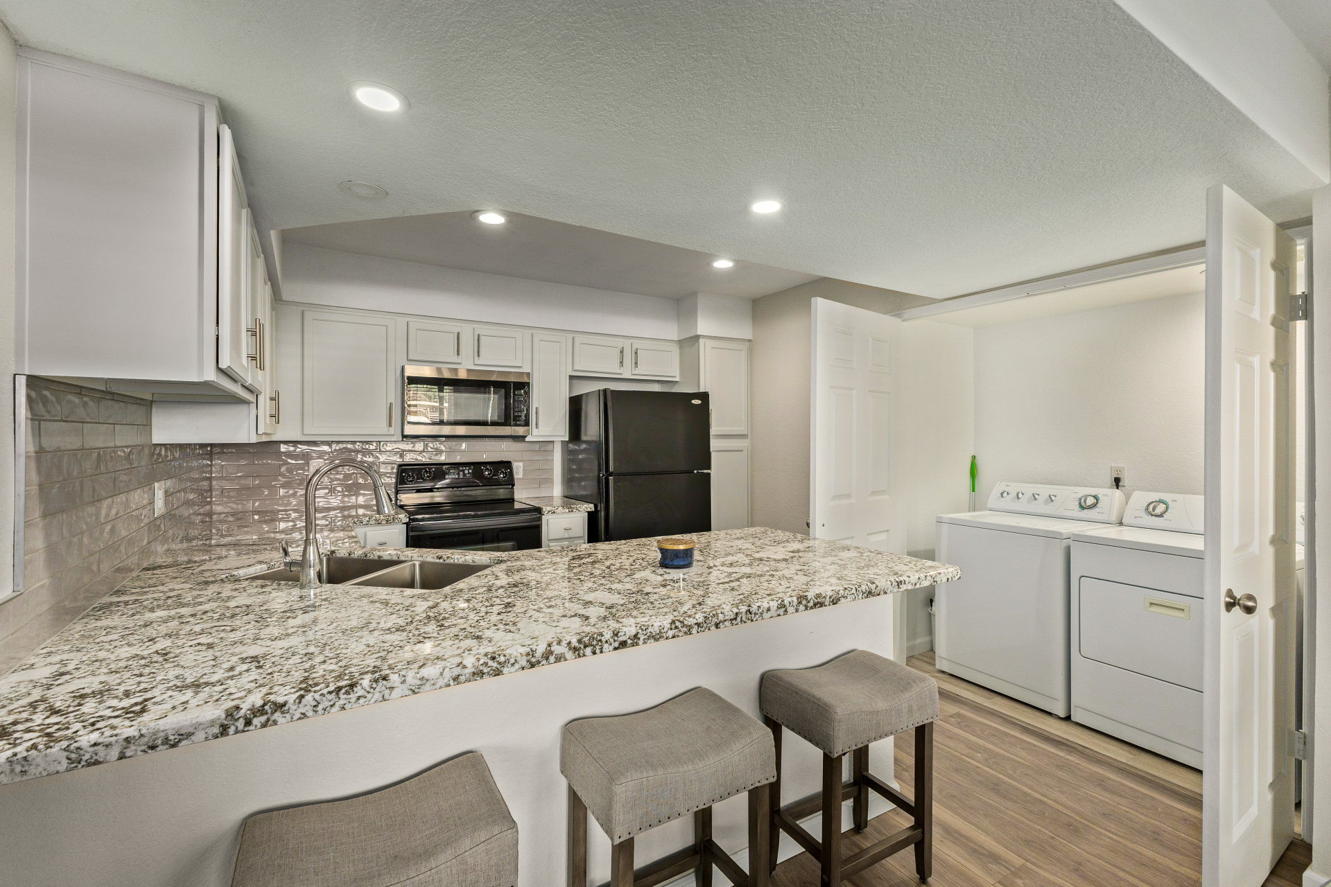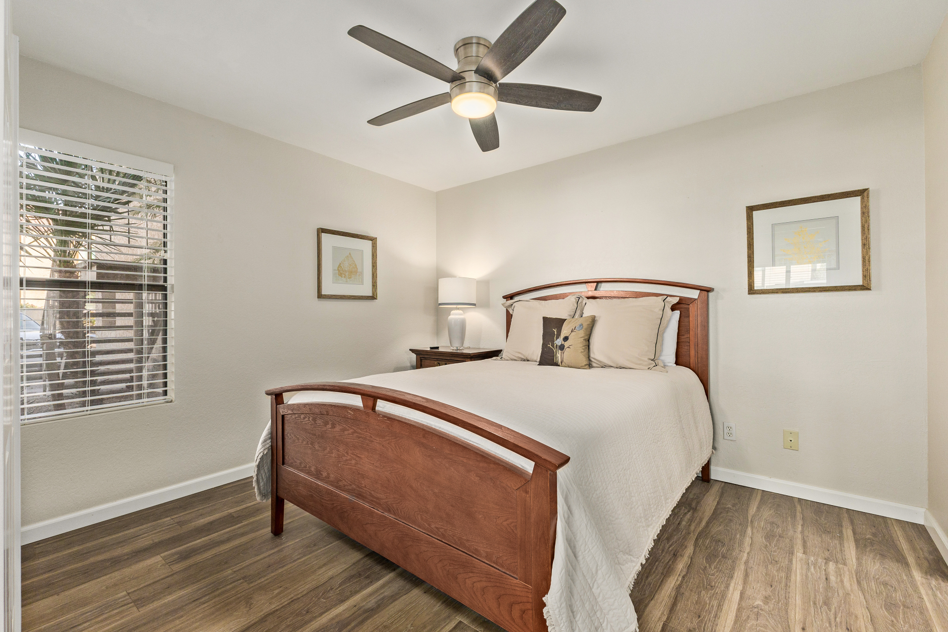 This charming 2-bedroom condo awaits you in the desirable McCormick Ranch! Explore the bright interior, showcasing wood-look flooring, a fireplace to add warmth, and a soothing palette that creates a cozy ambiance throughout. Whip up your signature dishes in the impeccable kitchen, equipped with ample cabinetry, tile backsplash, a granite peninsula, and built-in essentials. The primary retreat promises a good night's sleep and boasts a bathroom with double sinks and a closet. Enjoy your morning brew under the cozy covered patio, and don't forget to visit the community's pool, spa, clubhouse, and other amenities for a relaxing time! This home is a must-see!