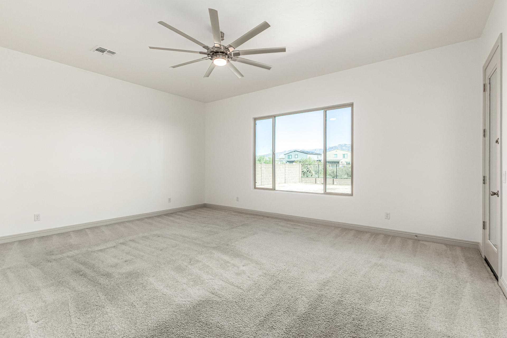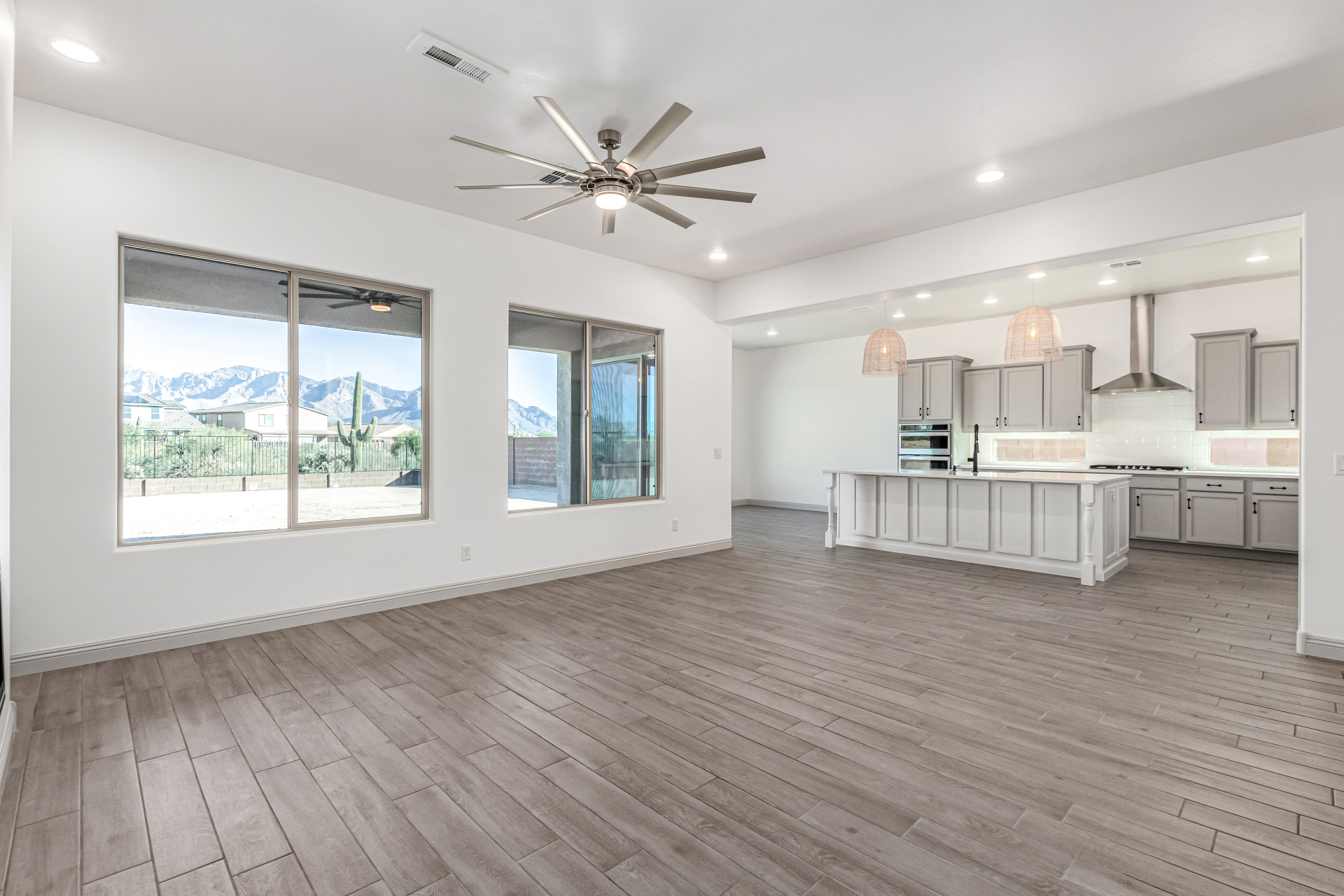 Your dream cul-de-sac home is here! This lovely 4-bedroom residence welcomes you with a 3-car garage and majestic mountain views that provide a picturesque backdrop. Discover a spacious open layout with high ceilings, a soothing palette, recessed lighting, attractive wood-look flooring, and an inviting fireplace for intimate moments with loved ones. The stunning kitchen boasts granite counters, chic pendant lighting, abundant cabinetry with crown moulding, a tile backsplash, stainless steel appliances, a pantry, and an island with a breakfast bar. The primary bedroom features plush carpeting, direct backyard access, an ensuite with dual sinks, and a walk-in closet. Imagine peaceful afternoons in the sizeable backyard, which offers a covered patio and ample space for crafting your dream outdoor oasis. Don't miss out on this incredible gem!