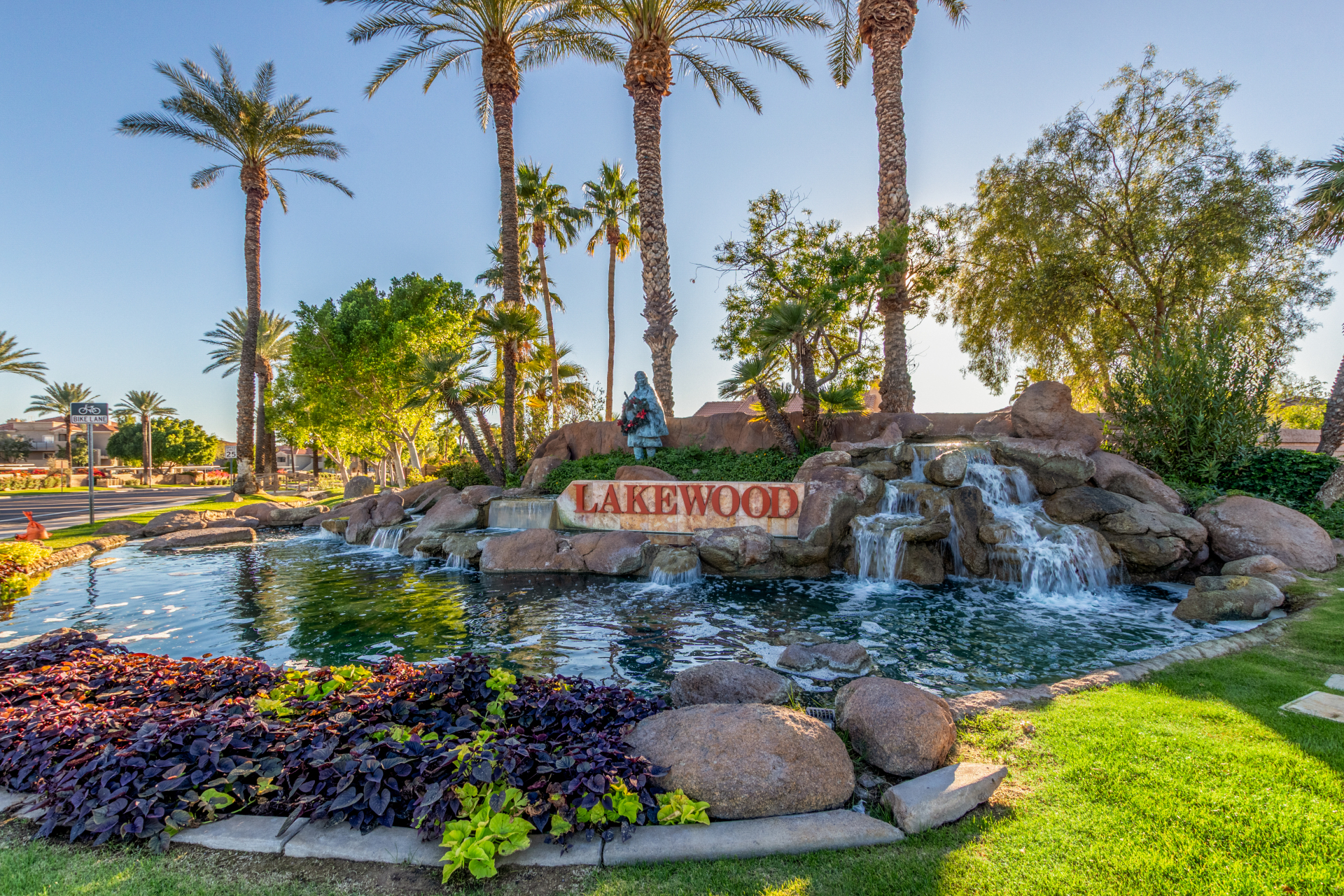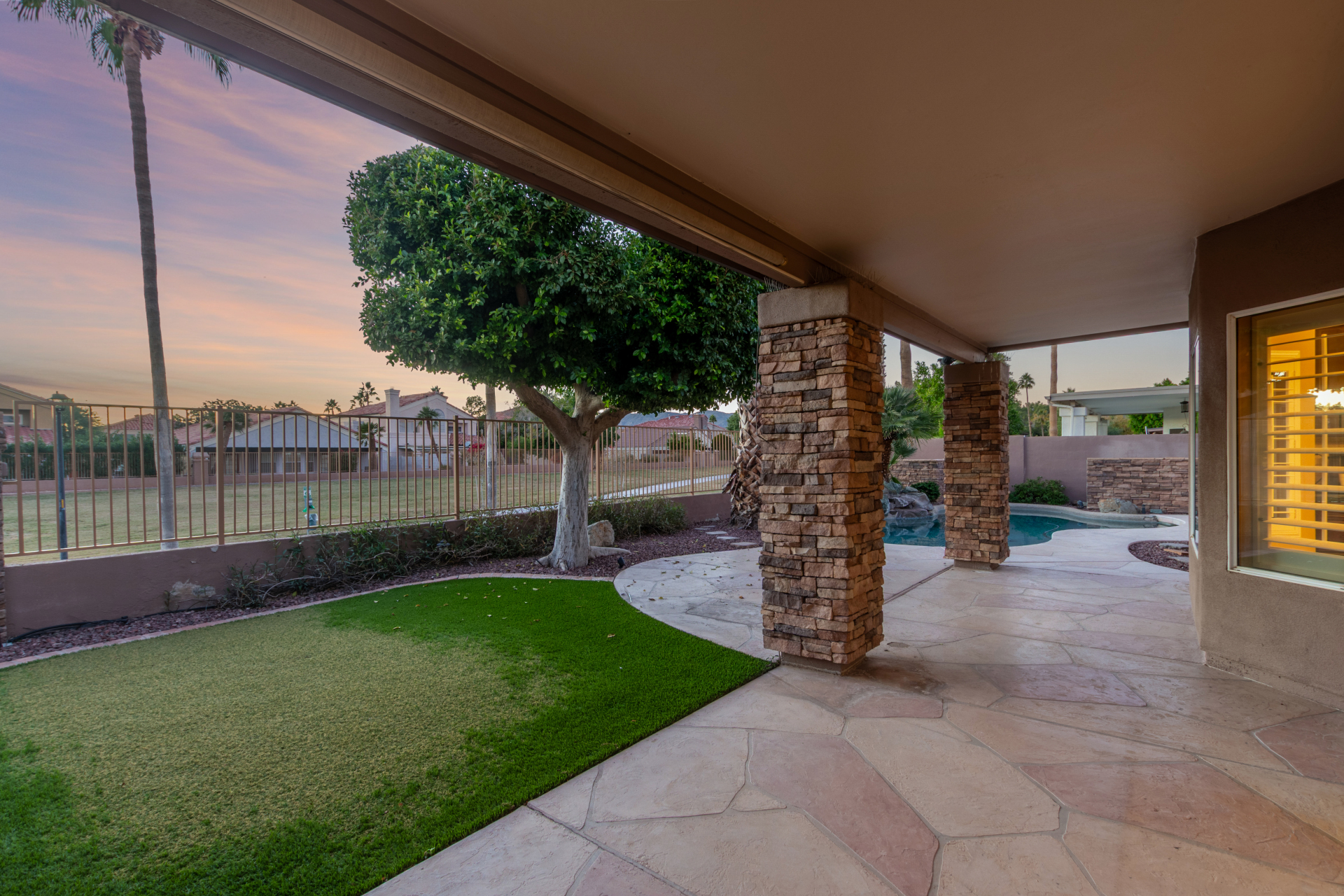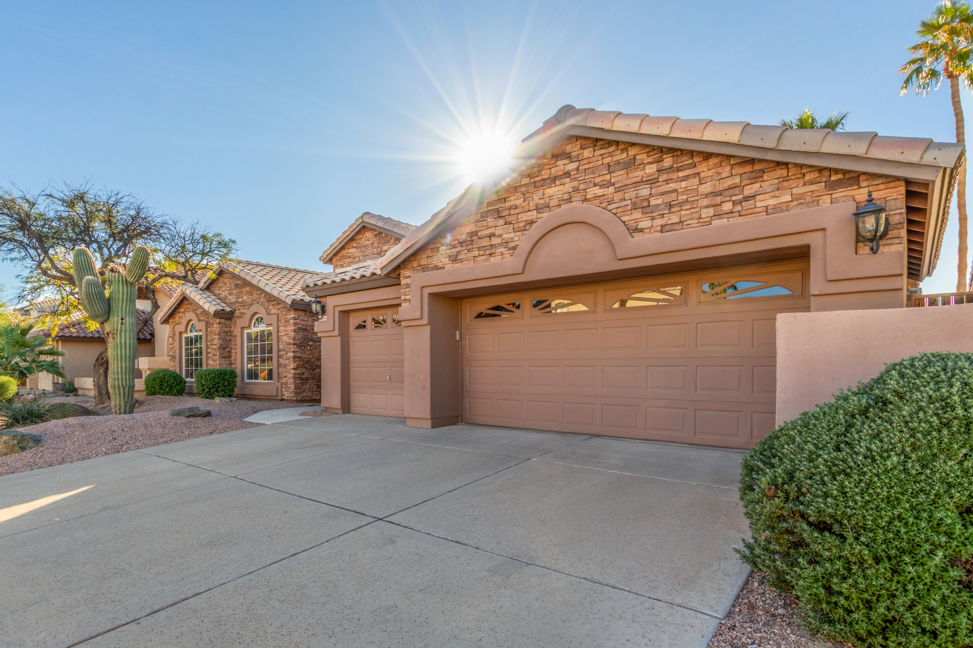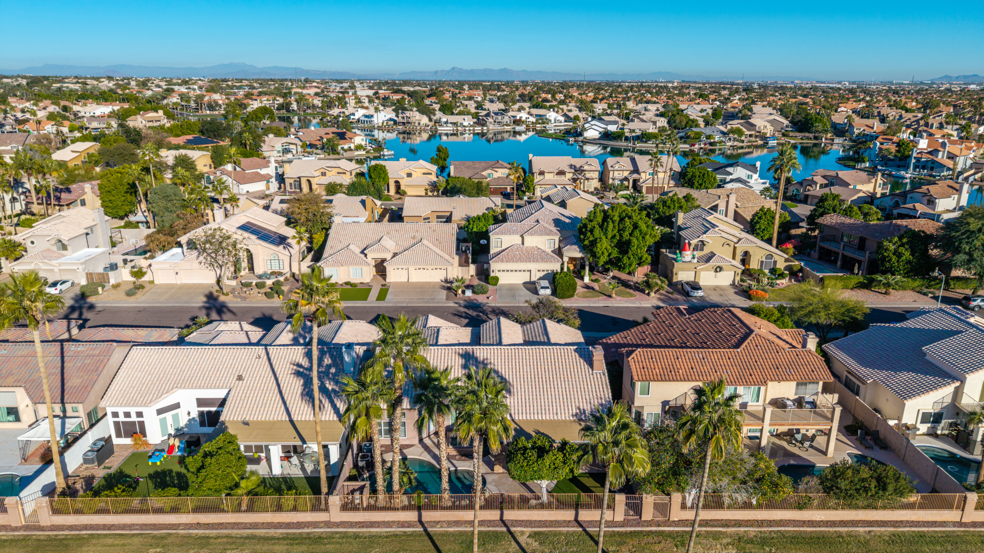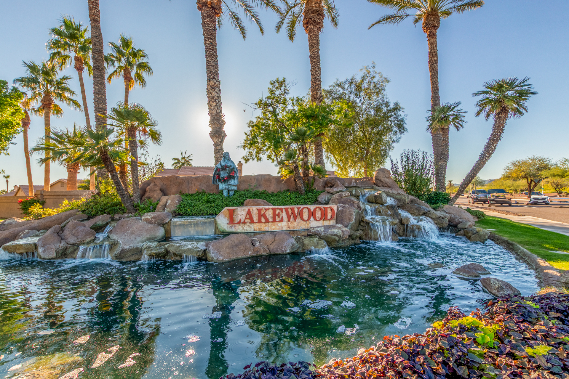 Nestled directly behind the community park set between two serene lakes, this stunning home is ready for you! A stone-accented façade, desert landscaping, & a 3-car garage w/built-in cabinets create impressive curb appeal enhanced by a custom ironwork front door. Discover a welcoming living room, formal dining, & cozy family room. Plantation shutters, recessed lighting, vaulted ceilings, & striking stone-accented gas fireplace can’t be left unsaid. A convenient powder room enhances functionality! The eat-in kitchen showcases staggered cabinets, a walk-in pantry, granite counters, a stone backsplash, SS appliances, & a large island w/breakfast bar. Spacious main bedroom offers French door access to the outdoors & a spa-like ensuite w/dual sinks, jetted tub, glass-enclosed rain shower, & generous walk-in closet. Downstairs, the finished basement provides even more living space with soft carpet and a media niche! The backyard is an entertainer’s paradise with a view fence, full-length covered patio, hot tub.