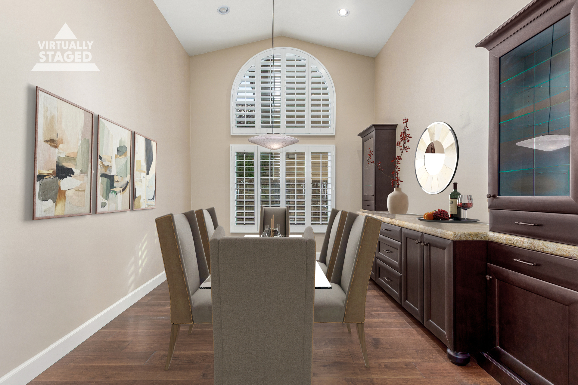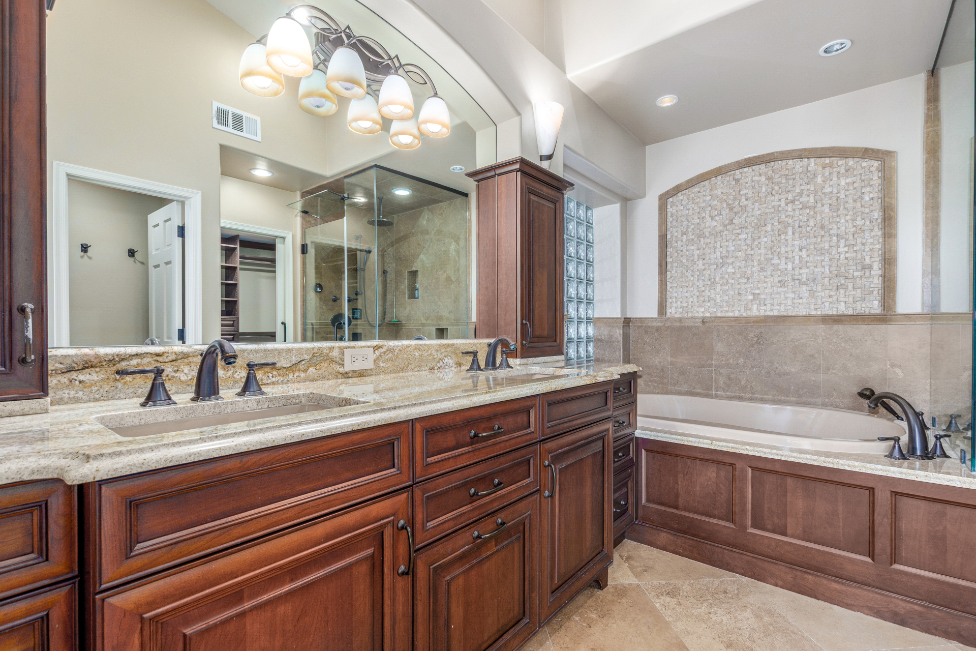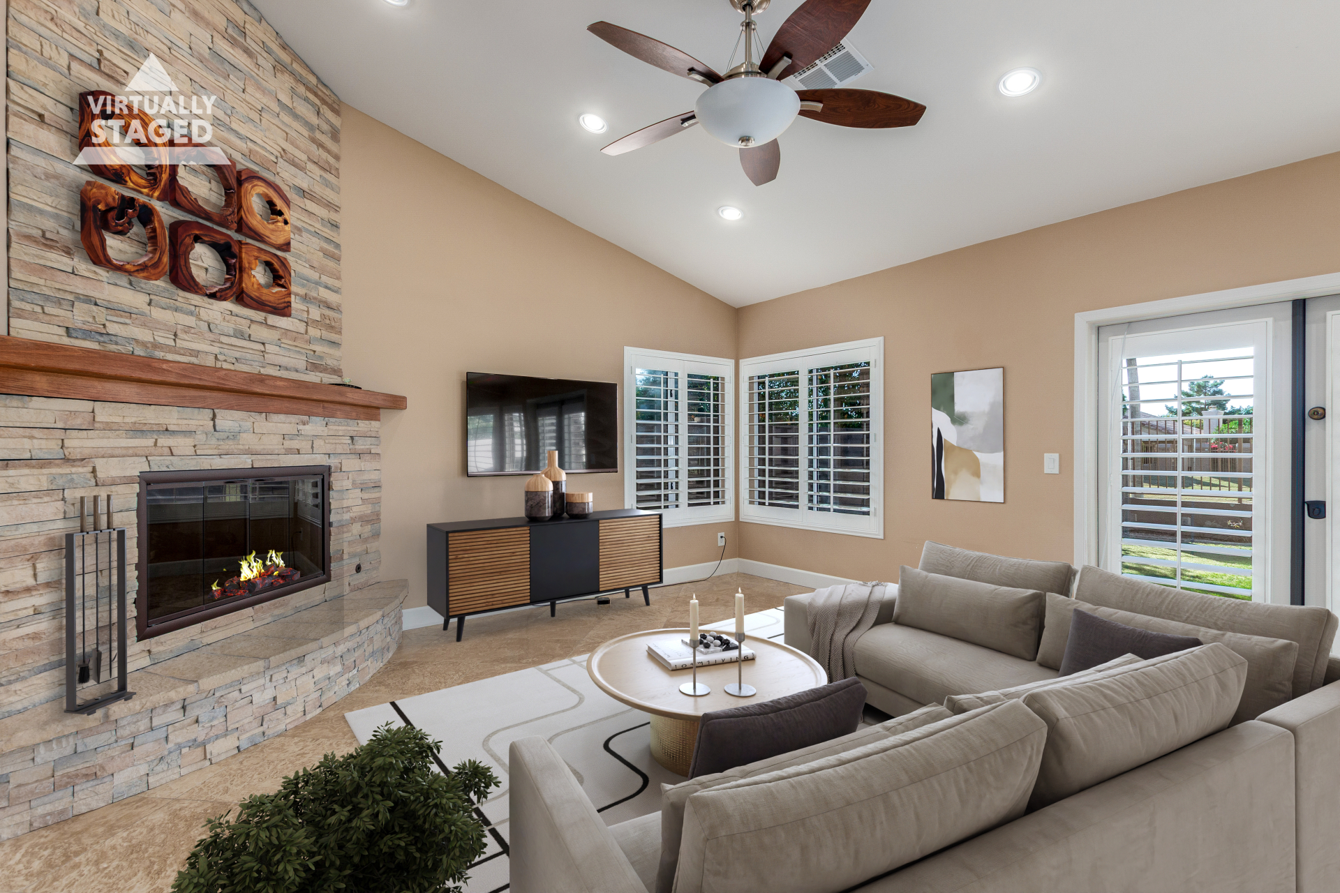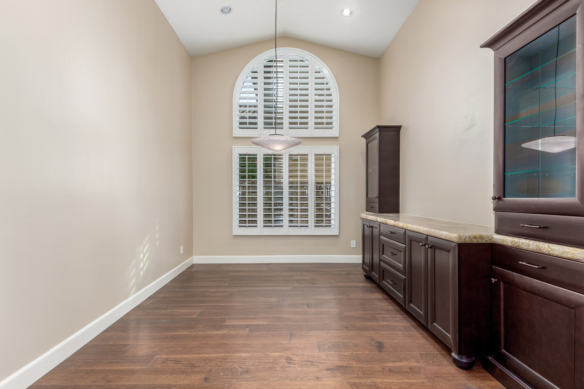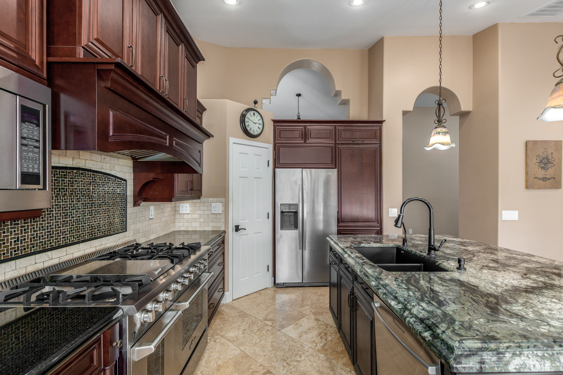 Nestled directly behind the community park set between two serene lakes, this stunning home is ready for you! A stone-accented façade, desert landscaping, & a 3-car garage w/built-in cabinets create impressive curb appeal enhanced by a custom ironwork front door. Discover a welcoming living room, formal dining, & cozy family room. Plantation shutters, recessed lighting, vaulted ceilings, & striking stone-accented gas fireplace can’t be left unsaid. A convenient powder room enhances functionality! The eat-in kitchen showcases staggered cabinets, a walk-in pantry, granite counters, a stone backsplash, SS appliances, & a large island w/breakfast bar. Spacious main bedroom offers French door access to the outdoors & a spa-like ensuite w/dual sinks, jetted tub, glass-enclosed rain shower, & generous walk-in closet. Downstairs, the finished basement provides even more living space with soft carpet and a media niche! The backyard is an entertainer’s paradise with a view fence, full-length covered patio, hot tub.