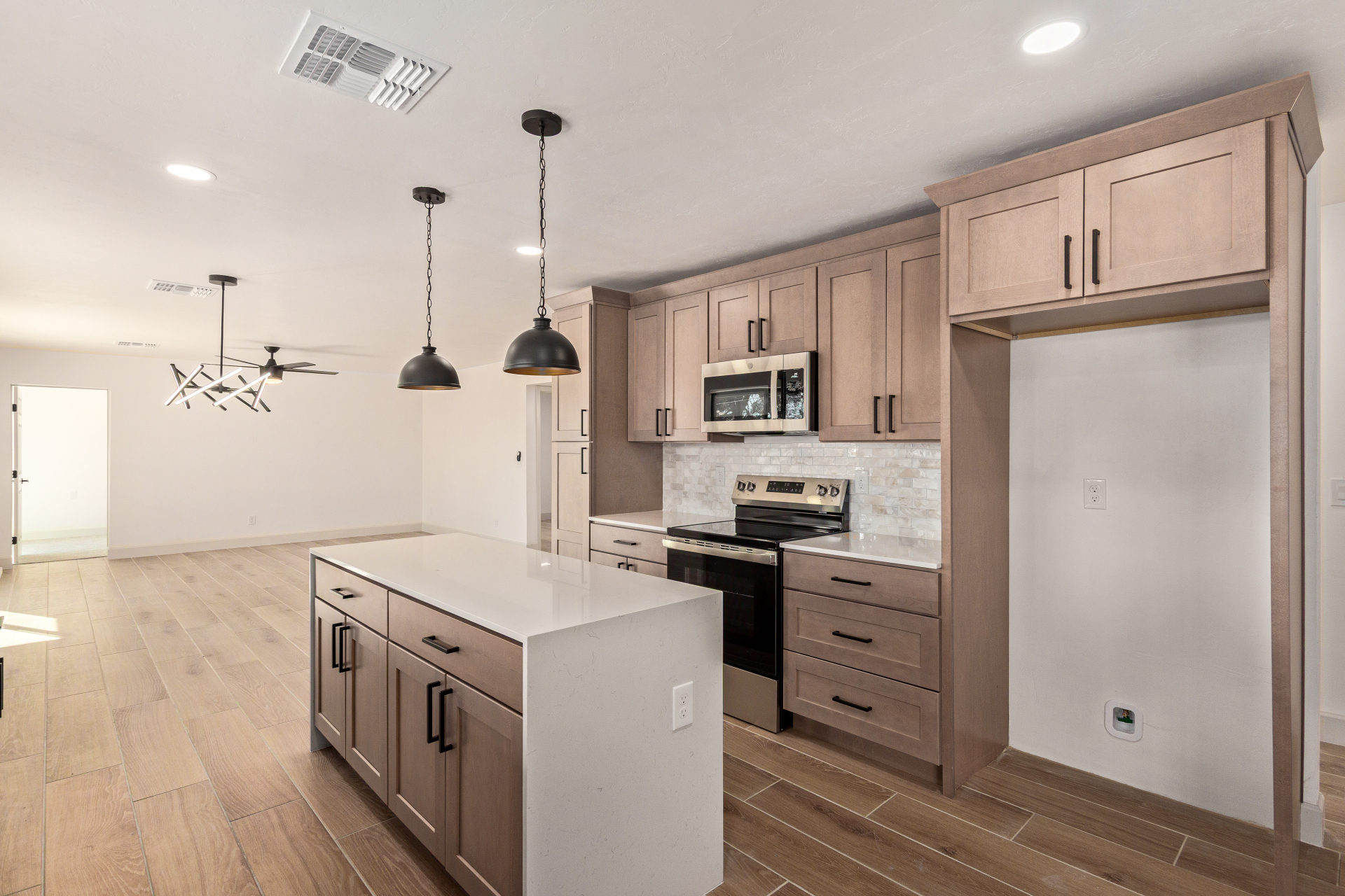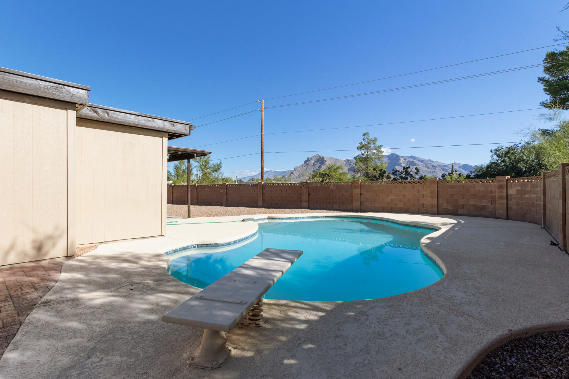 Discover all the charm of this lovely single-story pool home in a peaceful cul-de-sac! The gorgeous brick facade, 2-car garage & easy-care landscape are just the beginning! Step inside to fall in love with a bright and spacious interior, showcasing tile flooring, sliding doors to the patio, abundant natural light, a tiled fireplace to add warmth, and neutral colors. The impeccable kitchen boasts shaker cabinets adorned with crown molding, tile backsplash, quartz countertops, SS appliances, and an island. The main bedroom promises a good night's sleep and displays a closet and a bathroom. Get ready for weekend grills in the backyard, complete with a covered patio ideal for relaxation, ample sitting space & a sparkling pool with a diving board for fun times! Hurry up, this gem won't last!