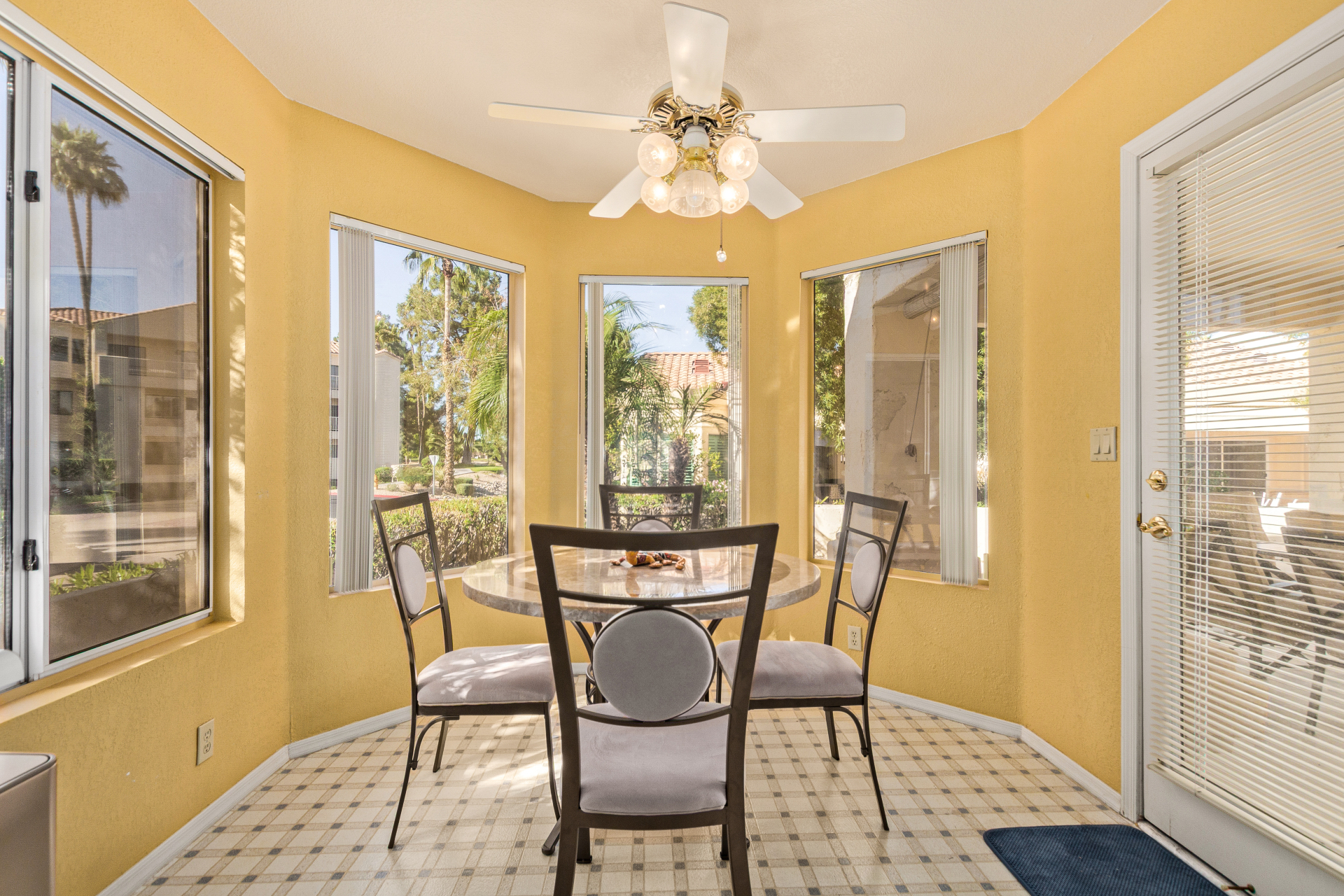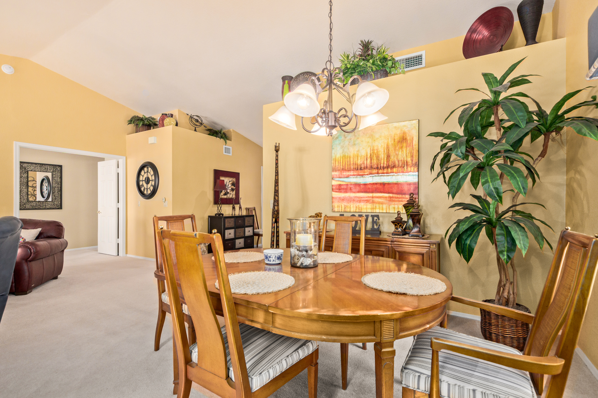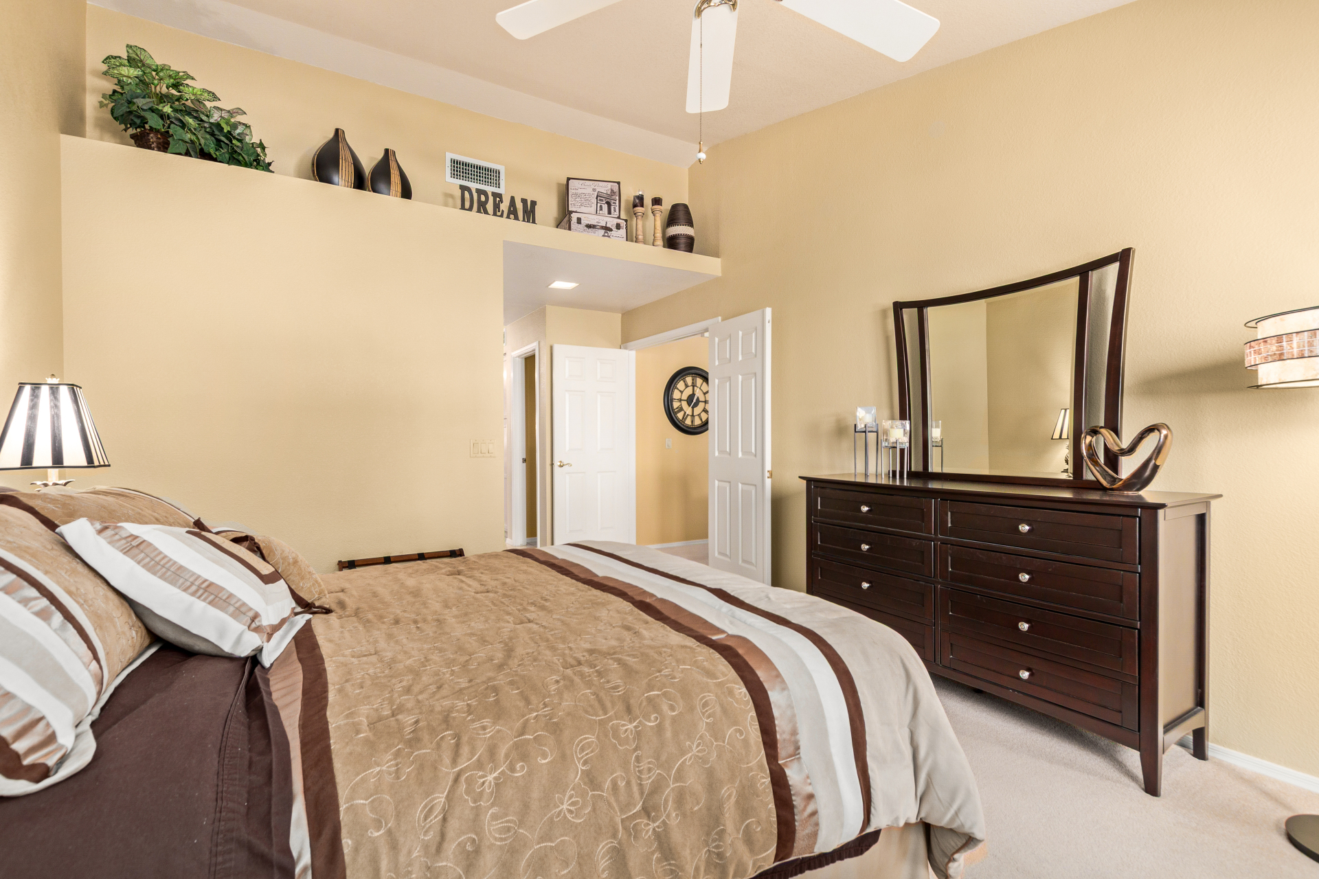 JUST BRING YOUR TOOTHBRUSH! This popular end-unit, St. Thomas model, located in a gated community, can be a turn-key home. Pride of ownership shows in this gently lived-in, immaculate home. The natural light floods into the cozy breakfast room from the bay windows and has patio access. The formal dining area flows into the great room for convenience and entertaining. The bedrooms are split for added privacy. You will find extra storage in the garage. Household furniture and other items are available for purchase outside of escrow. Newer HVAC, roof, sprinkler system. MOVE IN READY.