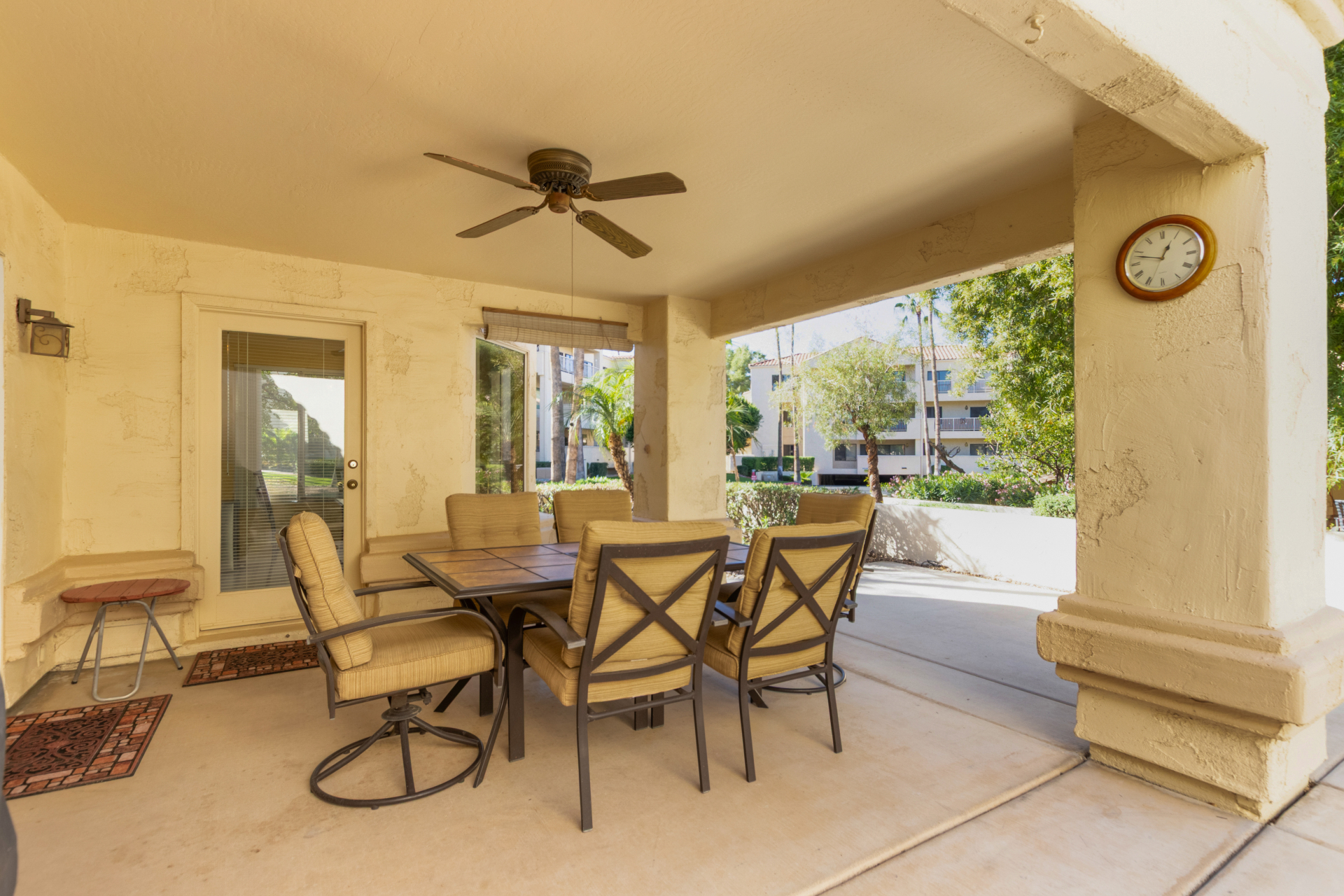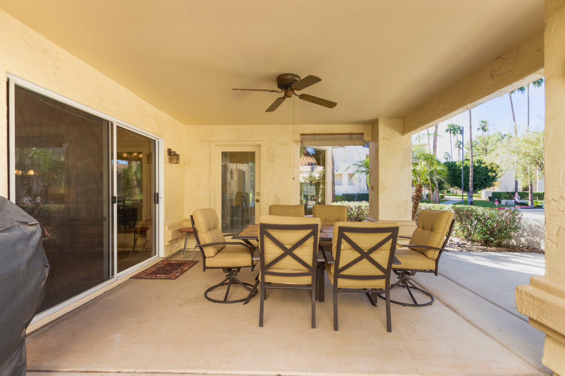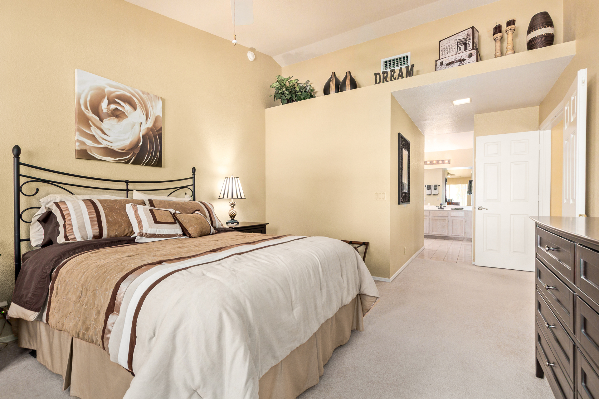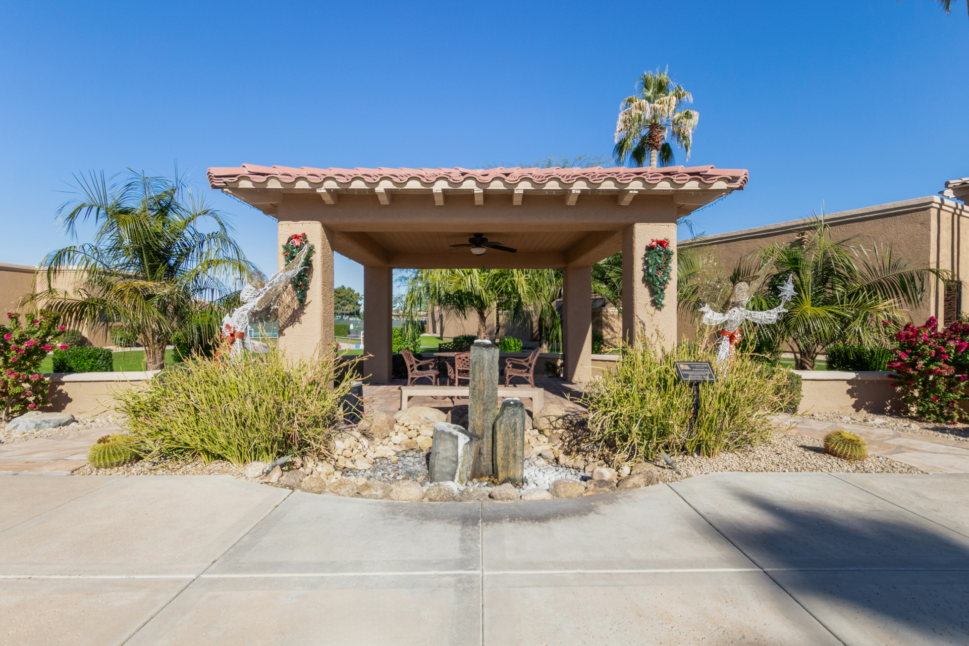 JUST BRING YOUR TOOTHBRUSH! This popular end-unit, St. Thomas model, located in a gated community, can be a turn-key home. Pride of ownership shows in this gently lived-in, immaculate home. The natural light floods into the cozy breakfast room from the bay windows and has patio access. The formal dining area flows into the great room for convenience and entertaining. The bedrooms are split for added privacy. You will find extra storage in the garage. Household furniture and other items are available for purchase outside of escrow. Newer HVAC, roof, sprinkler system. MOVE IN READY.