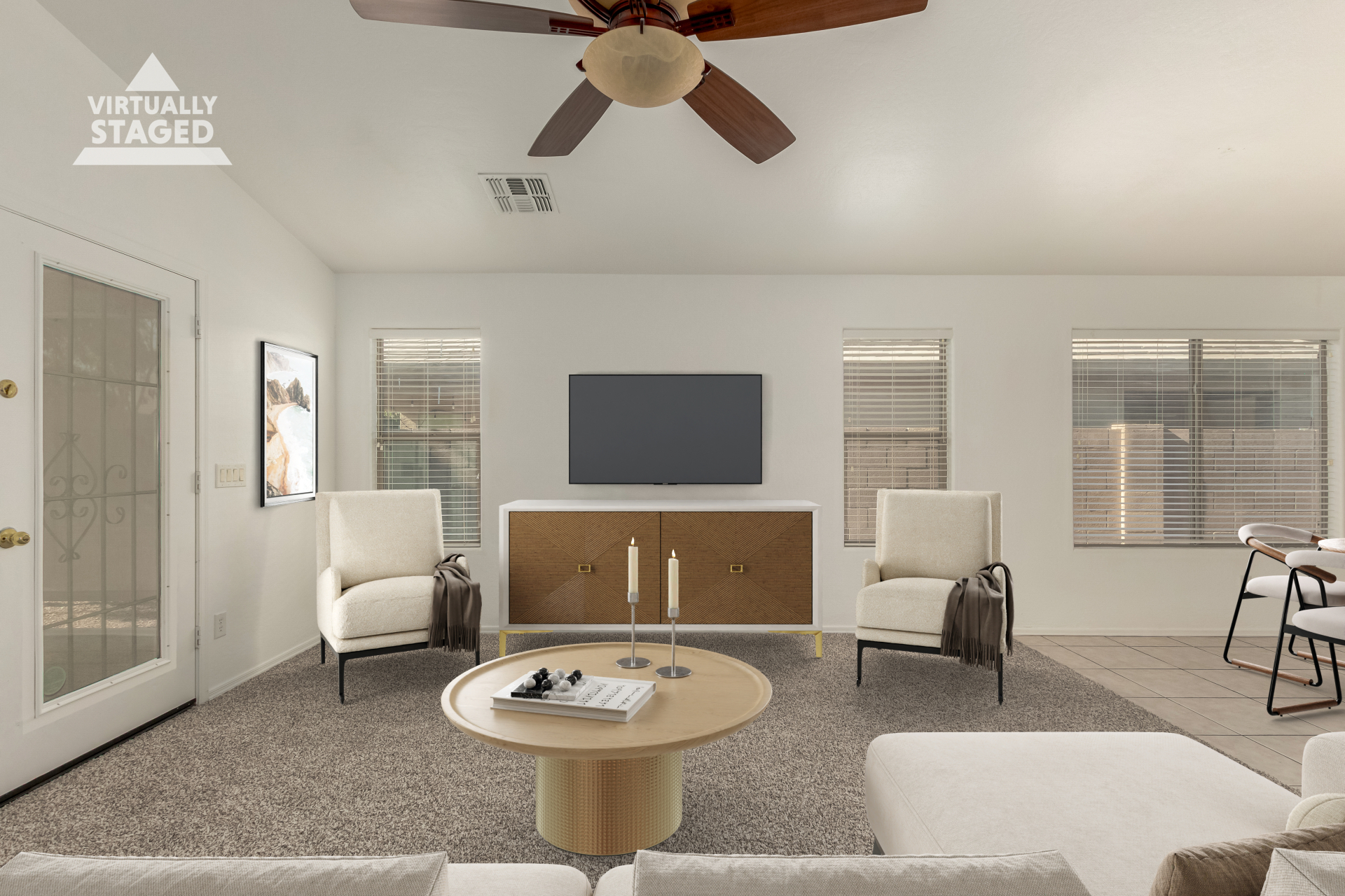 This move-in-ready home has fresh paint and new carpet, along with shiny new appliances and sleek quartz counters in the kitchen! This 4-bed, 3-bath beauty shows off vaulted ceilings and a roomy, easy-flow layout. The 3-car tandem garage is perfect for your wheels and weekend toys. Big closets and extra storage keep everything tucked away nicely. Unwind in your bubbly Jacuzzi tub, then fire up the grill on the spacious covered patio for laid-back evenings outside. Well cared for, with the A/C replaced in 2023, this home is the perfect blend of comfort and style!