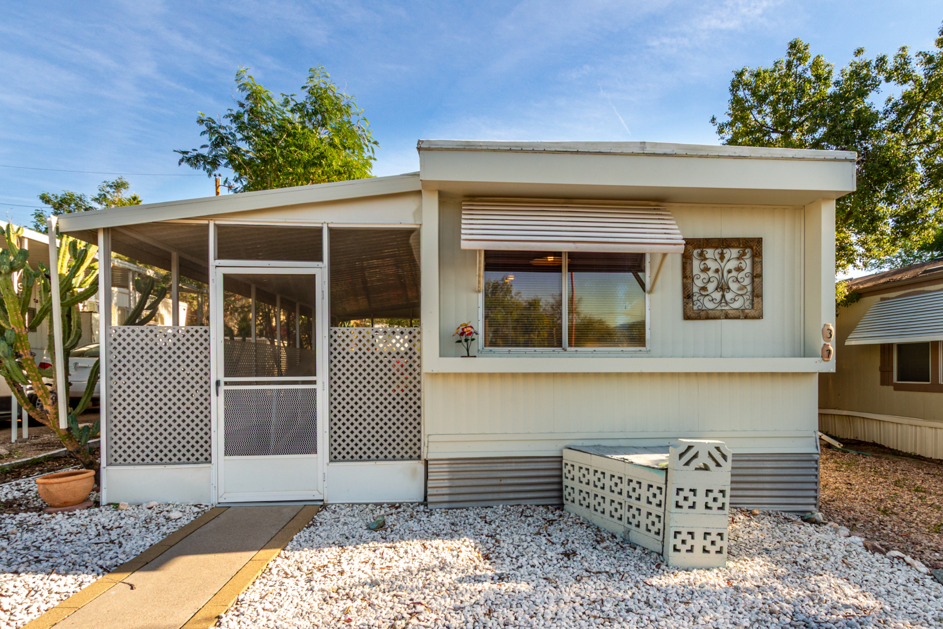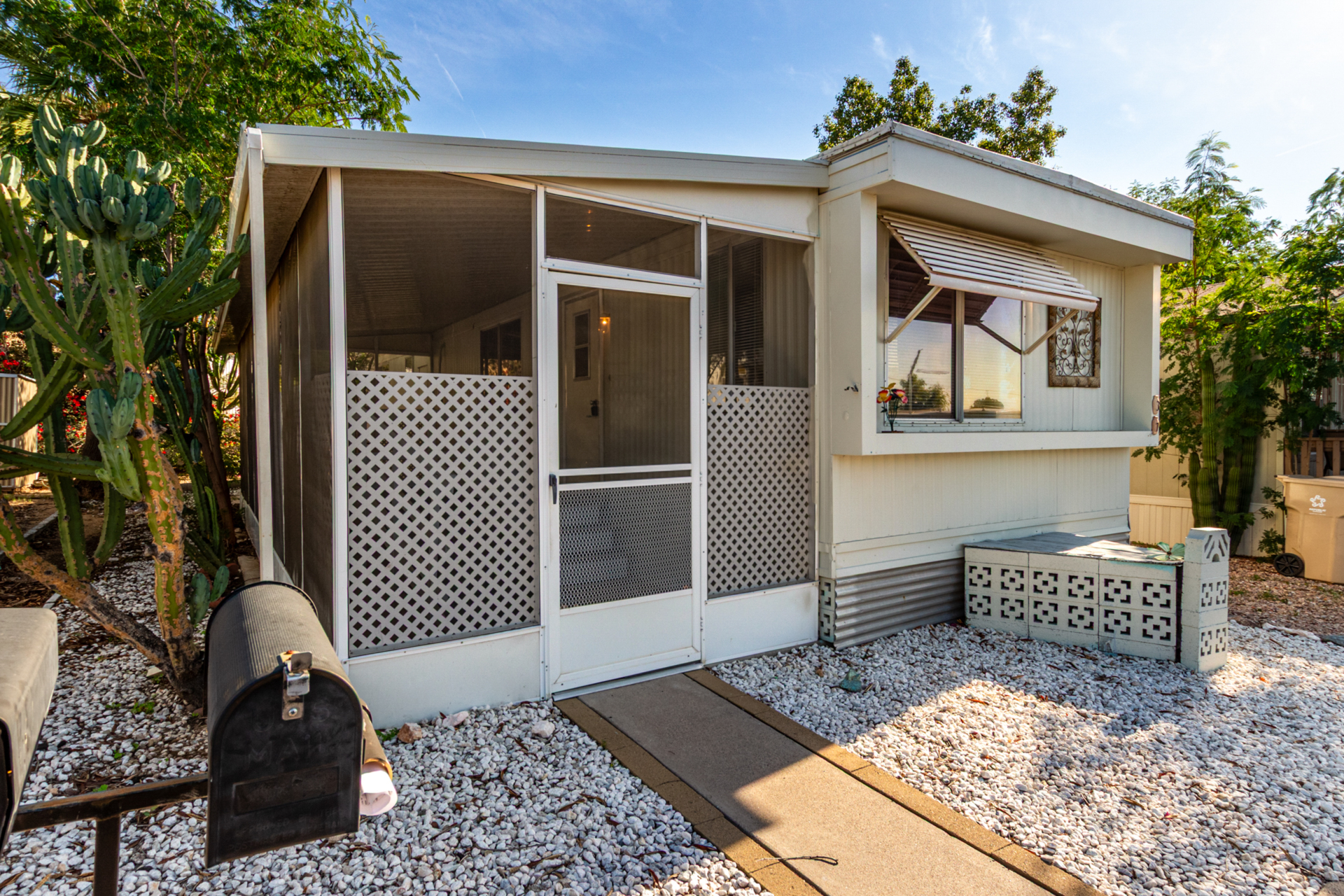 Enjoy the convenience and comfort of this lovely 1-bedroom, 1-bathroom manufactured home with beautiful mountain views! Inside, you'll find bright living spaces with wood-look flooring, abundant natural light, and an earthy palette that creates an inviting ambiance. Whip up your favorite dishes in the well-appointed kitchen, displaying ample cabinetry and counter space, with stainless steel appliances. The spacious bedroom boasts carpeting underfoot, and the bathroom has a tiled vanity. Out back, you'll have the laundry area and a storage shed for convenience. Don't forget to visit this vibrant adult community's amenities, including the pool, spa, pickleball, fitness center, and tennis court, just to mention a few! Welcome home!
