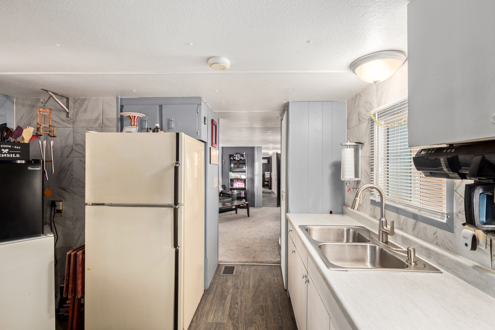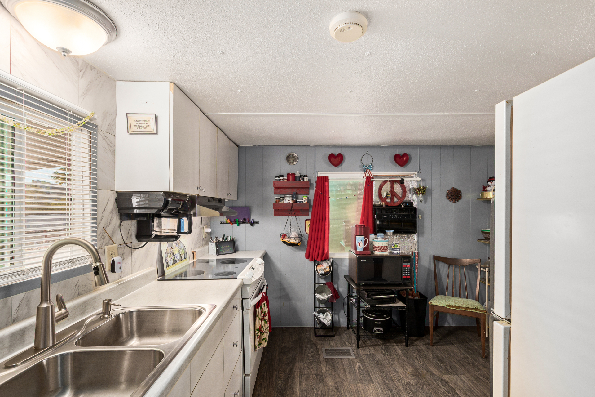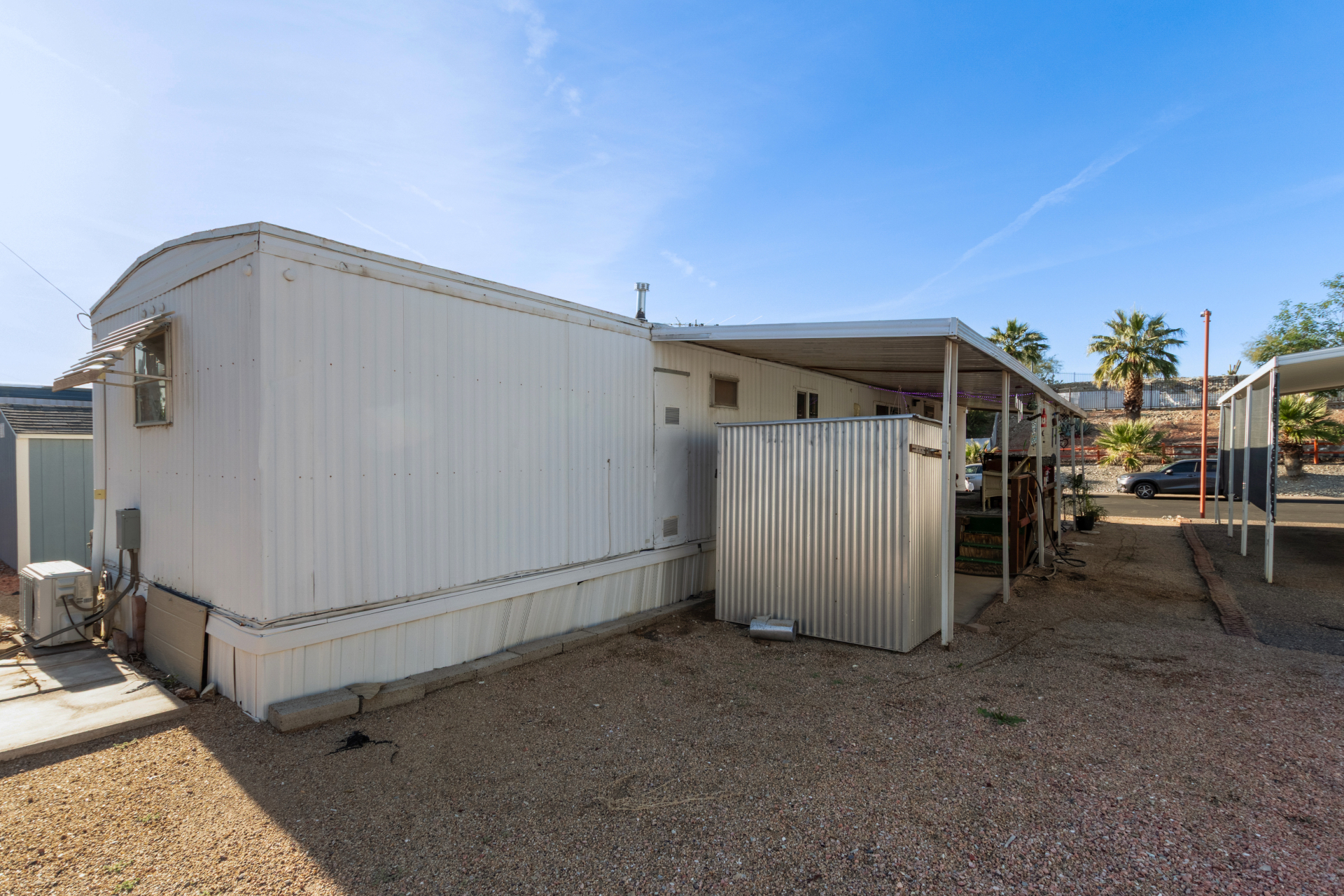 Find your charming retirement home in the 55+ gated Community of Holiday Spa Mobile Home Park! A cozy front porch is just the beginning, ideal for relaxation. The inviting interior showcases a welcoming living room, bountiful natural light, a designer palette, and wood-look flooring w/carpet in all the right places. The kitchen boasts built-in appliances, a pantry, and ample wood cabinetry. With 2 beds & 1 bath layout, this home is great for anyone looking to enjoy easy and low-maintenance living. The storage shed out the back ensure tools are organized. For added convenience, this gem comes with a carport parking. Located near the resort-style Community amenities, including a heated pool, spa, fitness center, clubhouse, BBQ areas, billiards, and so much more. Don't miss this opportunity!