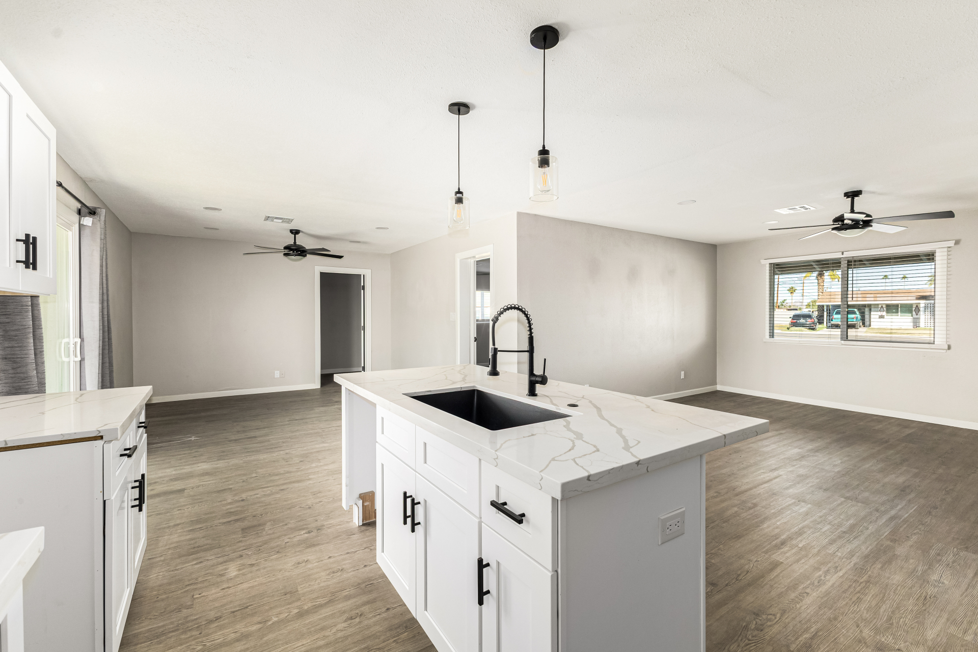 Home, sweet home! This adorable 4-bedroom gem awaits you in a prime corner lot in a quiet cul-de-sac! Recently remodeled & move-in-ready! Inside, you'll find warm and open living areas perfect for entertaining, featuring wood-look flooring & neutral paint that complements any decor. Whip up your signature dishes in the pristine kitchen, equipped with shaker-style cabinets, tile backsplash, quartz countertops & an island with a breakfast bar. The serene main bedroom showcases a closet & a private ensuite. Enjoy outdoor living in the backyard, complete with a covered patio where you can relax after a long day, and plenty of space for entertaining with an easy-maintenance landscape. Great location close to the freeway, close to downtown Tempe, close to everything!