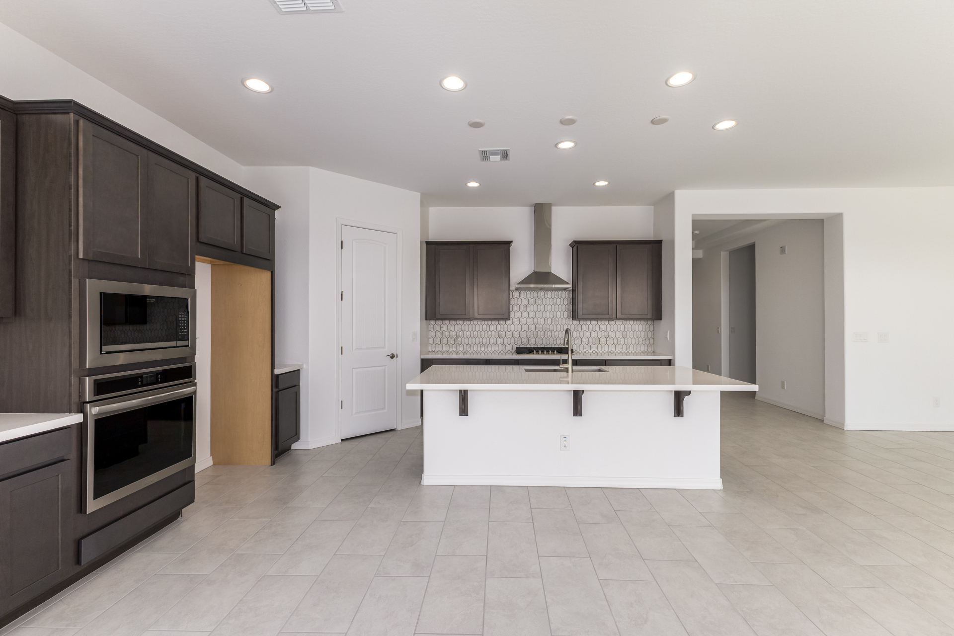 This stunning new home offers stylish finishes and modern comfort throughout! The kitchen features RICH DARK MAPLE CABINETS, QUARTZ countertops, a SLEEK DECORATIVE BACKSPLASH, and built-in stainless steel gas appliances with canopy hood. Elegant 12x24 Weathered White tile flooring, upgraded carpet, and satin nickel fixtures add a polished touch. Thoughtful upgrades like a pull-out trash drawer, pendant lighting prewire, and charming WAINSCOT-STYLE INTERIOR DOORS. Designed with quality and detail in mind, this home is READY FOR MOVE-IN!