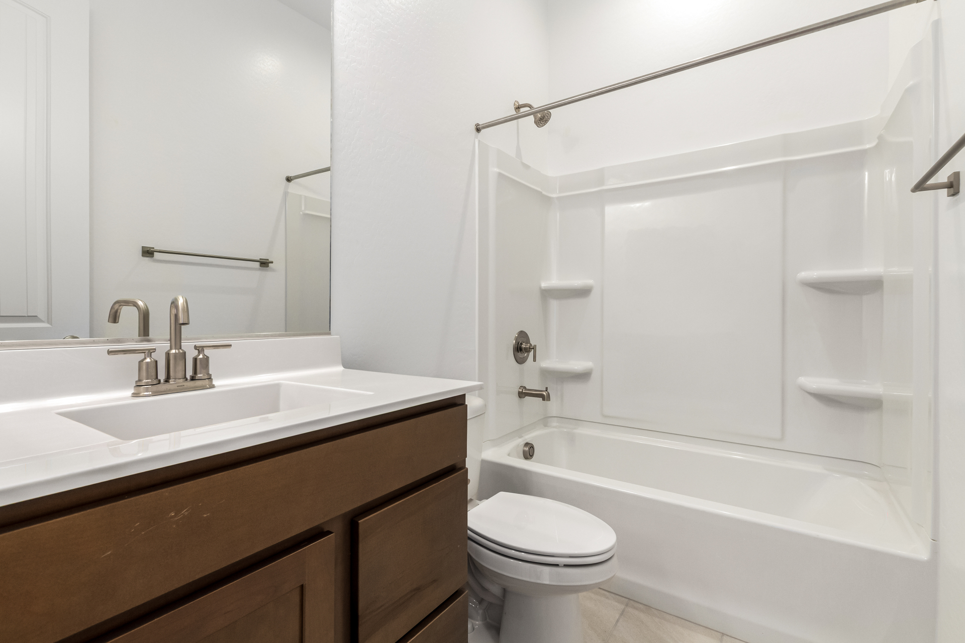 Welcome to this beautifully designed 4-bed, 3-bath home in Arroyo Seco. The kitchen features stainless steel appliances, a gas cooktop, quartz countertops in a soft white Carrara look, 42'' maple cabinets in a warm Latte finish, and a stylish picket-tile backsplash. Enjoy tall 8' doors, upgraded tile floors in a clean light-gray tone, plush carpet in the bedrooms, and modern brushed-nickel fixtures. With a spacious layout and fresh, neutral colors throughout, this home is move-in ready and perfect for everyday living.