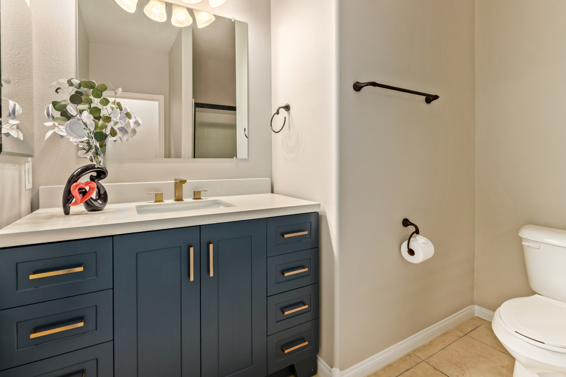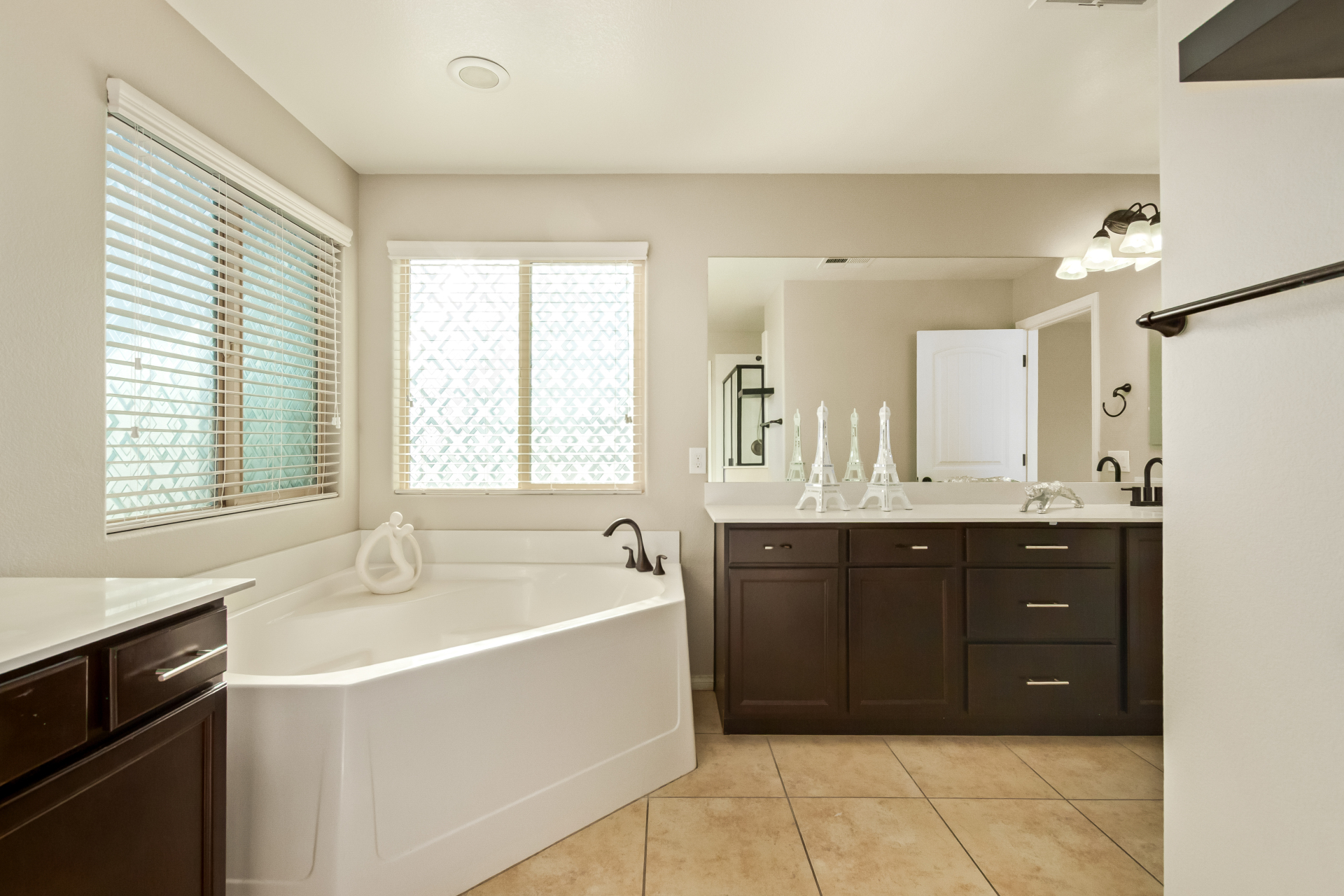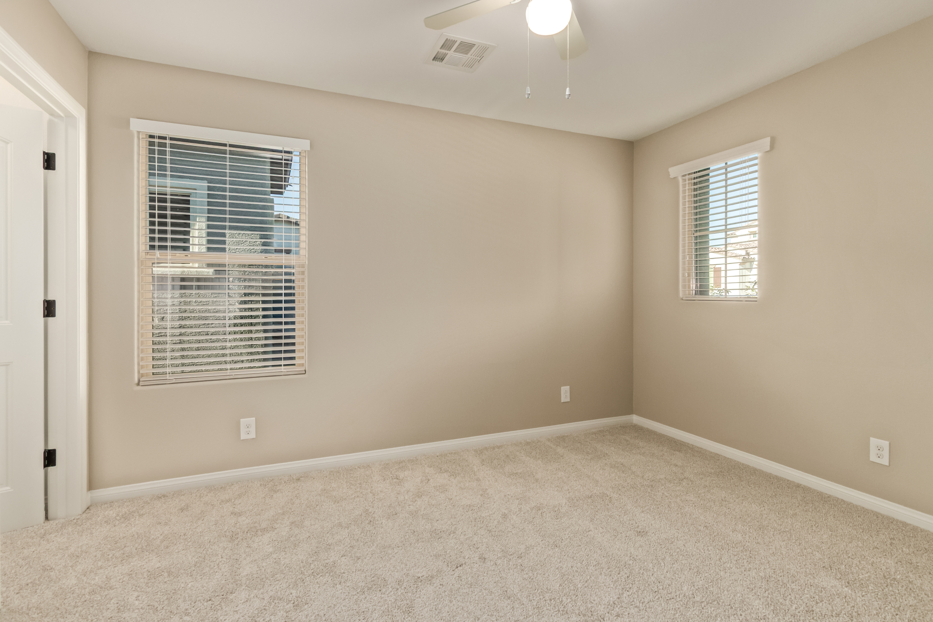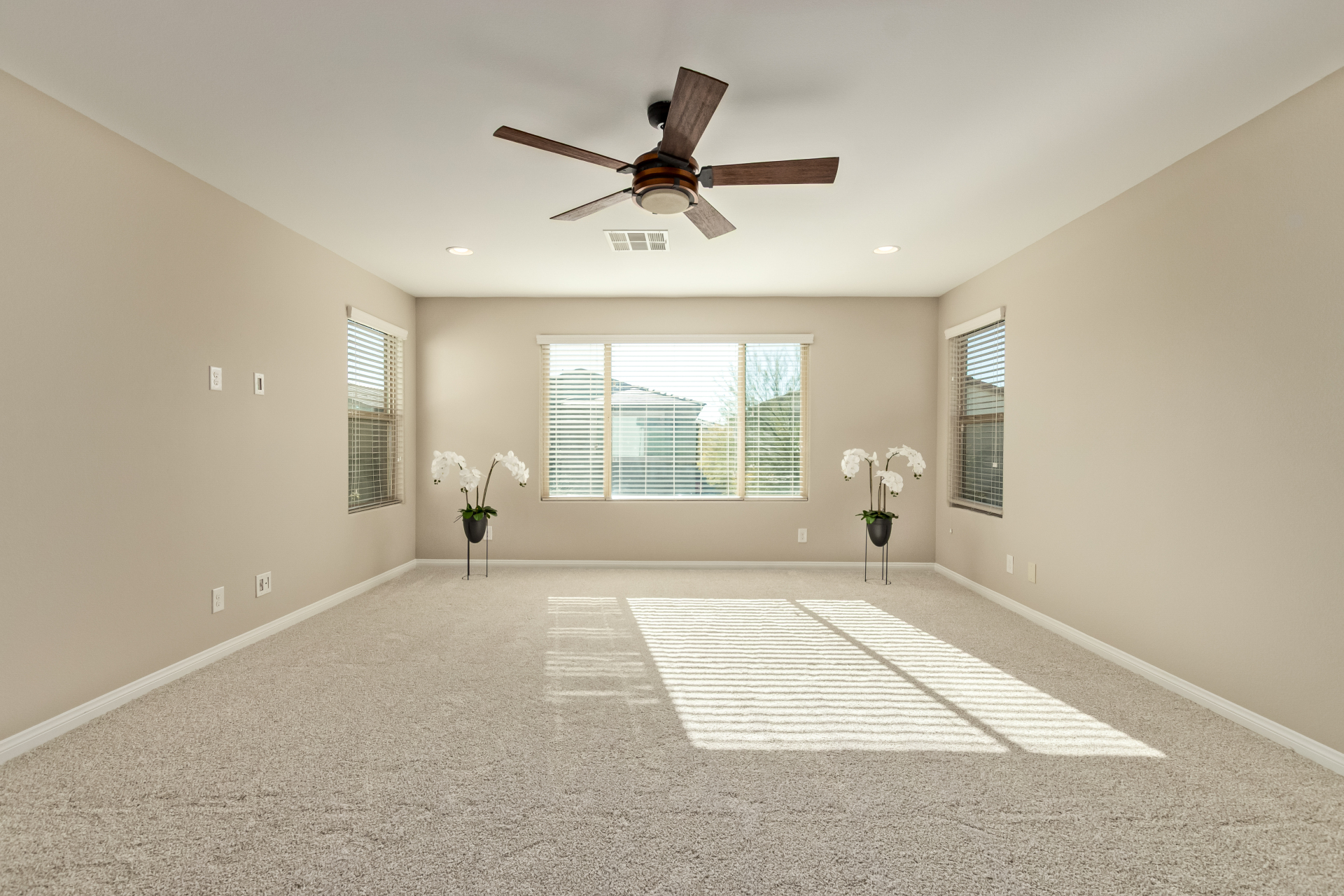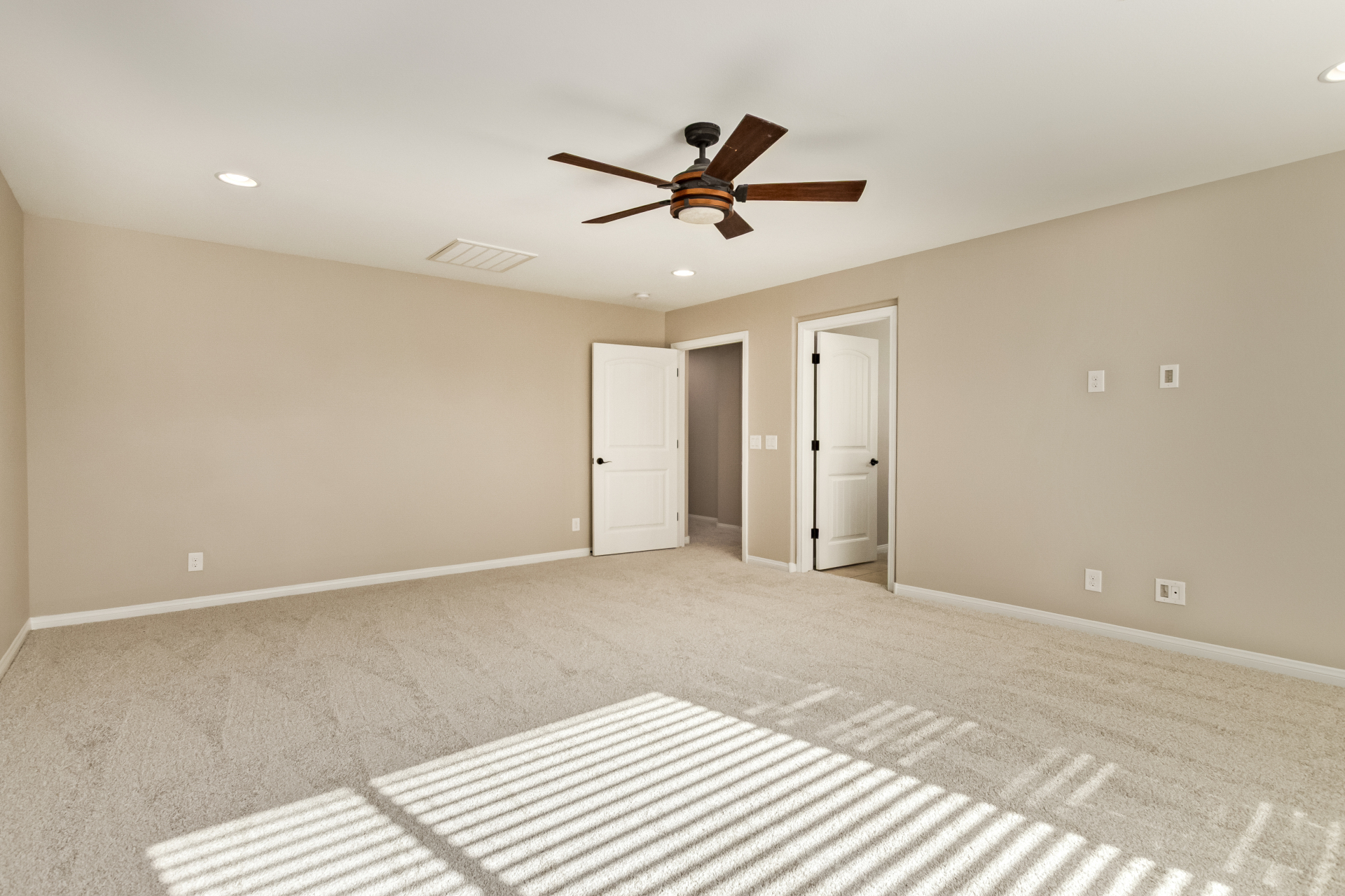 The search is finally over! This stunning 4-bedroom home welcomes you with a 2-car garage, a tasteful paver driveway, and eye-catching stone accents. Discover a captivating great room with high ceilings, recessed lighting, blinds, and a harmonious blend of soft carpeting and tile flooring. The gorgeous chef's kitchen boasts granite counters, abundant wood cabinetry with crown moulding, chic pendant lighting, a mosaic tile backsplash, stainless steel appliances, a walk-in pantry, and a stone-clad center island with a breakfast bar. Upstairs, you'll find a cozy loft that provides a versatile living space. The luxurious primary suite features a private bathroom with double vanities and a spacious walk-in closet. Spend enchanting evenings in the lovely backyard, which offers a covered patio and pristine artificial turf for outdoor activities. Don't miss out on this fantastic opportunity!