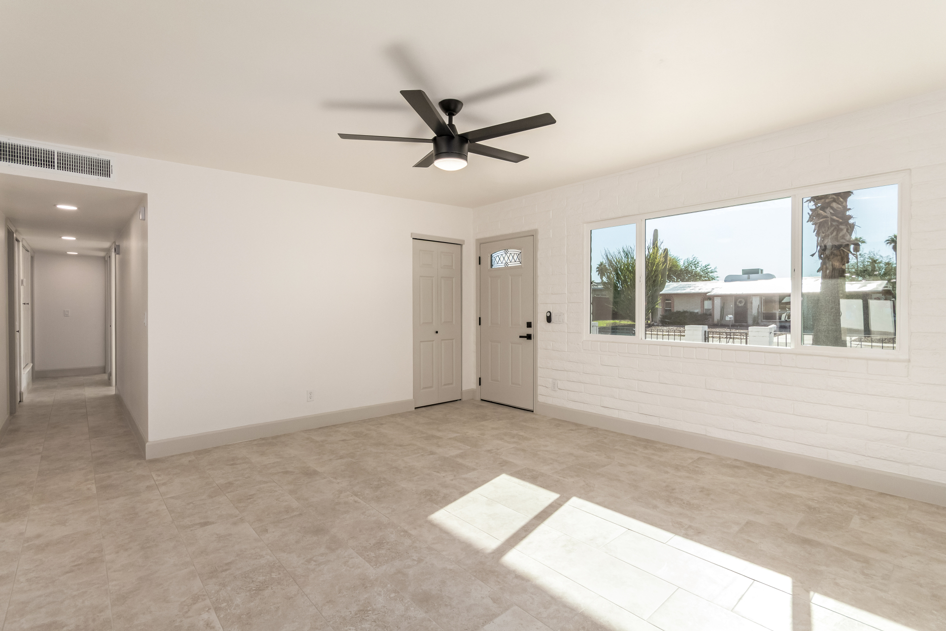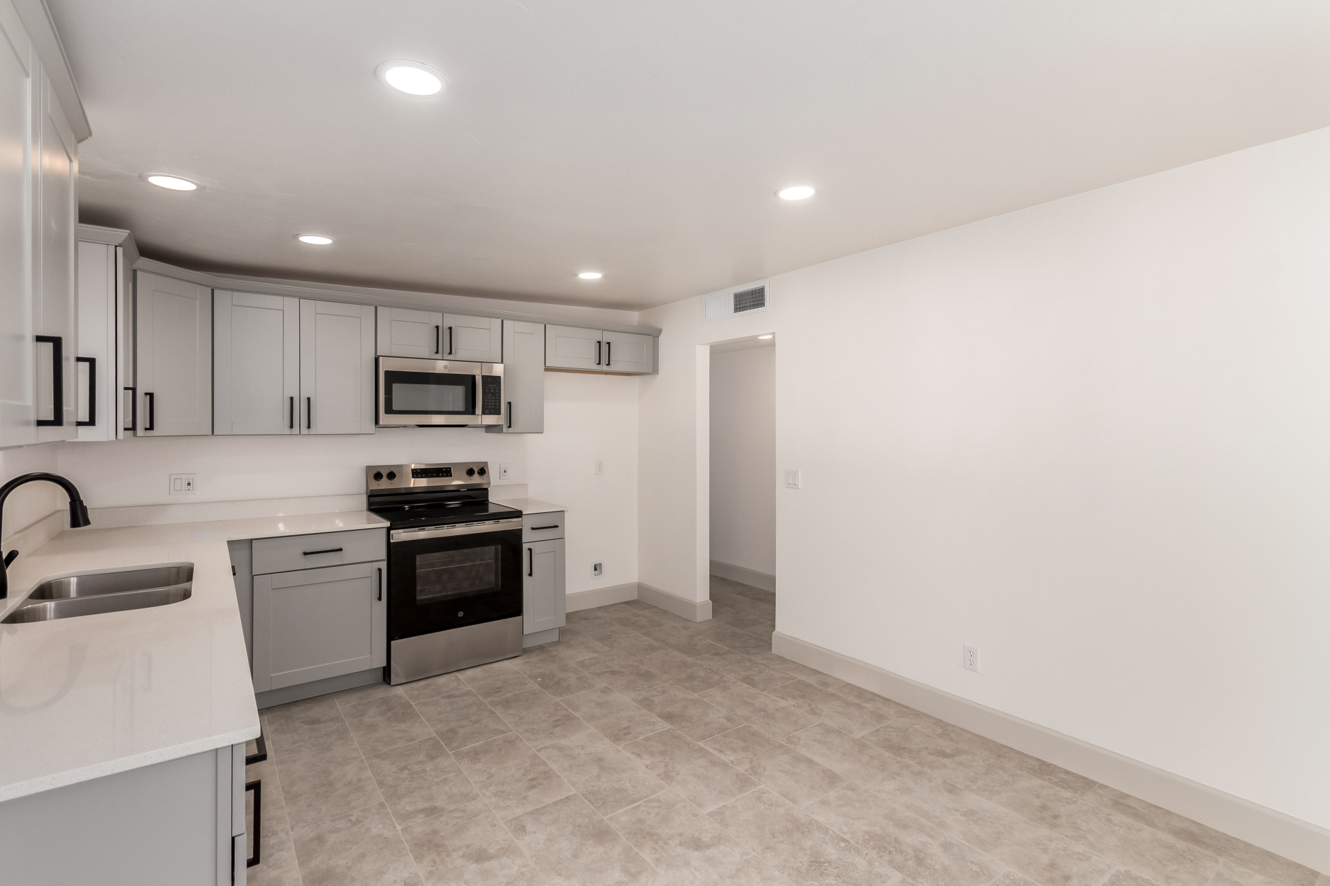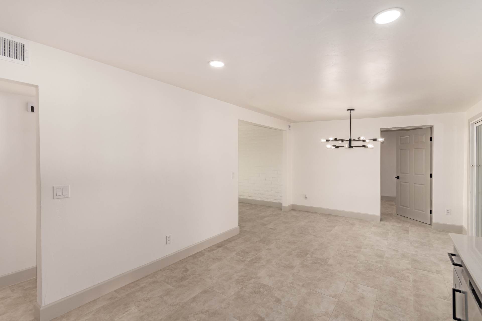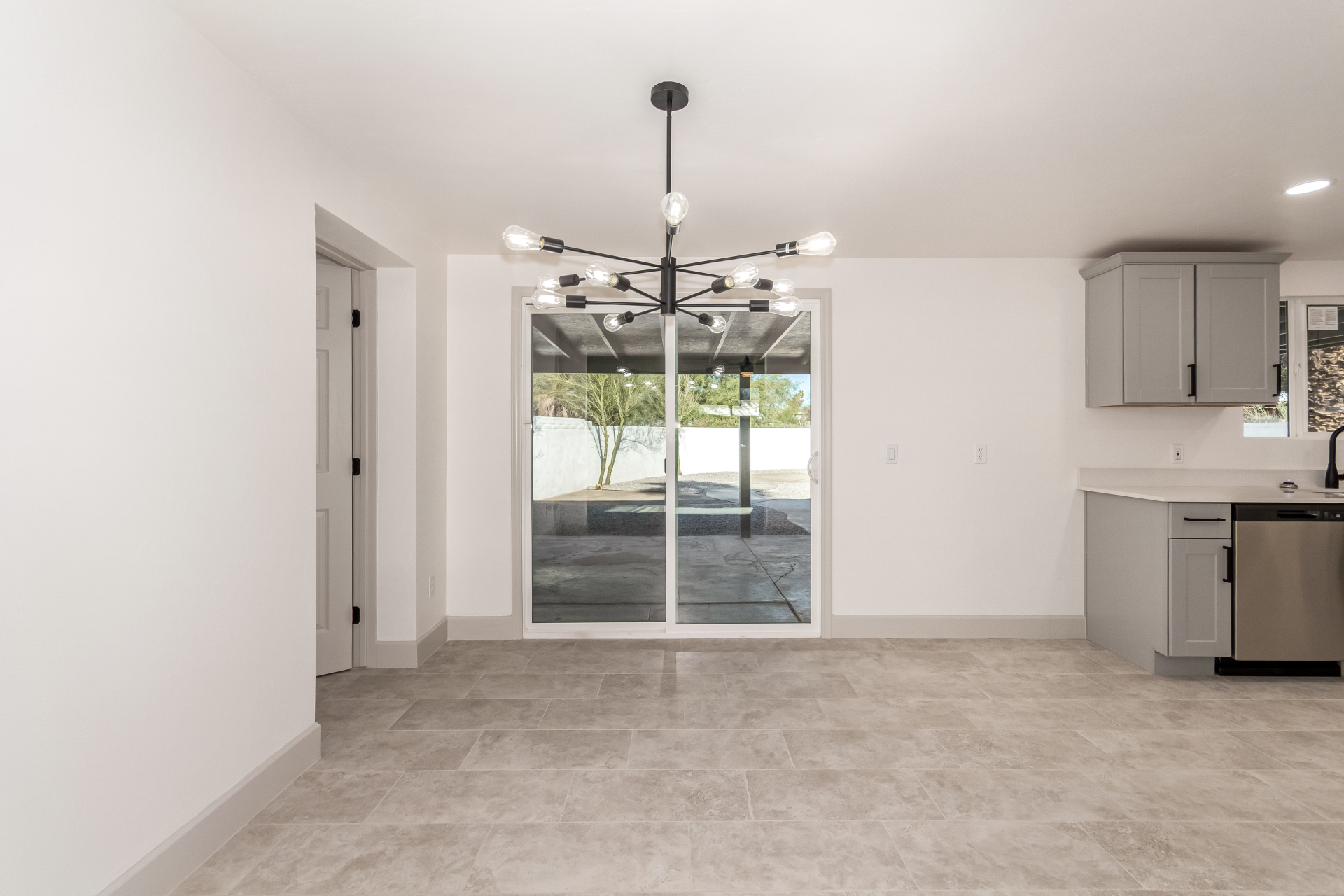 Seize the chance to own this thoughtfully renovated 3-bedroom, 2-bath home! You're welcomed by a fenced front yard with a charming desert landscape. Inside, you'll find an expertly upgraded interior featuring a living room with a soothing palette, ample natural light, and durable tile flooring. The updated eat-in kitchen comes with quartz counters, shaker cabinetry with crown moulding, and sleek stainless steel appliances. The primary bedroom boasts plush carpeting and a private bathroom for added comfort. Imagine enchanting evenings in the sizeable backyard, which offers a spacious covered patio, an RV gate that leads to the alley, and abundant space for outdoor gatherings. Don't miss out on this revitalized gem!