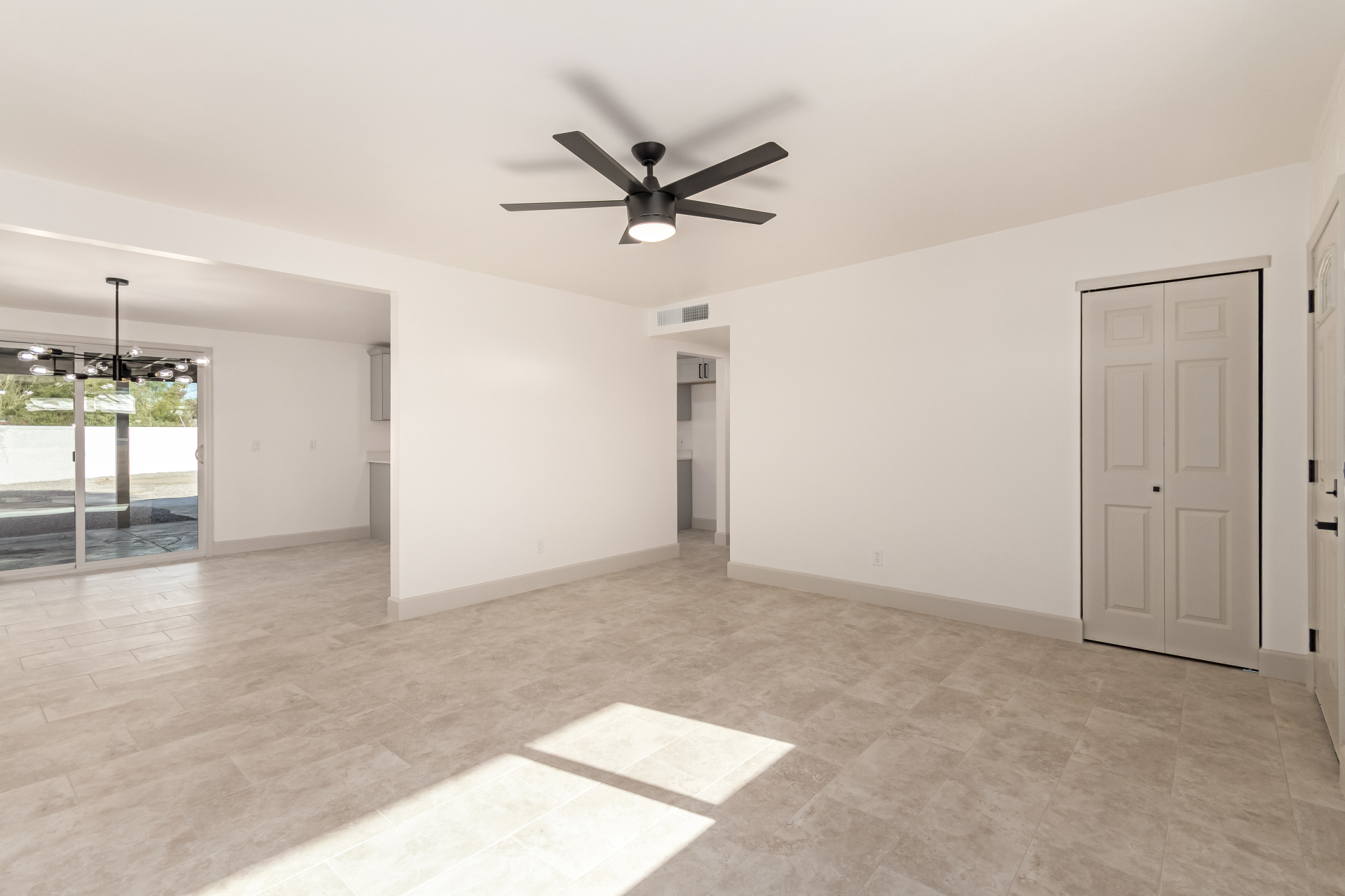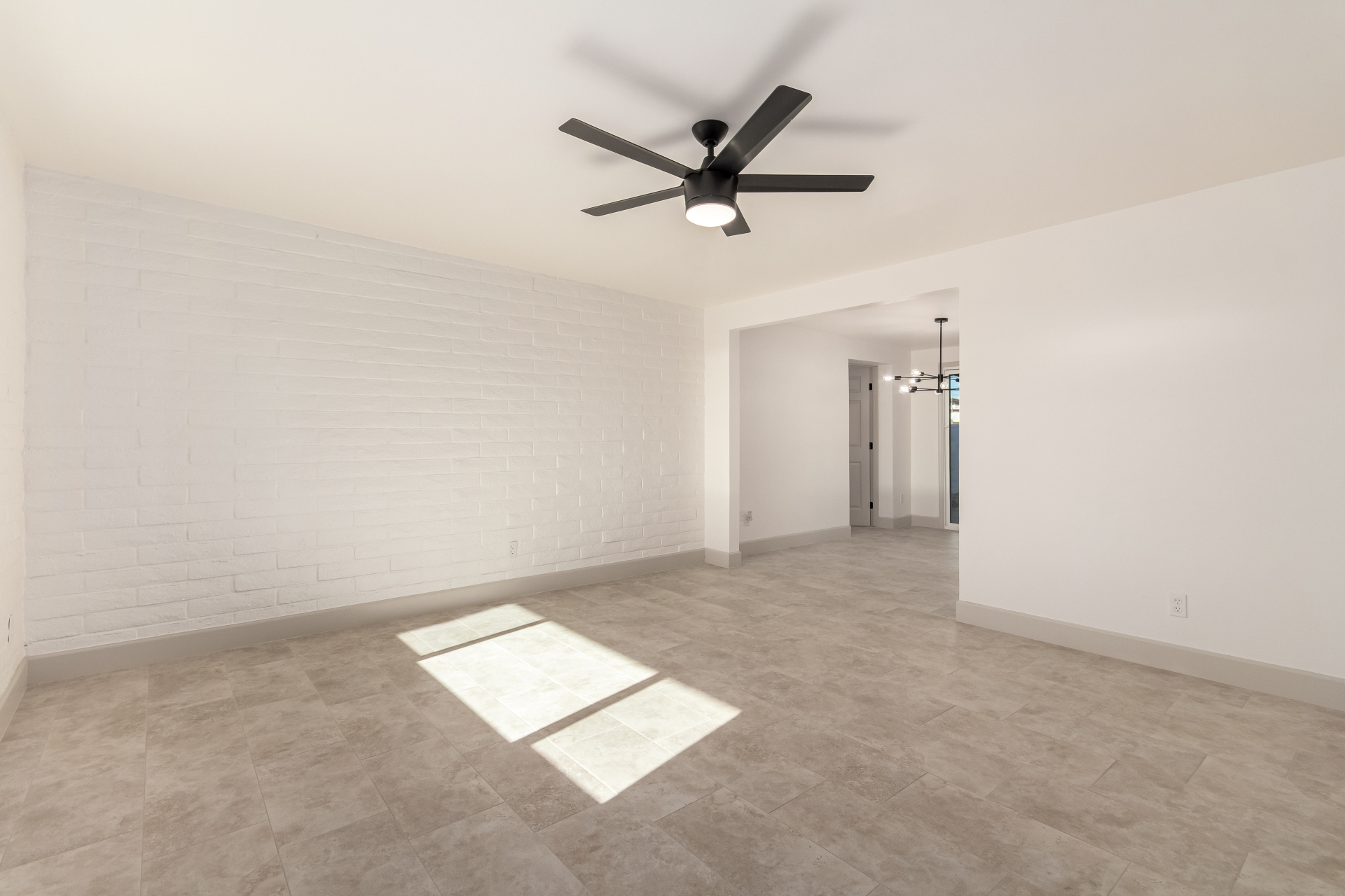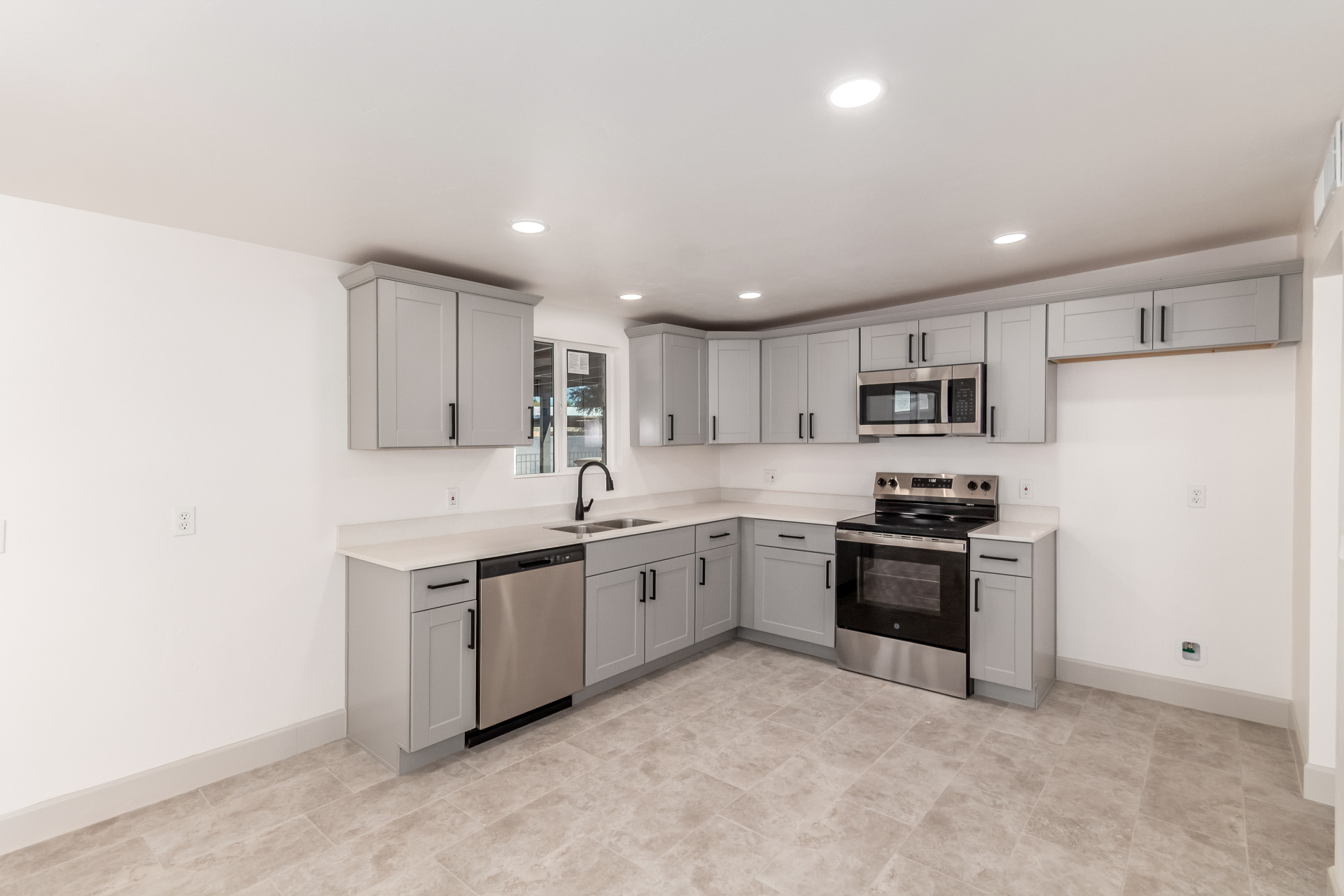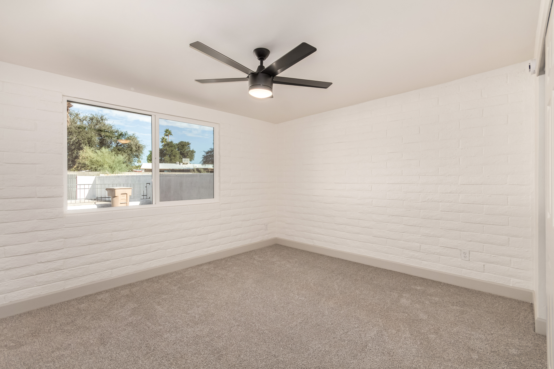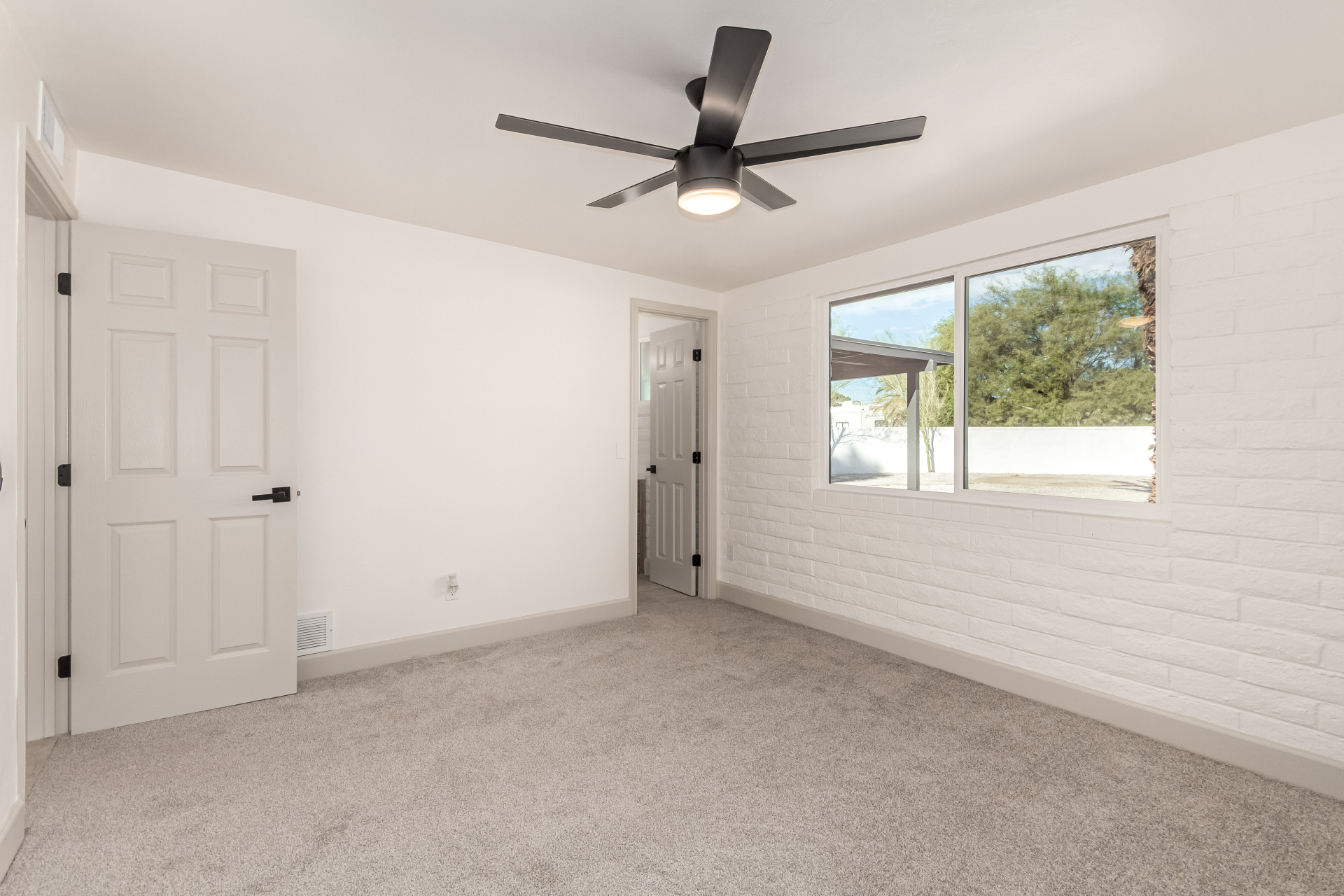 Seize the chance to own this thoughtfully renovated 3-bedroom, 2-bath home! You're welcomed by a fenced front yard with a charming desert landscape. Inside, you'll find an expertly upgraded interior featuring a living room with a soothing palette, ample natural light, and durable tile flooring. The updated eat-in kitchen comes with quartz counters, shaker cabinetry with crown moulding, and sleek stainless steel appliances. The primary bedroom boasts plush carpeting and a private bathroom for added comfort. Imagine enchanting evenings in the sizeable backyard, which offers a spacious covered patio, an RV gate that leads to the alley, and abundant space for outdoor gatherings. Don't miss out on this revitalized gem!