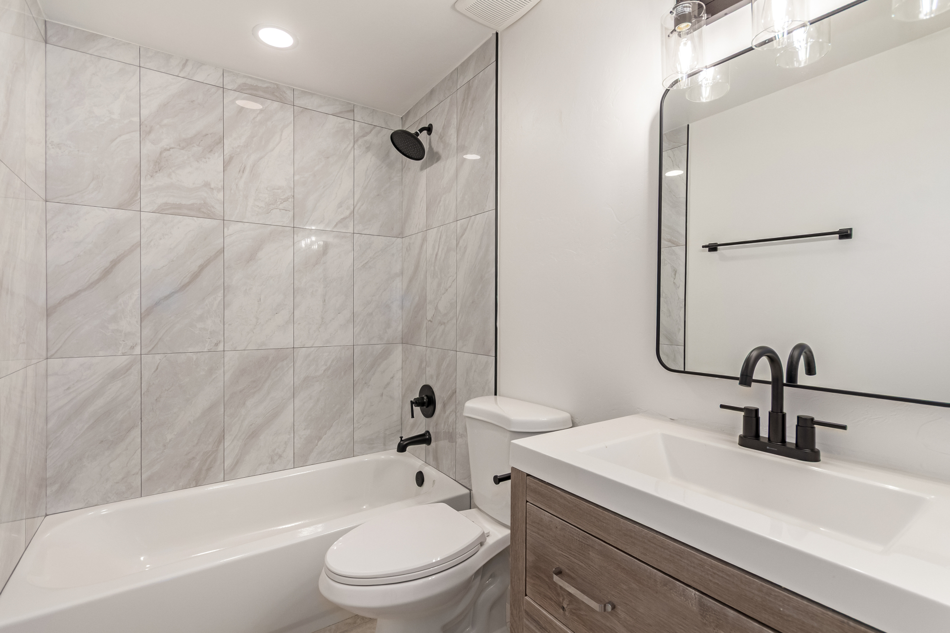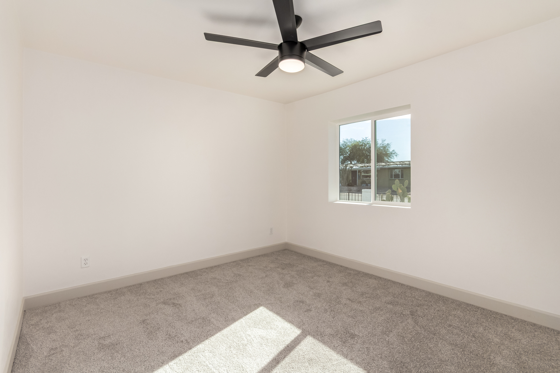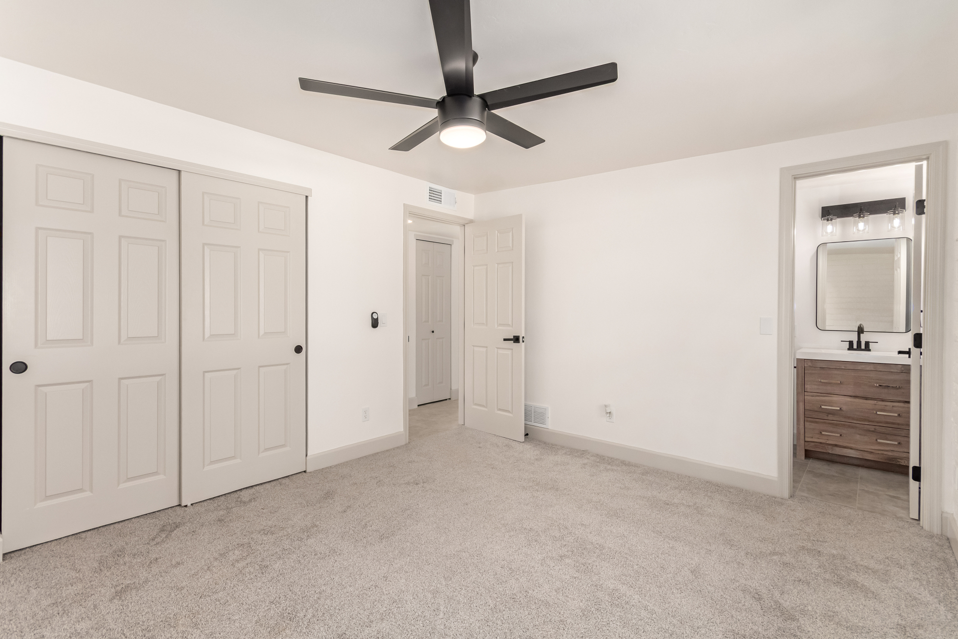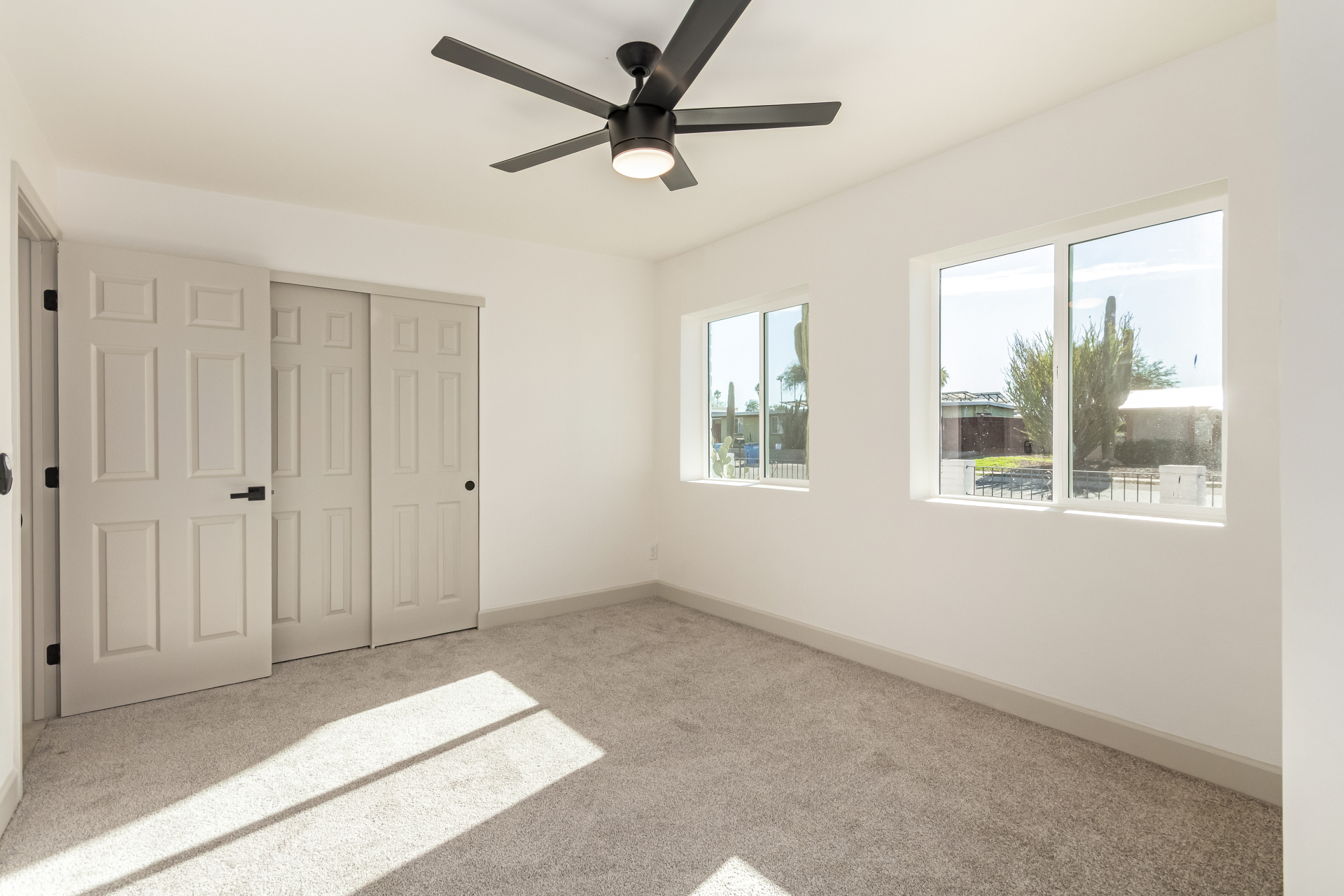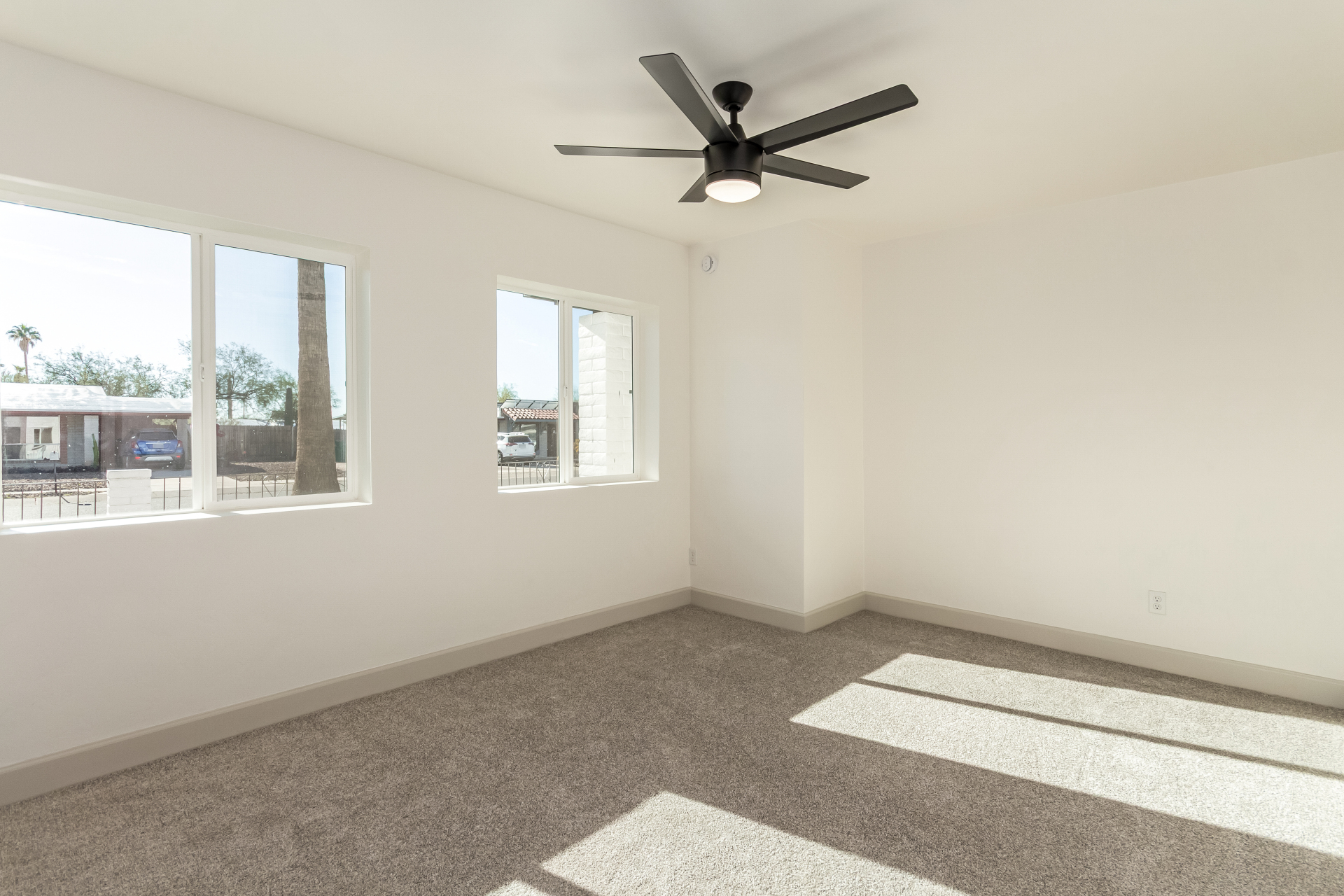 Seize the chance to own this thoughtfully renovated 3-bedroom, 2-bath home! You're welcomed by a fenced front yard with a charming desert landscape. Inside, you'll find an expertly upgraded interior featuring a living room with a soothing palette, ample natural light, and durable tile flooring. The updated eat-in kitchen comes with quartz counters, shaker cabinetry with crown moulding, and sleek stainless steel appliances. The primary bedroom boasts plush carpeting and a private bathroom for added comfort. Imagine enchanting evenings in the sizeable backyard, which offers a spacious covered patio, an RV gate that leads to the alley, and abundant space for outdoor gatherings. Don't miss out on this revitalized gem!