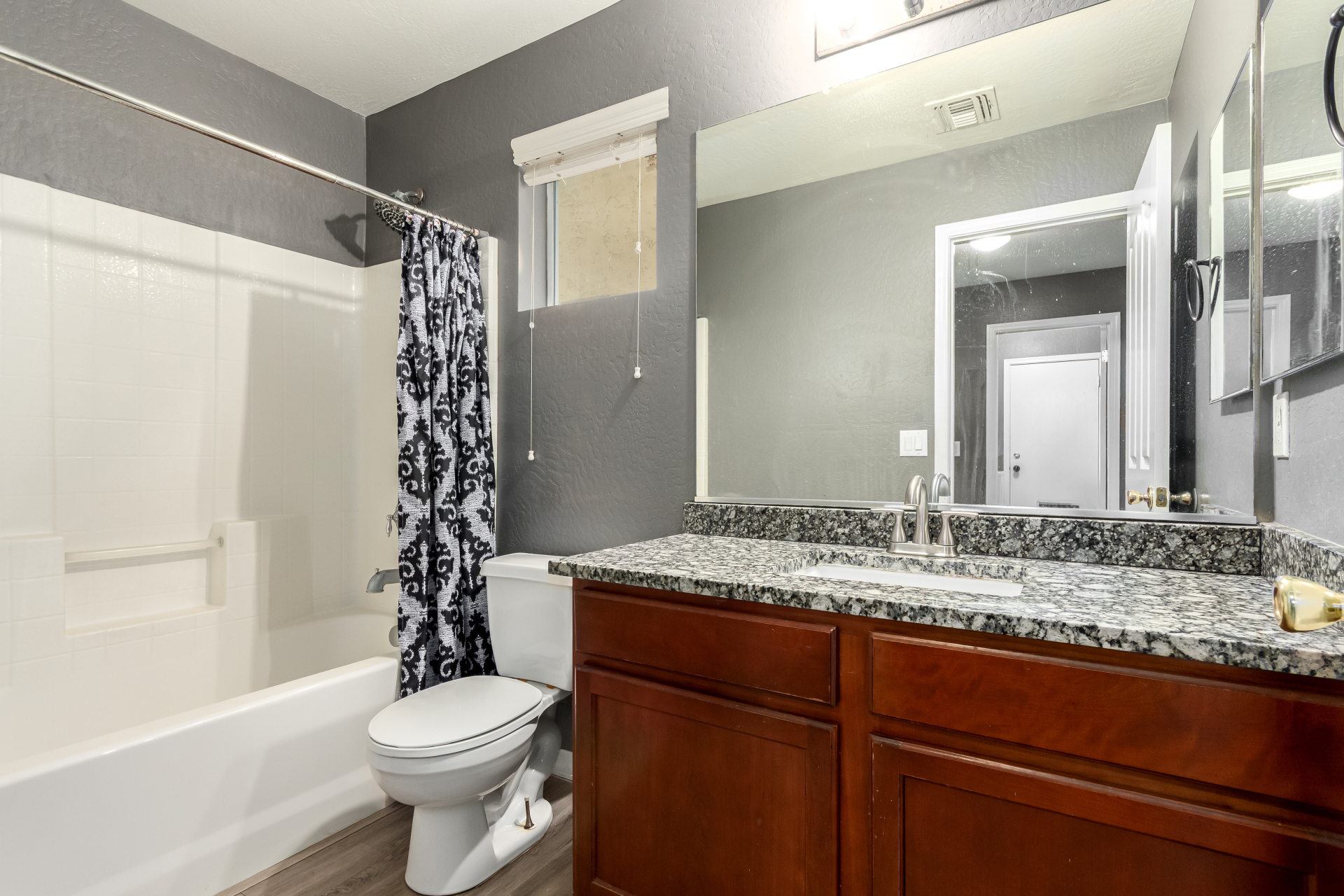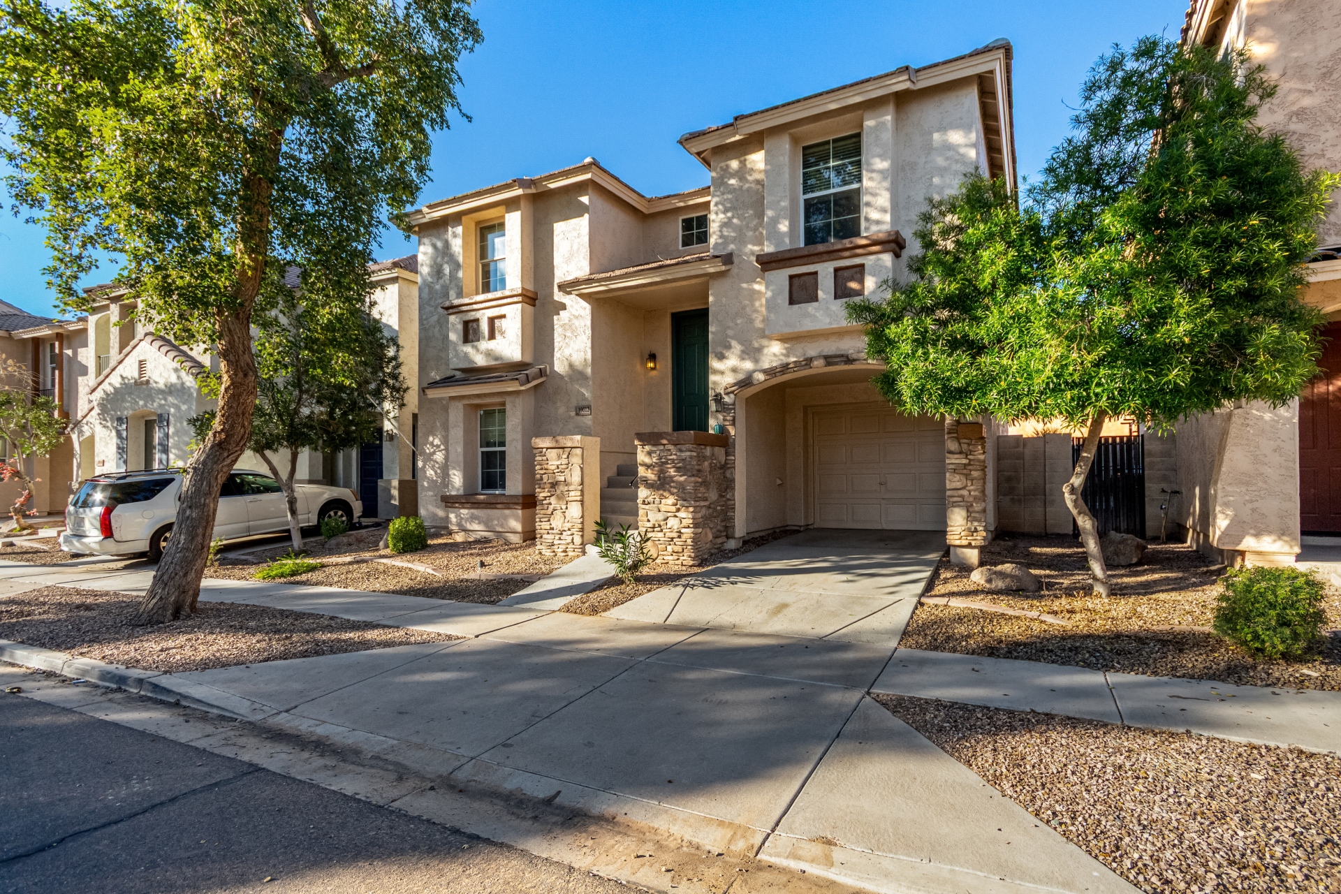 Discover all the charm of this lovely two-story home in Palisades at Country Place! Inside, you'll find an open floor plan with wood-look flooring, abundant natural light, and stylish neutral tones throughout, making every space perfect for entertaining and relaxation. The well-appointed kitchen boasts mocha cabinets, tile backsplash, granite countertops, and stainless steel essentials. The serene main bedroom features soft carpeting for added comfort, a full bathroom with double sinks, and a closet with mirrored doors. Out back, you'll have a nice seating space with an easy-maintenance landscape, and a gazebo with flagstone flooring perfect for weekend grills. What are you waiting for? Come see it before it's too late!