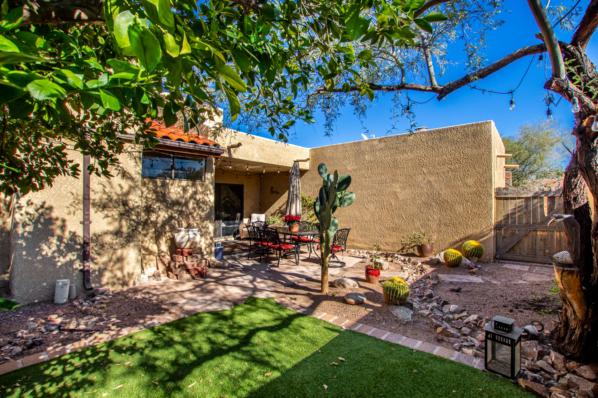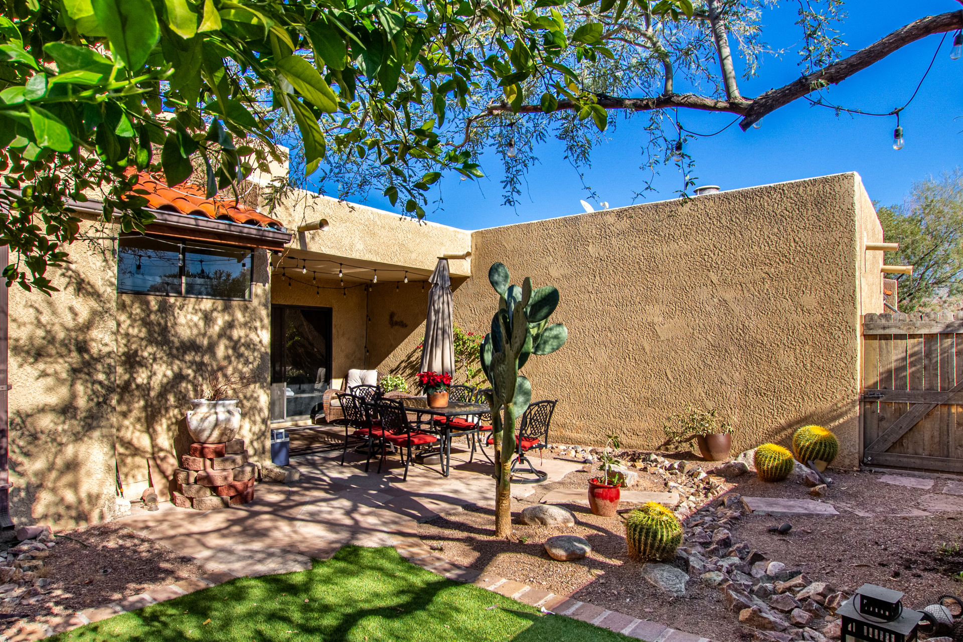This charming townhouse near downtown Tucson brings the fun from the moment you arrive! Inside, vaulted ceilings soar above a warm living/dining room anchored by a glowing gas fireplace. The chic kitchen shines with SS appliances, custom cabinets, granite counters, a mosaic tile backsplash, and a cheery breakfast bar. Head up to the cozy loft perfect for movie marathons, gaming sessions, or a relaxing lounge vibe. The primary bedroom treats you to direct backyard access, a walk-in closet, and its own private bathroom. Outside, unwind on the inviting patio and enjoy your favorite beverage under the Arizona sky. PLUS, a sparkling commuinity pool that you can enjoy with! This gem truly has it all! Come and experience it for yourself!